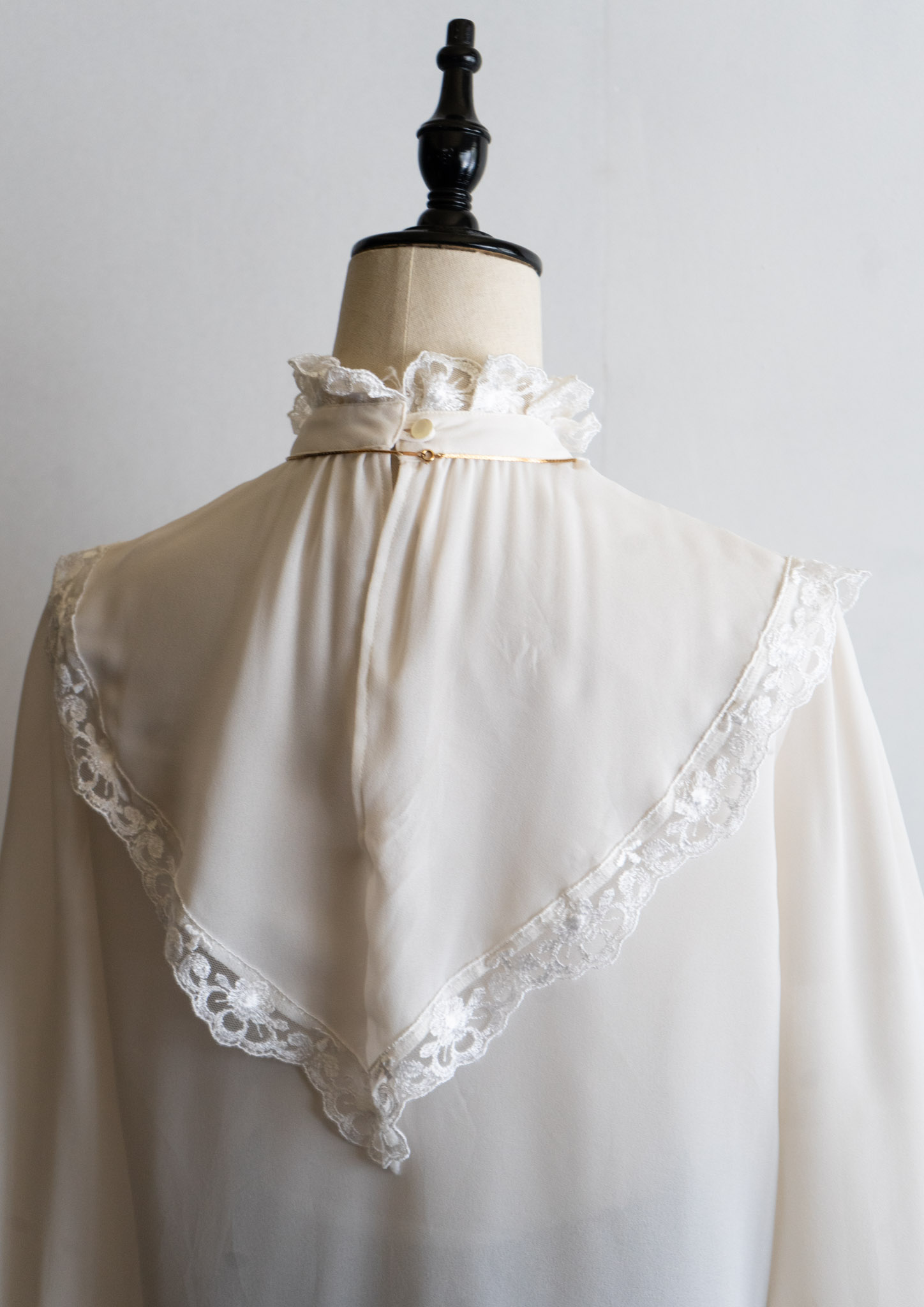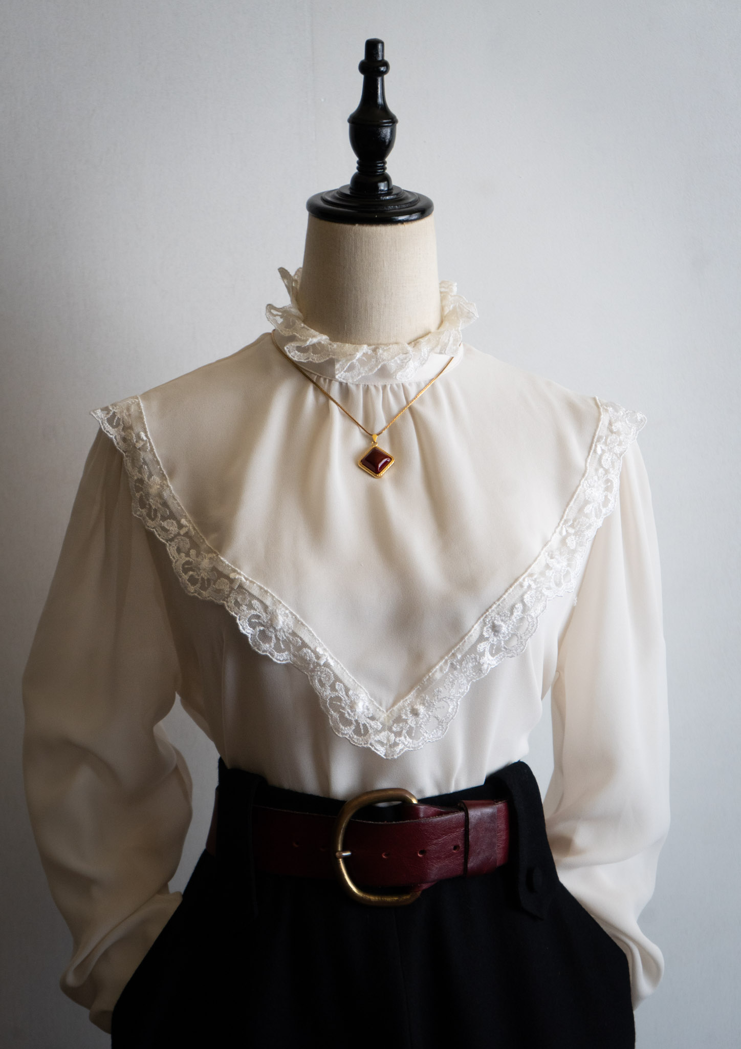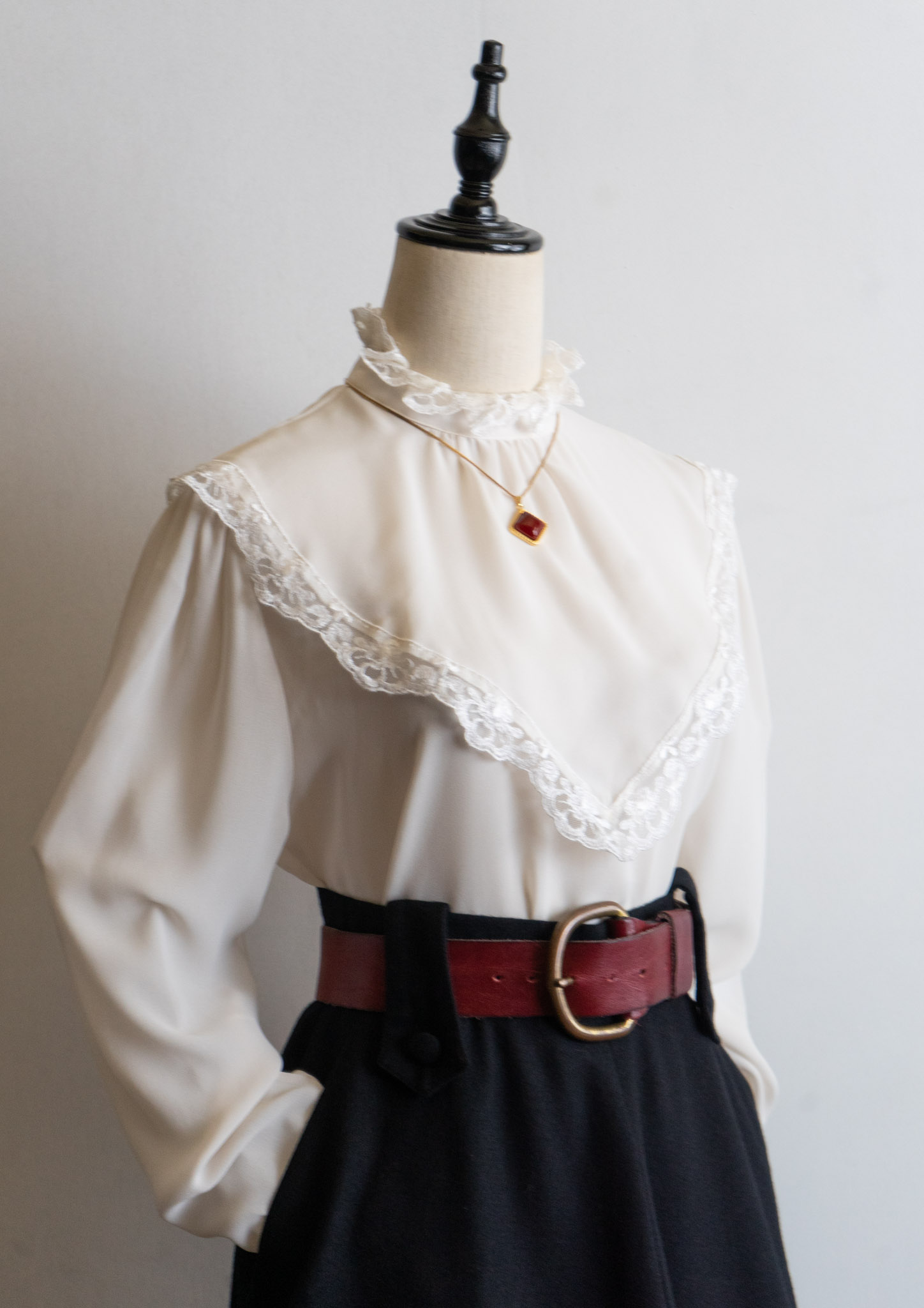 80's Tree Ring Pattern Frill Collar Purple Blouse