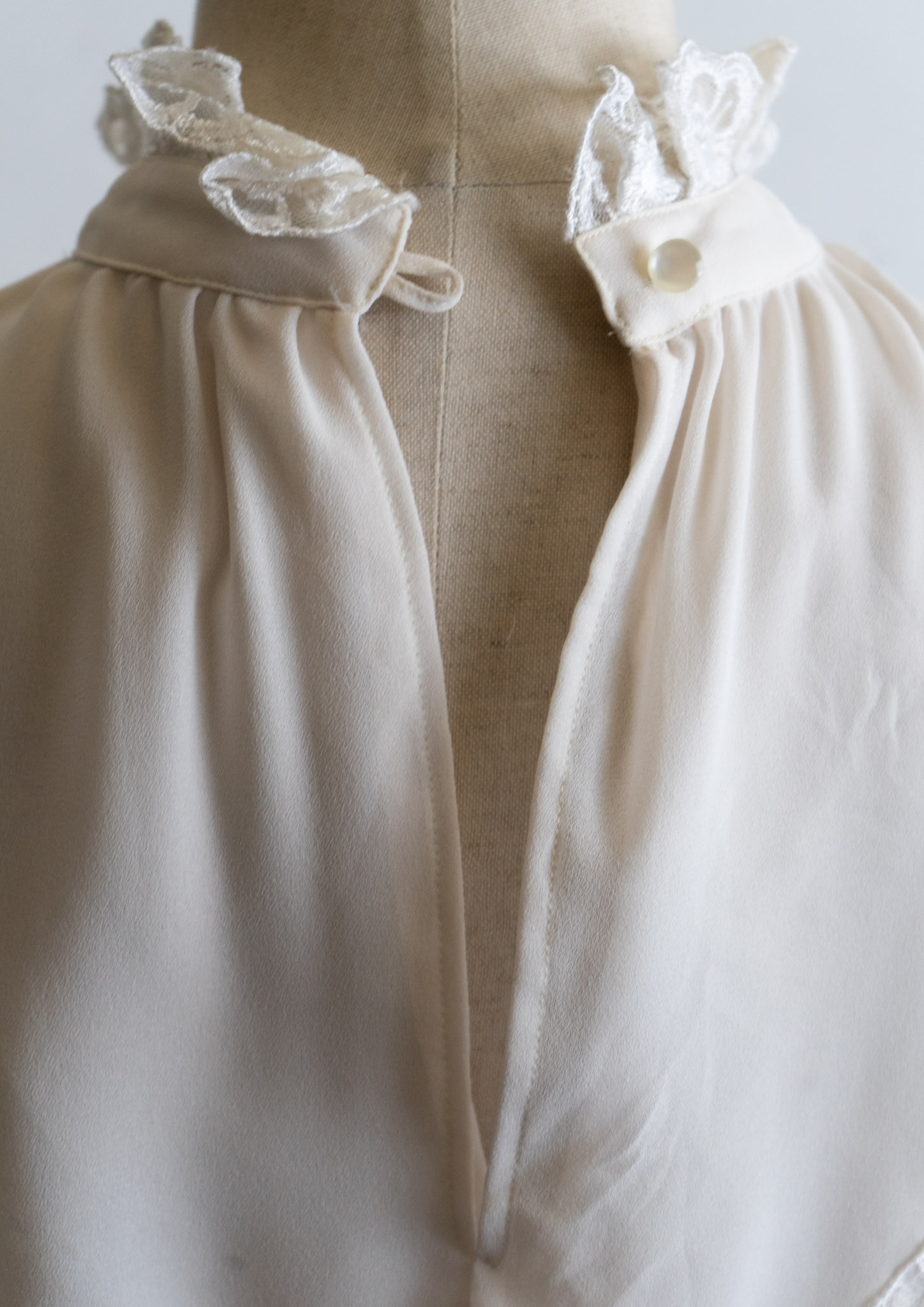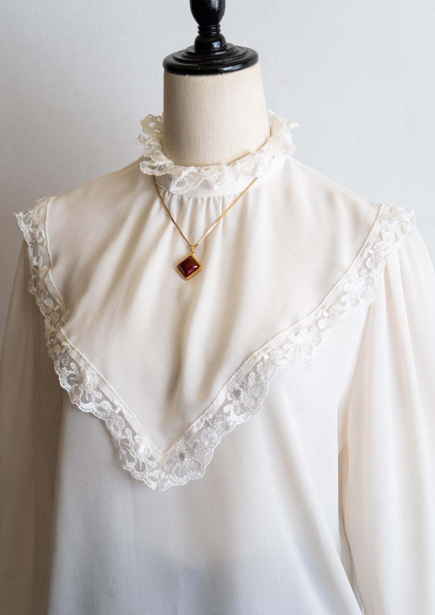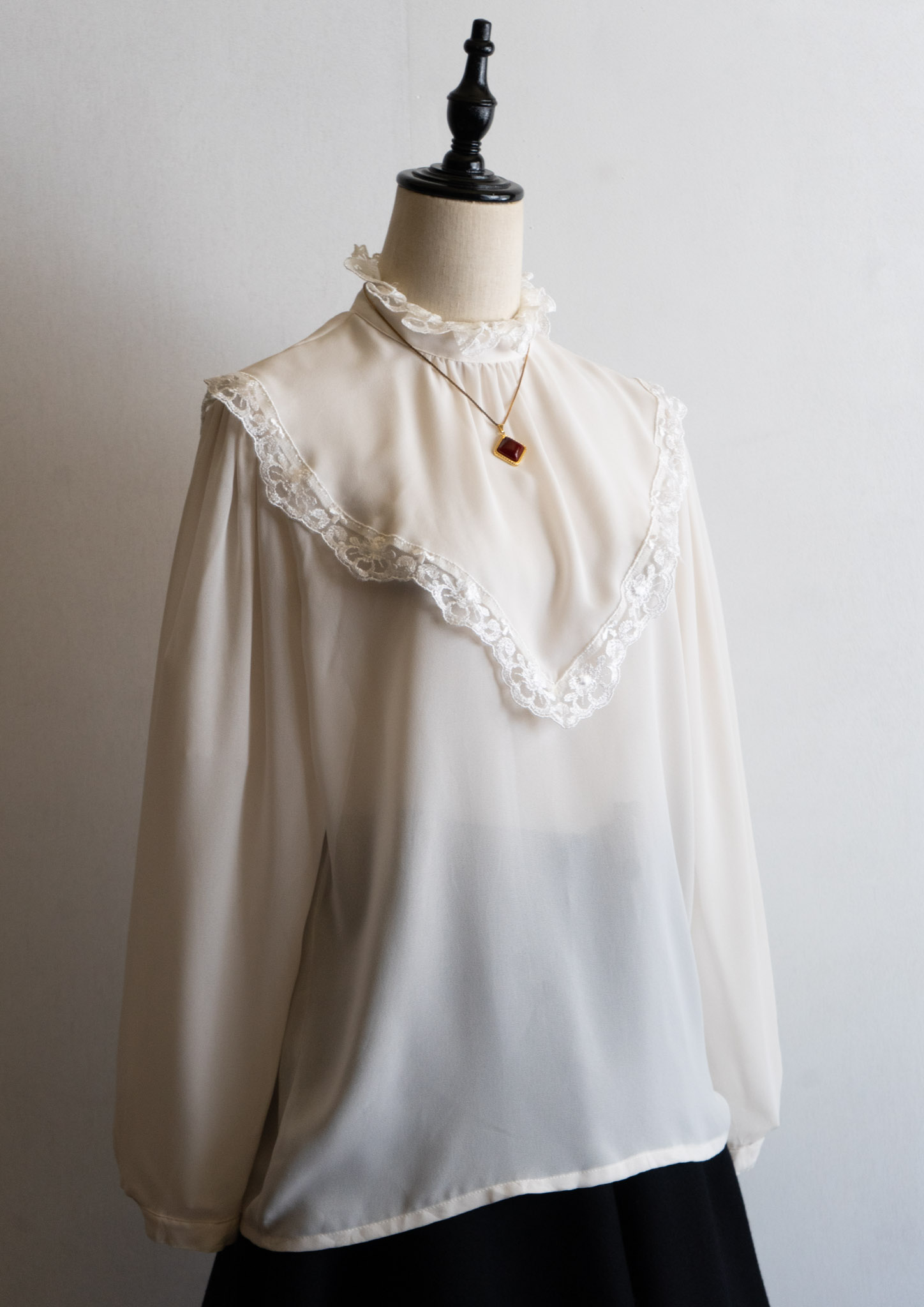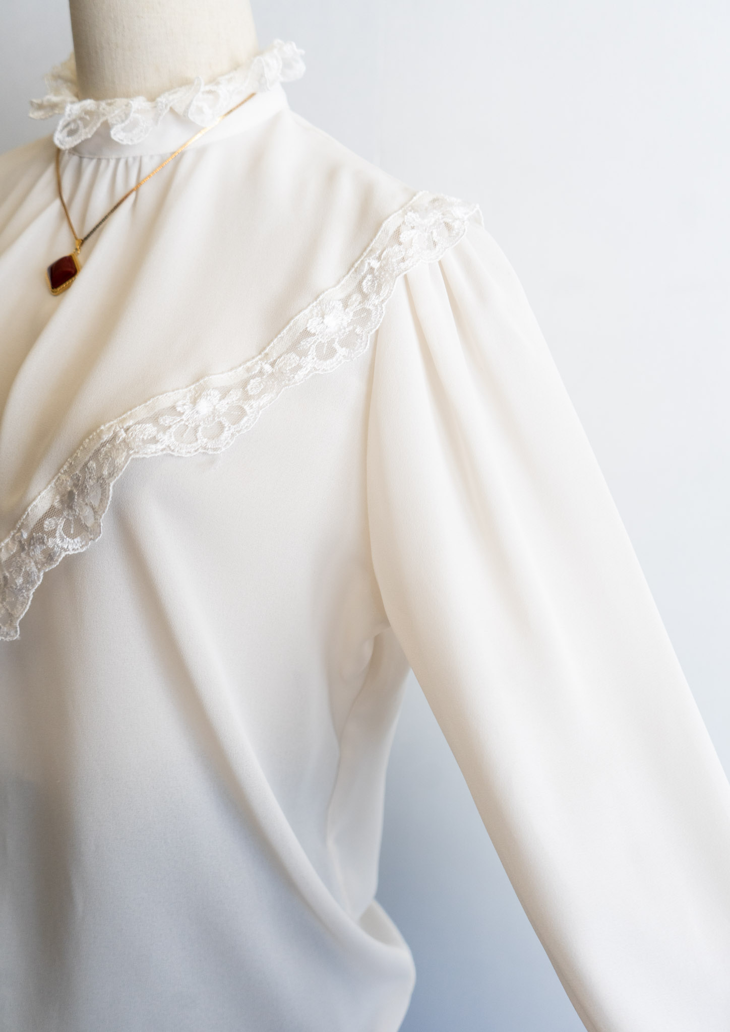 80's Tree Ring Pattern Frill Collar Purple Blouse
