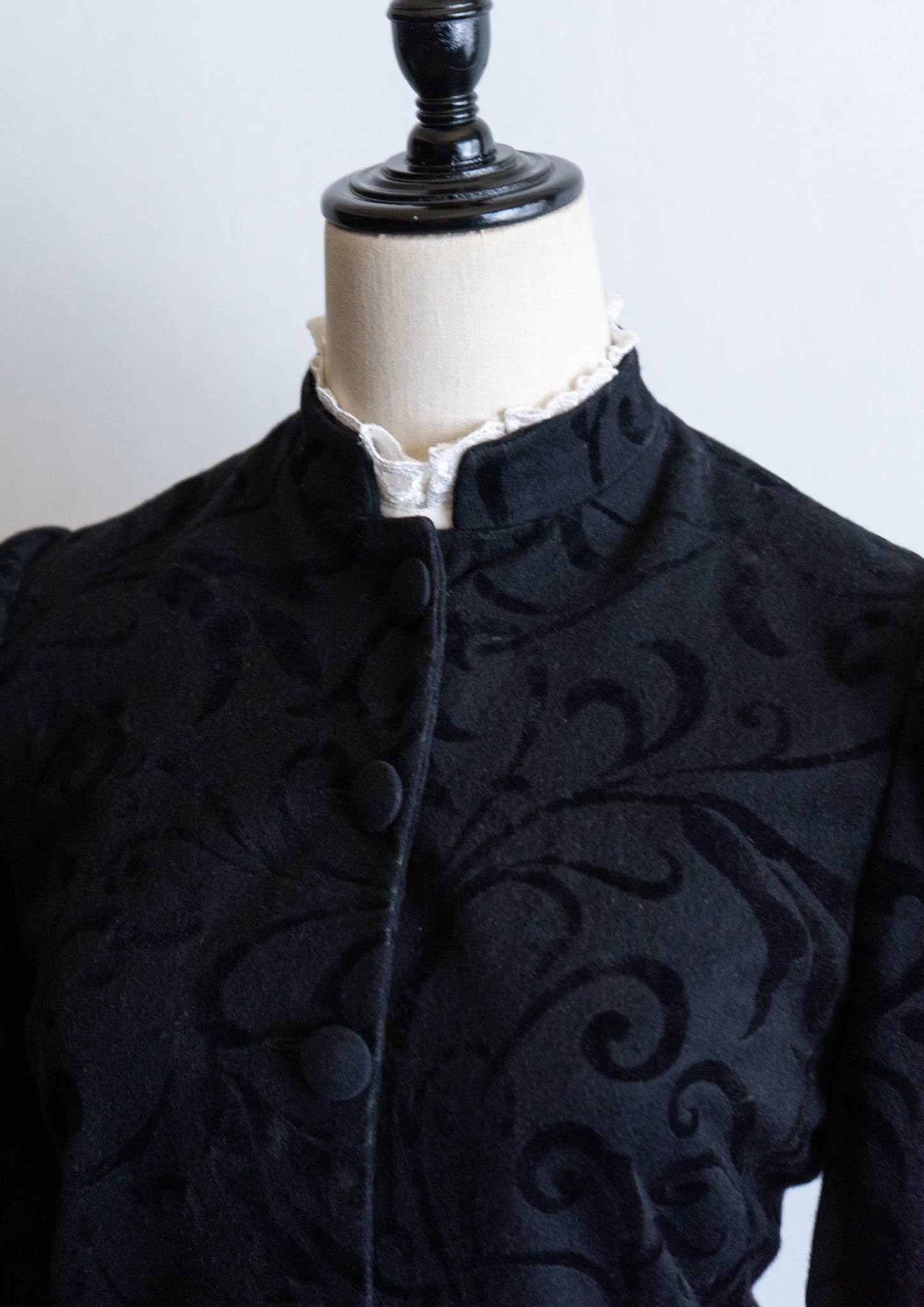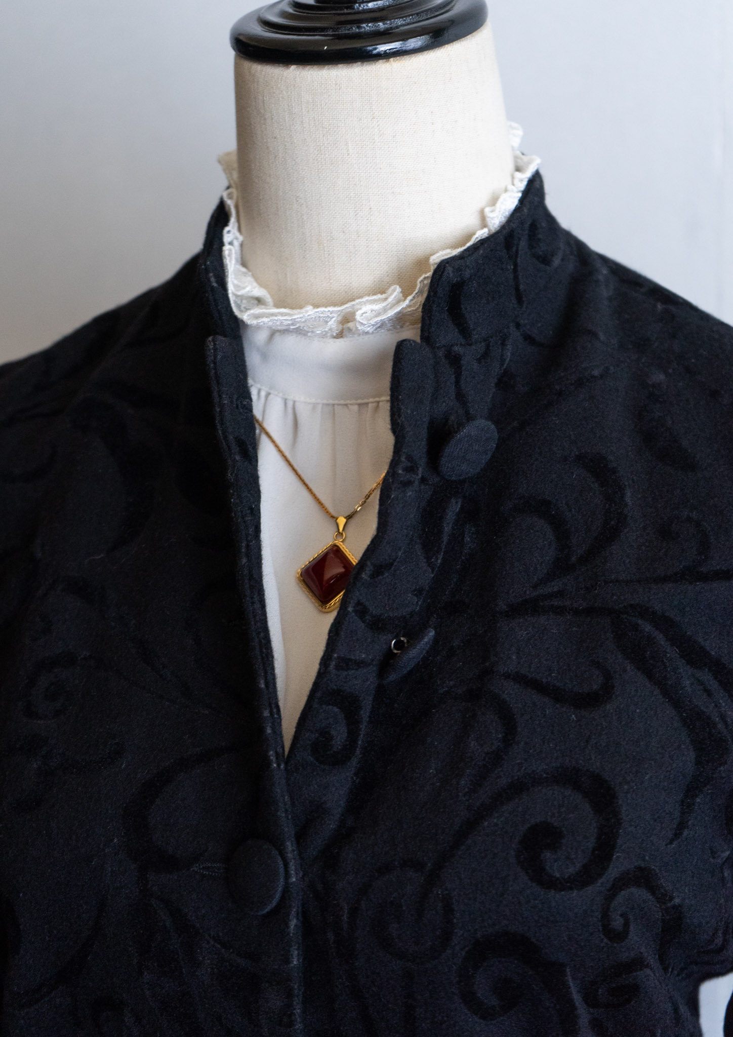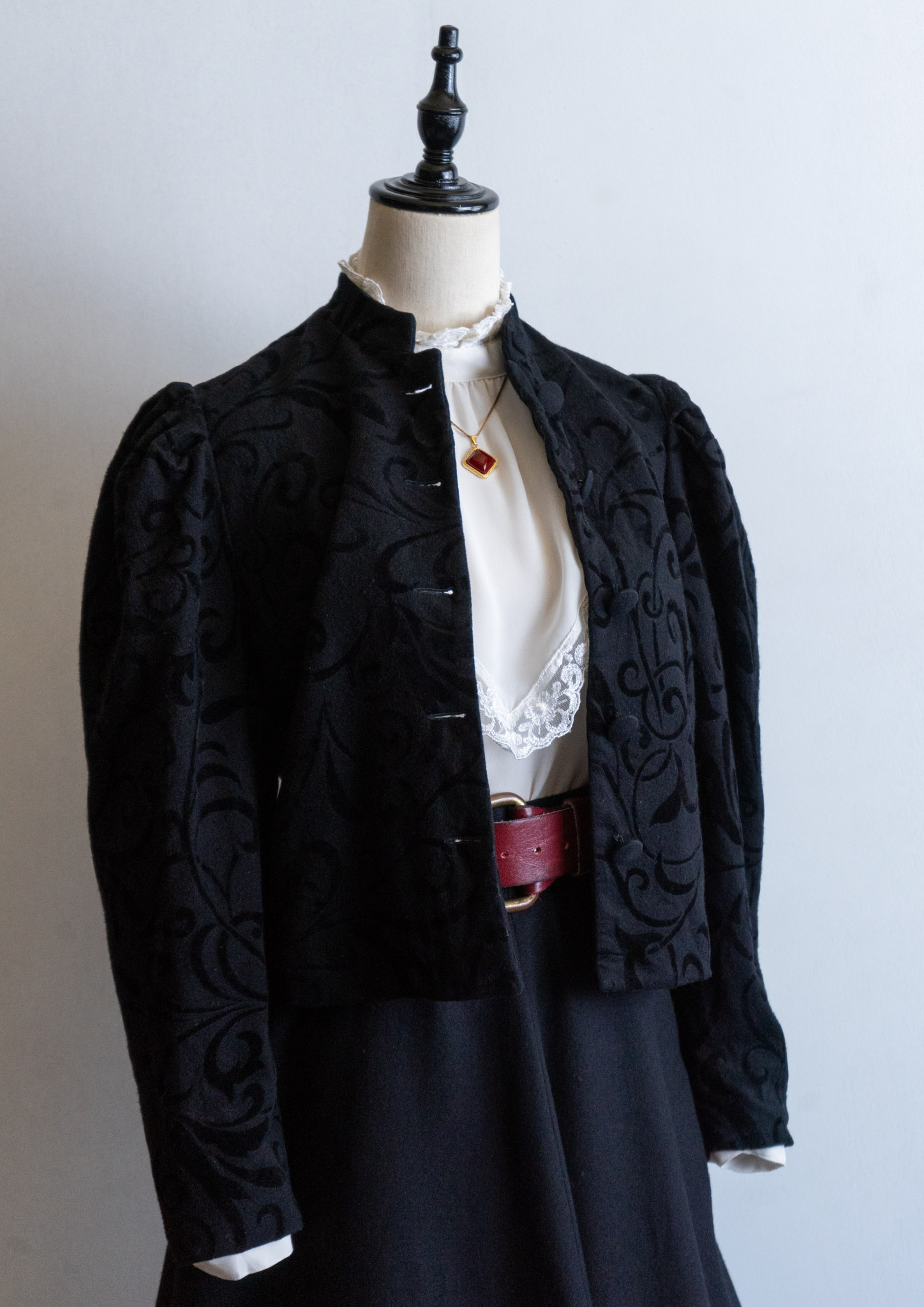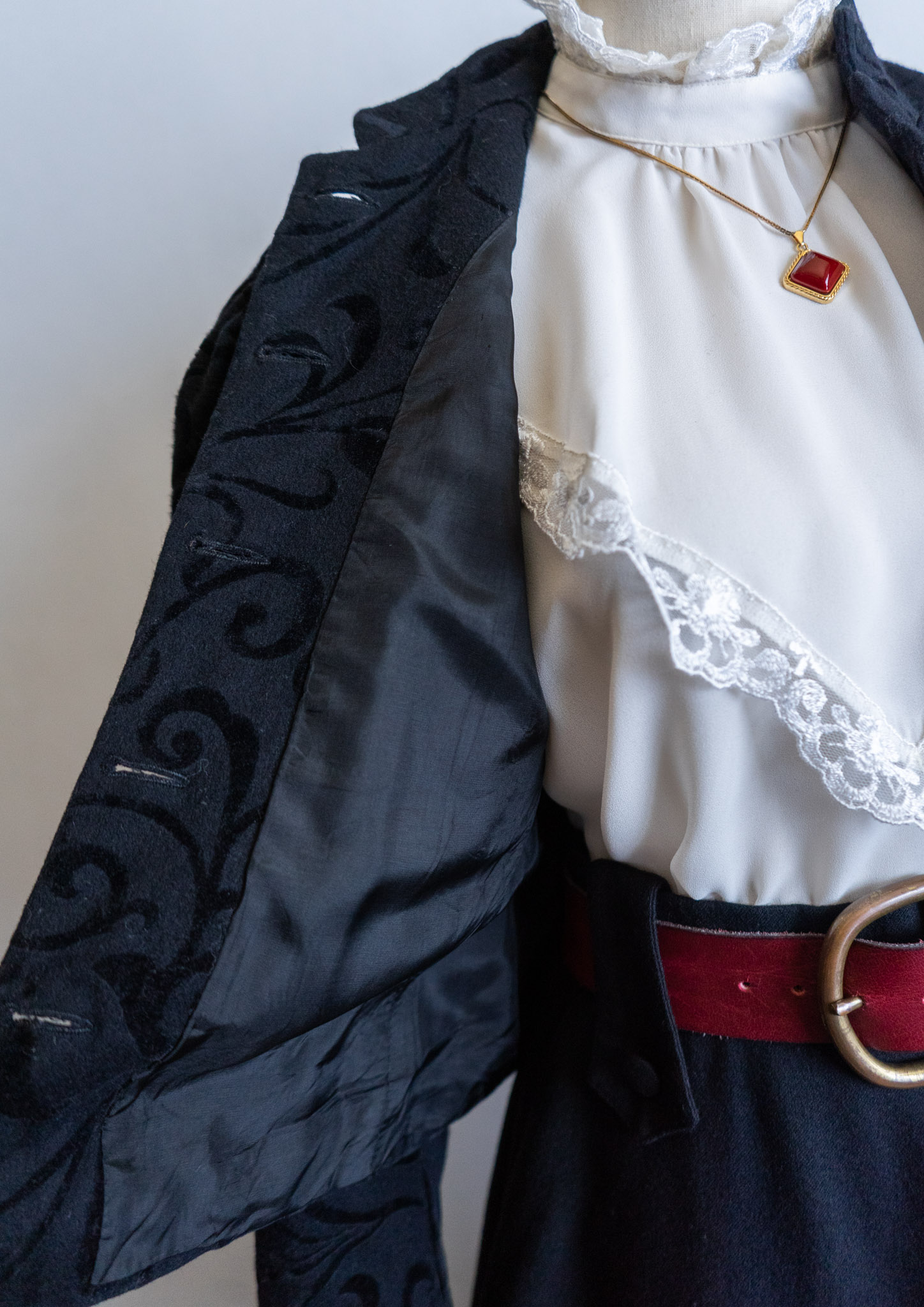 80's Euro Mustard Color Linning Black Wool Tailored Jacket