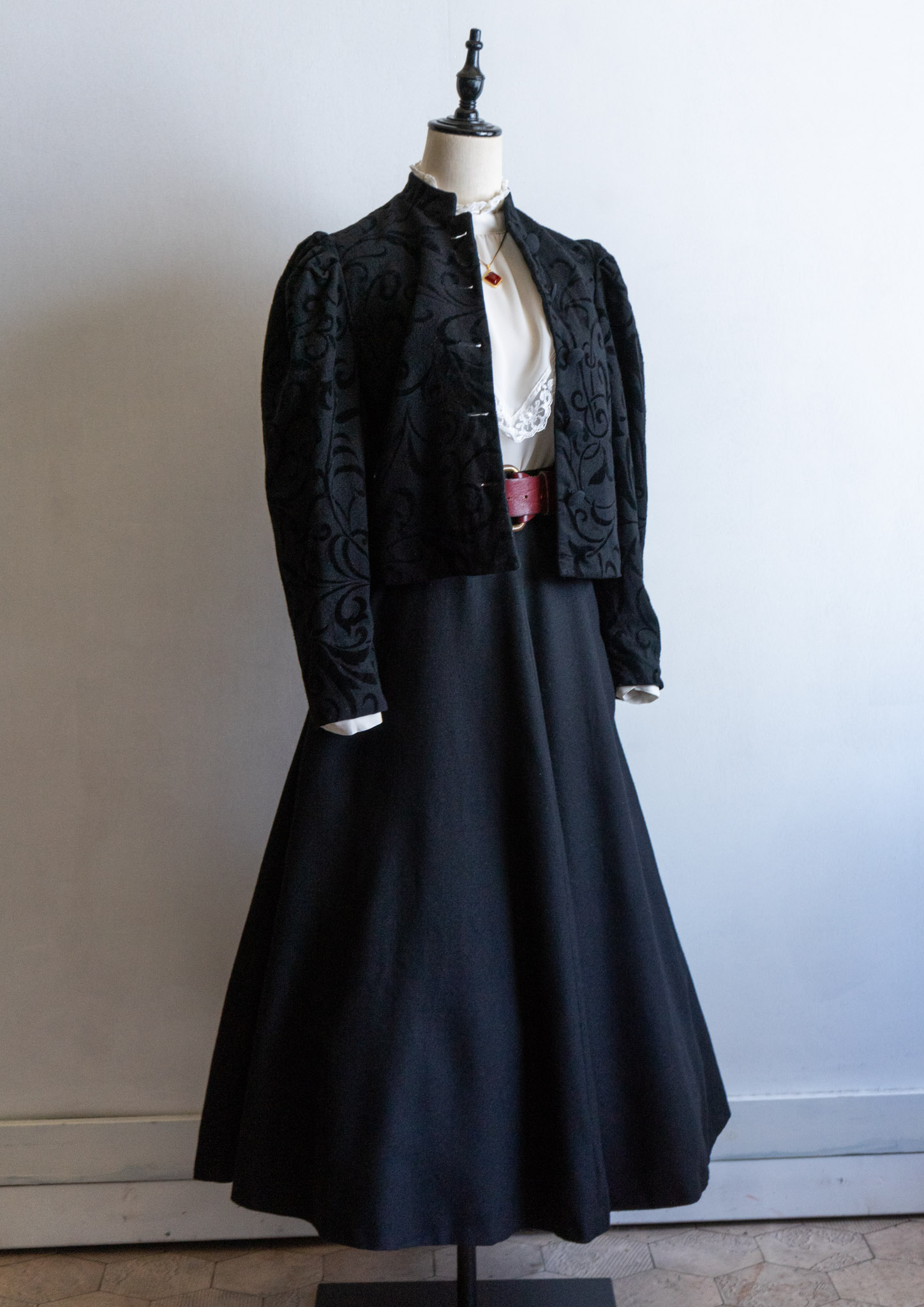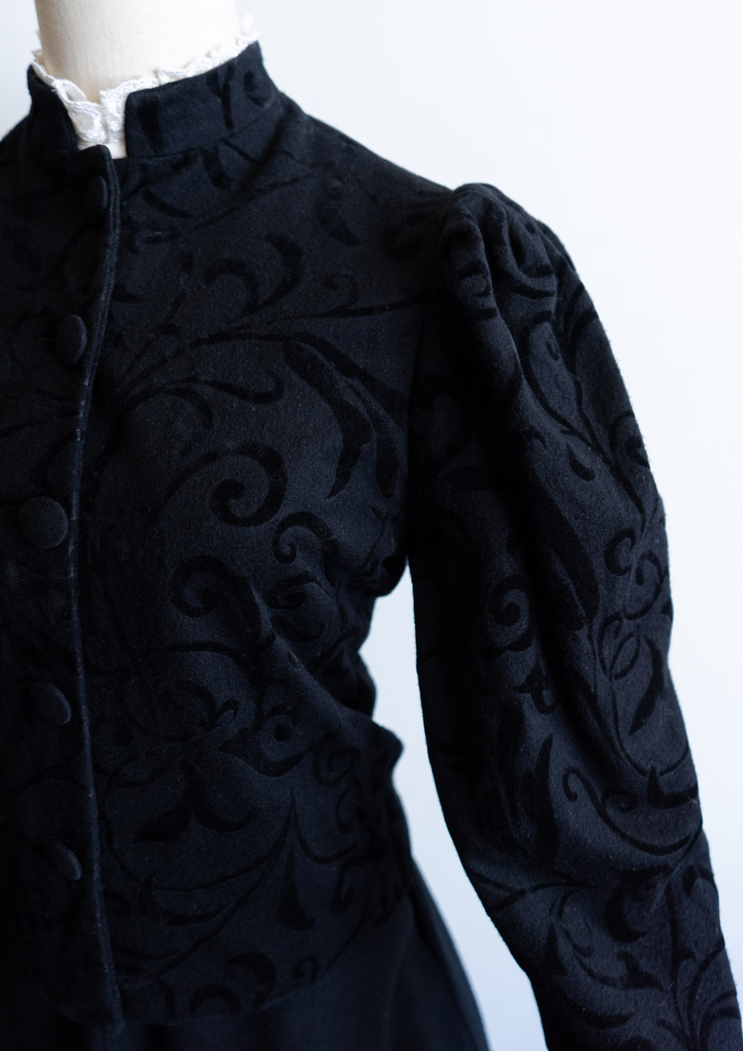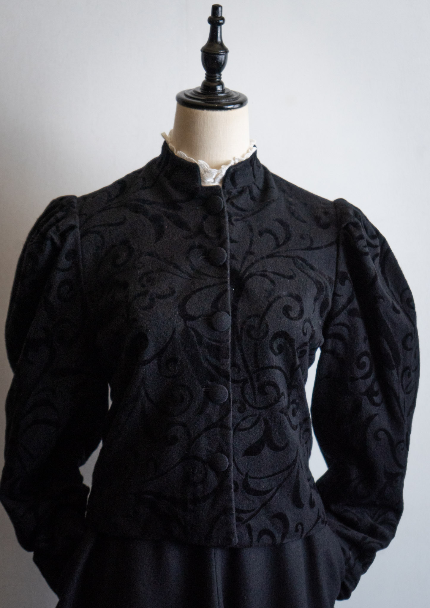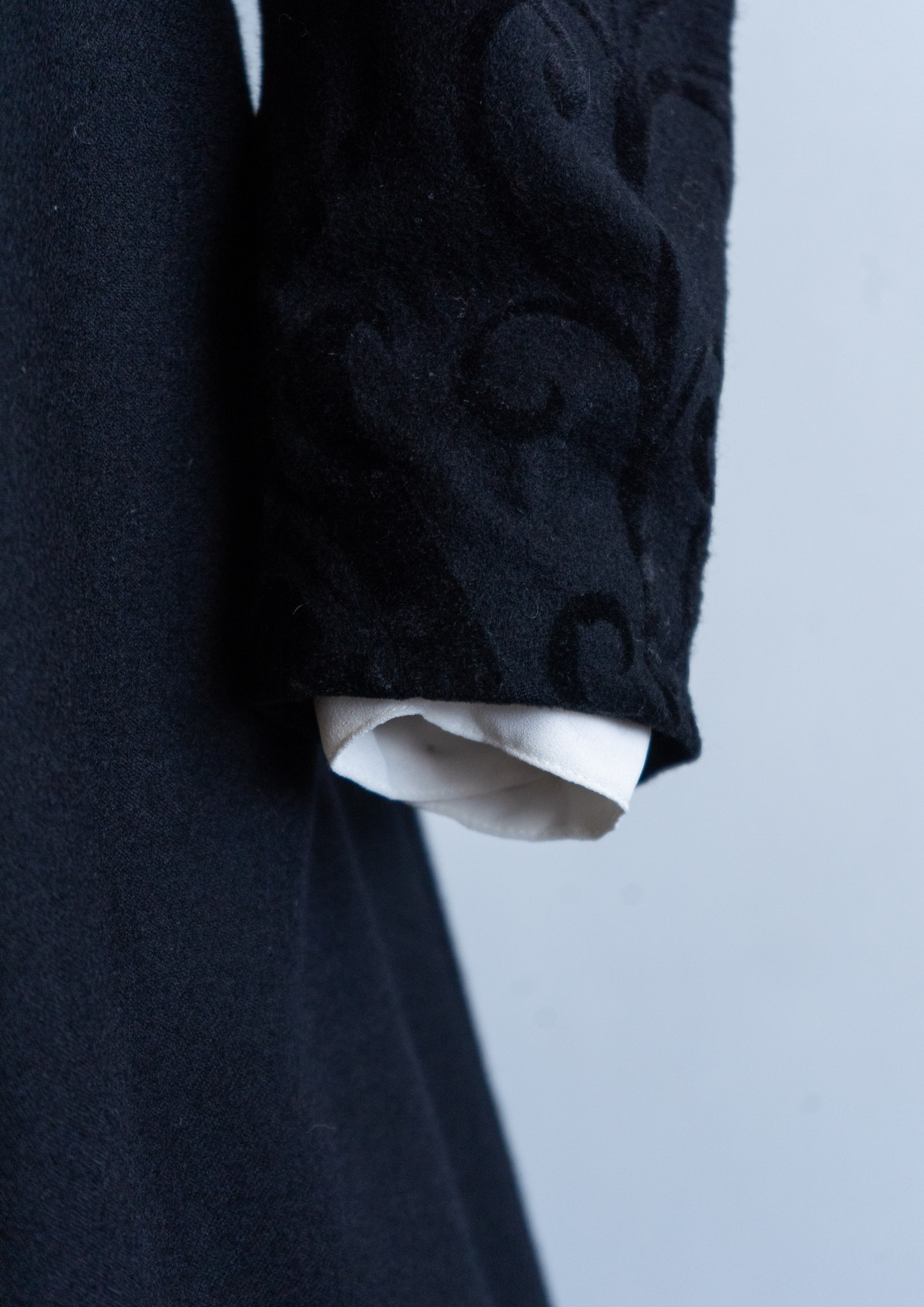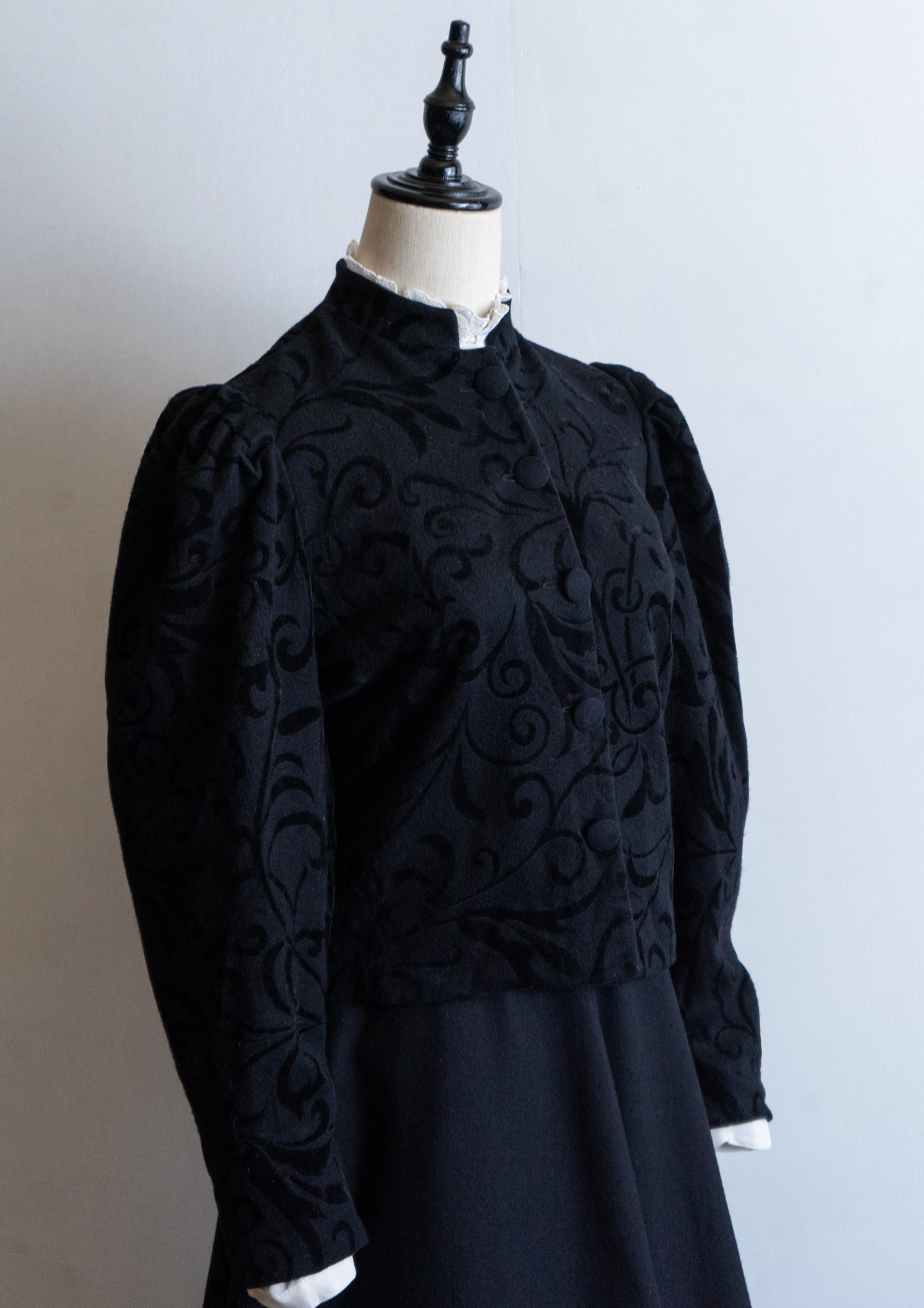 80's Euro Mustard Color Linning Black Wool Tailored Jacket