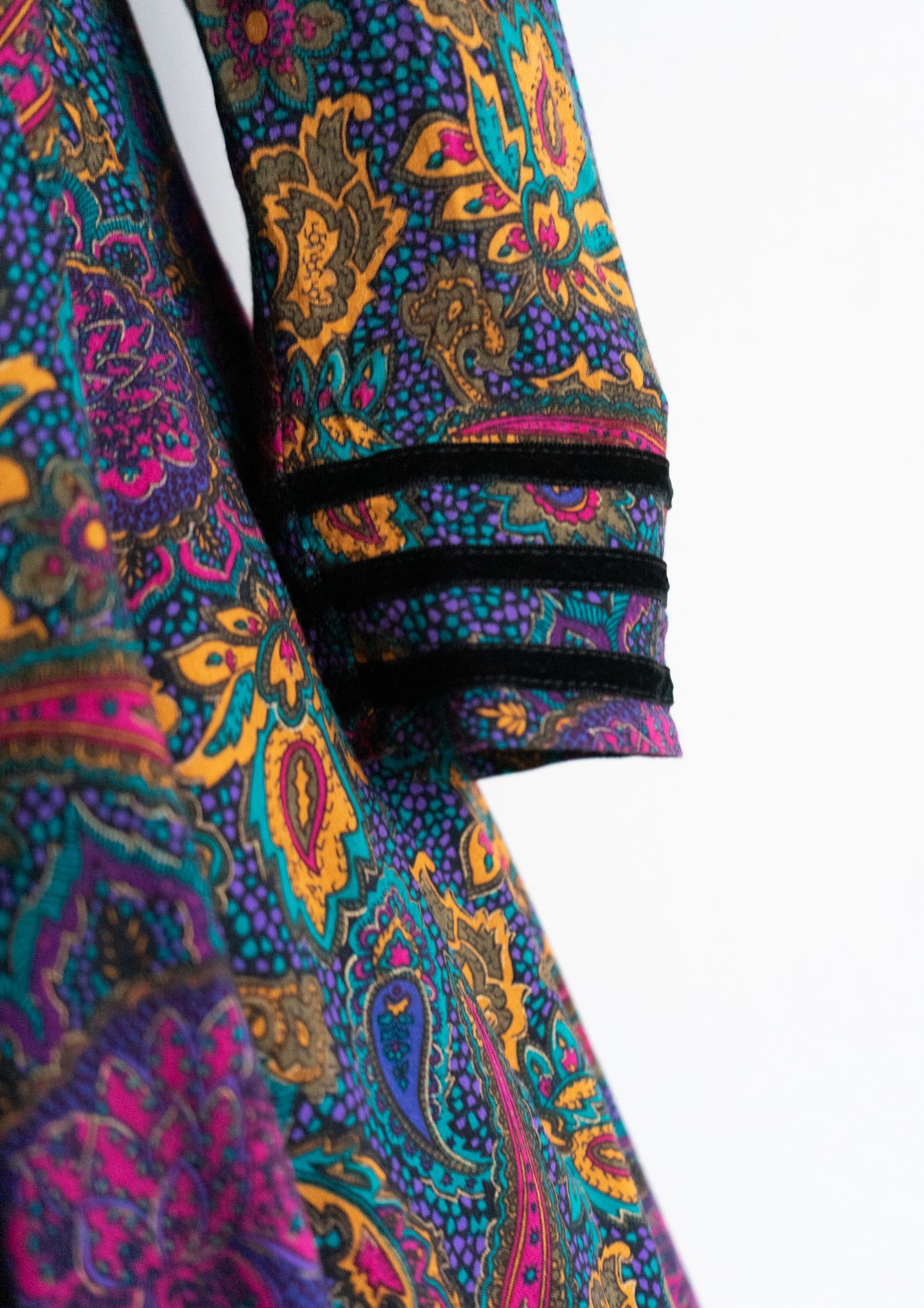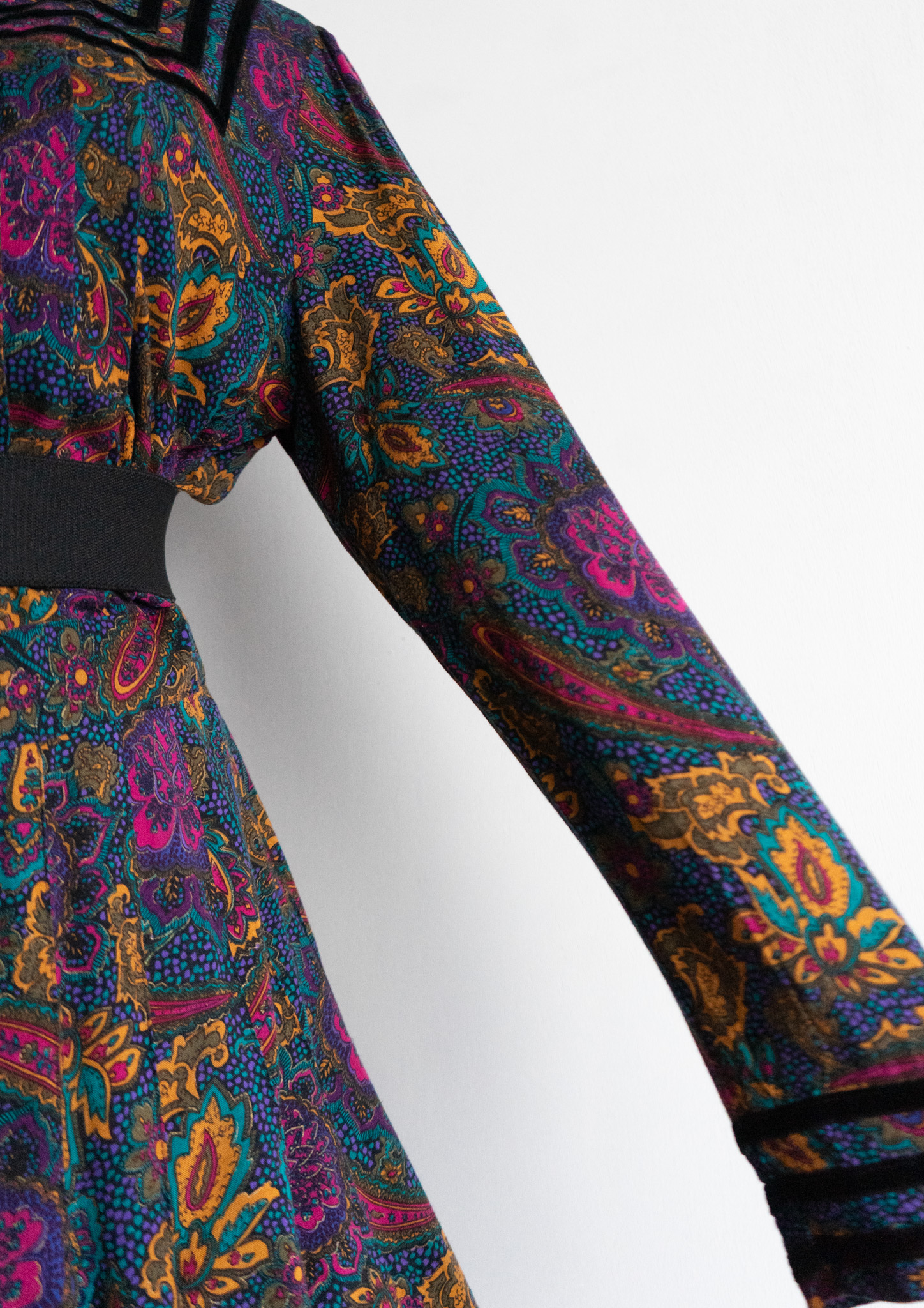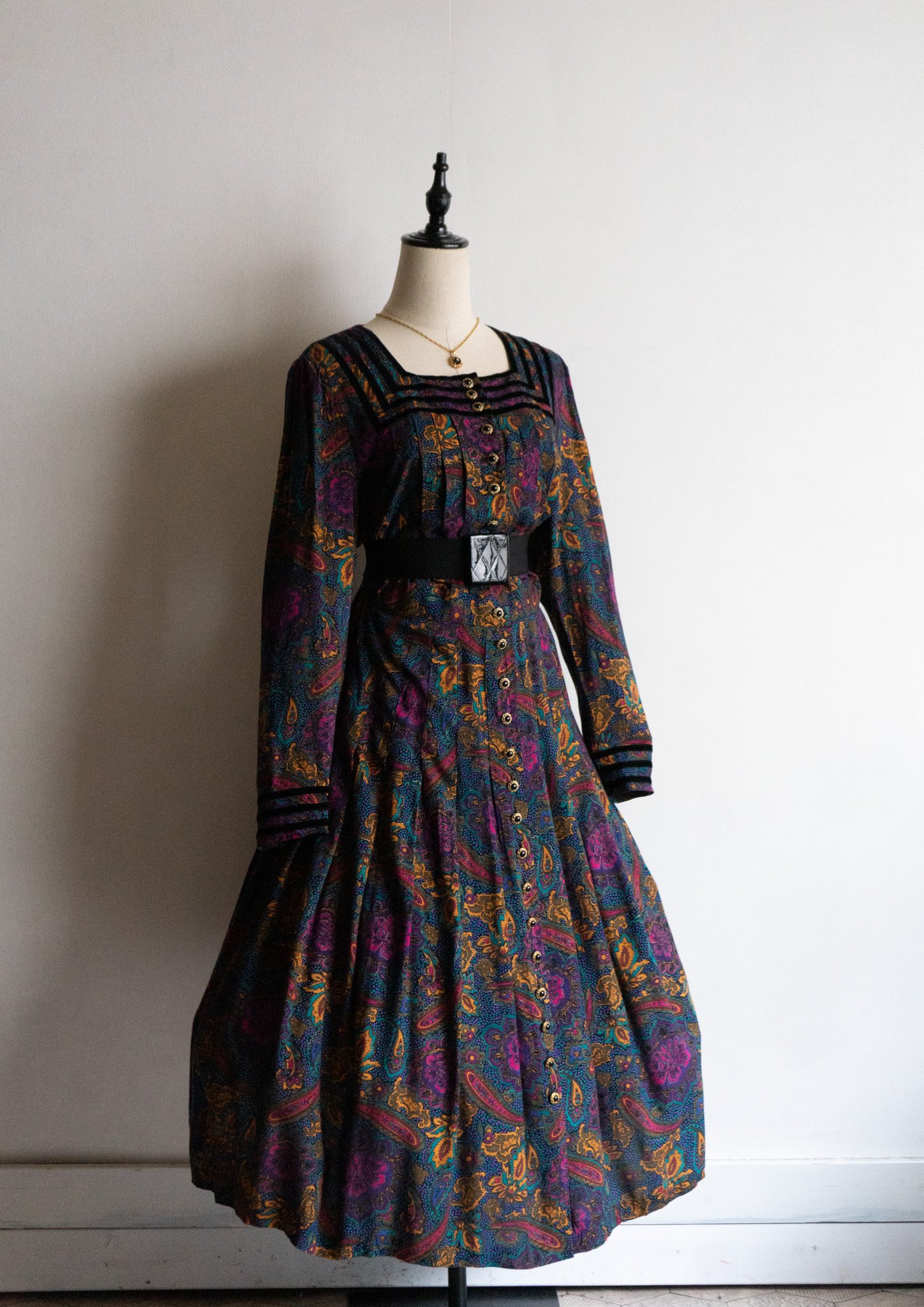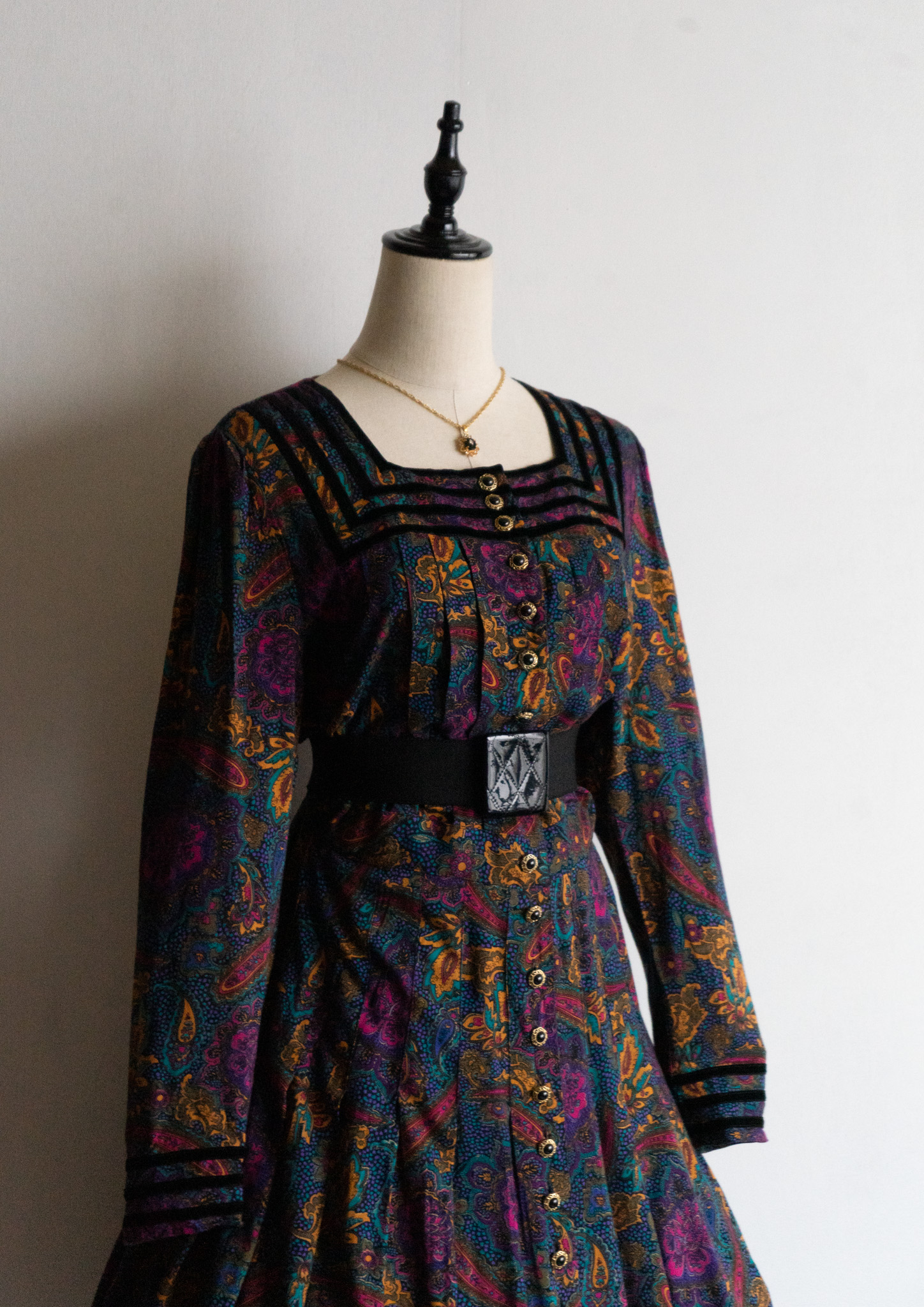 90's Point Black Velour Paisley Pattern Dress