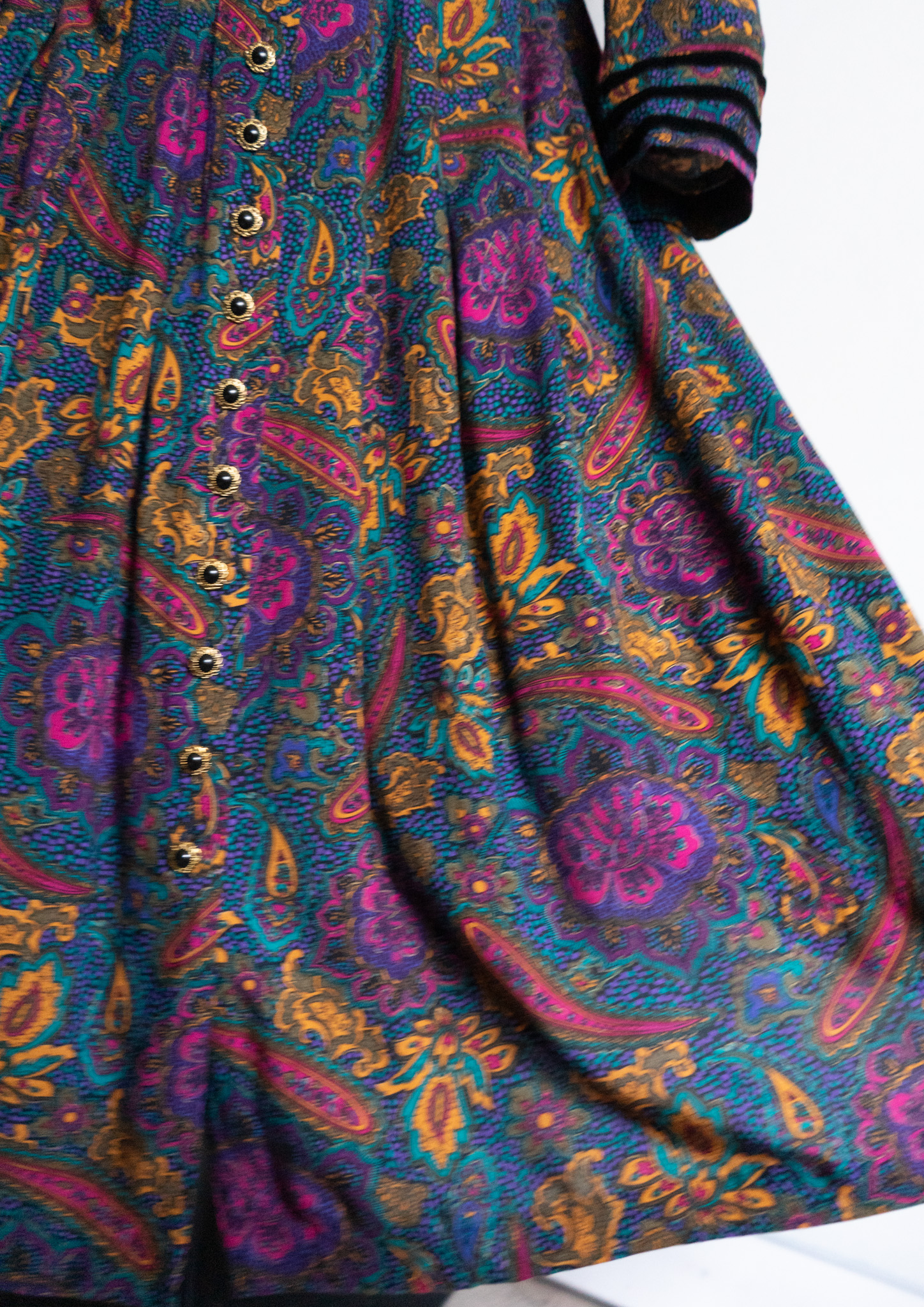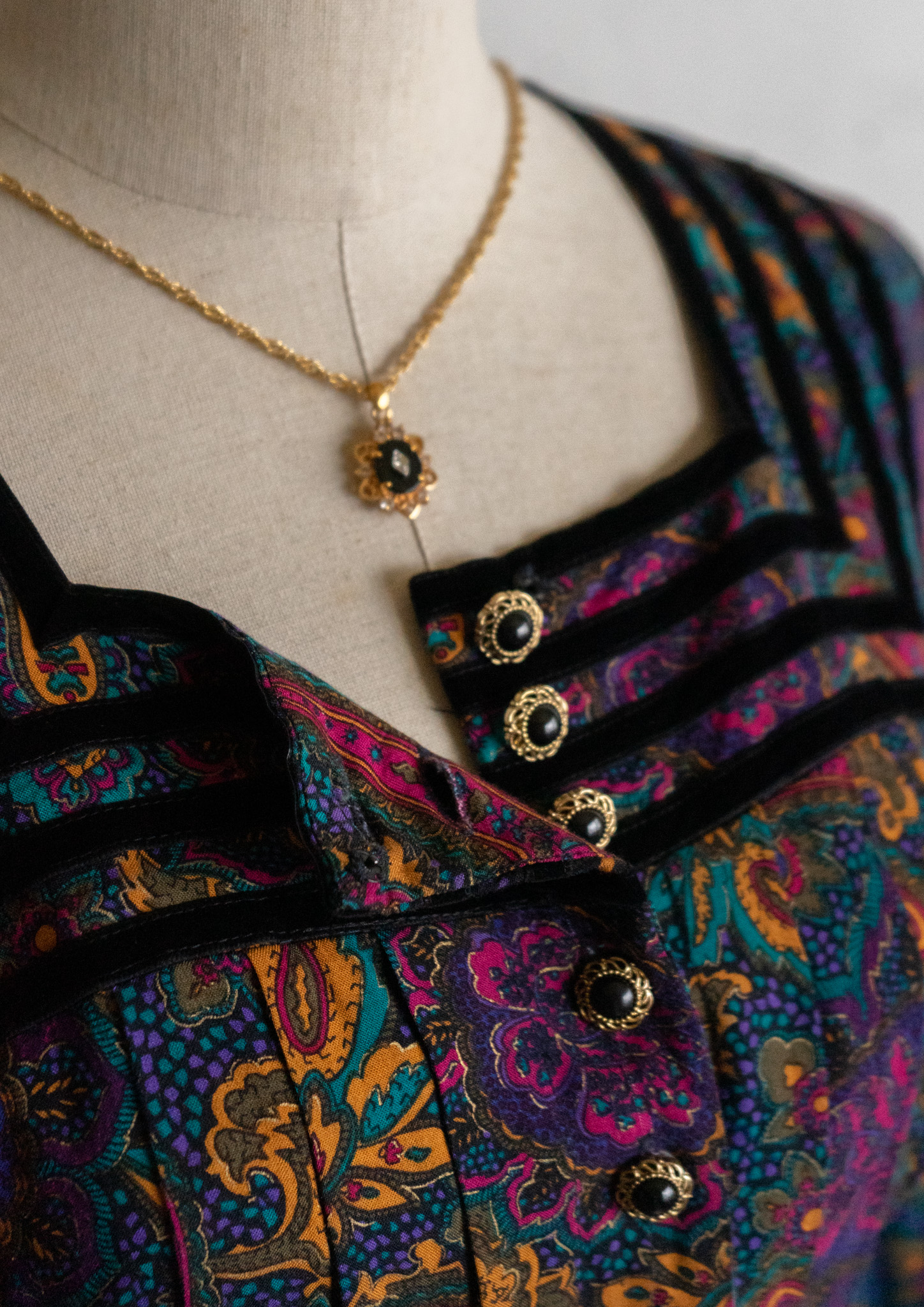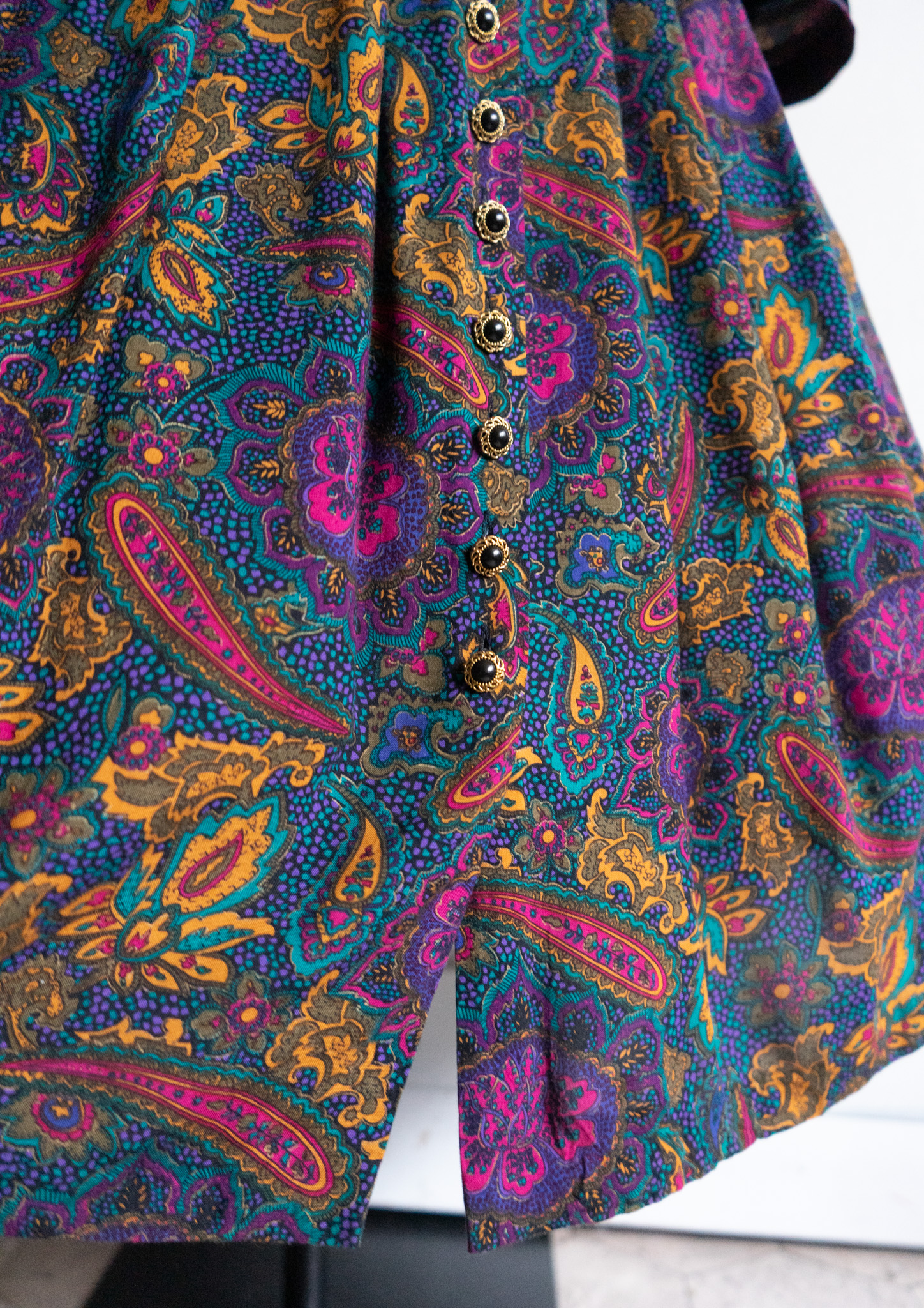 90's Point Black Velour Paisley Pattern Dress