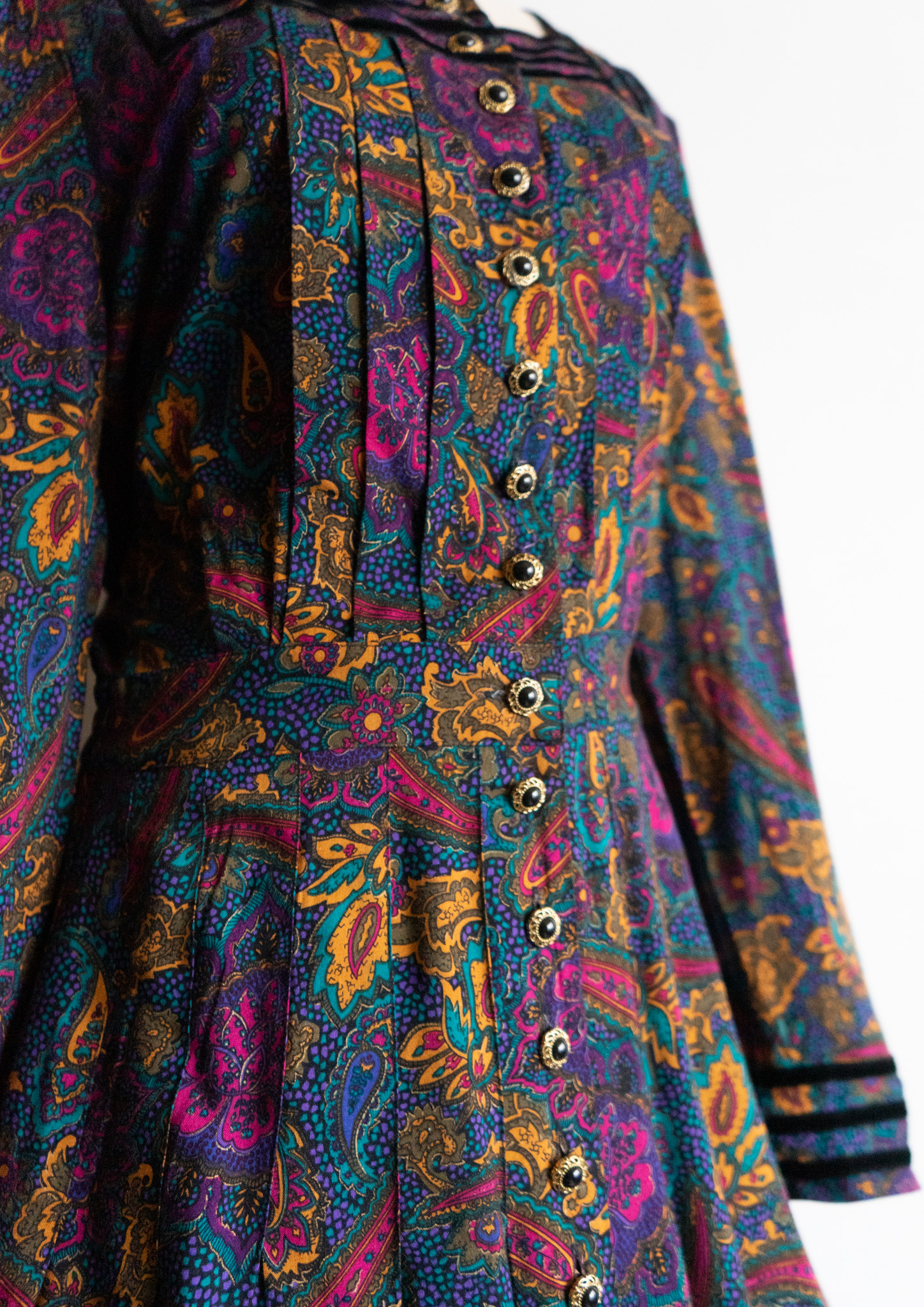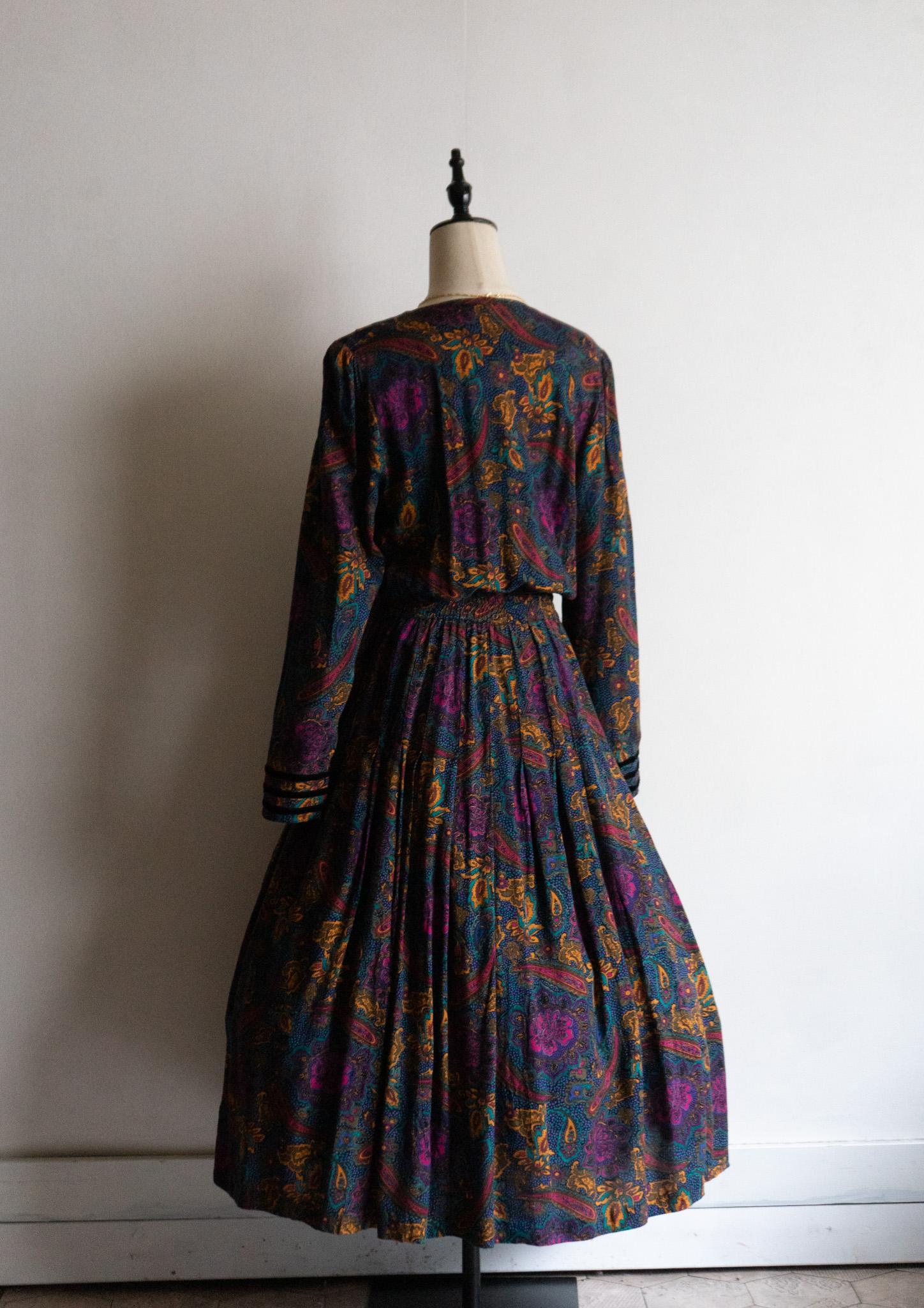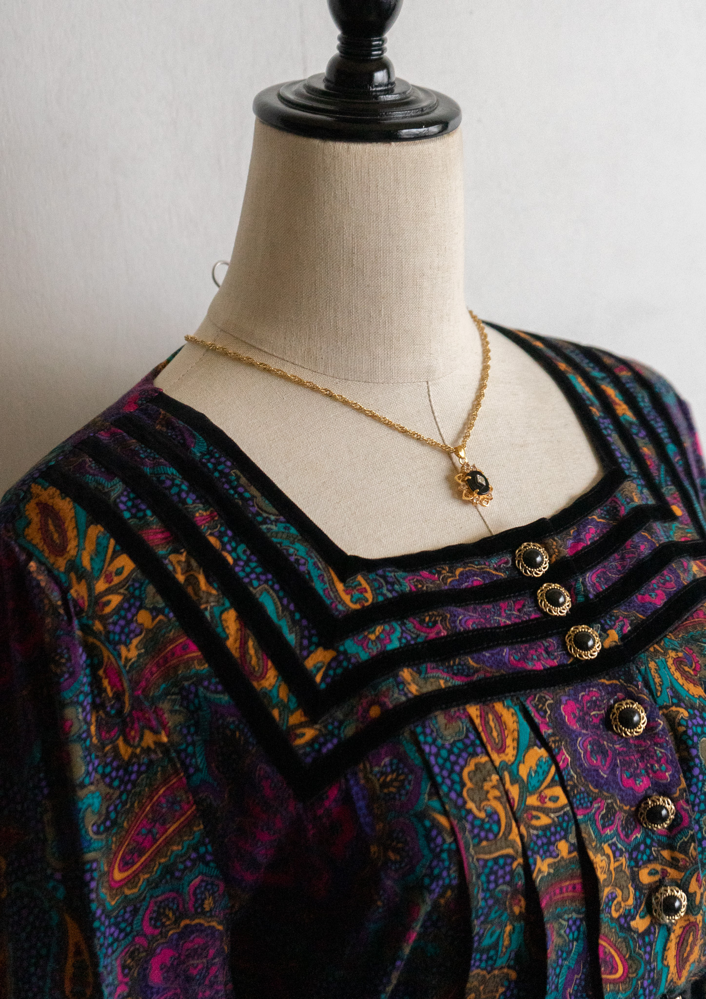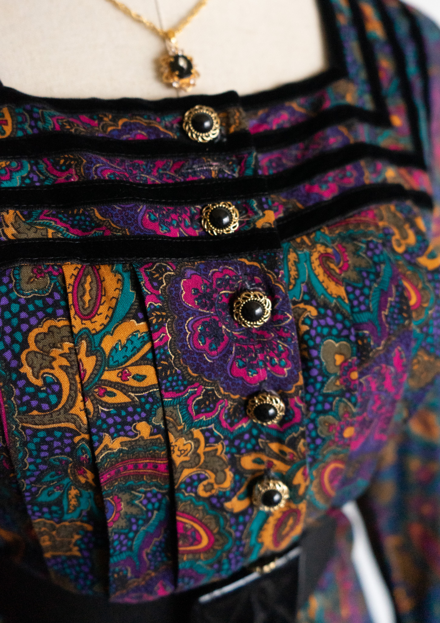 90's Point Black Velour Paisley Pattern Dress