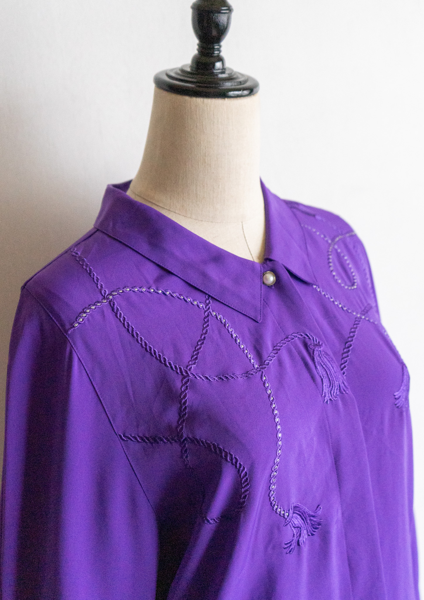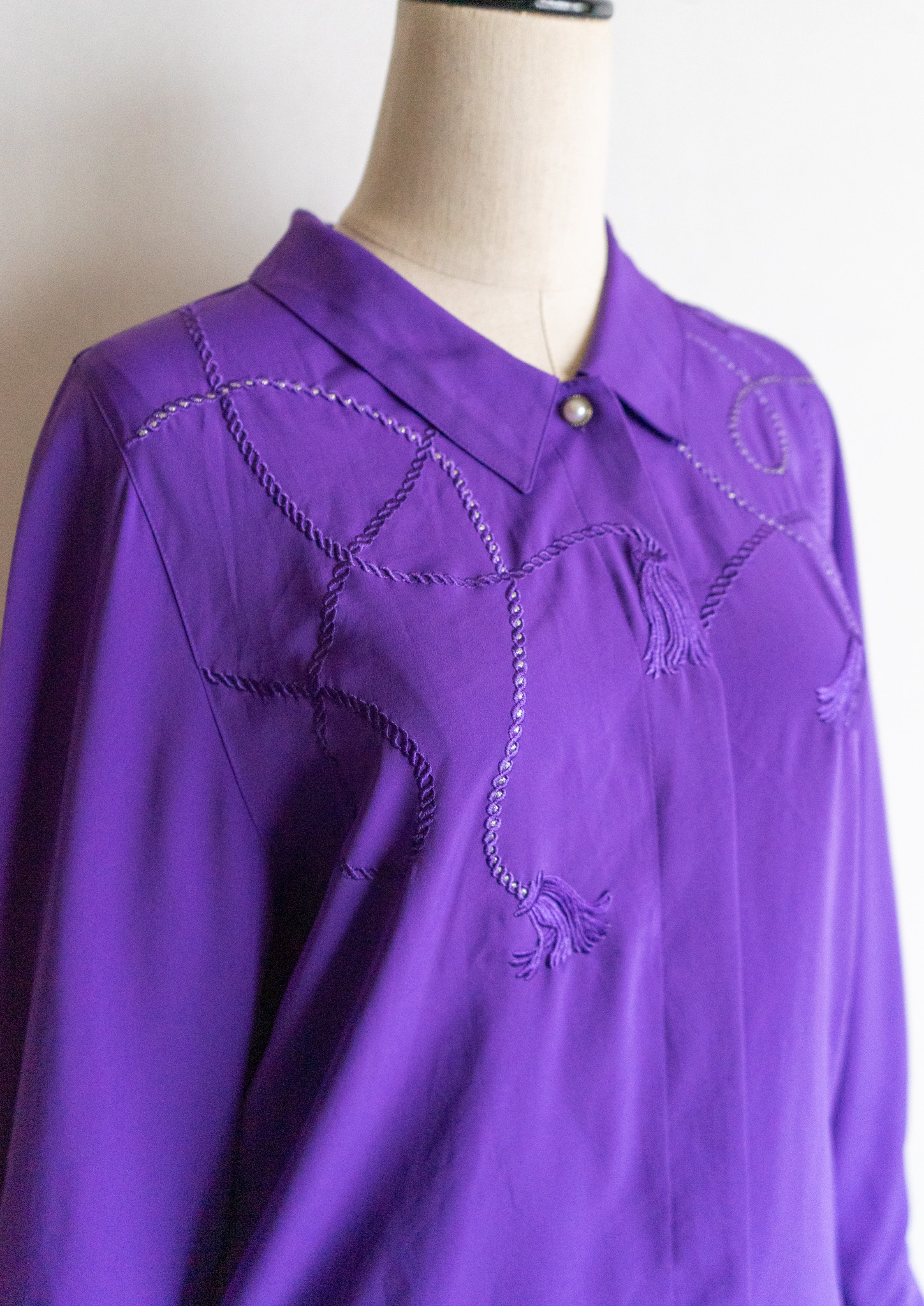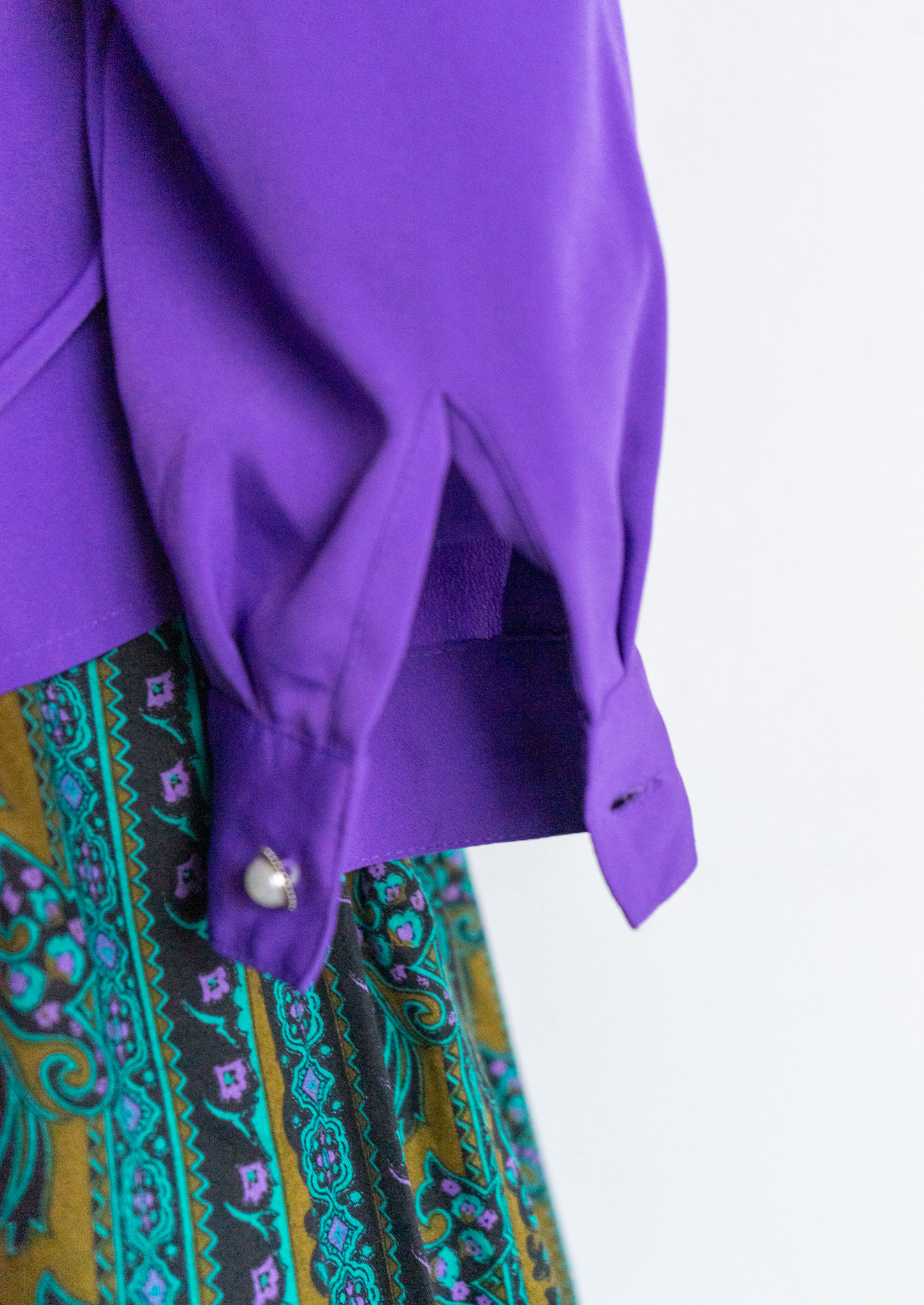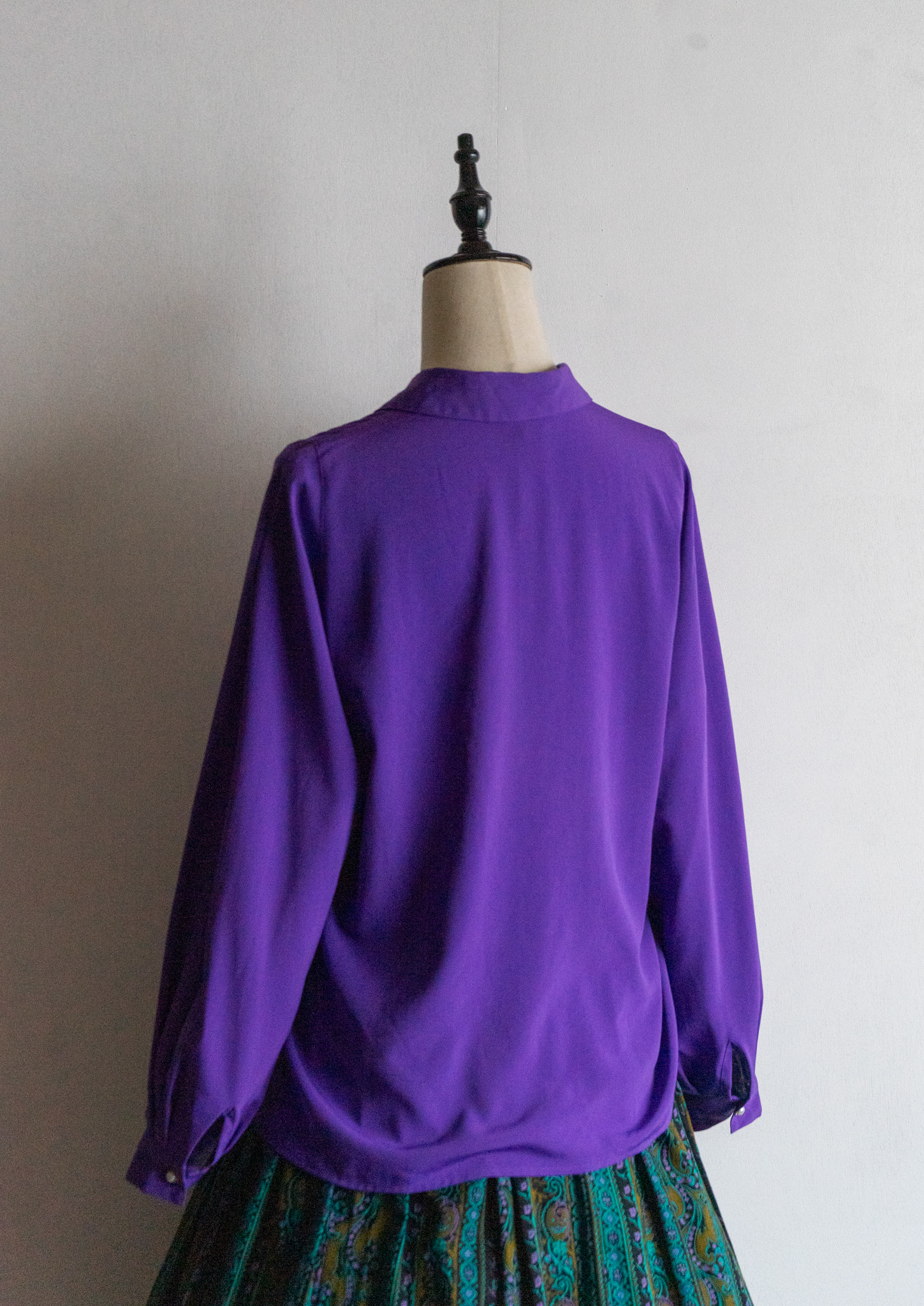 80's Tree Ring Pattern Frill Collar Purple Blouse