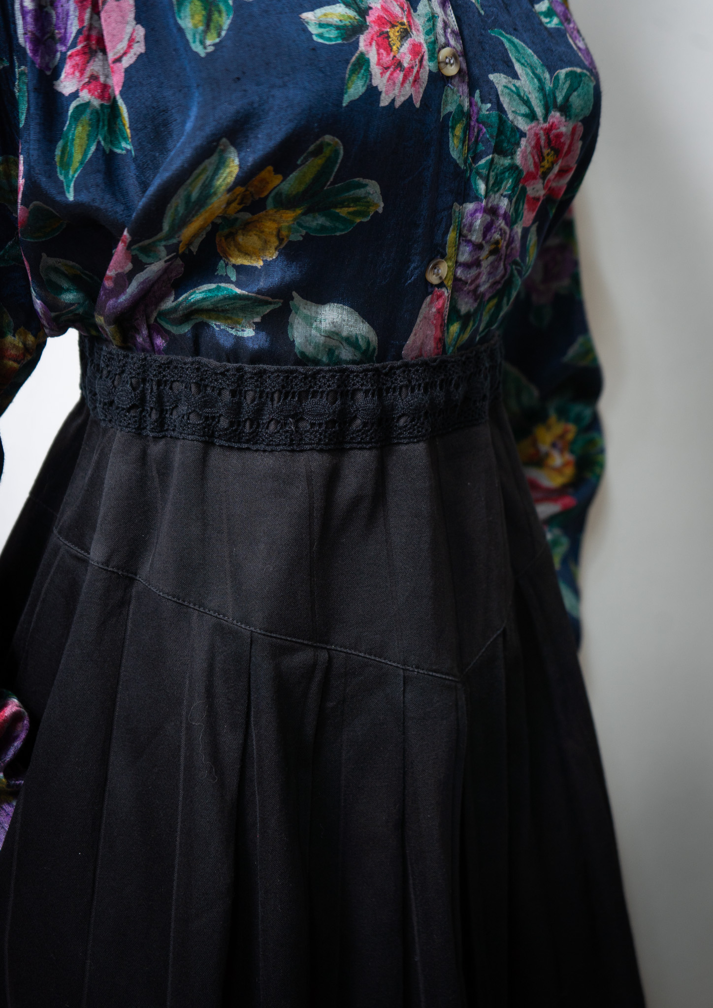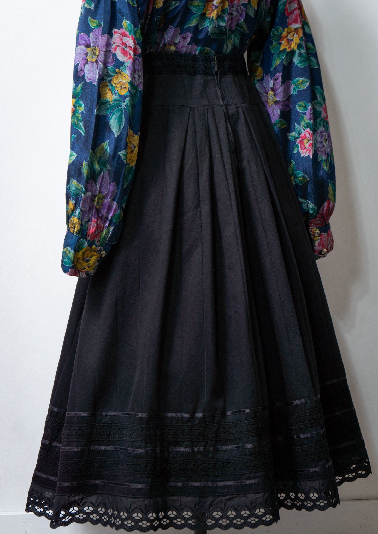 80~90's W.Germany Cotton Lace Design Black Tyrol Skirt
