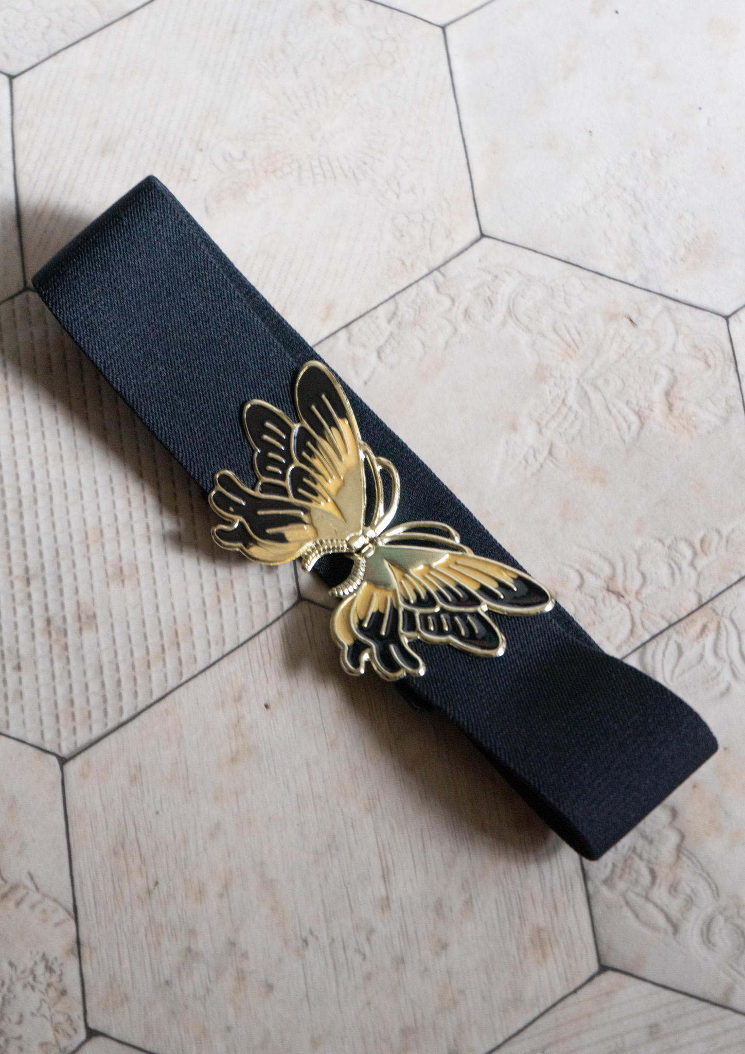 80~90's Butterfly Buckle Black Rubber Belt
