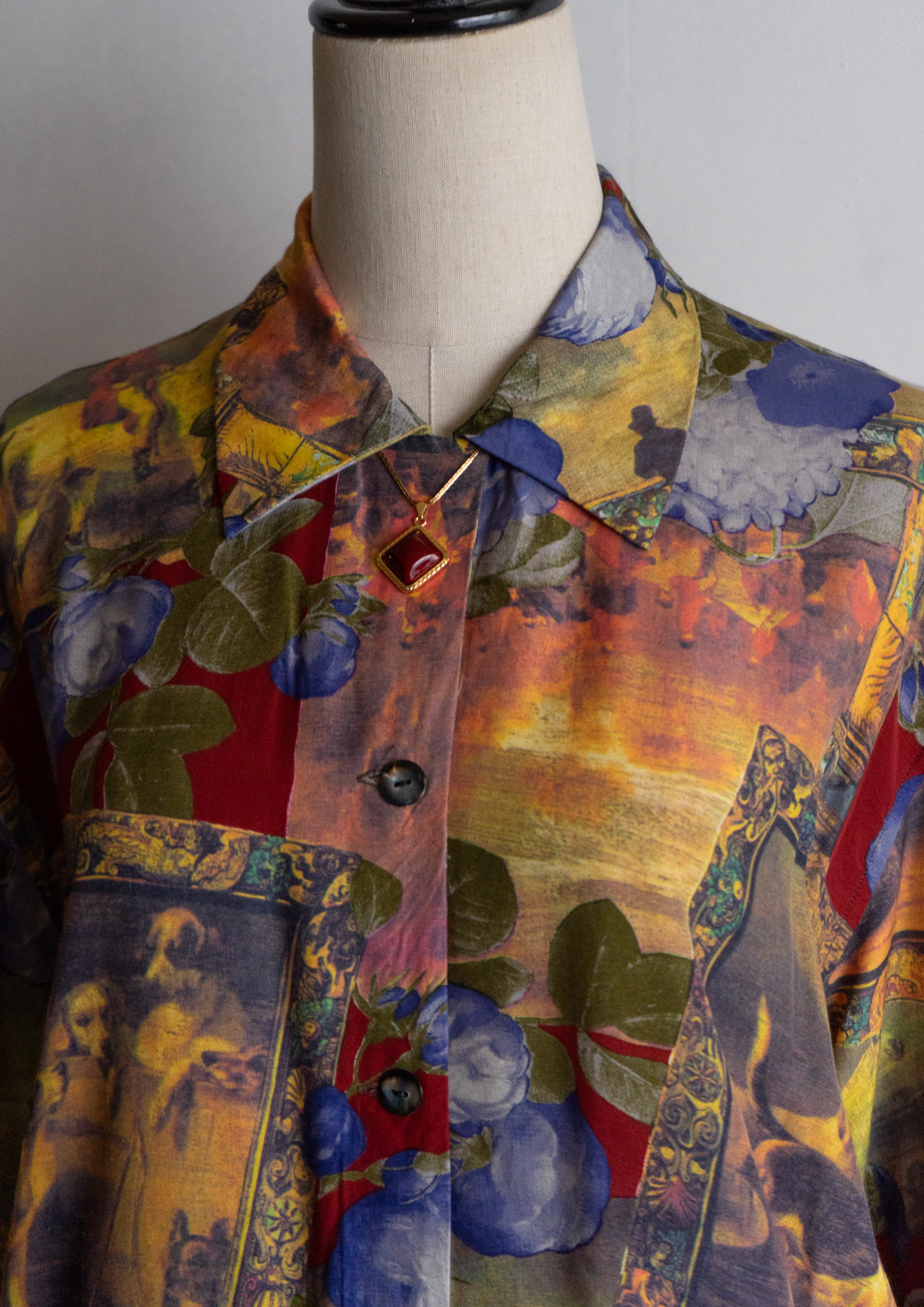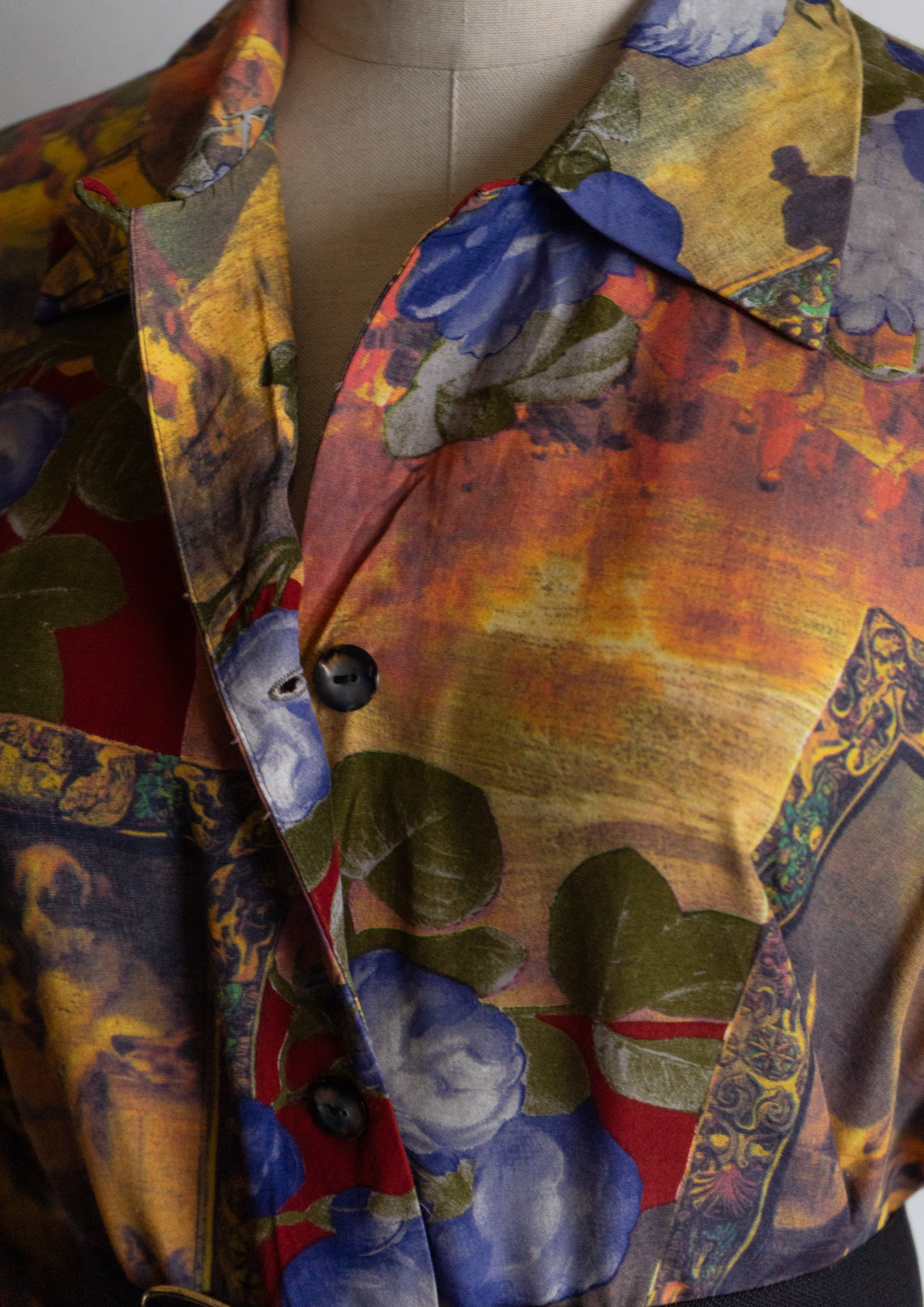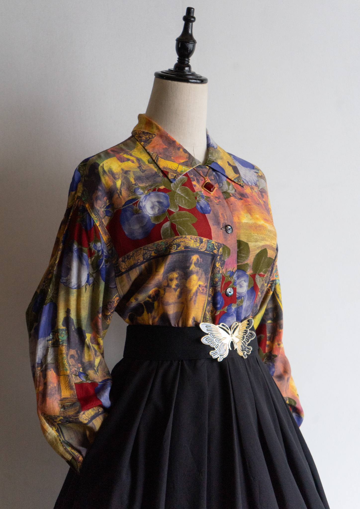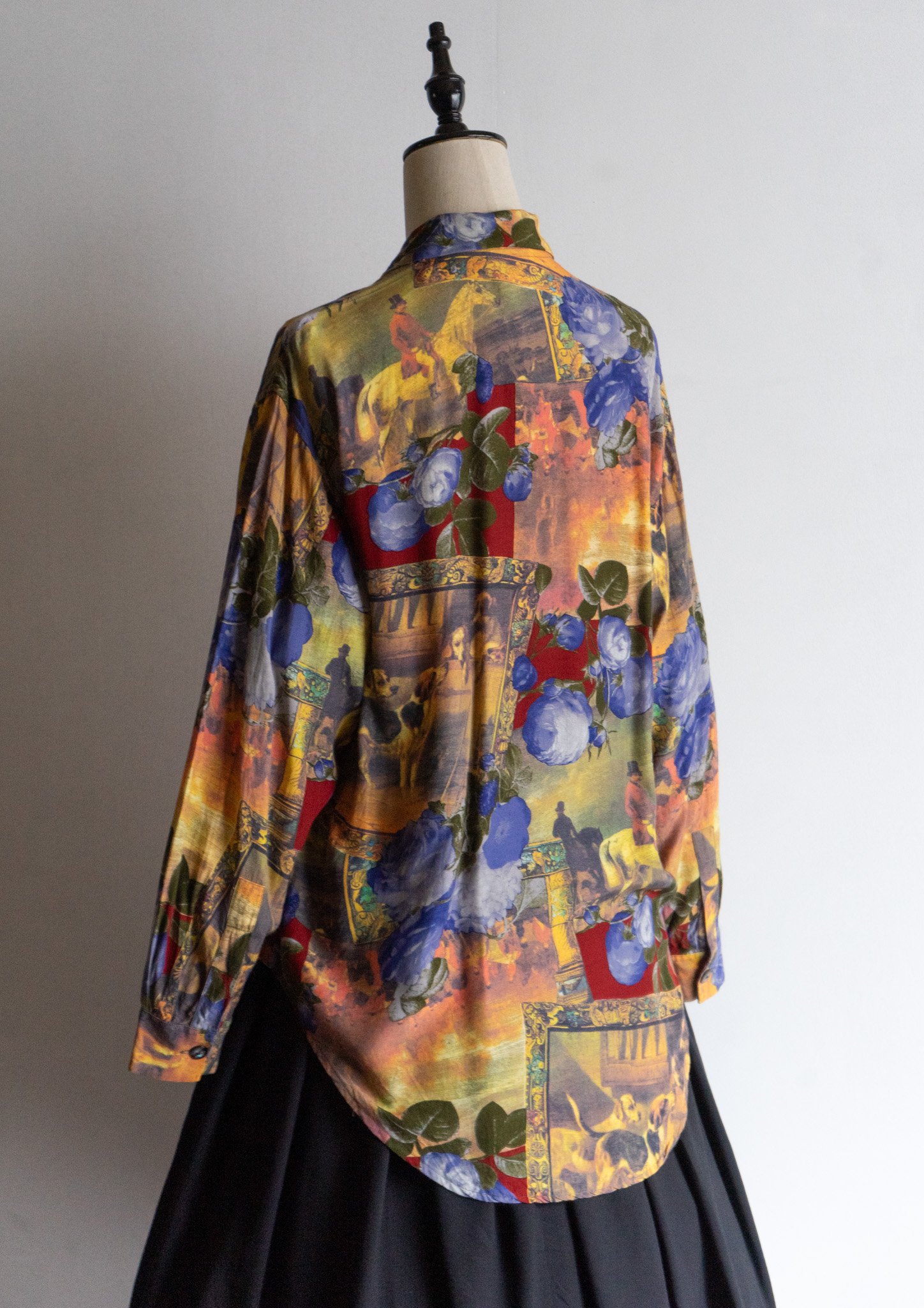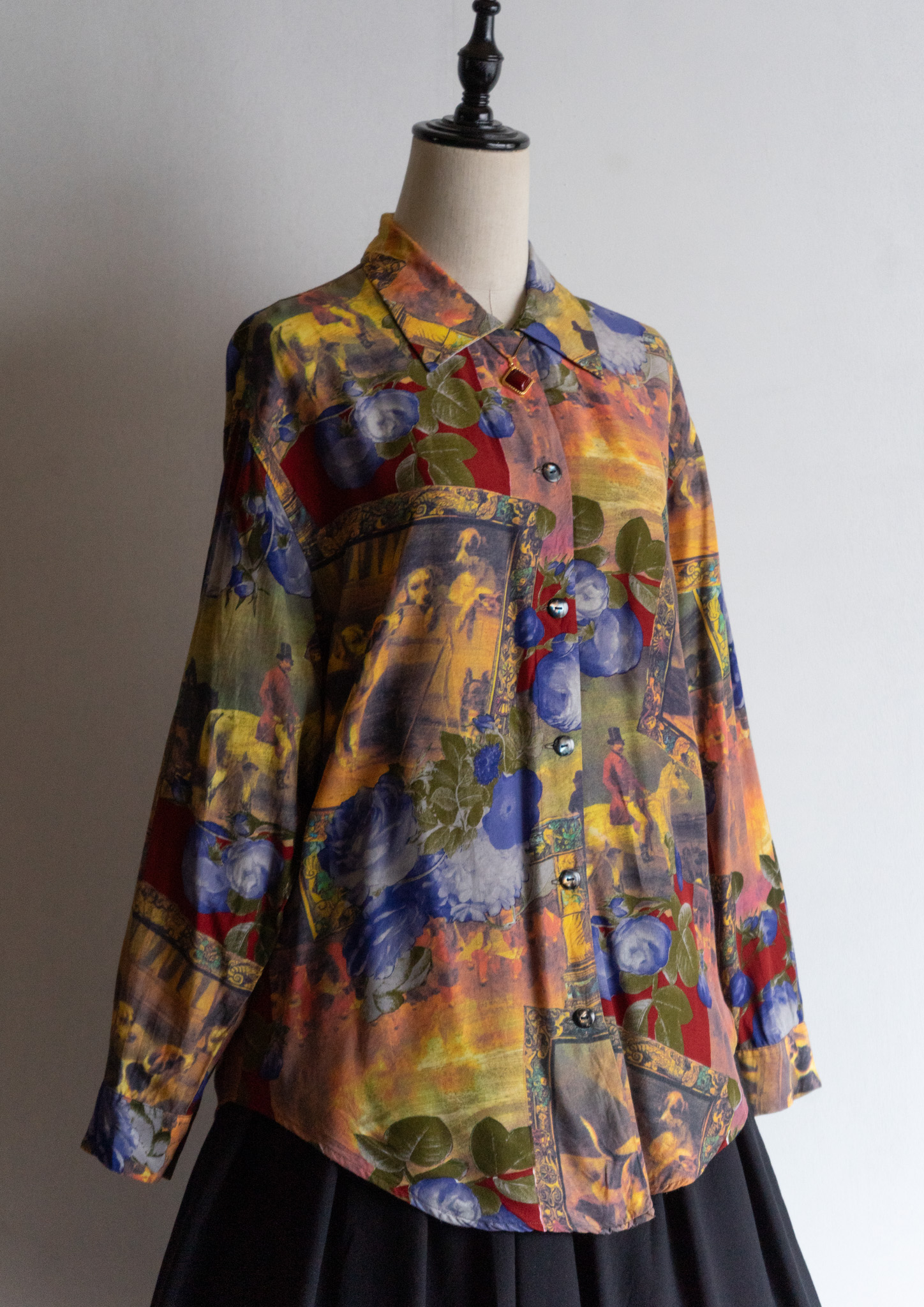 90's Stained glass Like Art Pattern Autumn Color Blouse