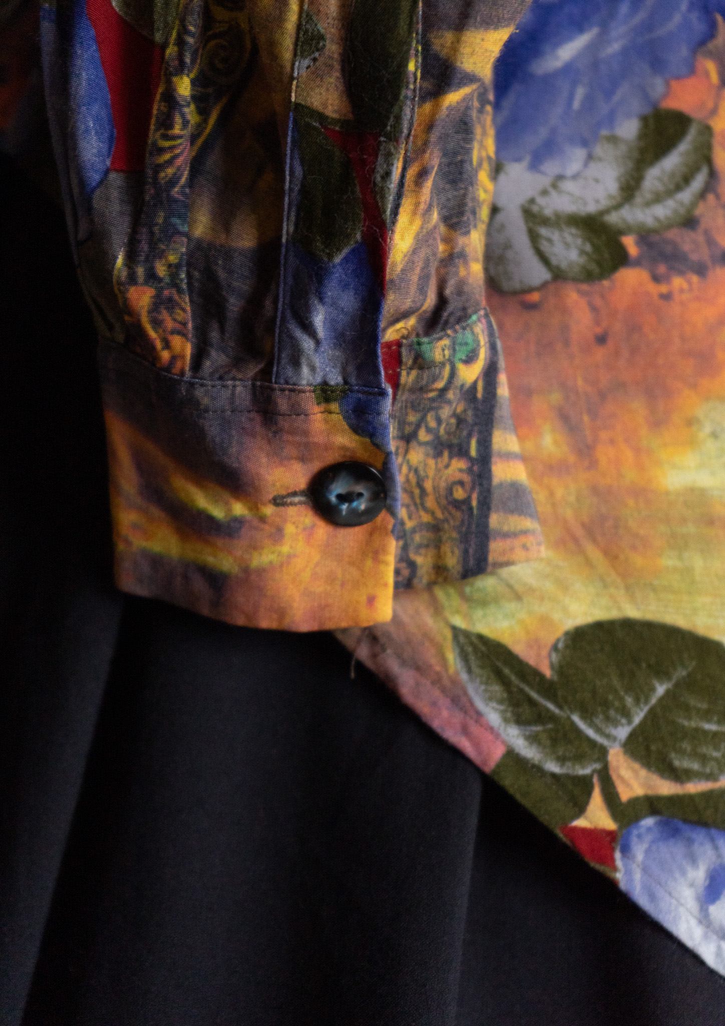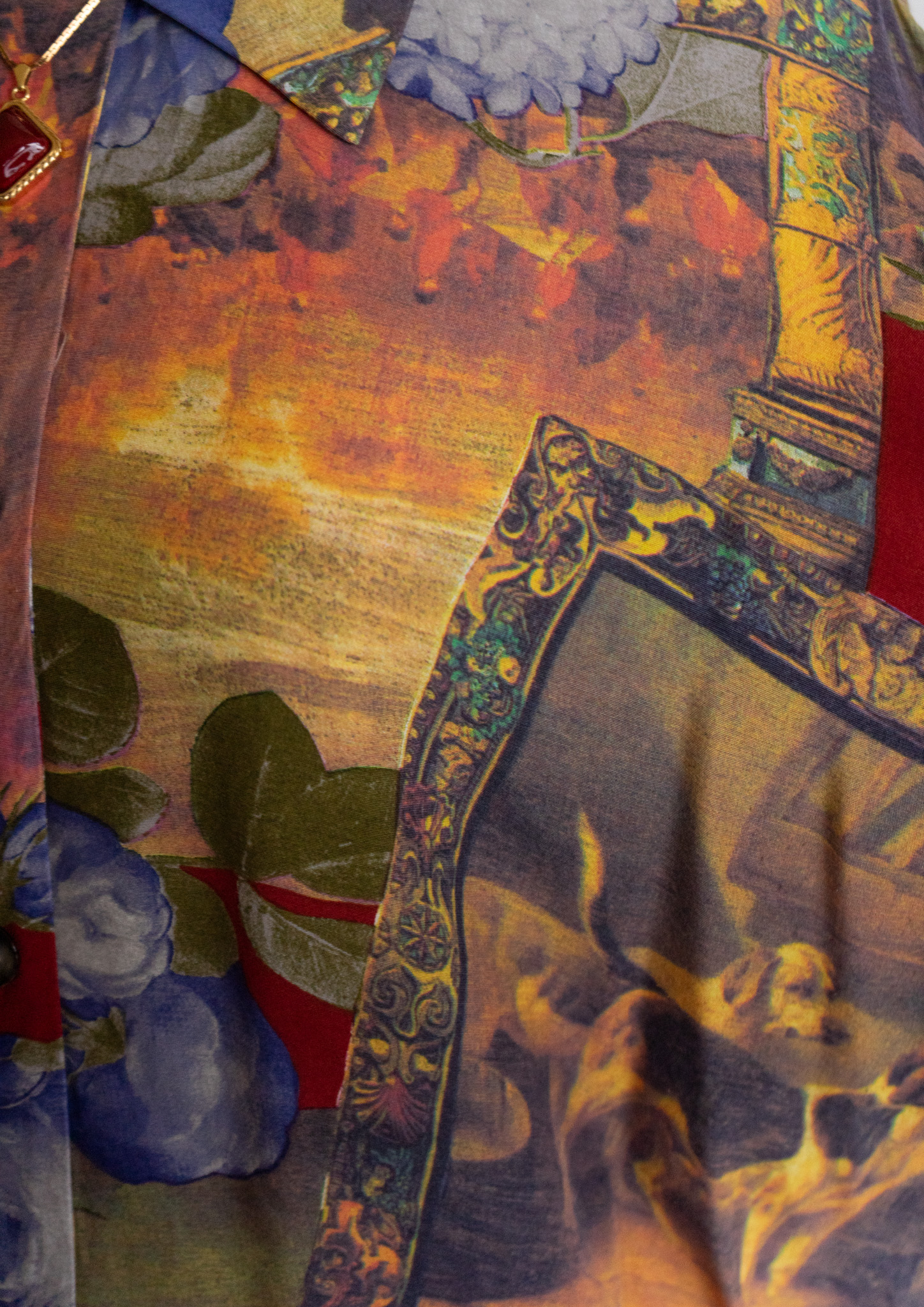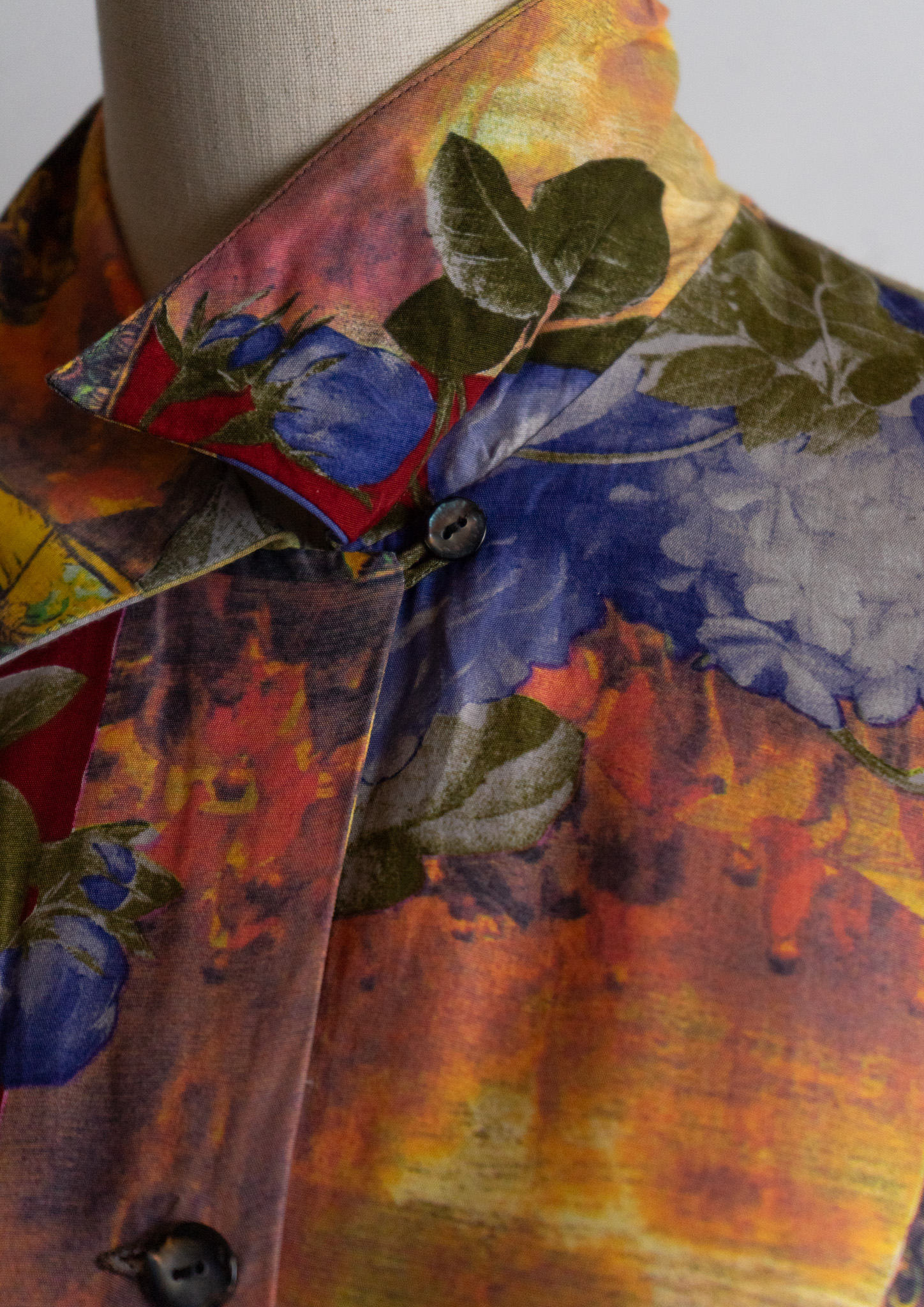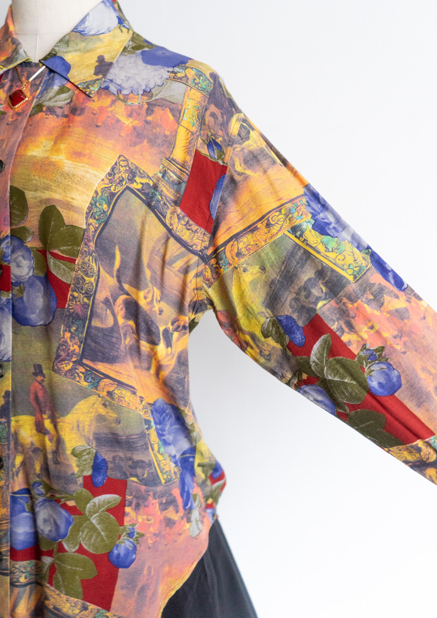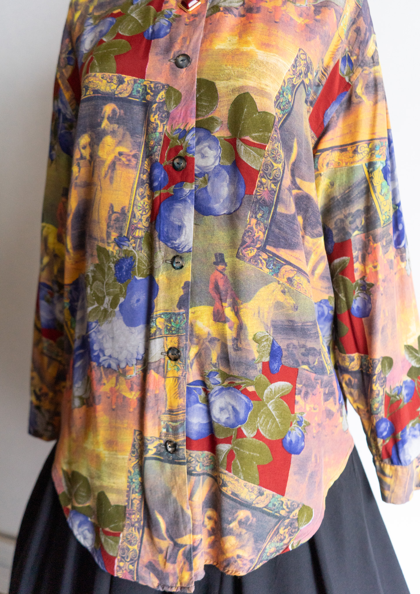 90's Stained glass Like Art Pattern Autumn Color Blouse