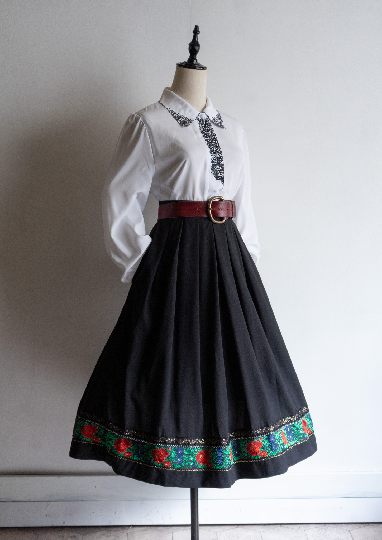 90's Stripe × Small Flower Pattern Navy Tyrol Skirt