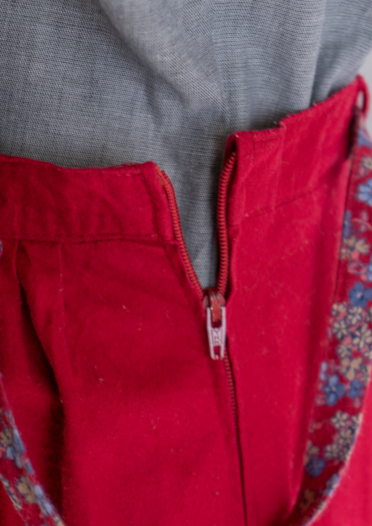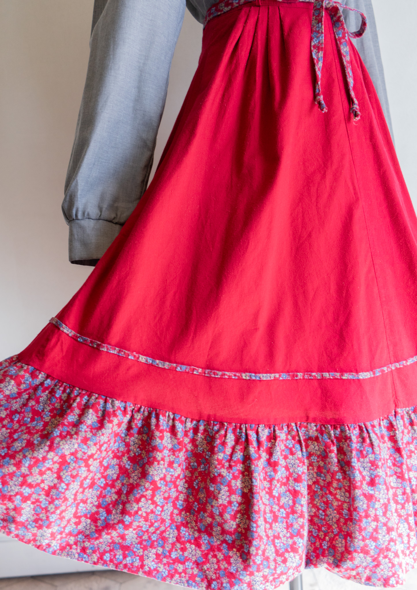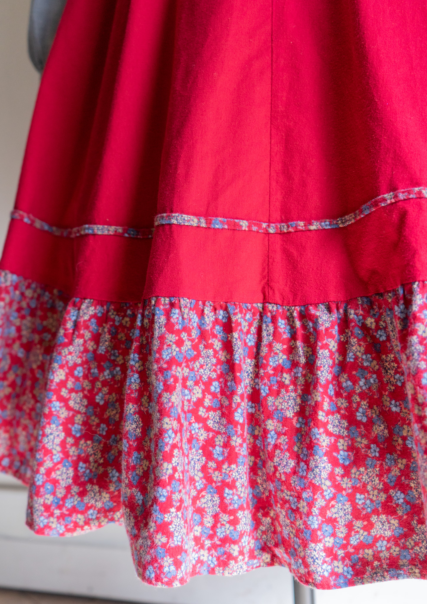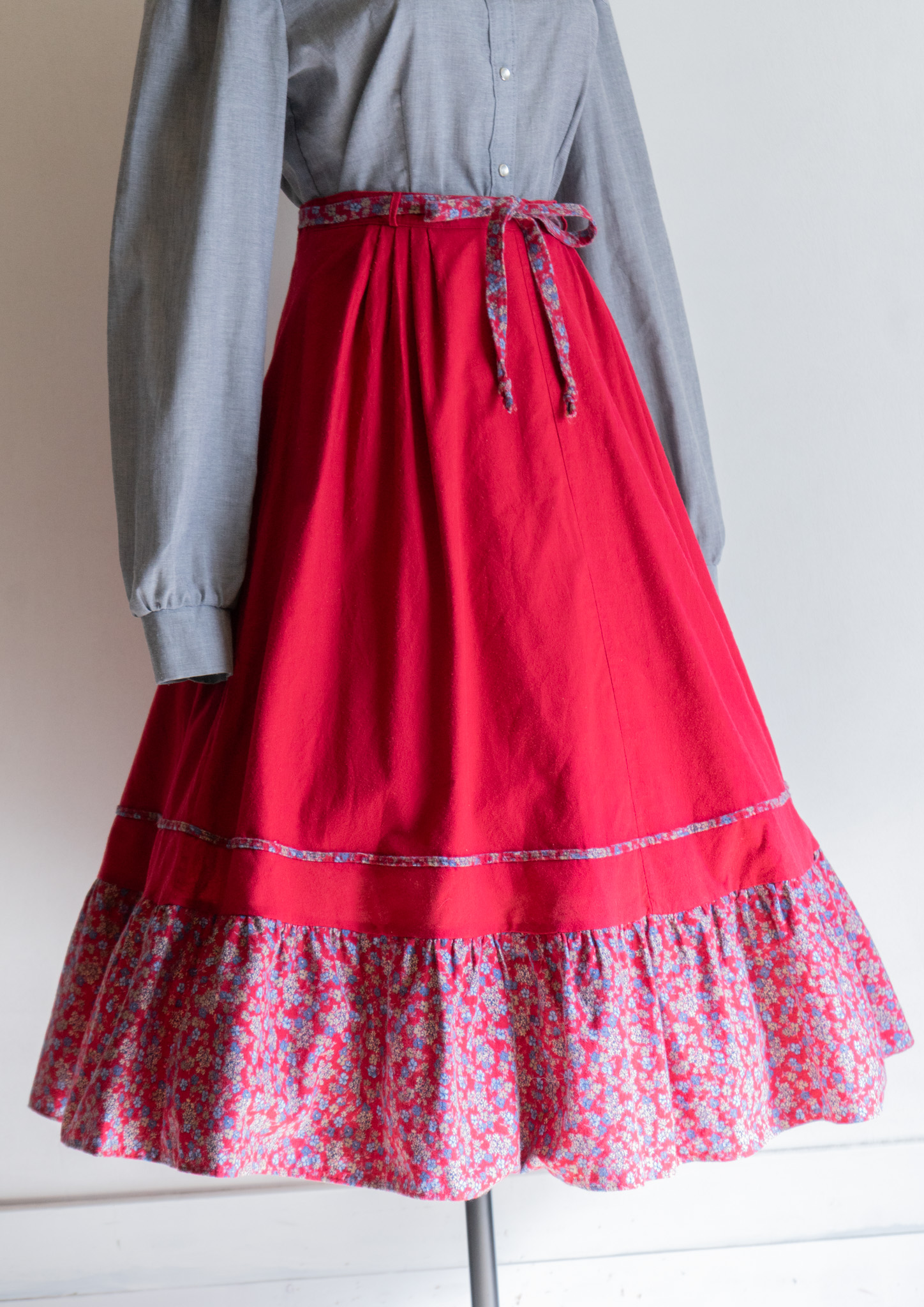 90's Red × Black Multi Stripe Pattern Tyrol Skirt