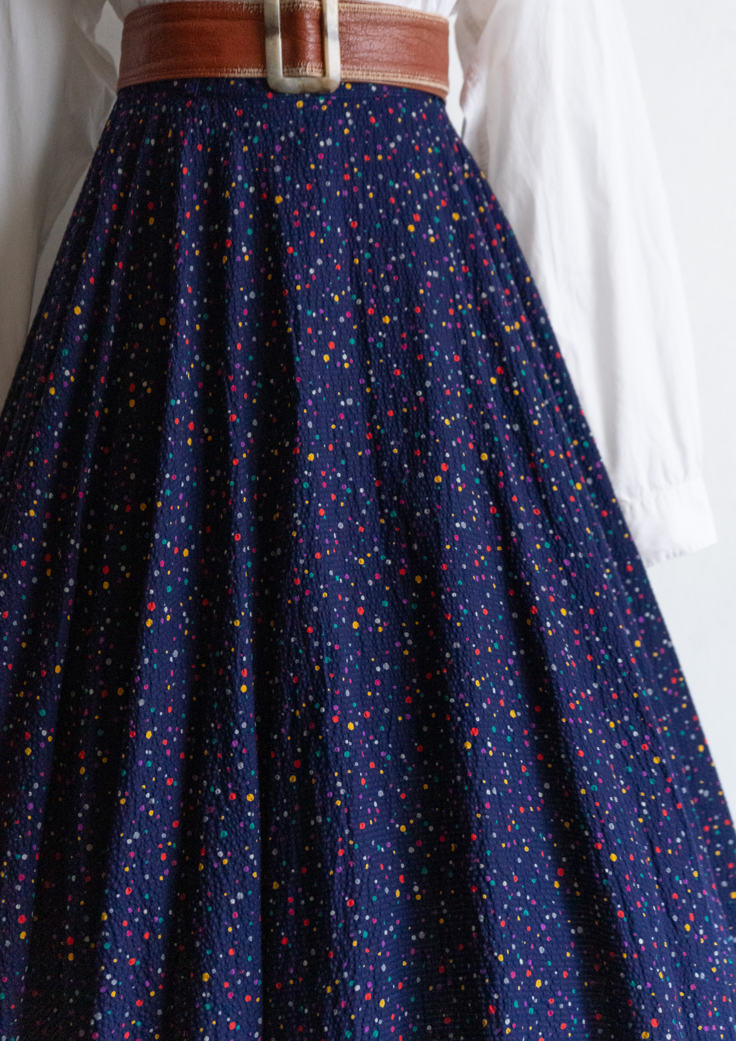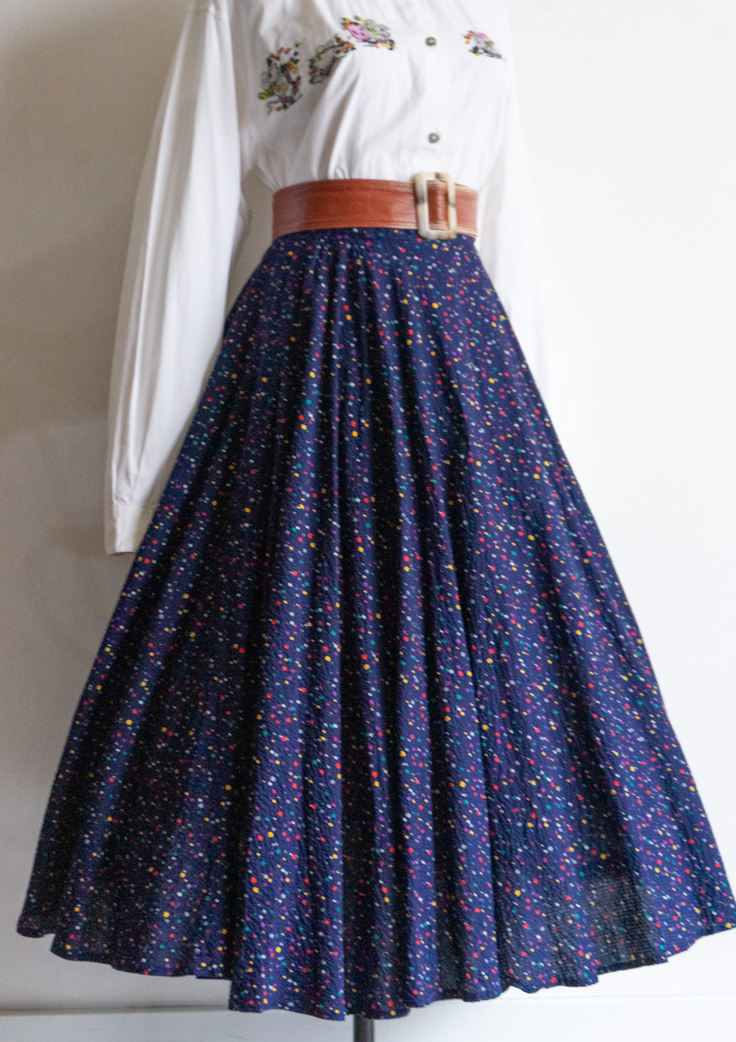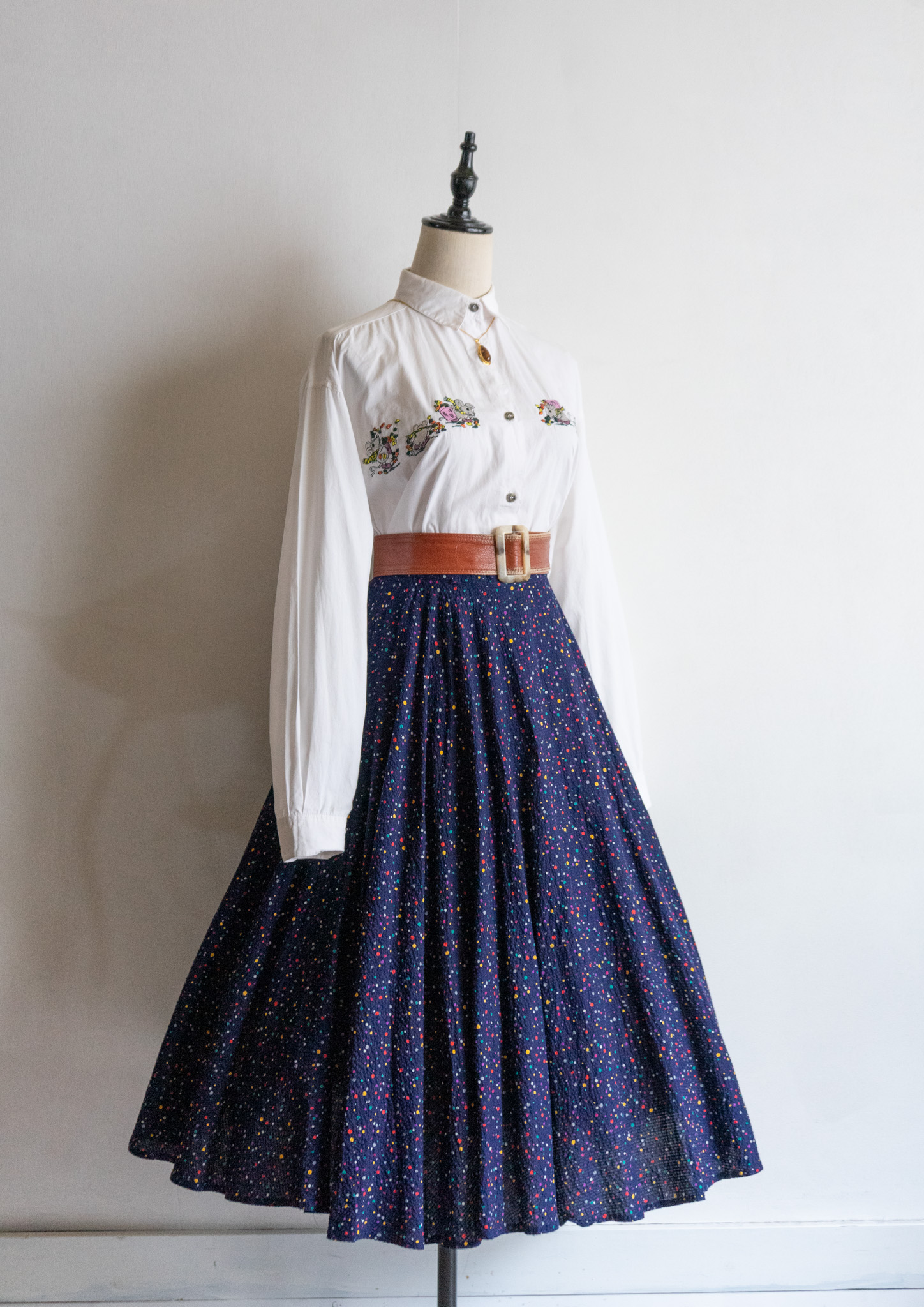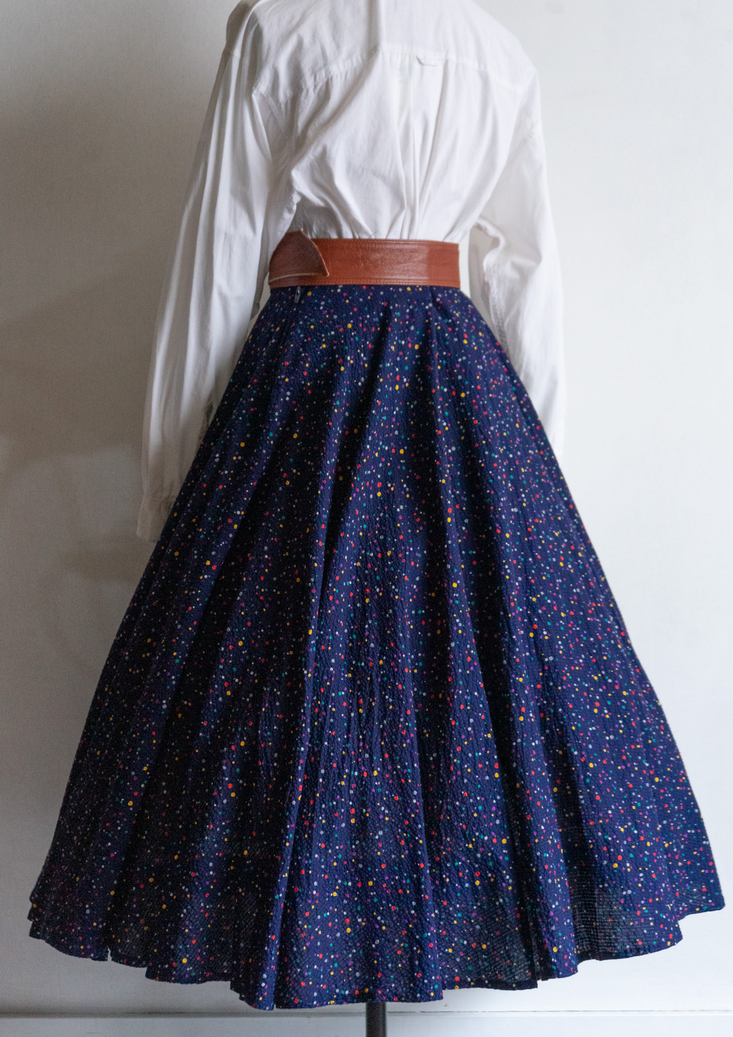 90's Stripe × Small Flower Pattern Navy Tyrol Skirt