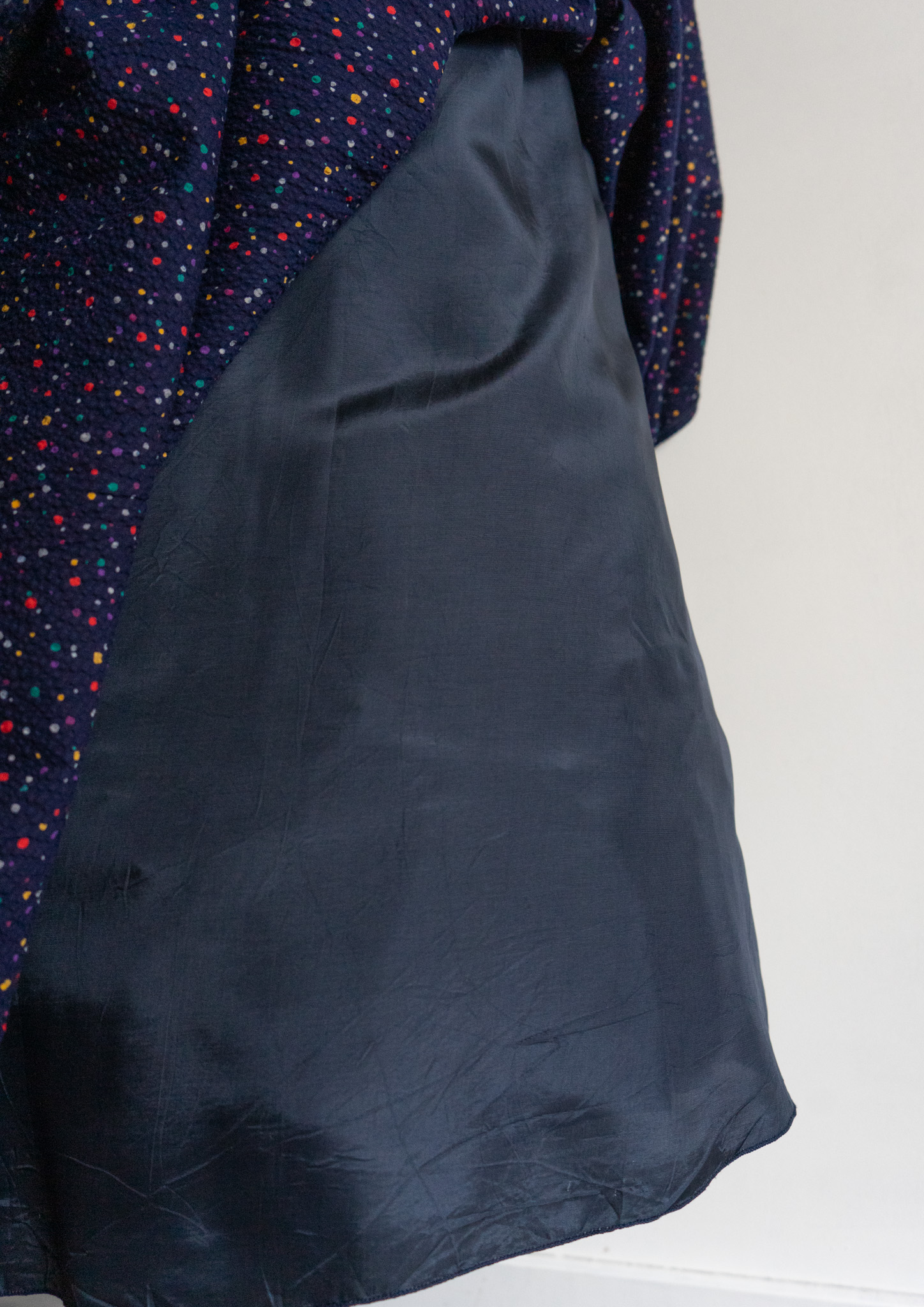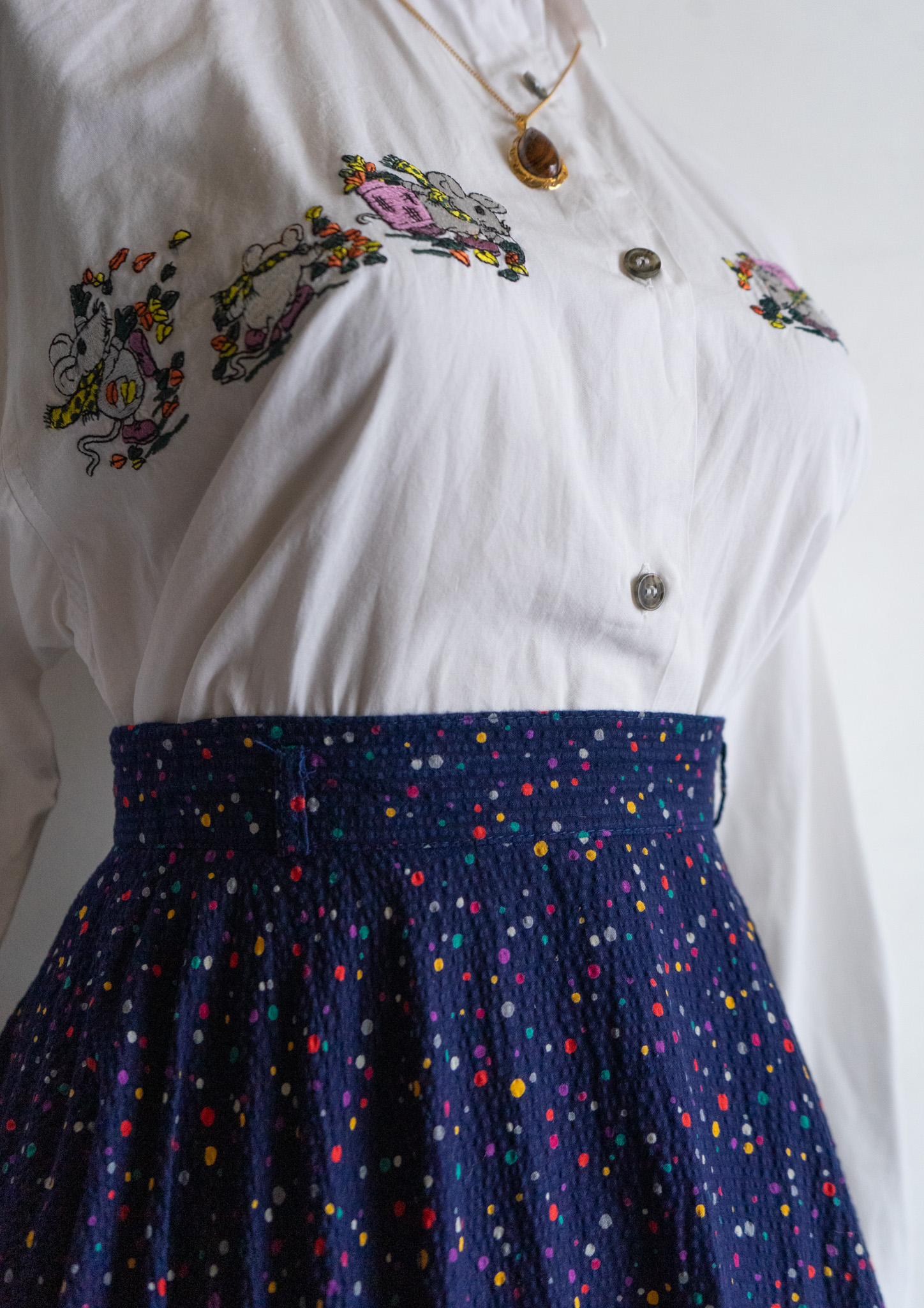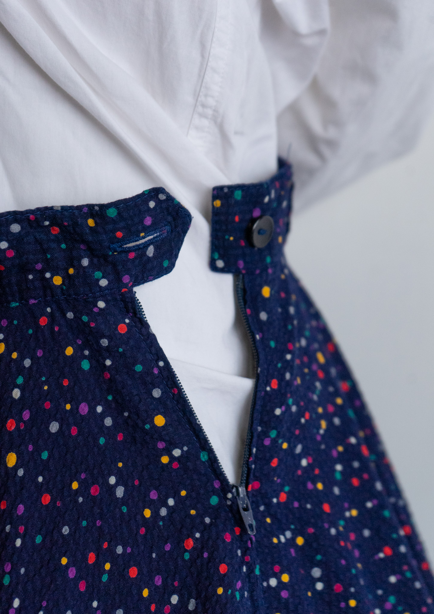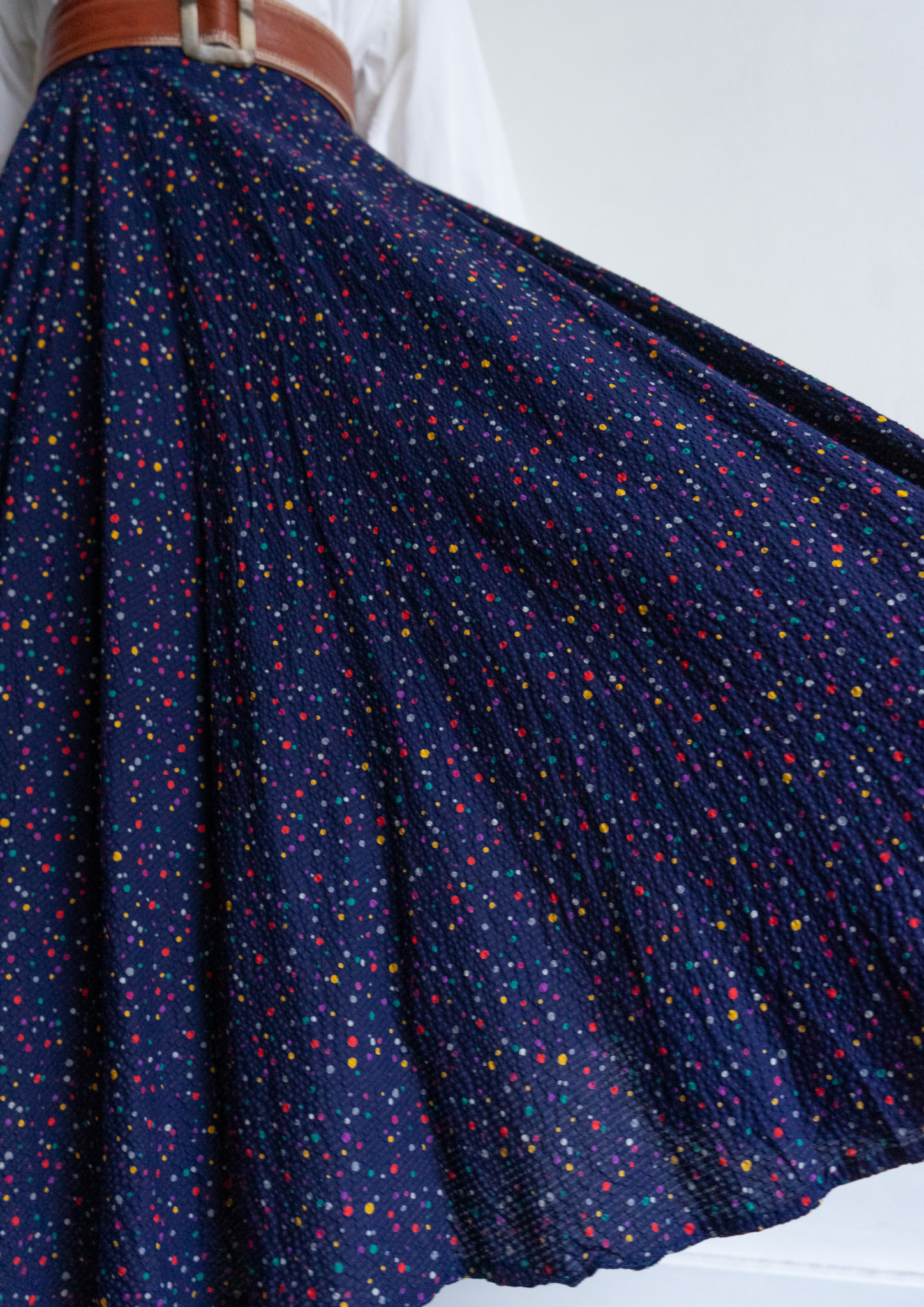 90's Stripe × Small Flower Pattern Navy Tyrol Skirt