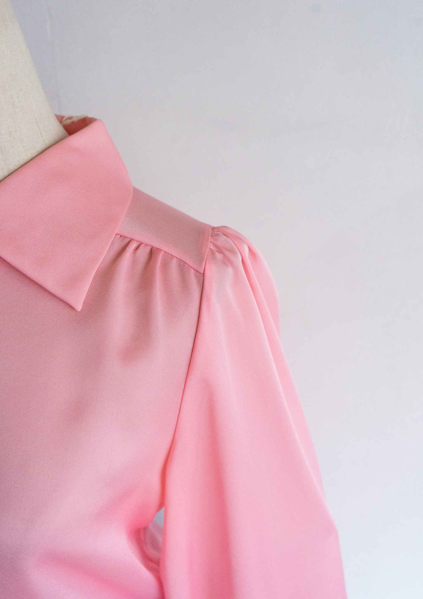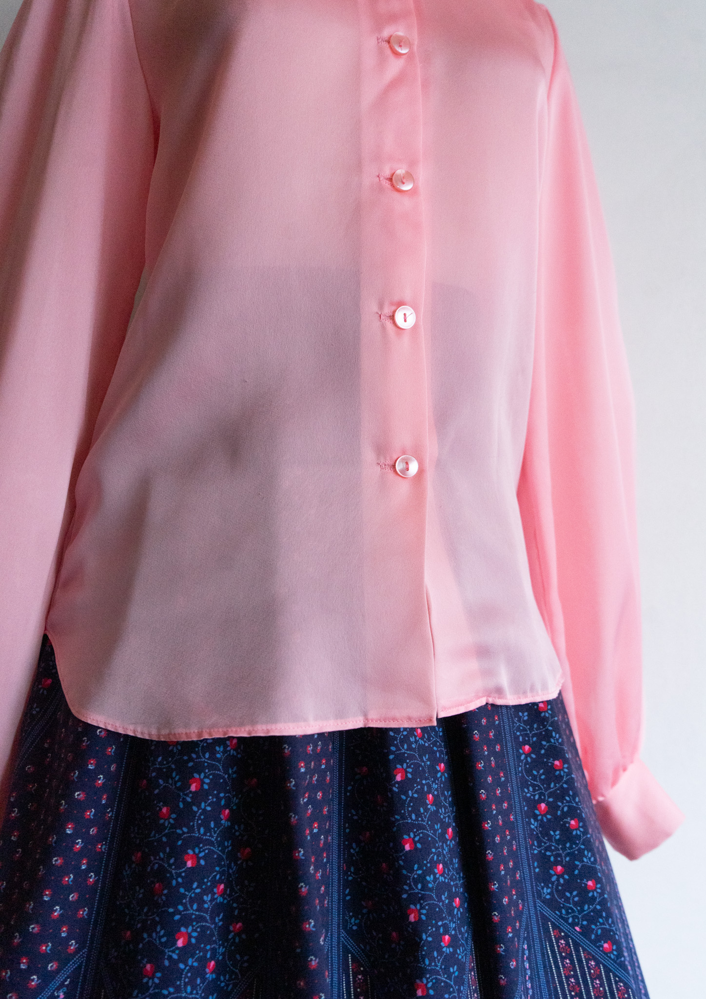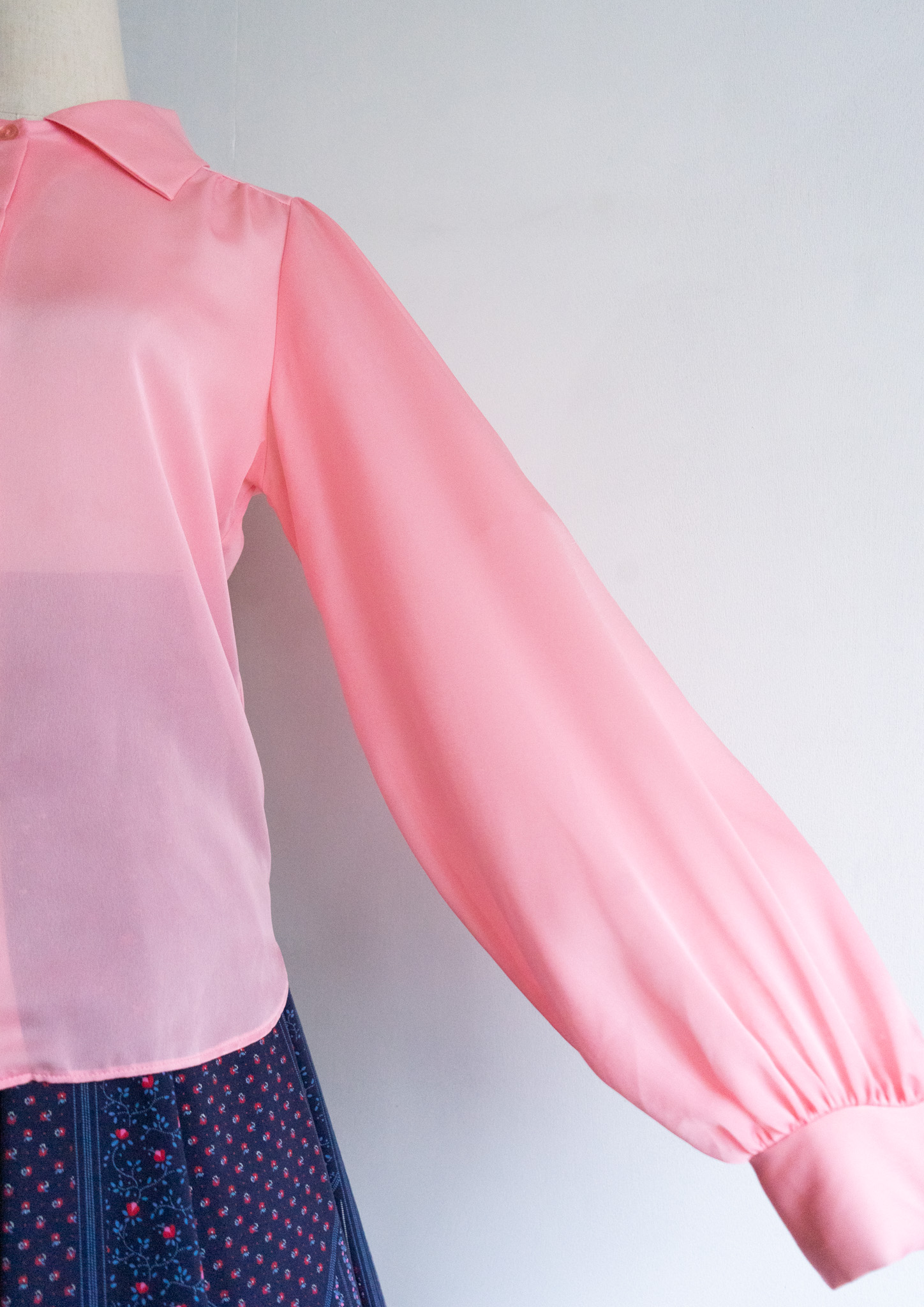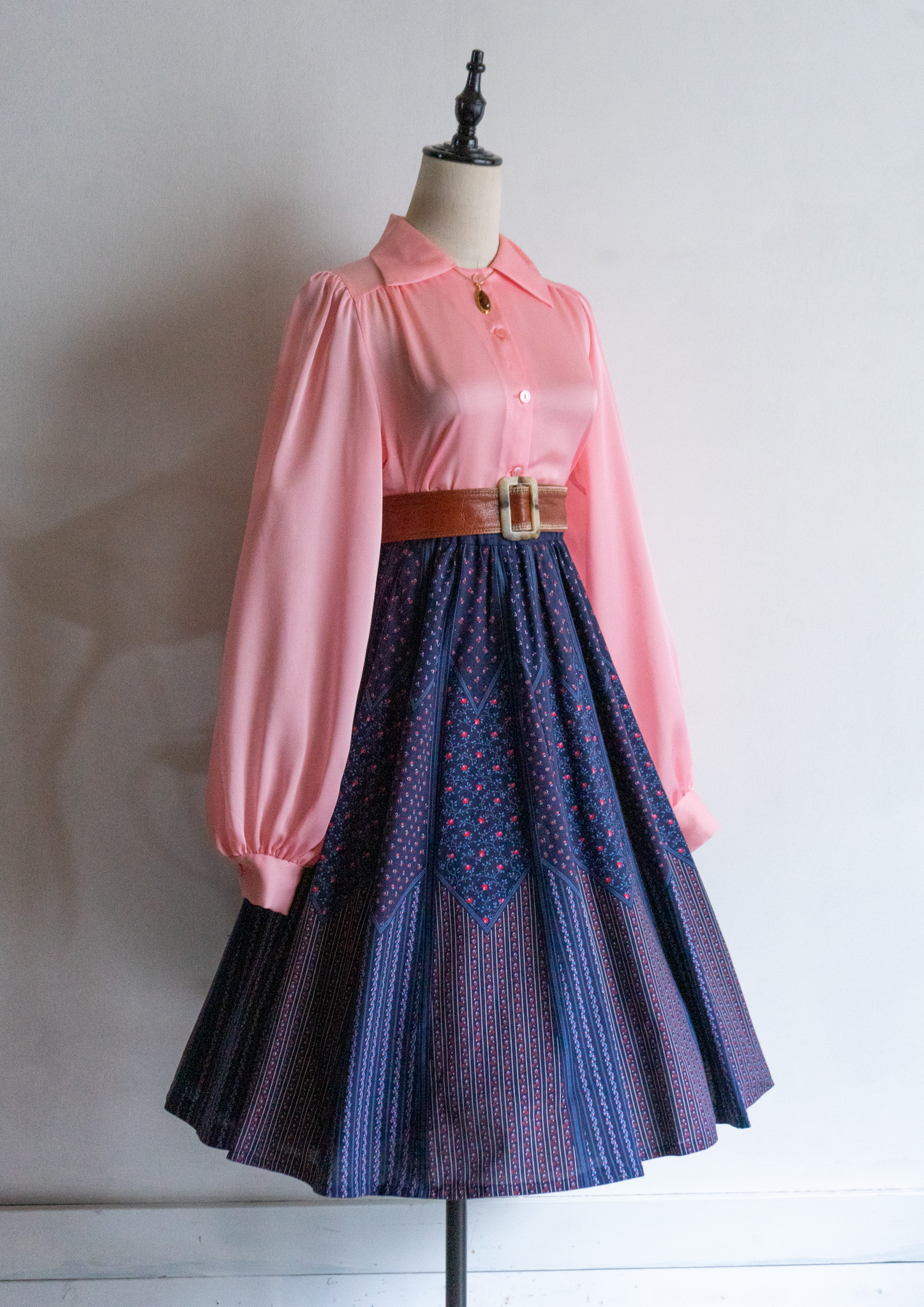 80's Tree Ring Pattern Frill Collar Purple Blouse