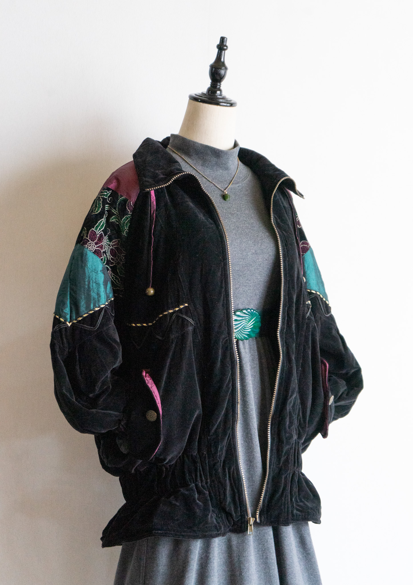 90's France 3D Dot Pattern Navy Peplum Jacket