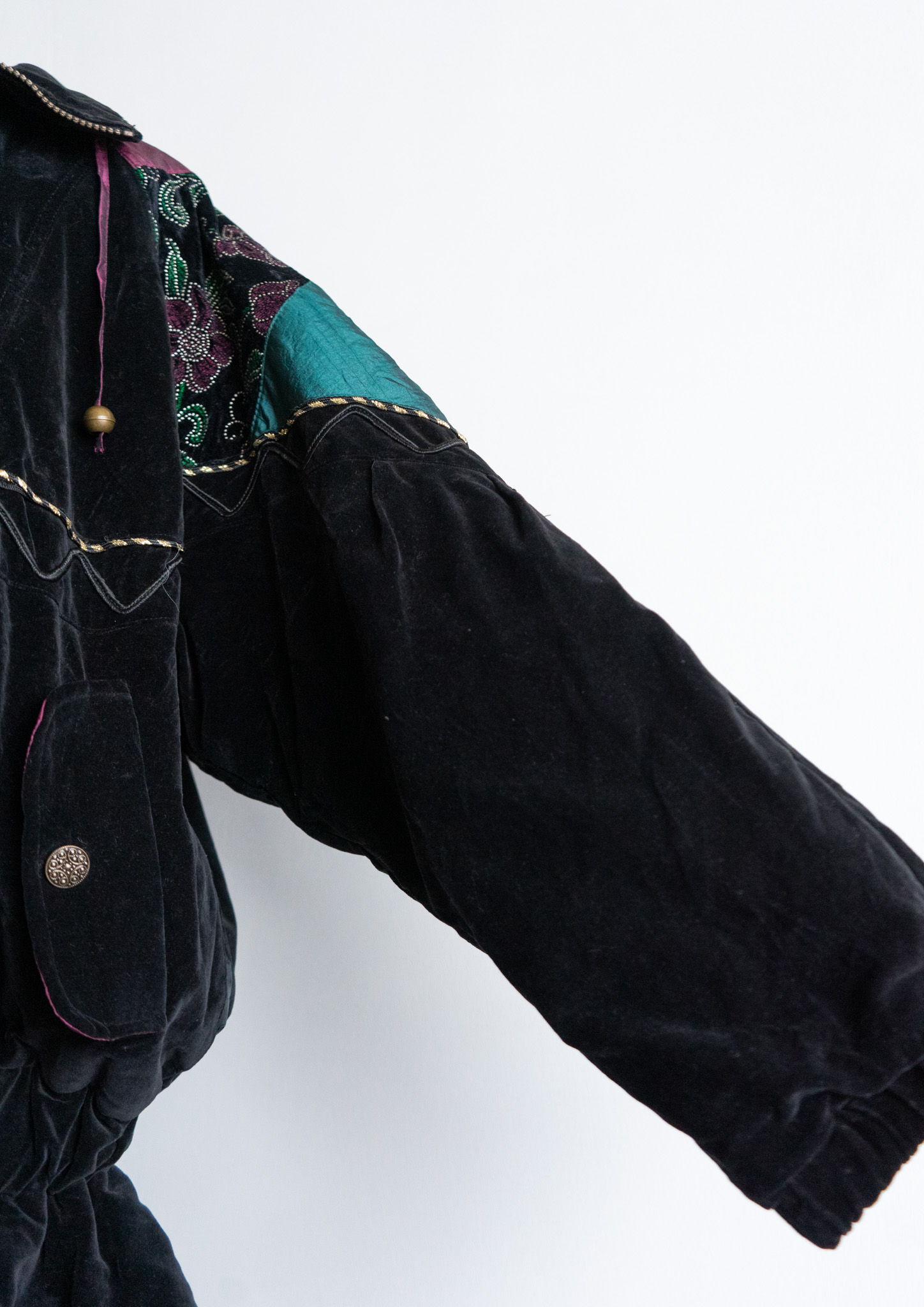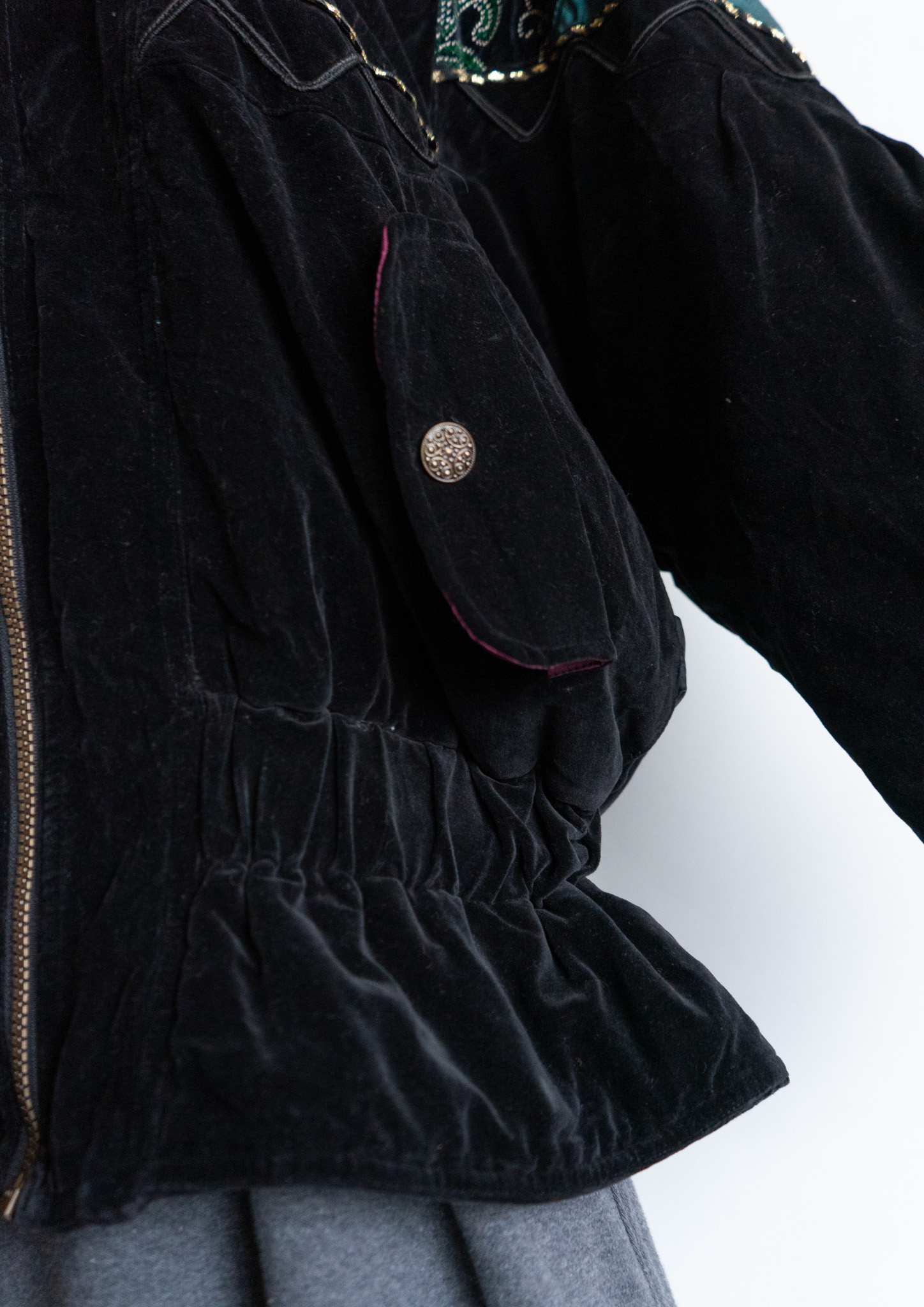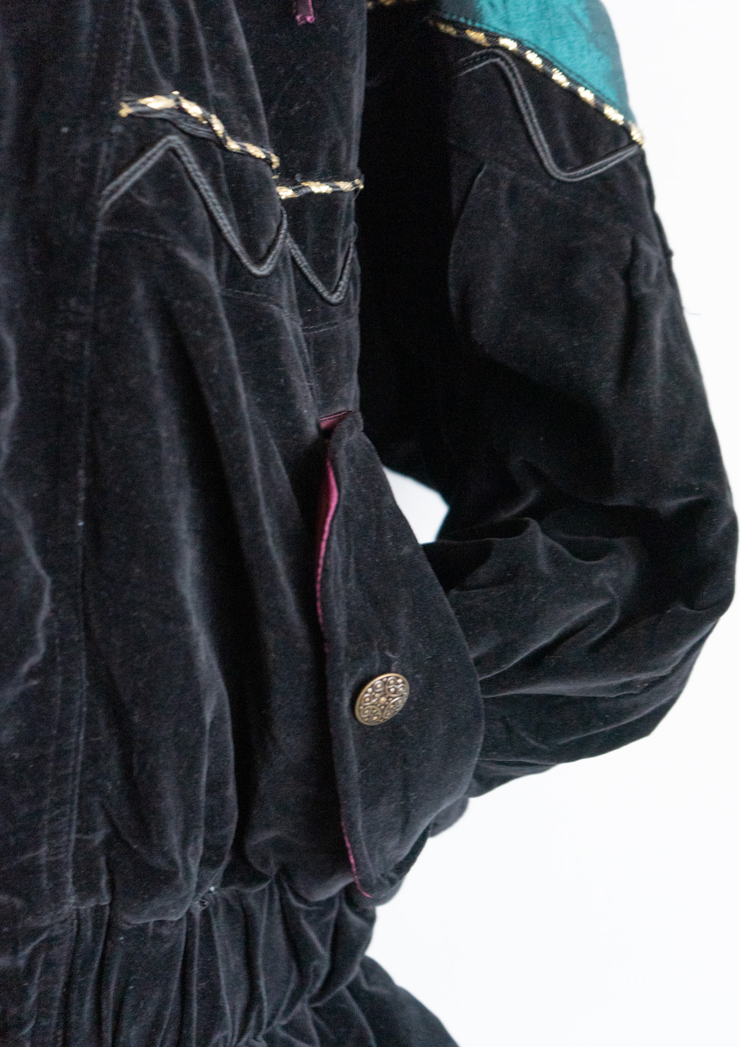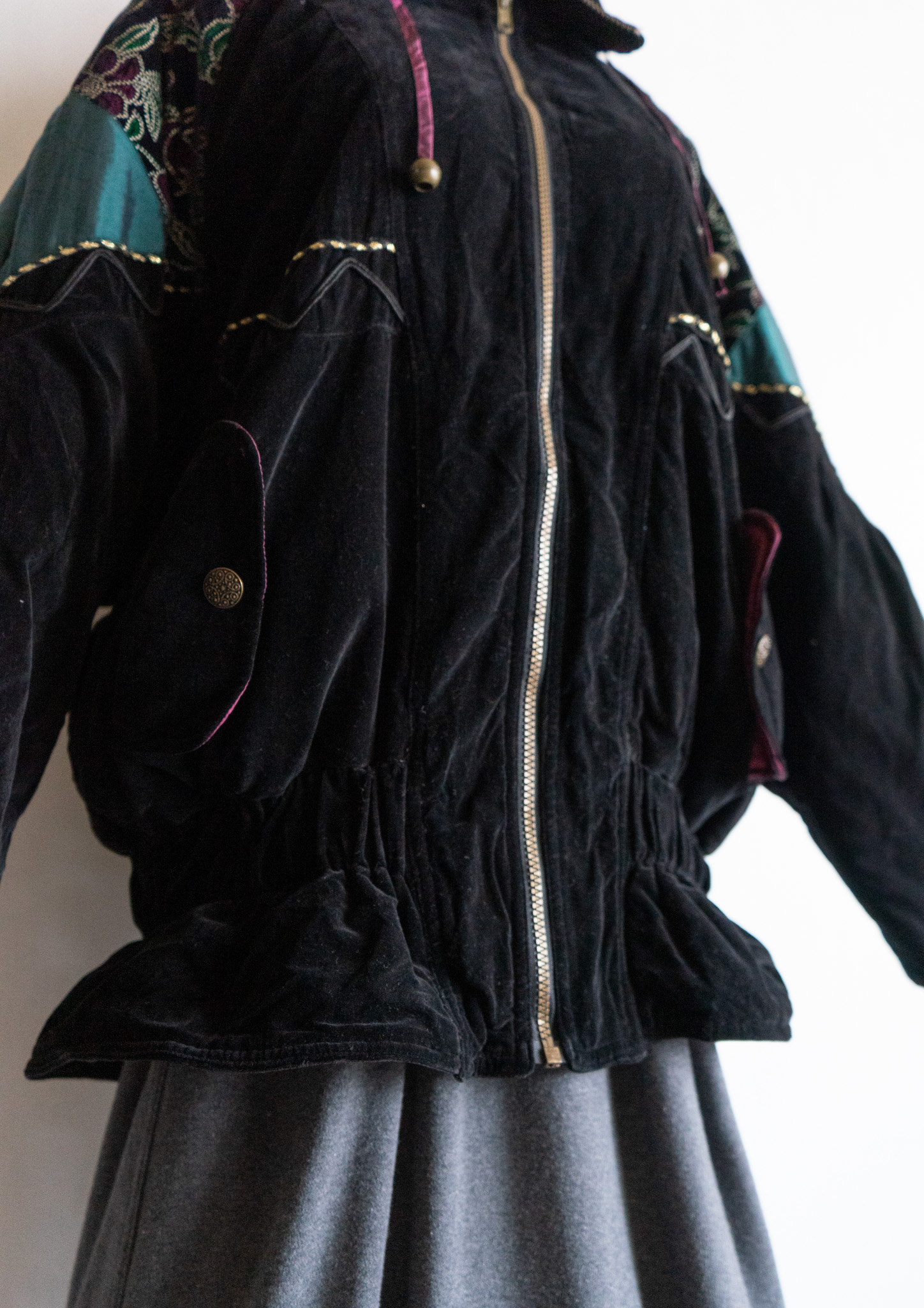 80's Euro Mustard Color Linning Black Wool Tailored Jacket