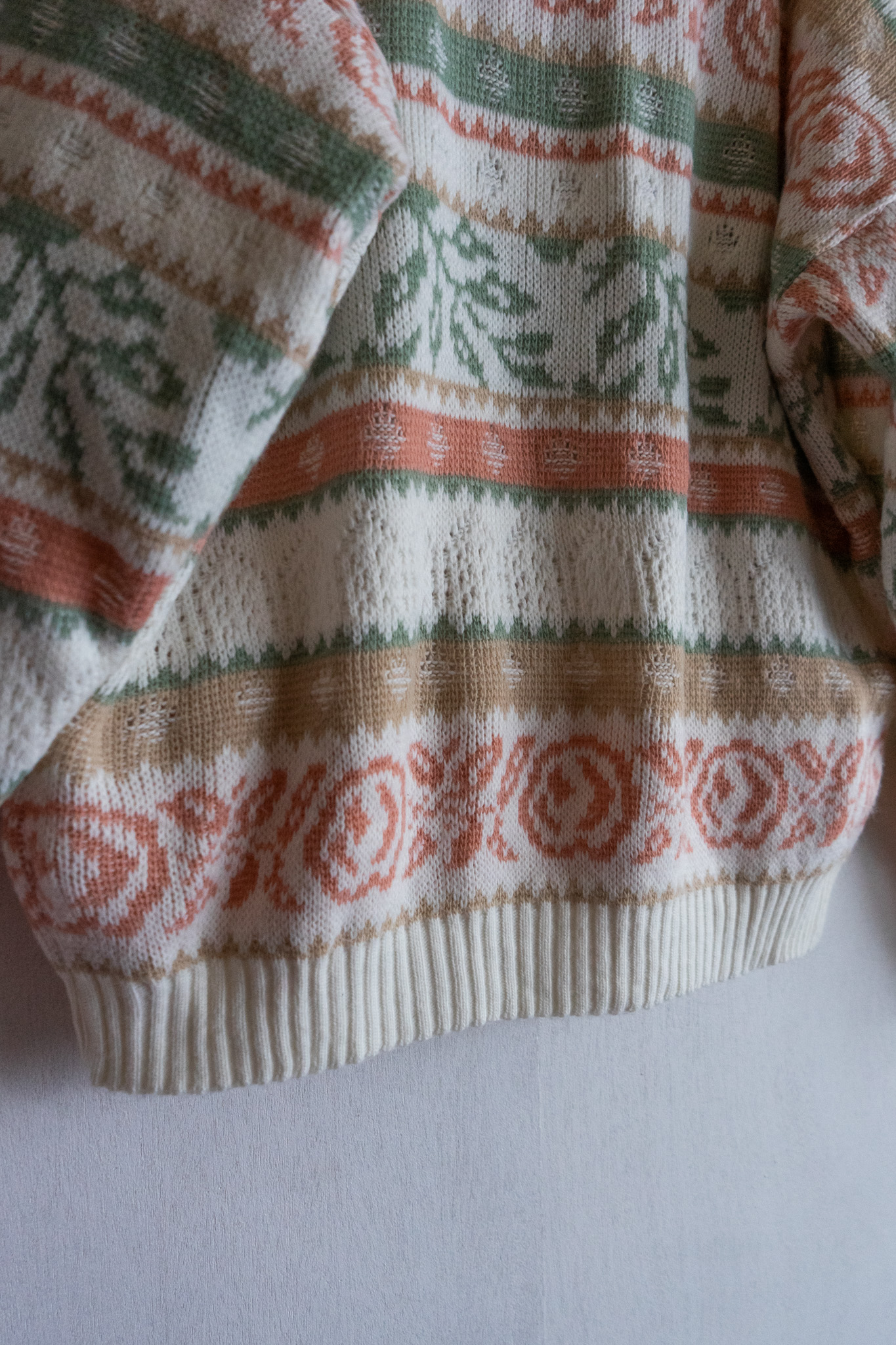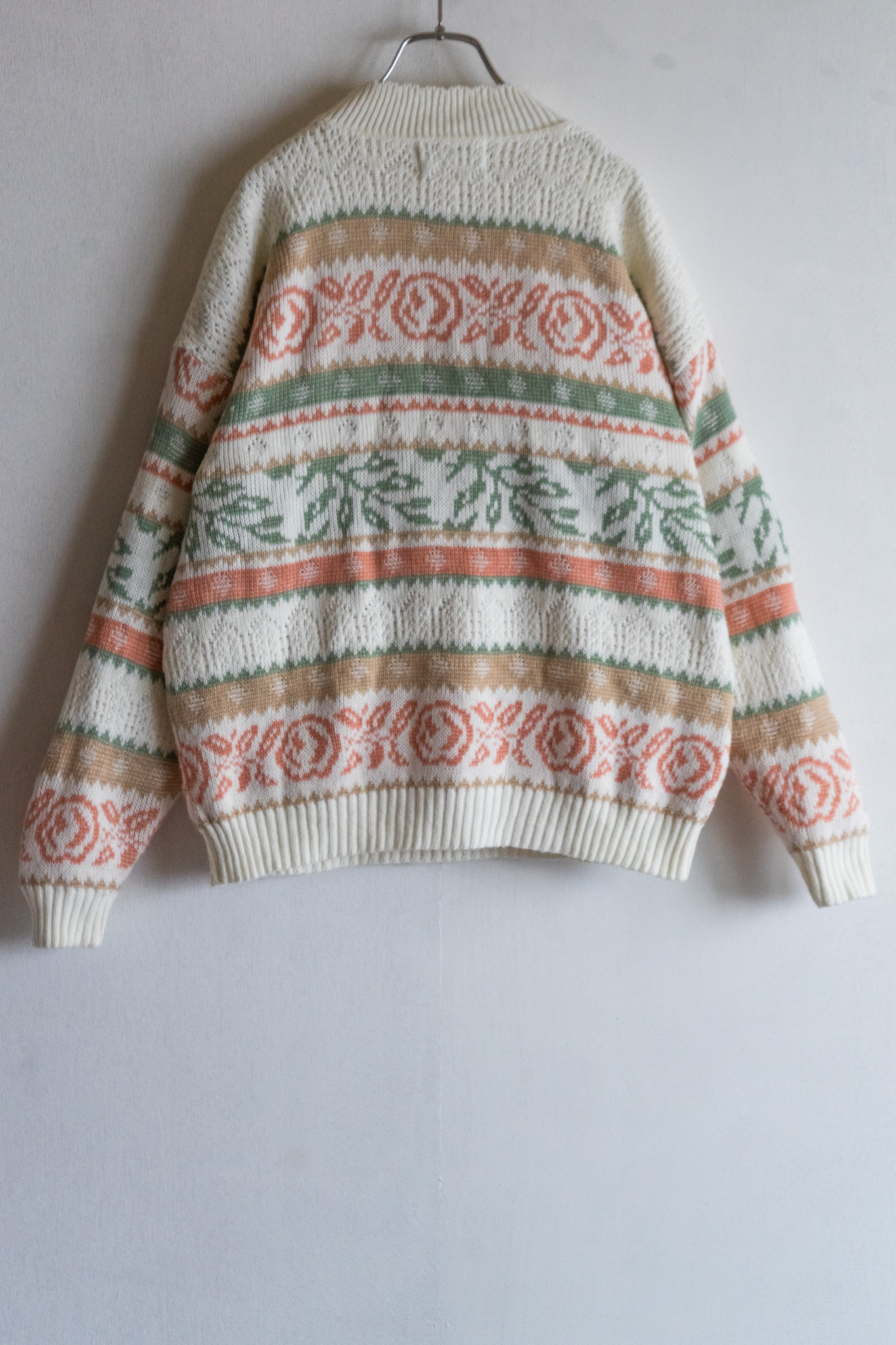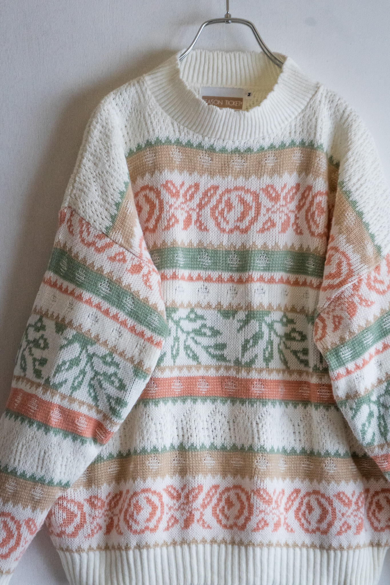 90' USA Pale Tone Botanical Pattern White Sweater
