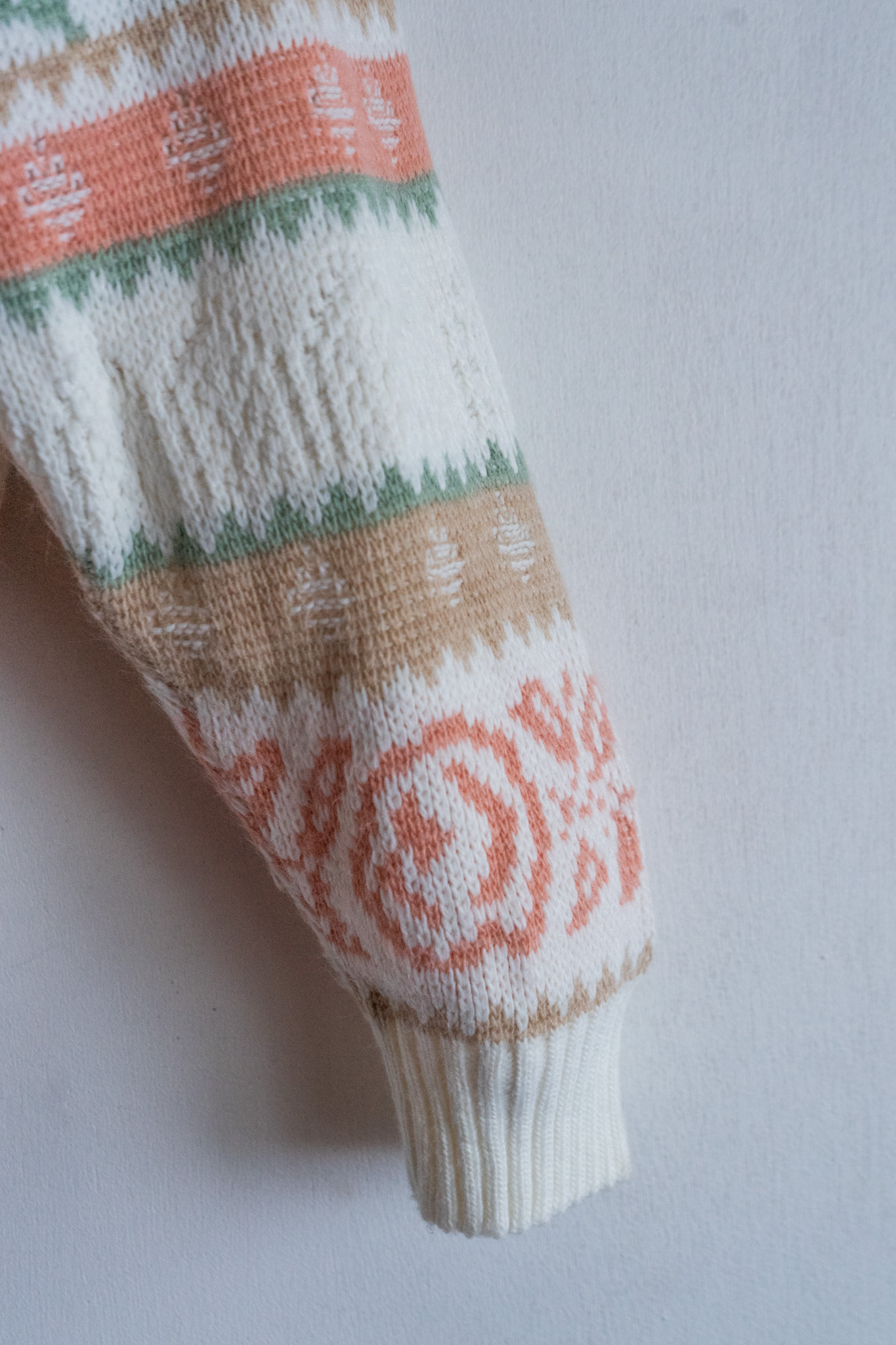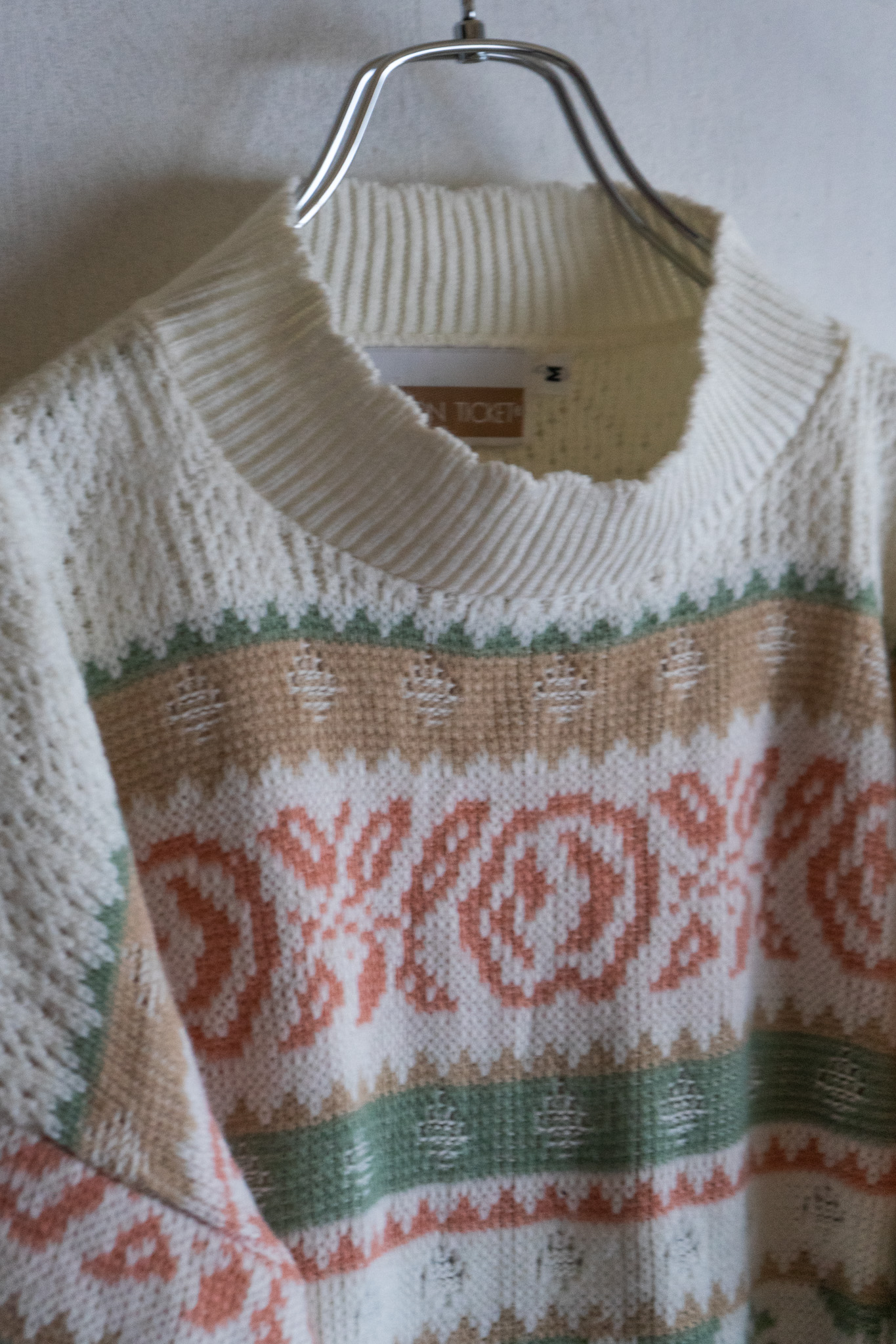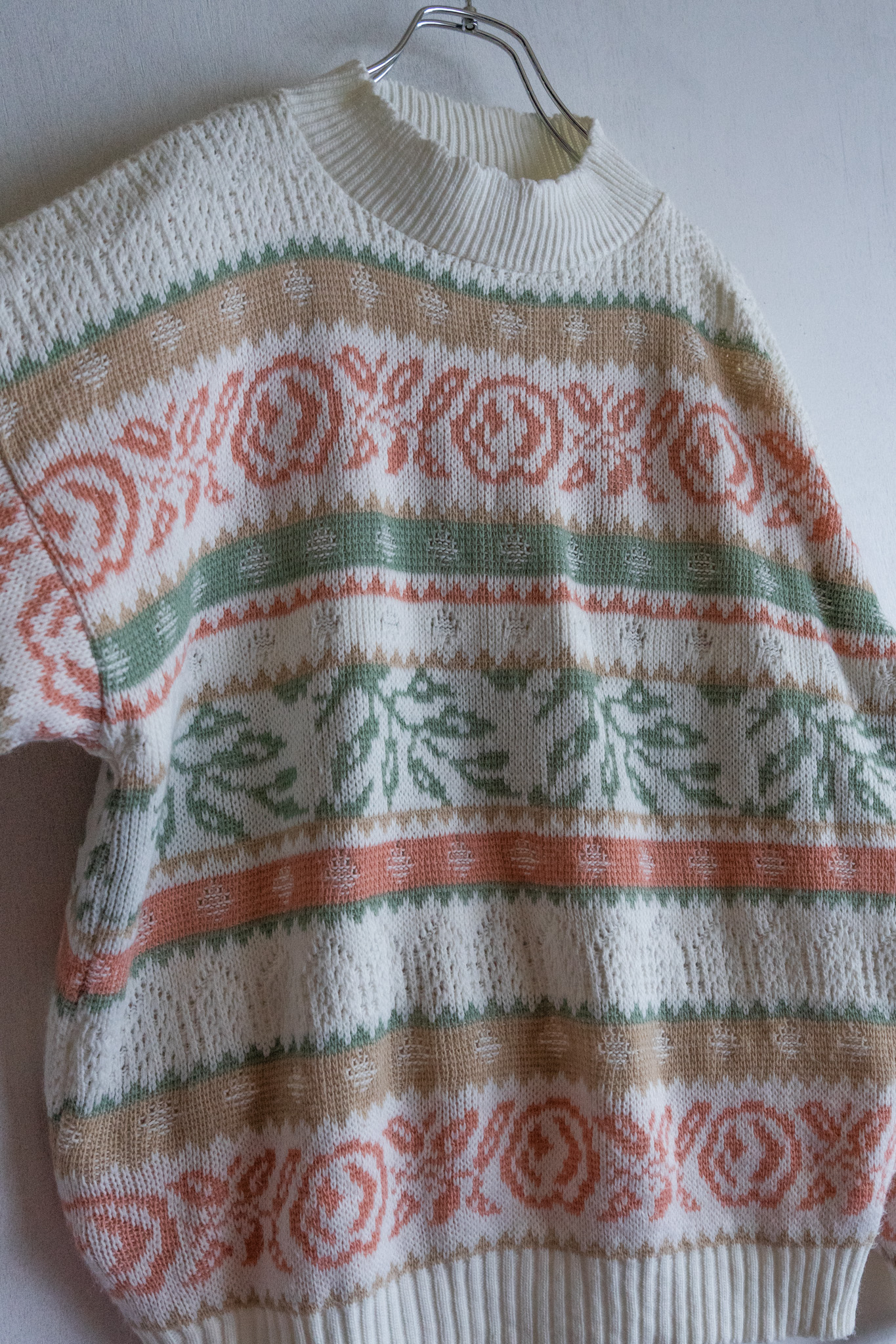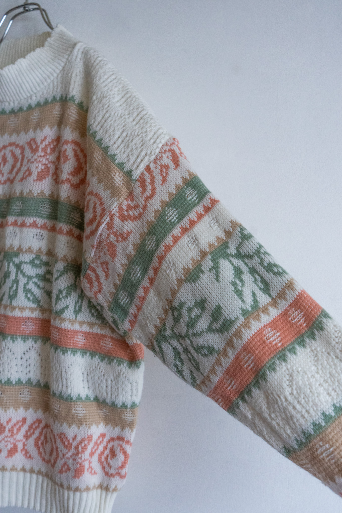 90' USA Pale Tone Botanical Pattern White Sweater
