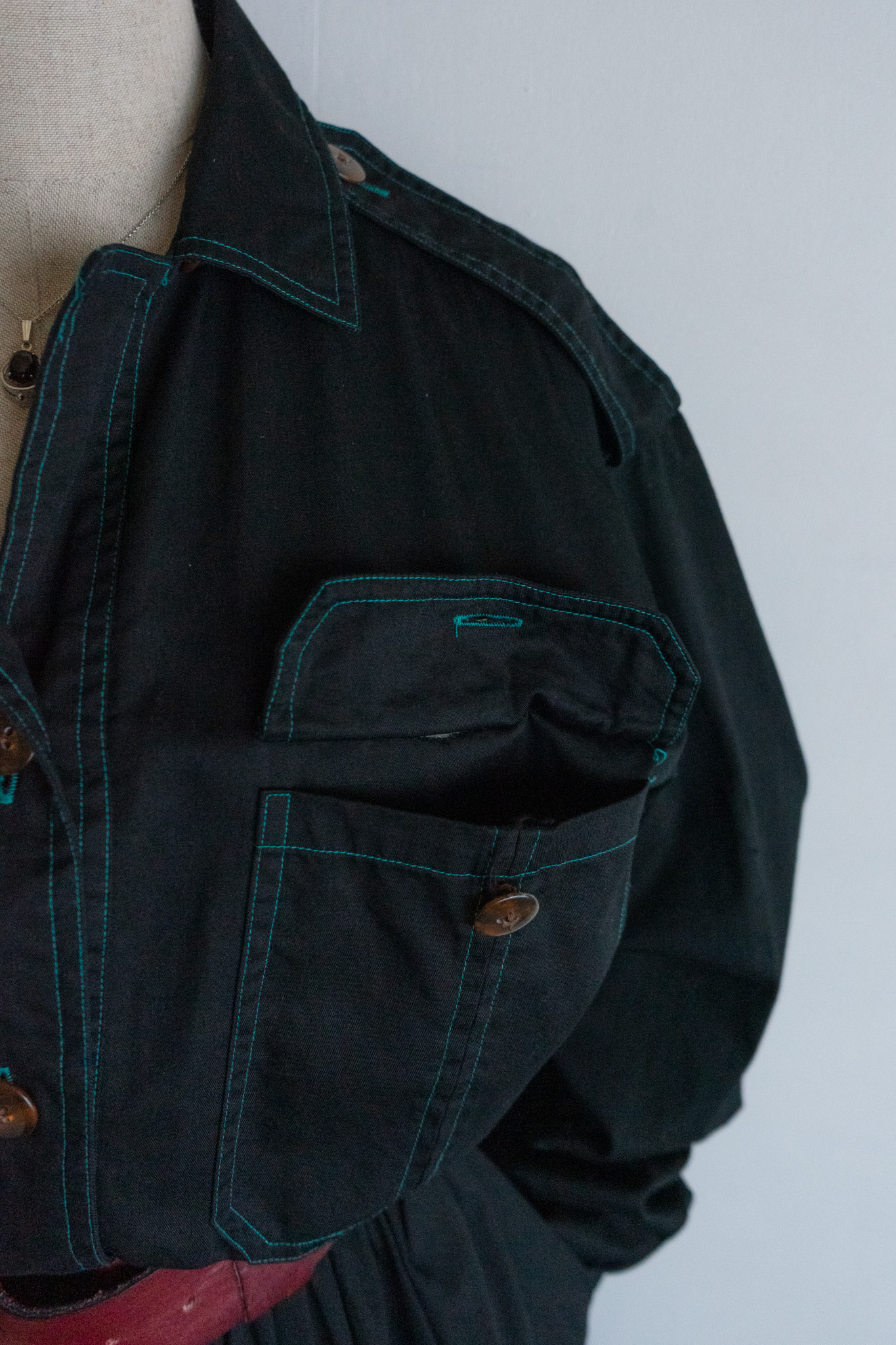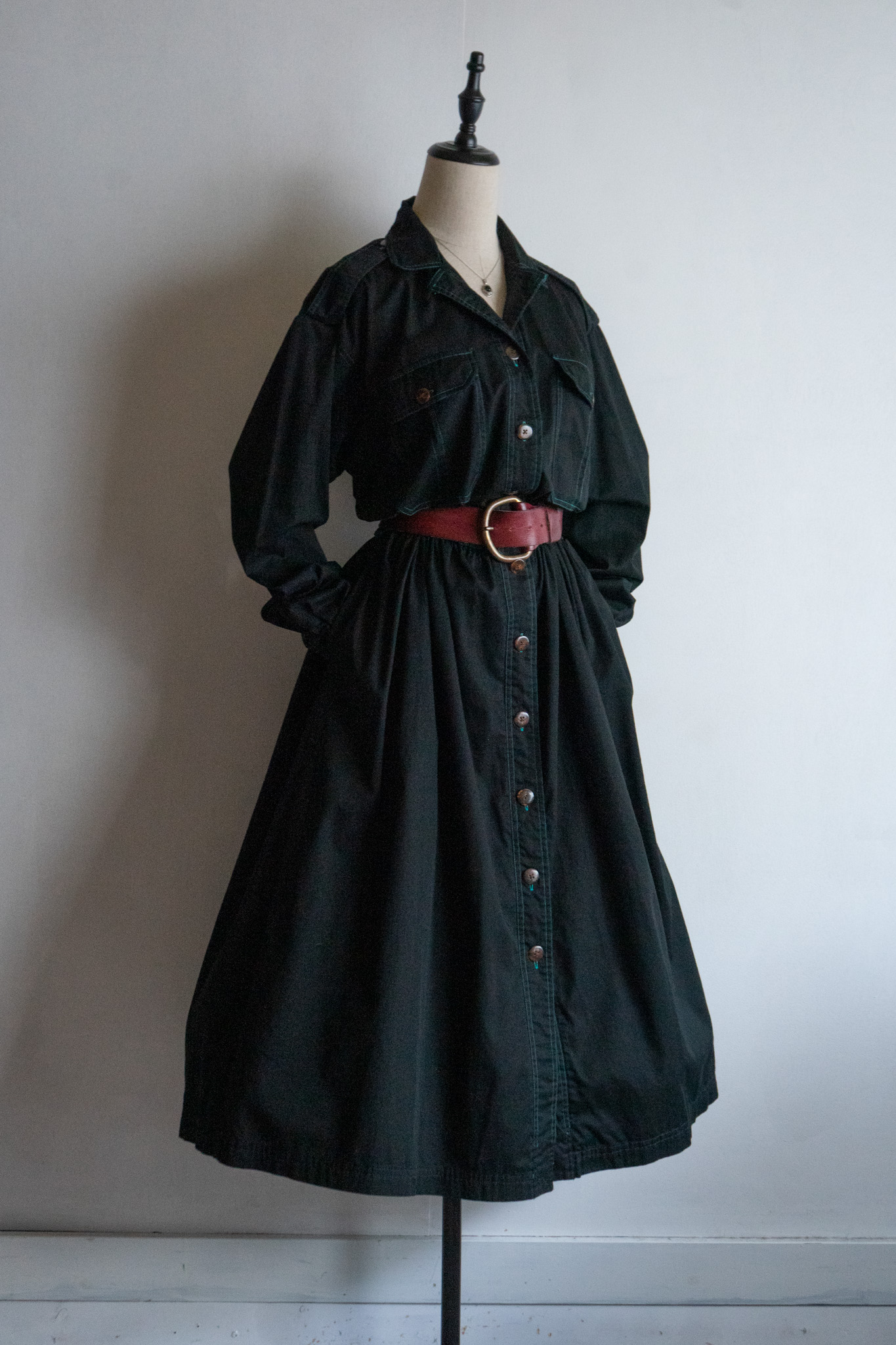 90's Turquoise Stitch Black Over dye Shirts Dress