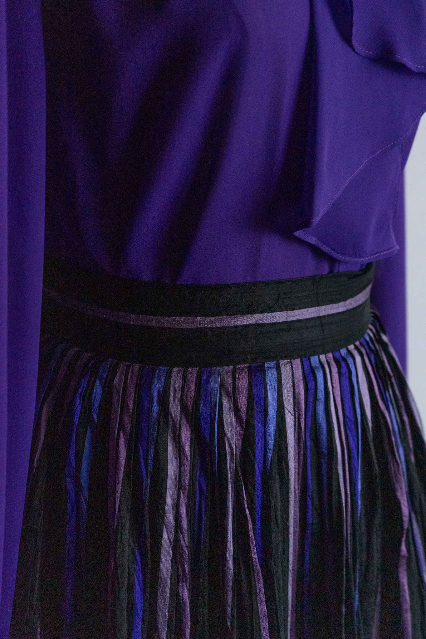 90's Euro Purple Stripe Pattern Black Silk Tyrol Skirt