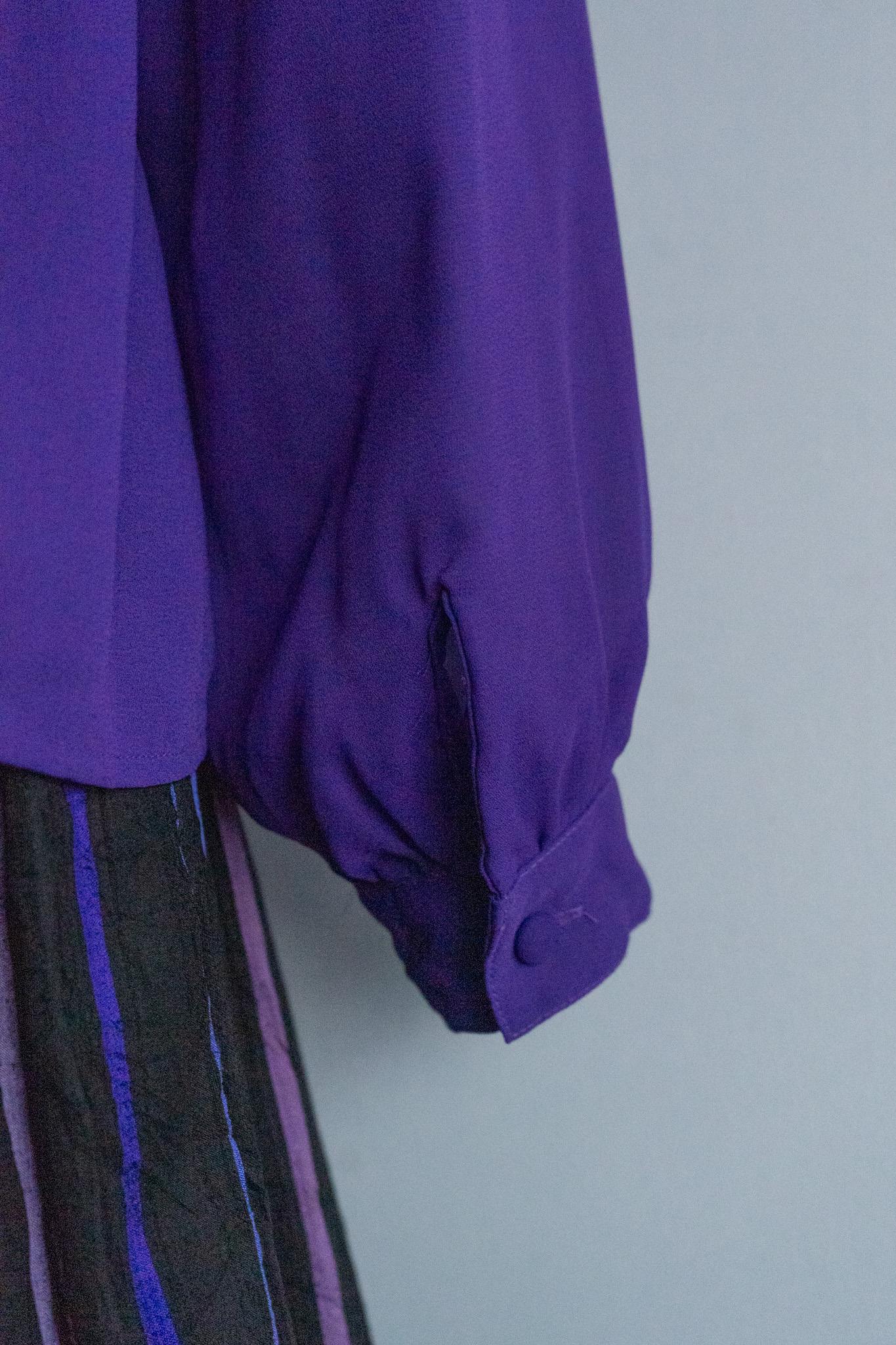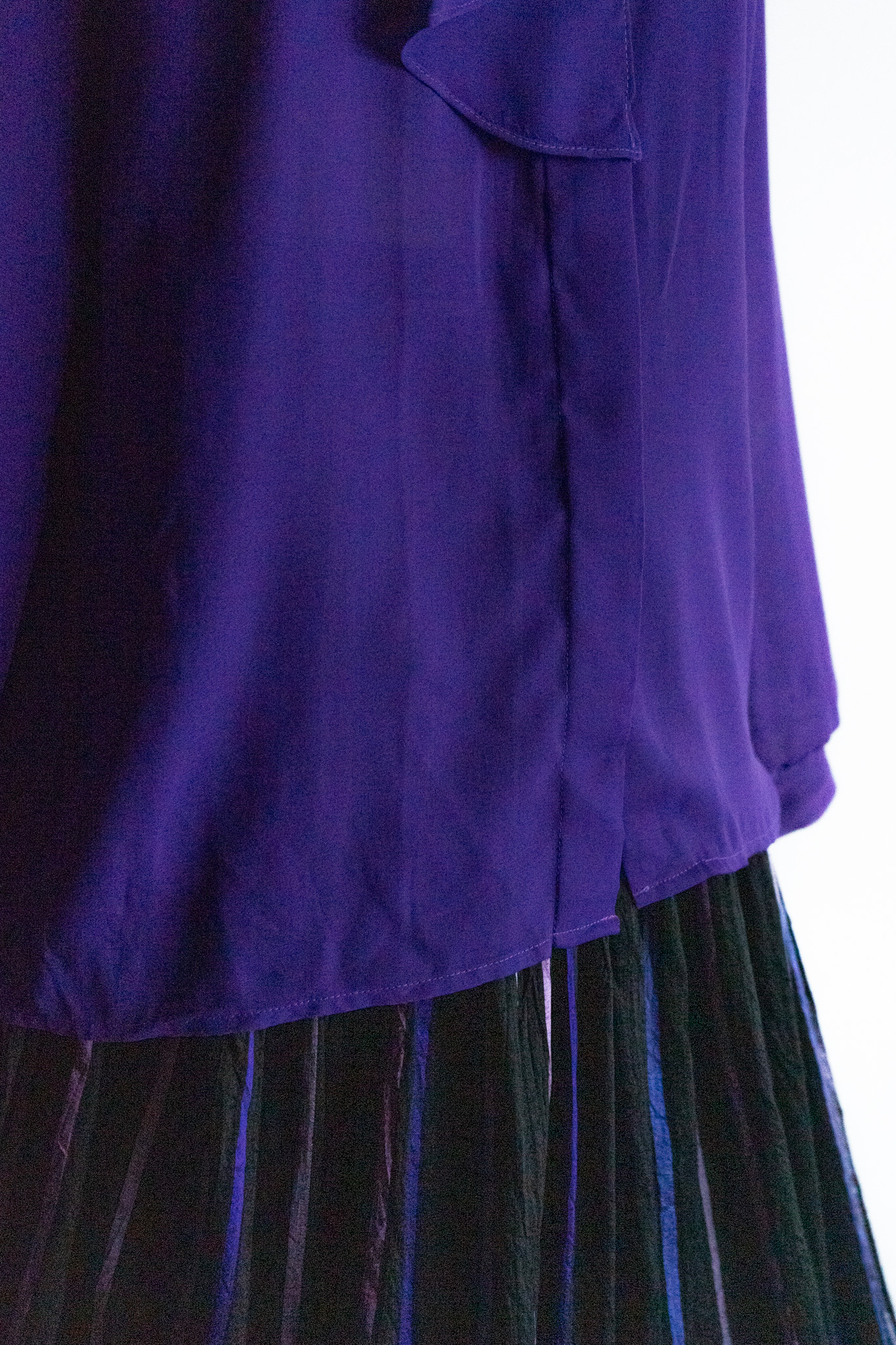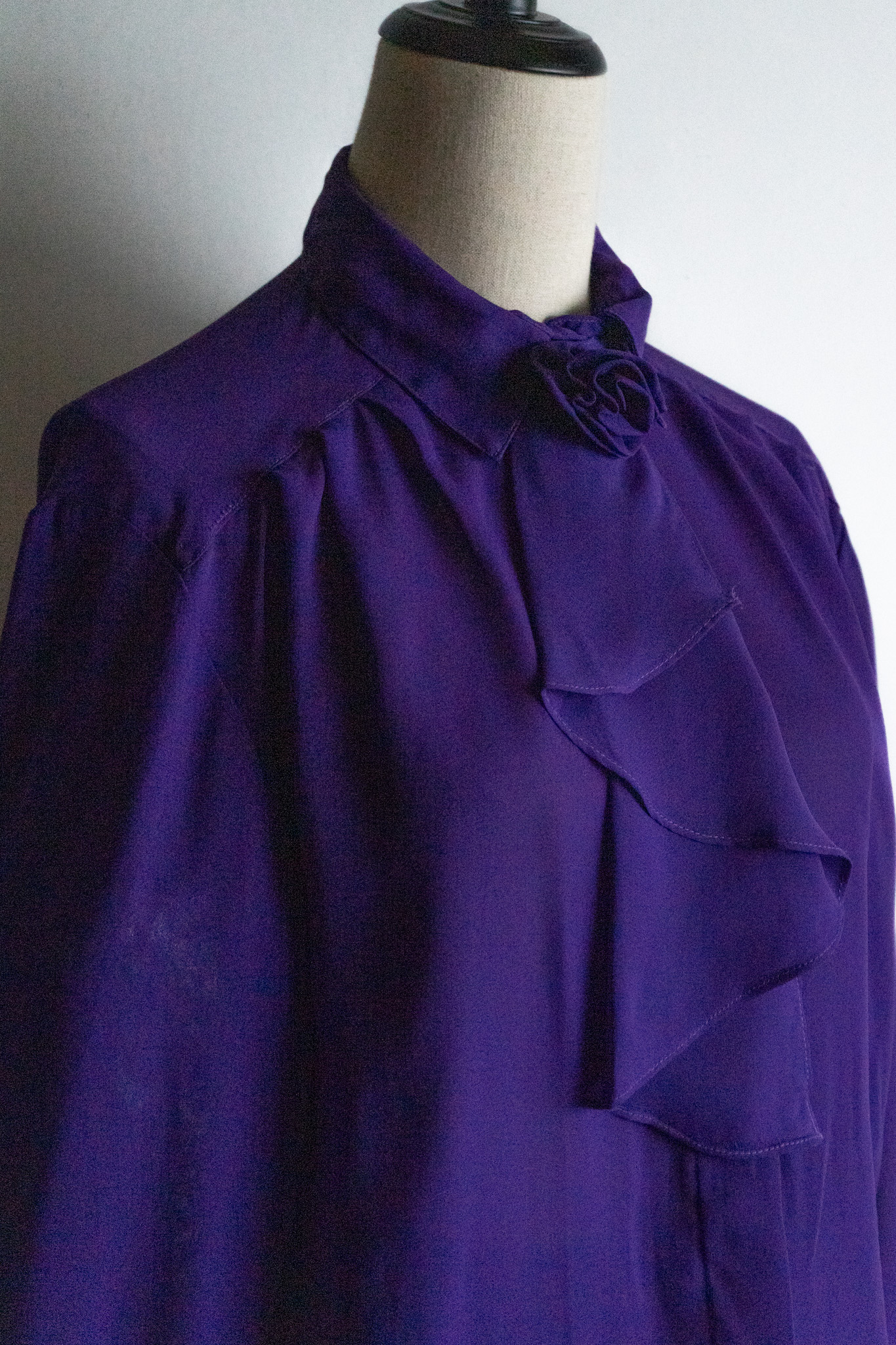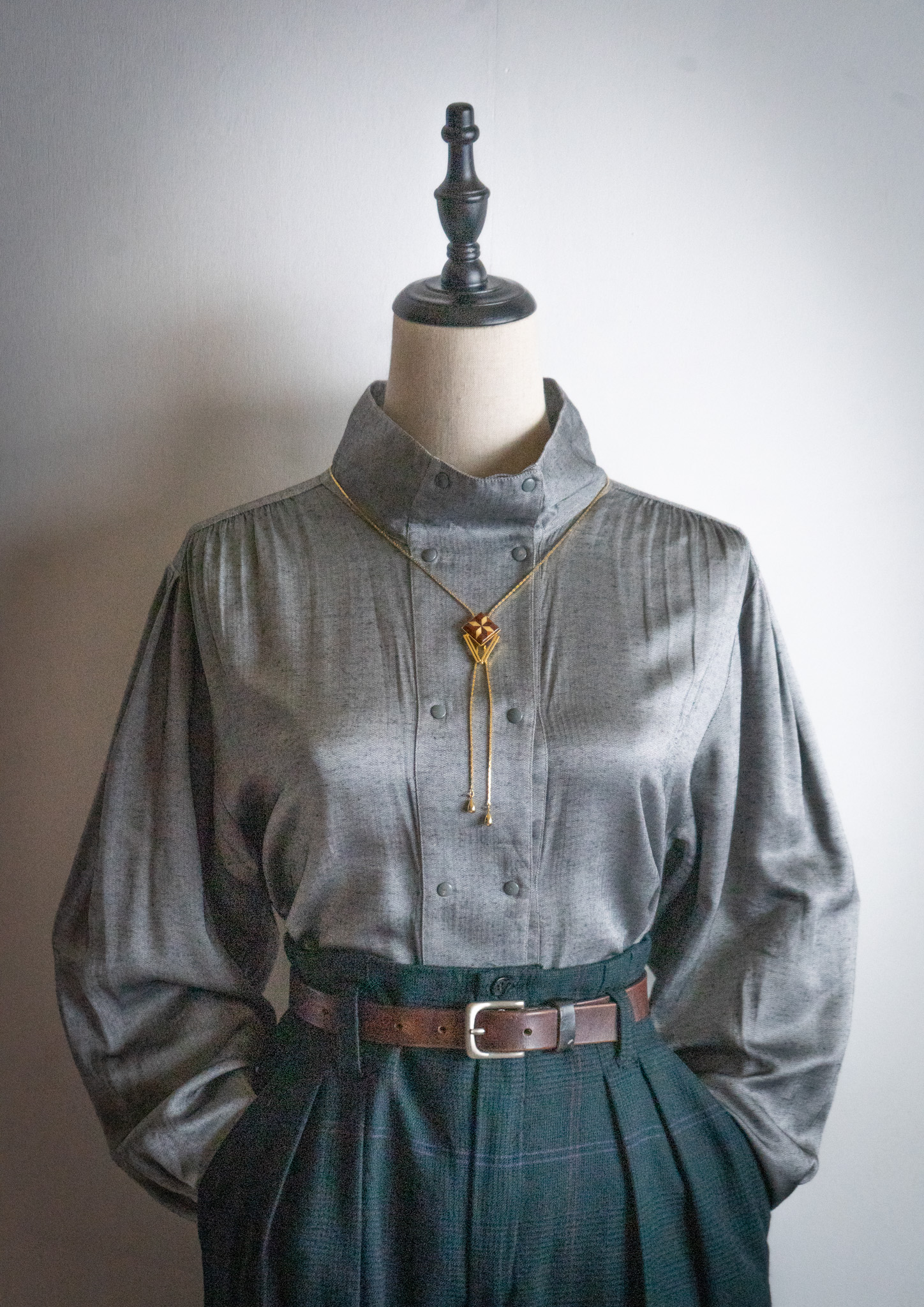 80's Euro Stand Collar Glossy Gray Double Blouse