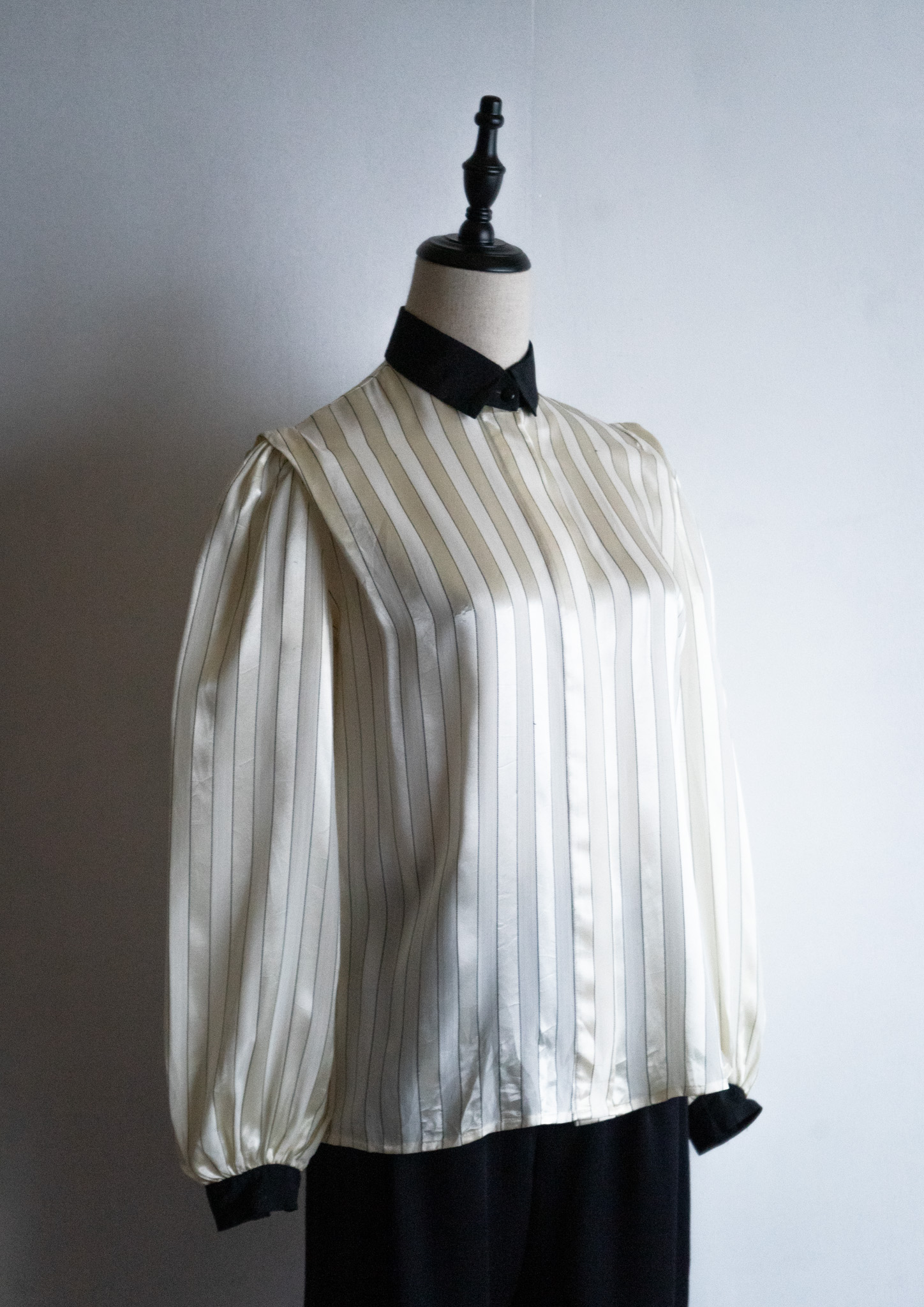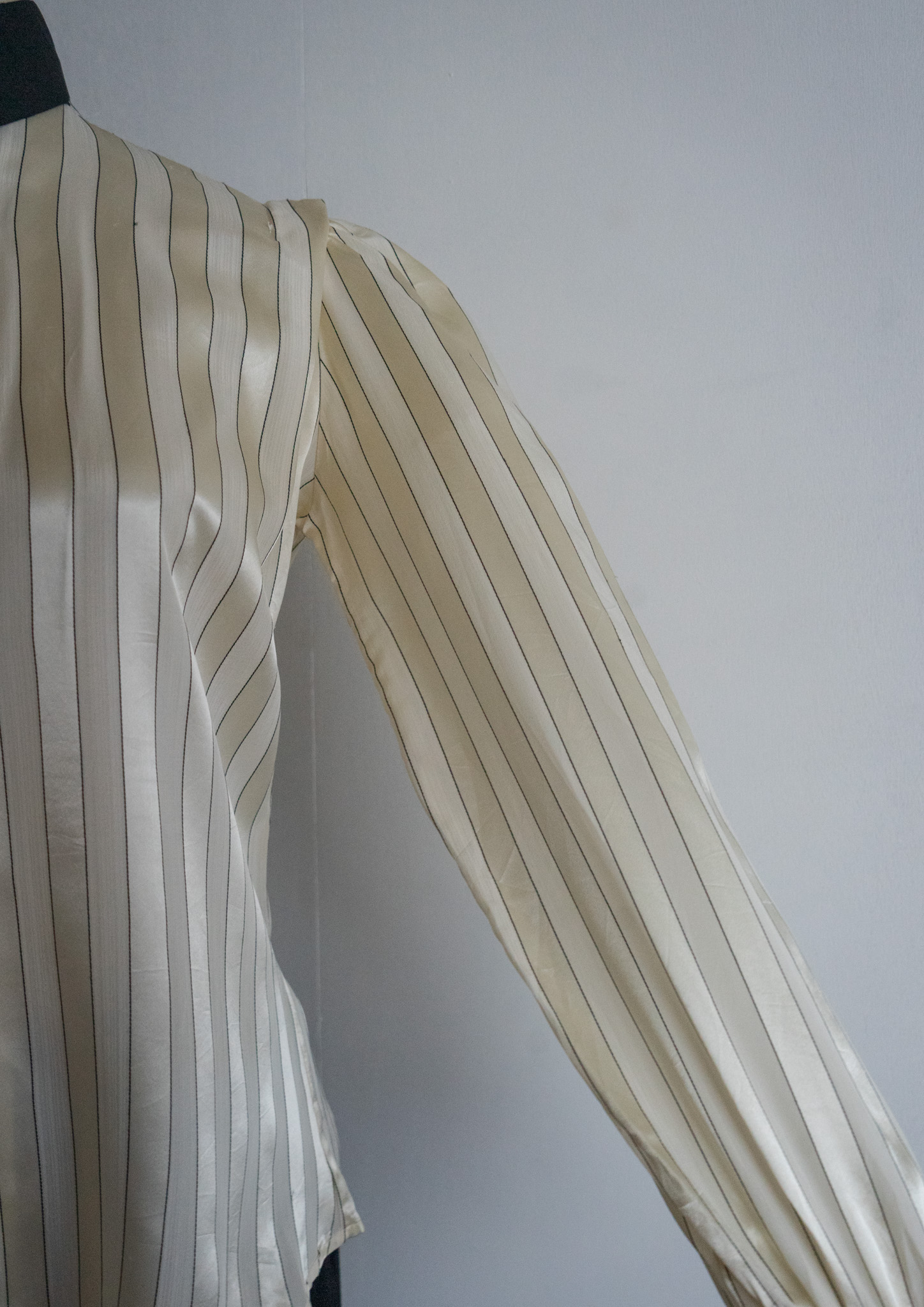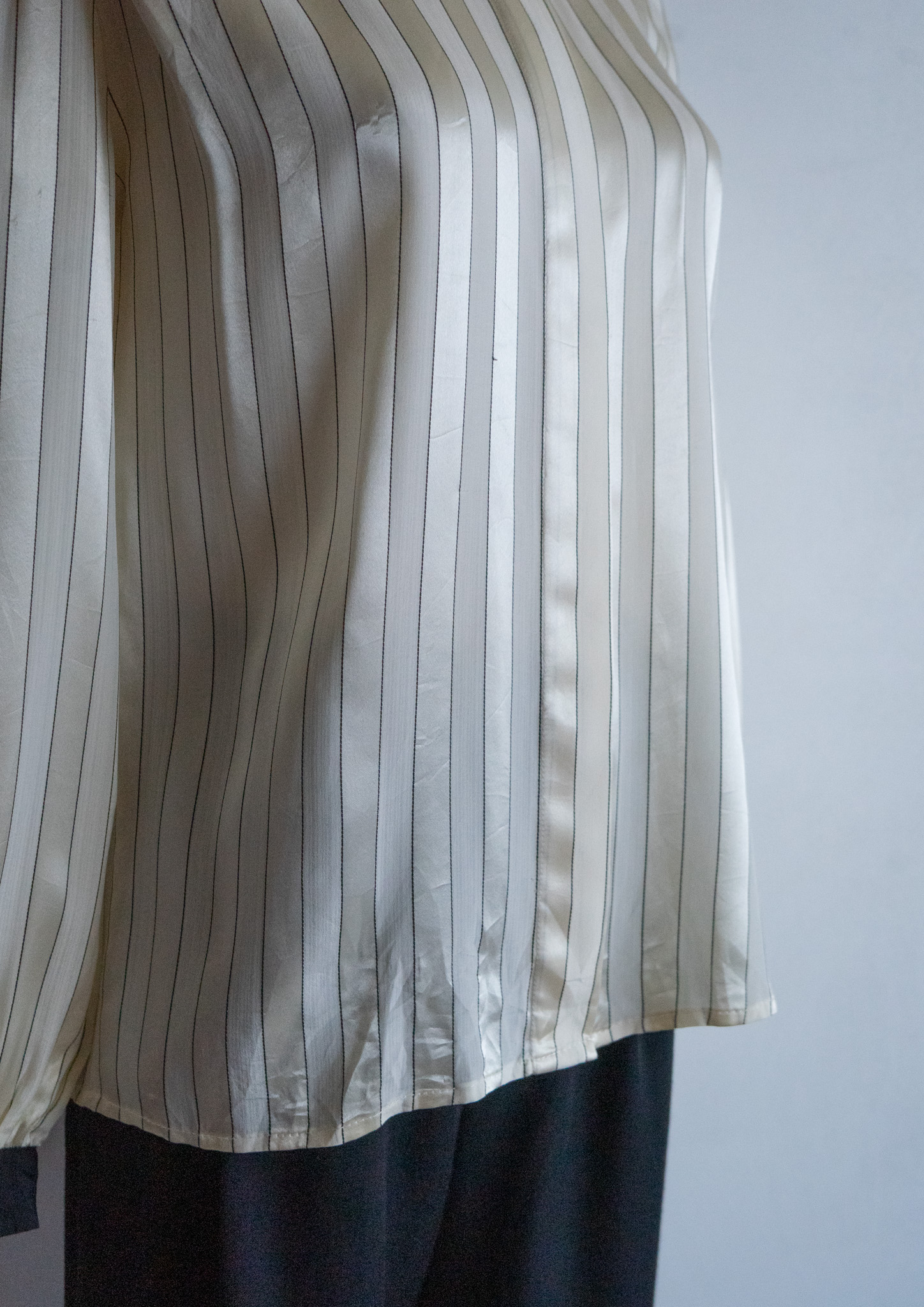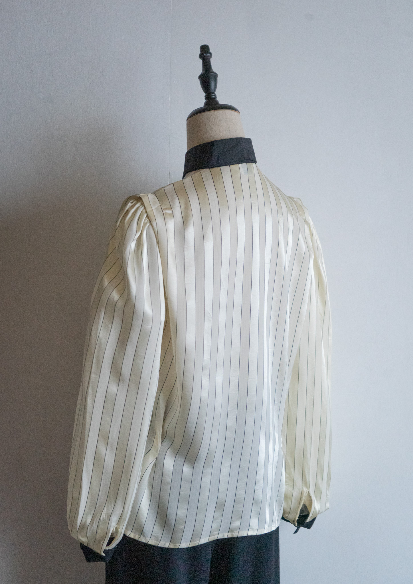 70's USA Glossy Stripe × Dot Pattern Bow-tie Ivory Blouse
