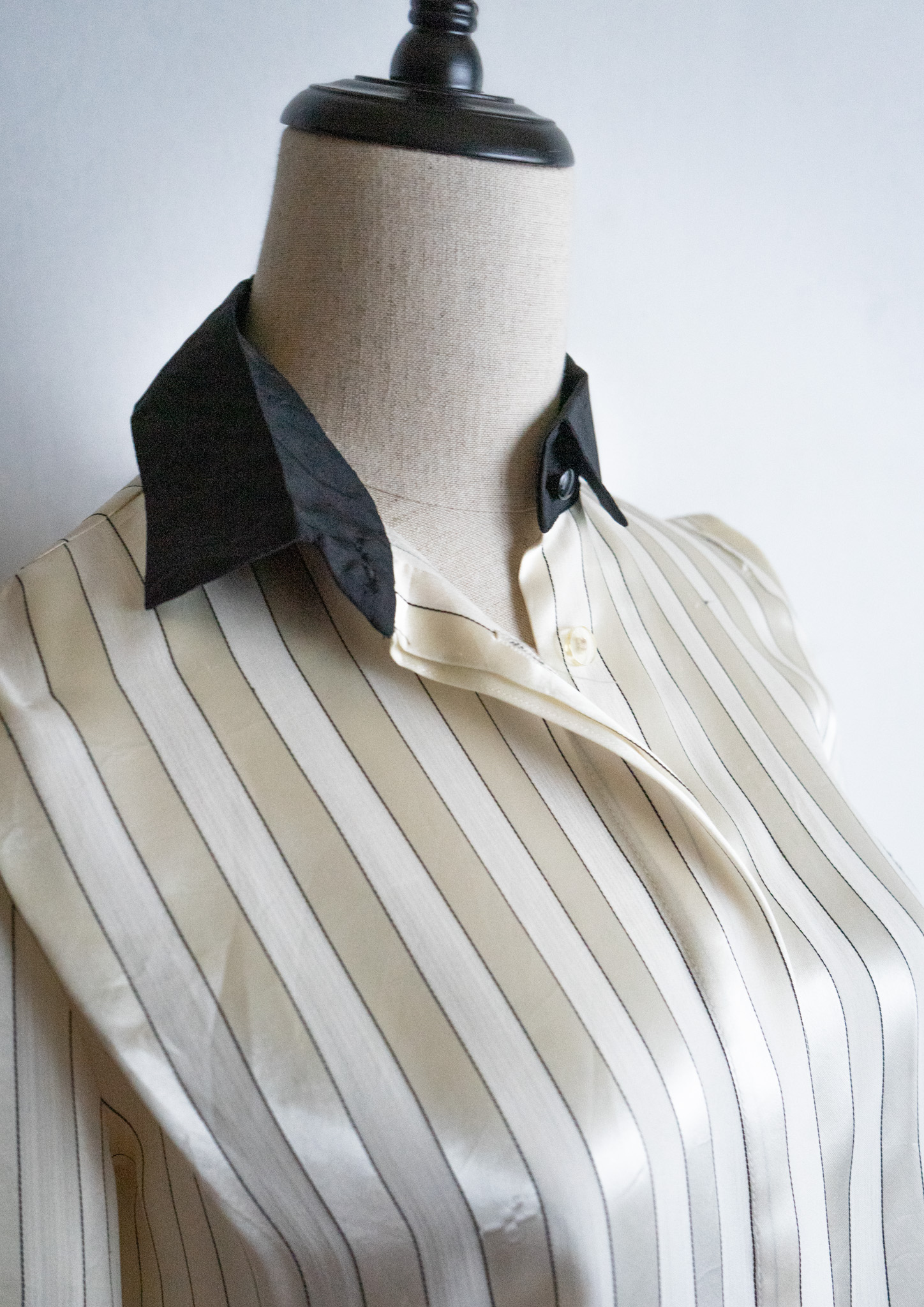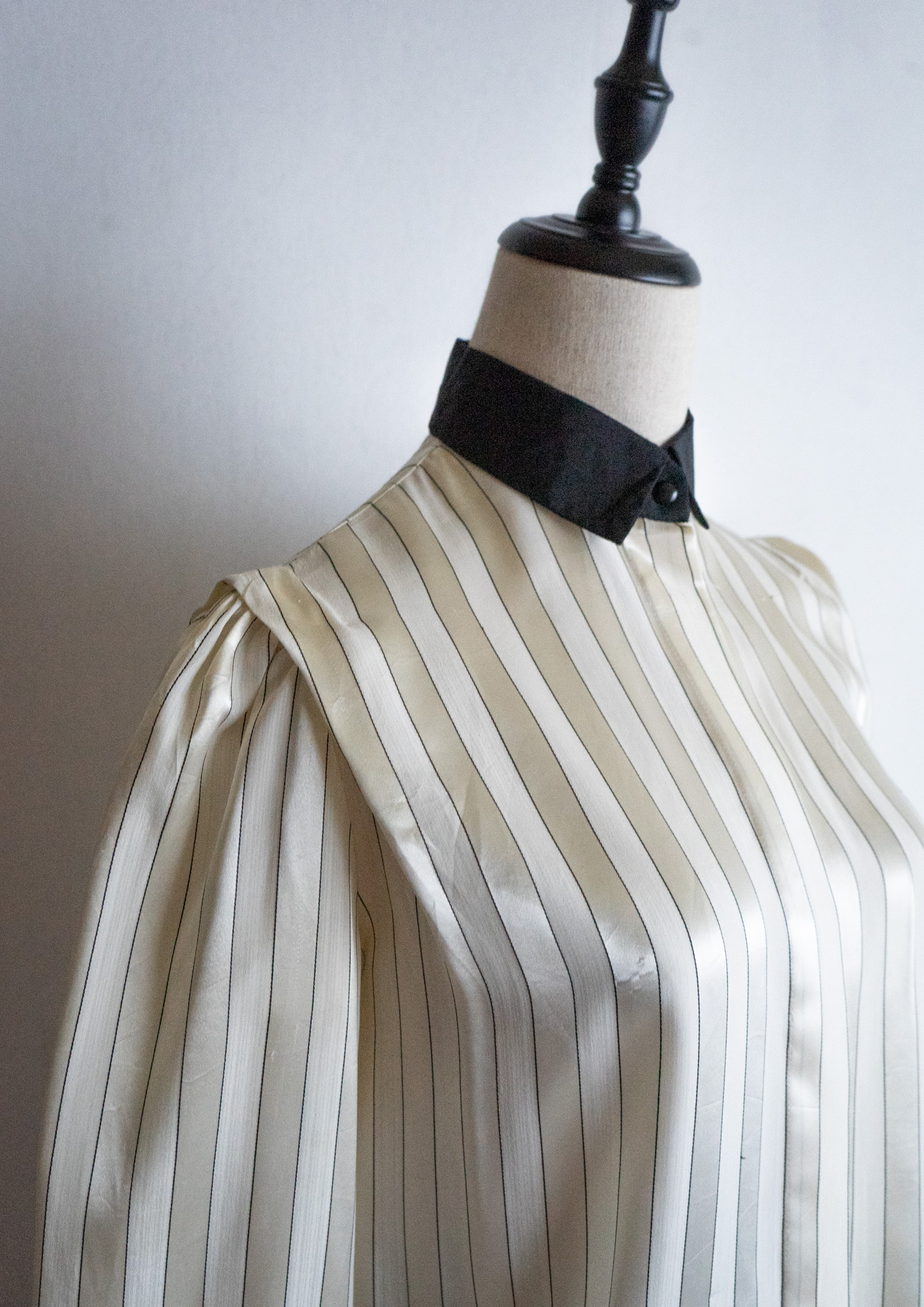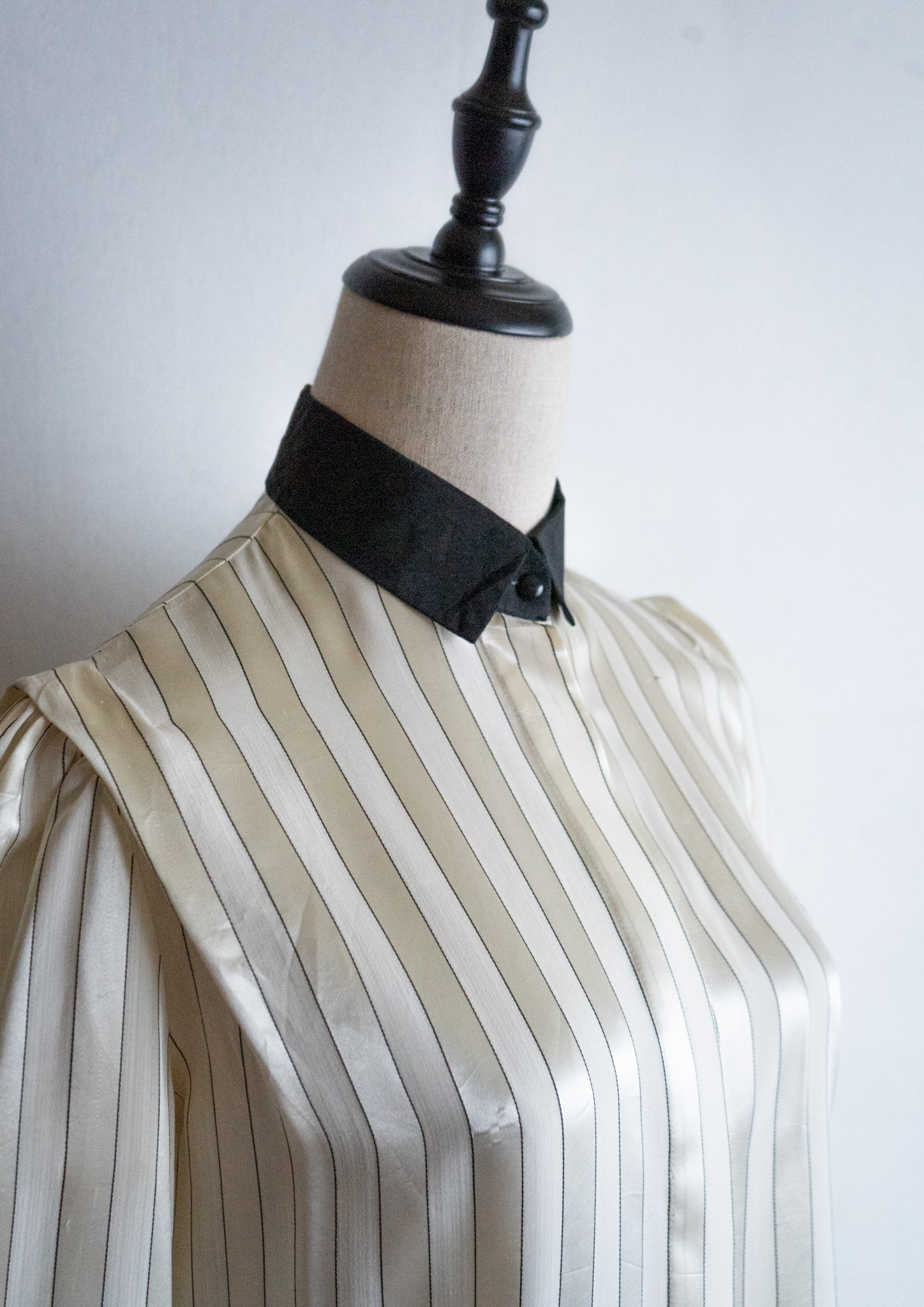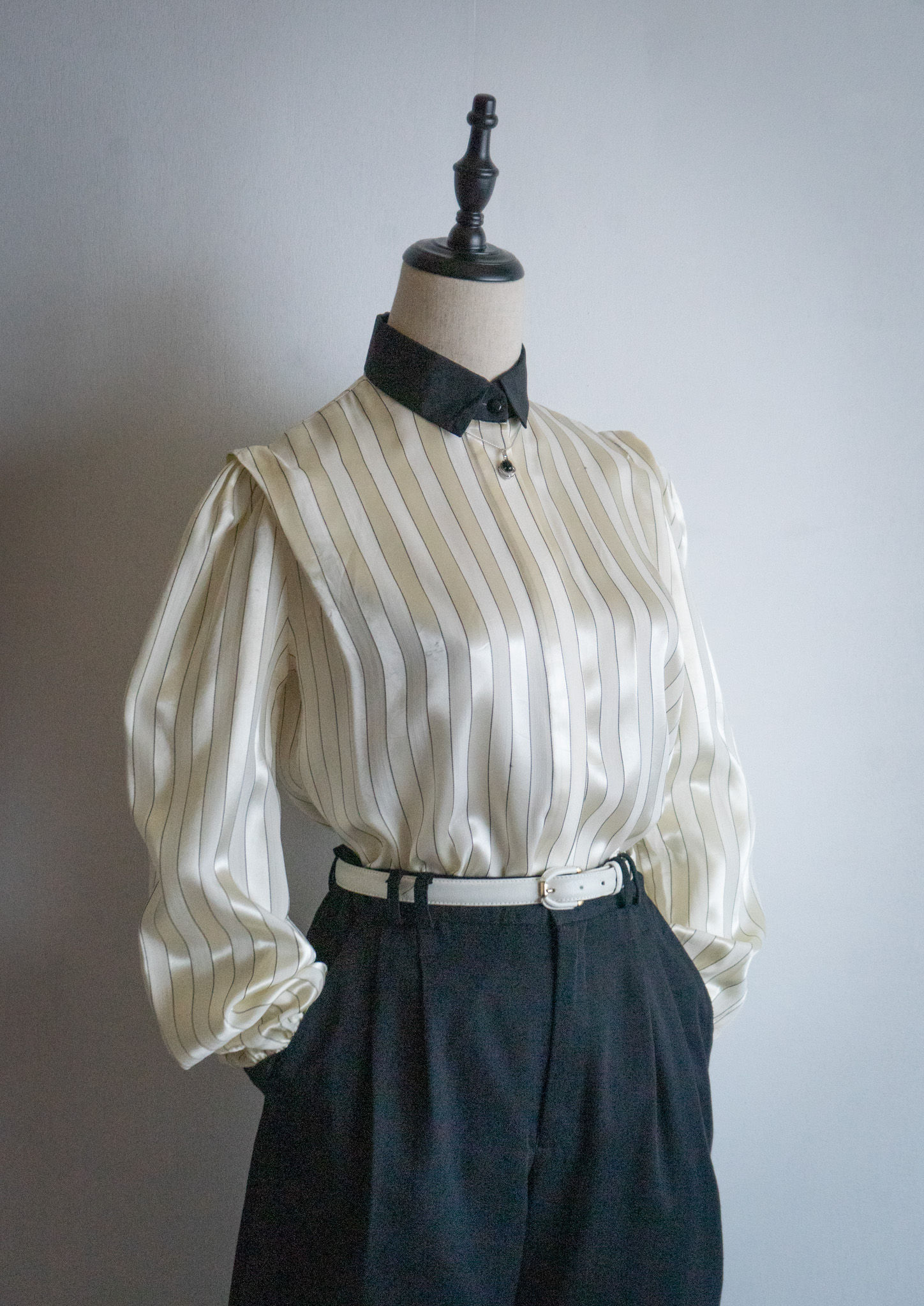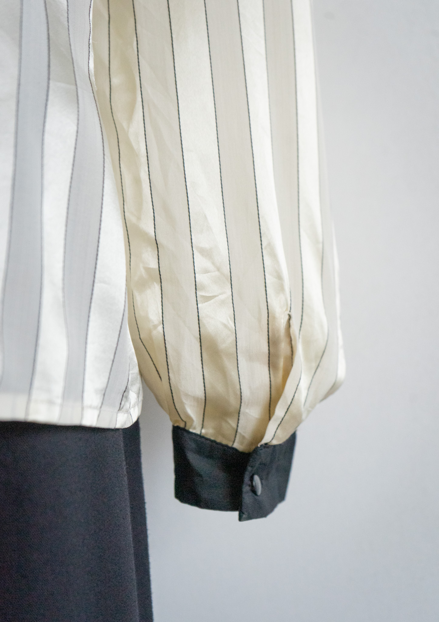70's USA Glossy Stripe × Dot Pattern Bow-tie Ivory Blouse