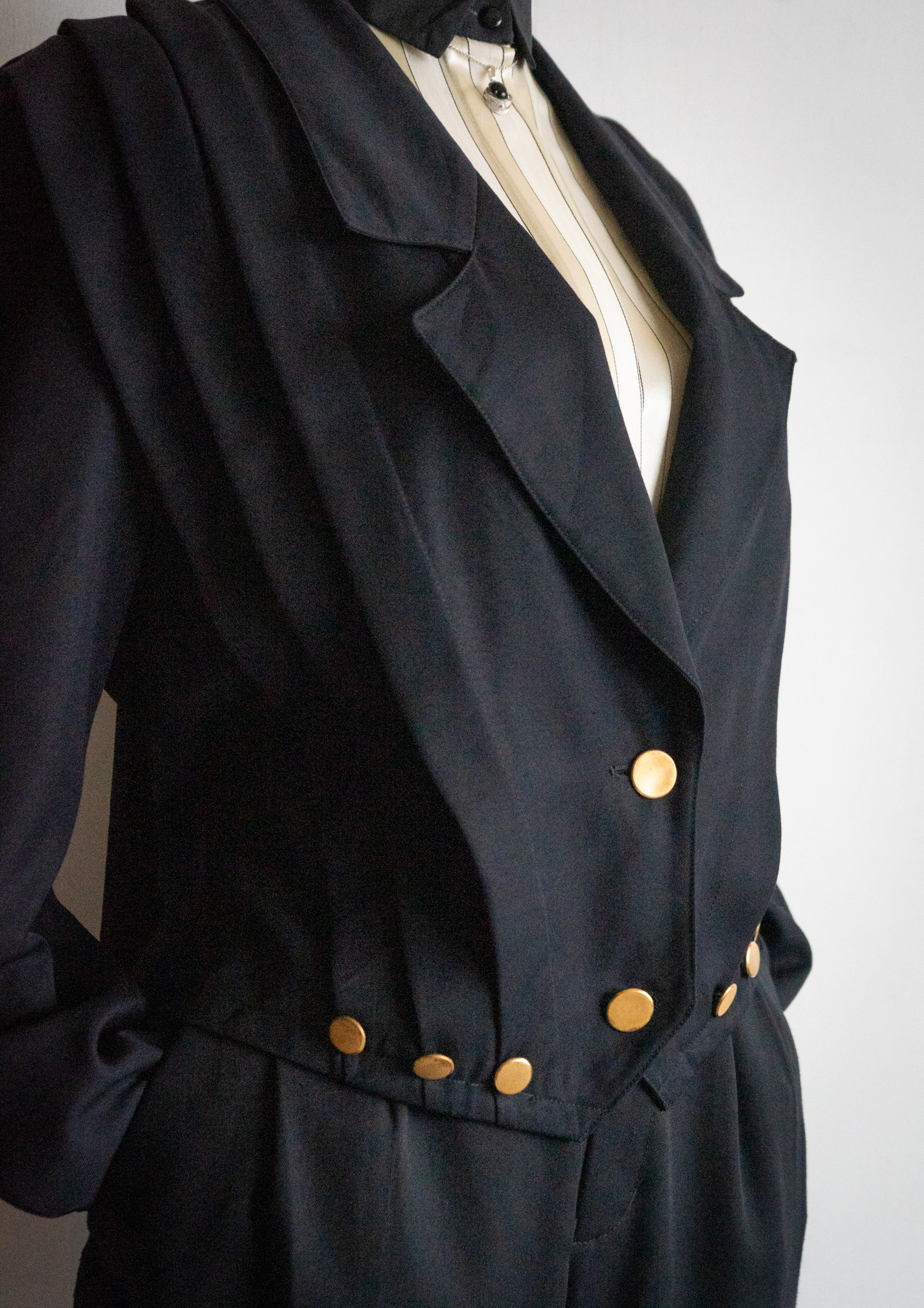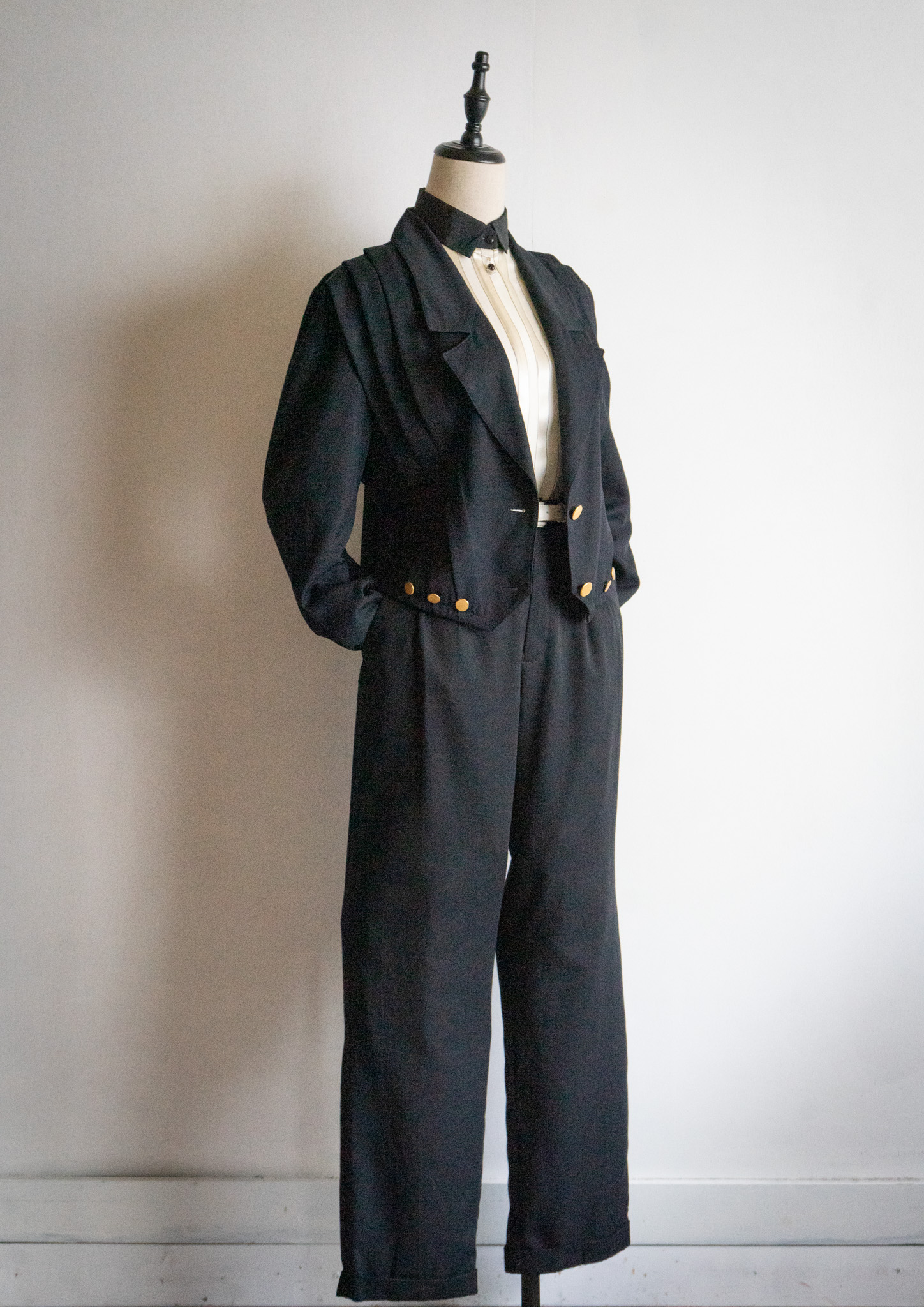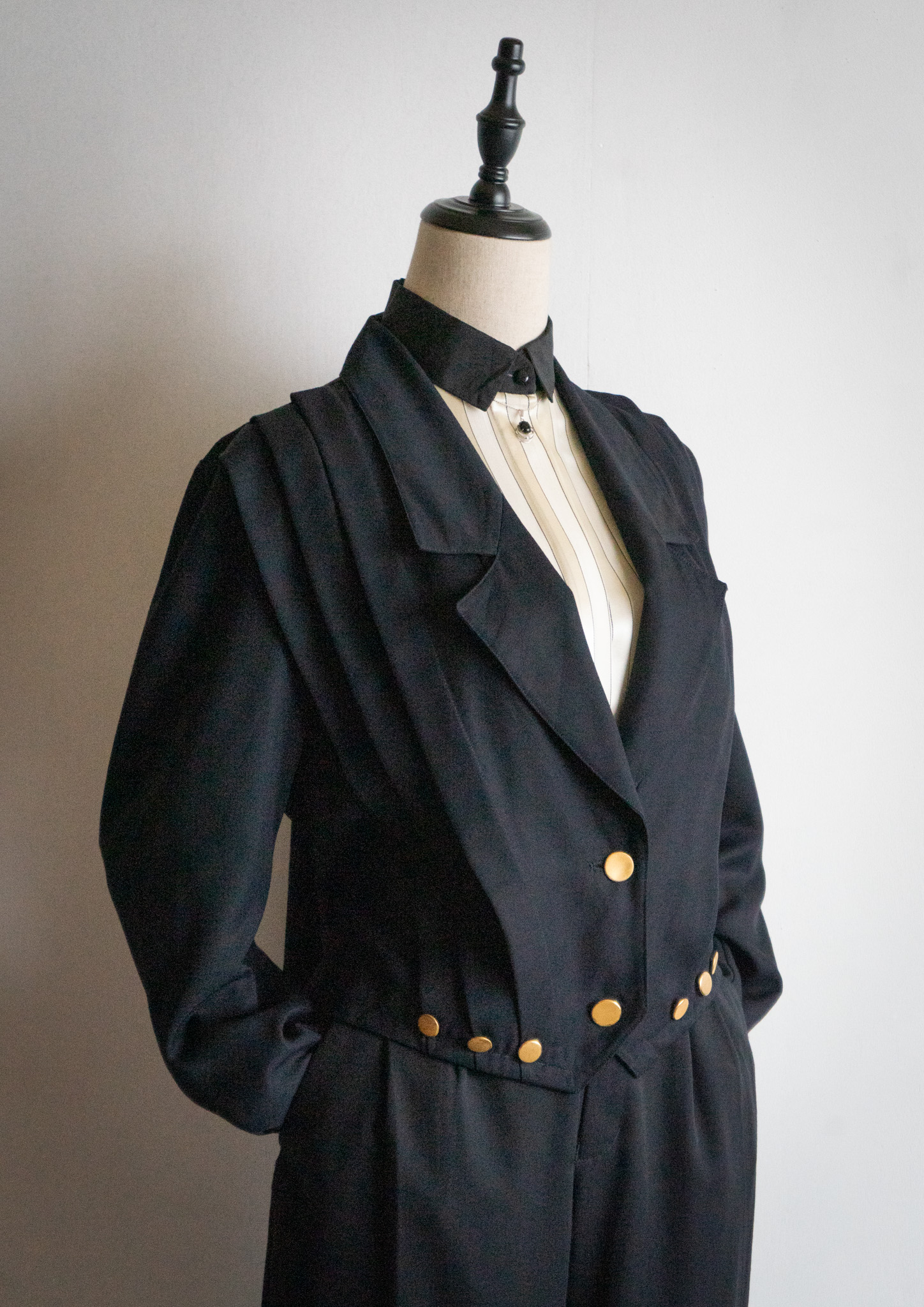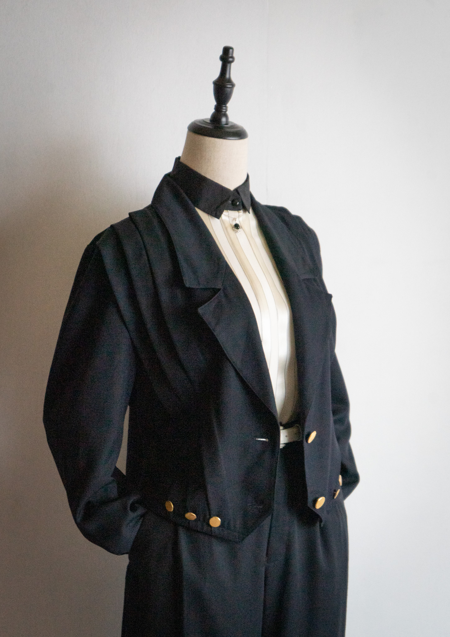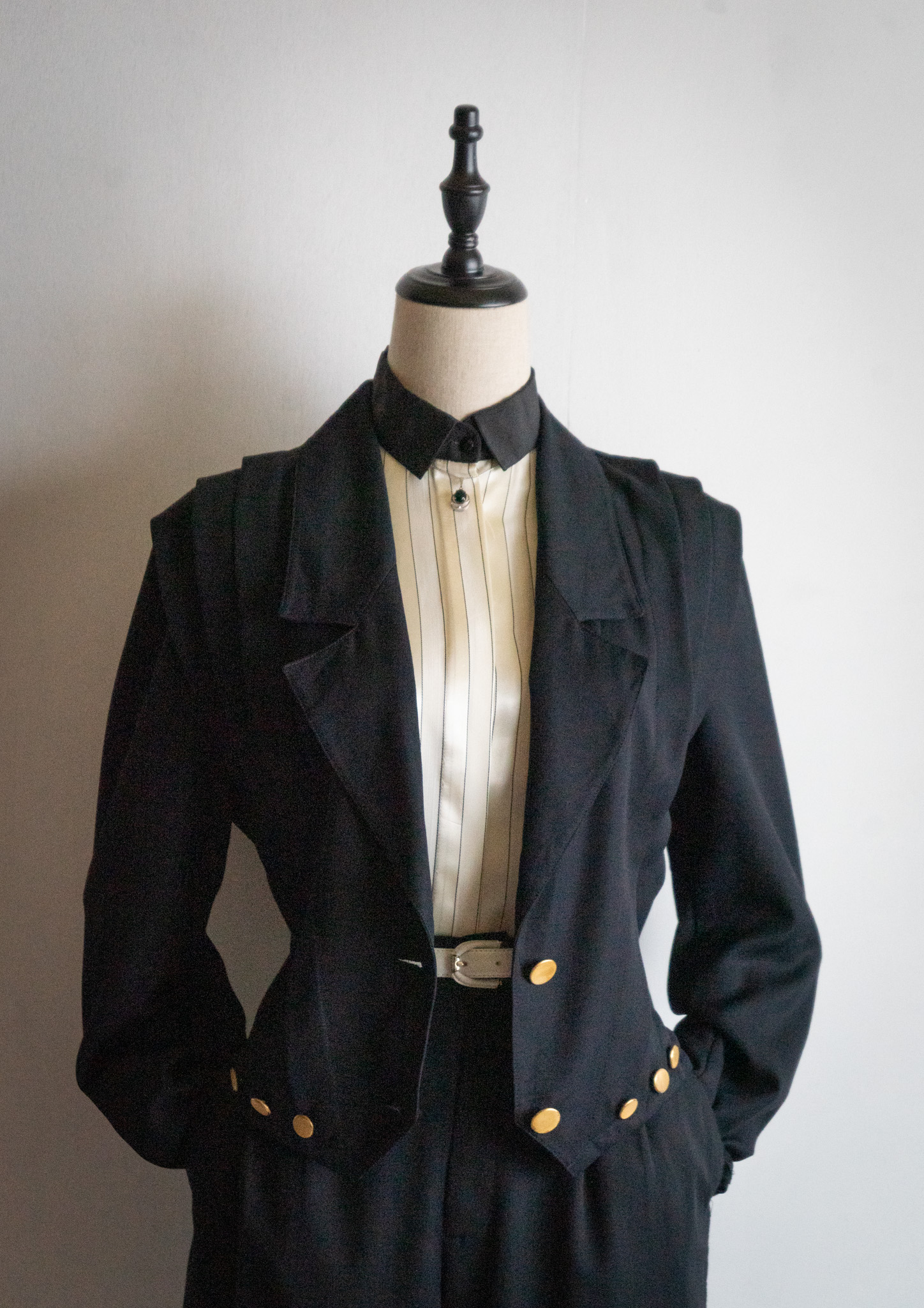 90's EuroTuck × Gold Button Design black Cropped Jacket