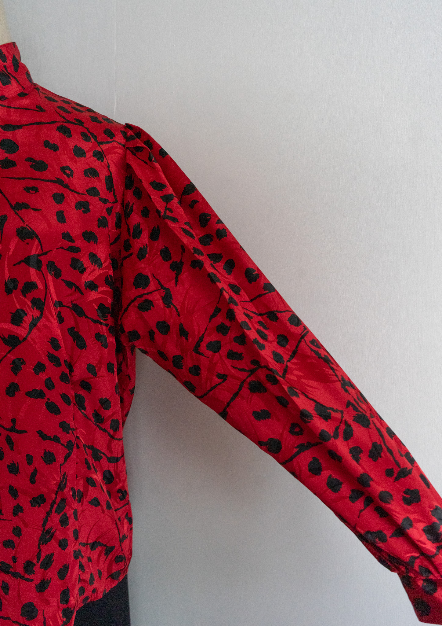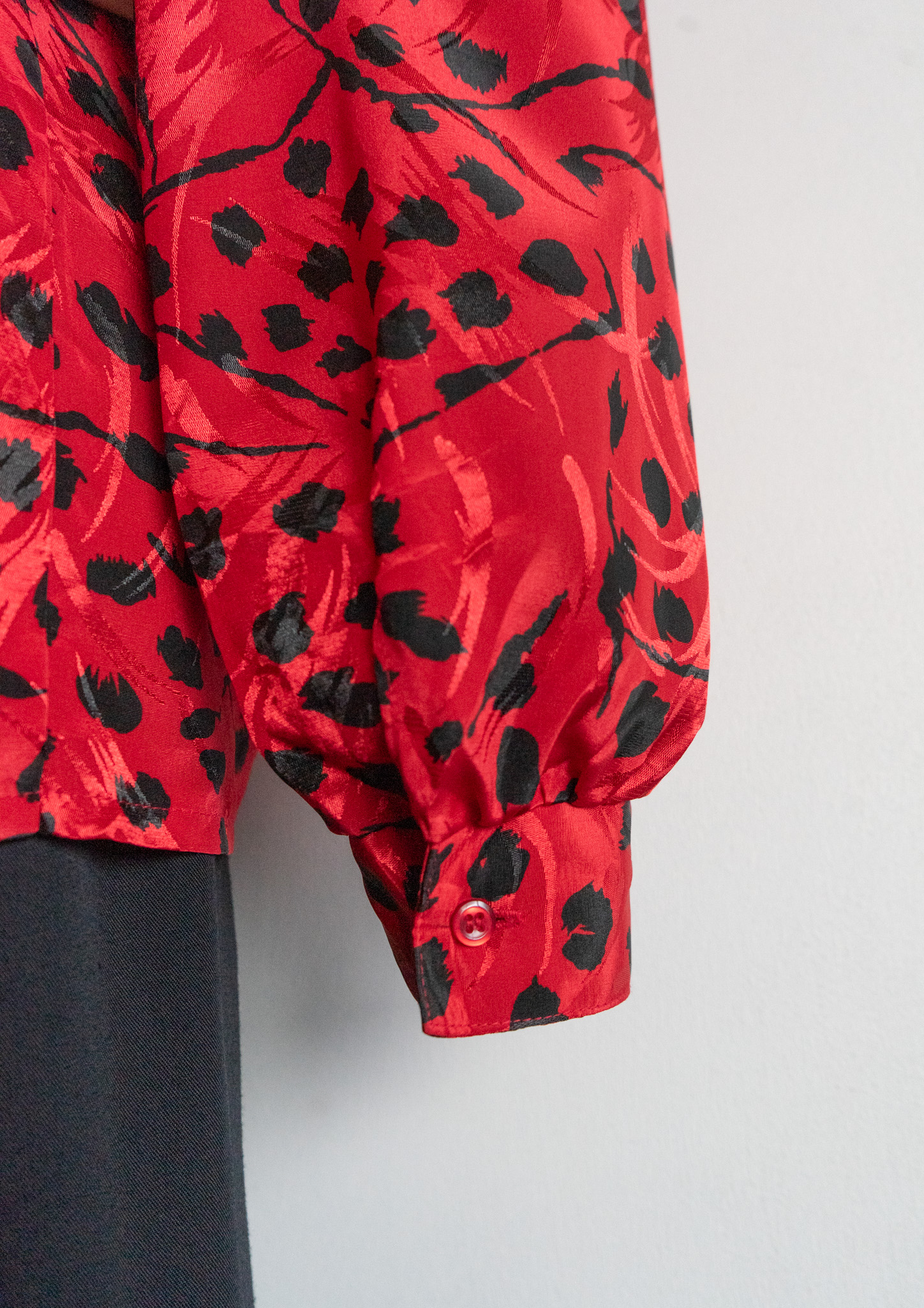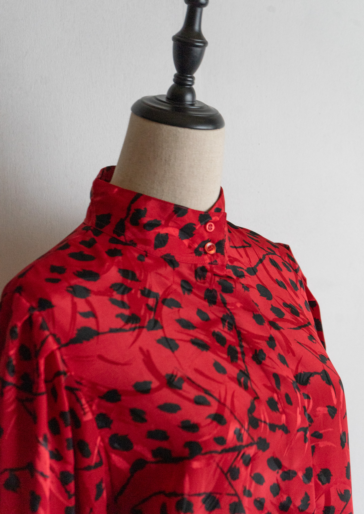 80~90's Euro C&A Black Art Pattern Glossy Red Blouse