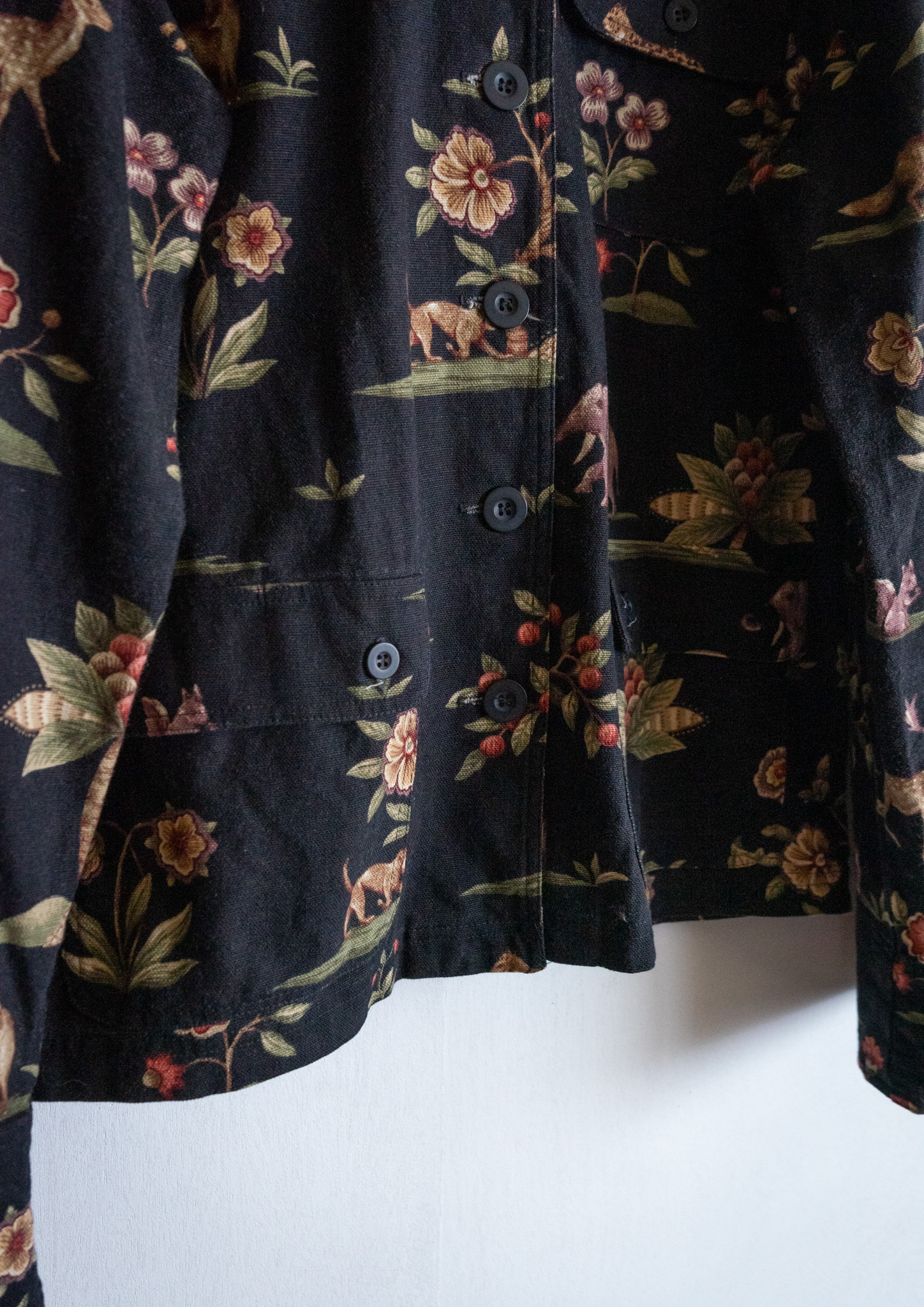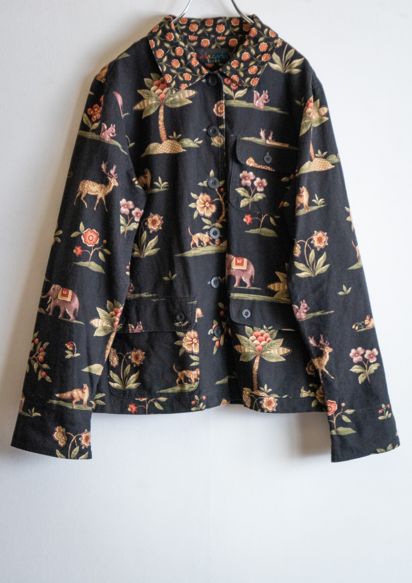80's Euro Mustard Color Linning Black Wool Tailored Jacket