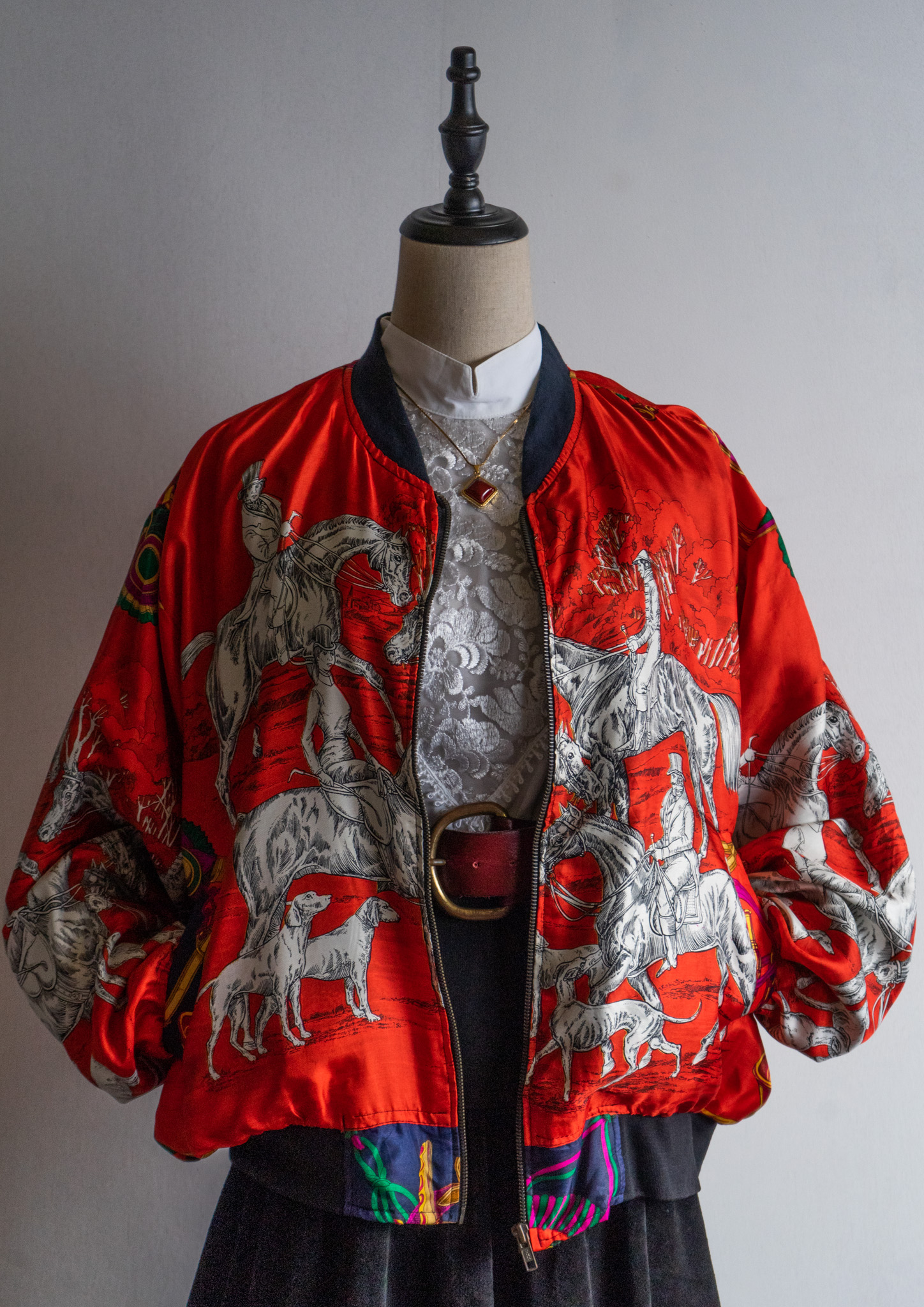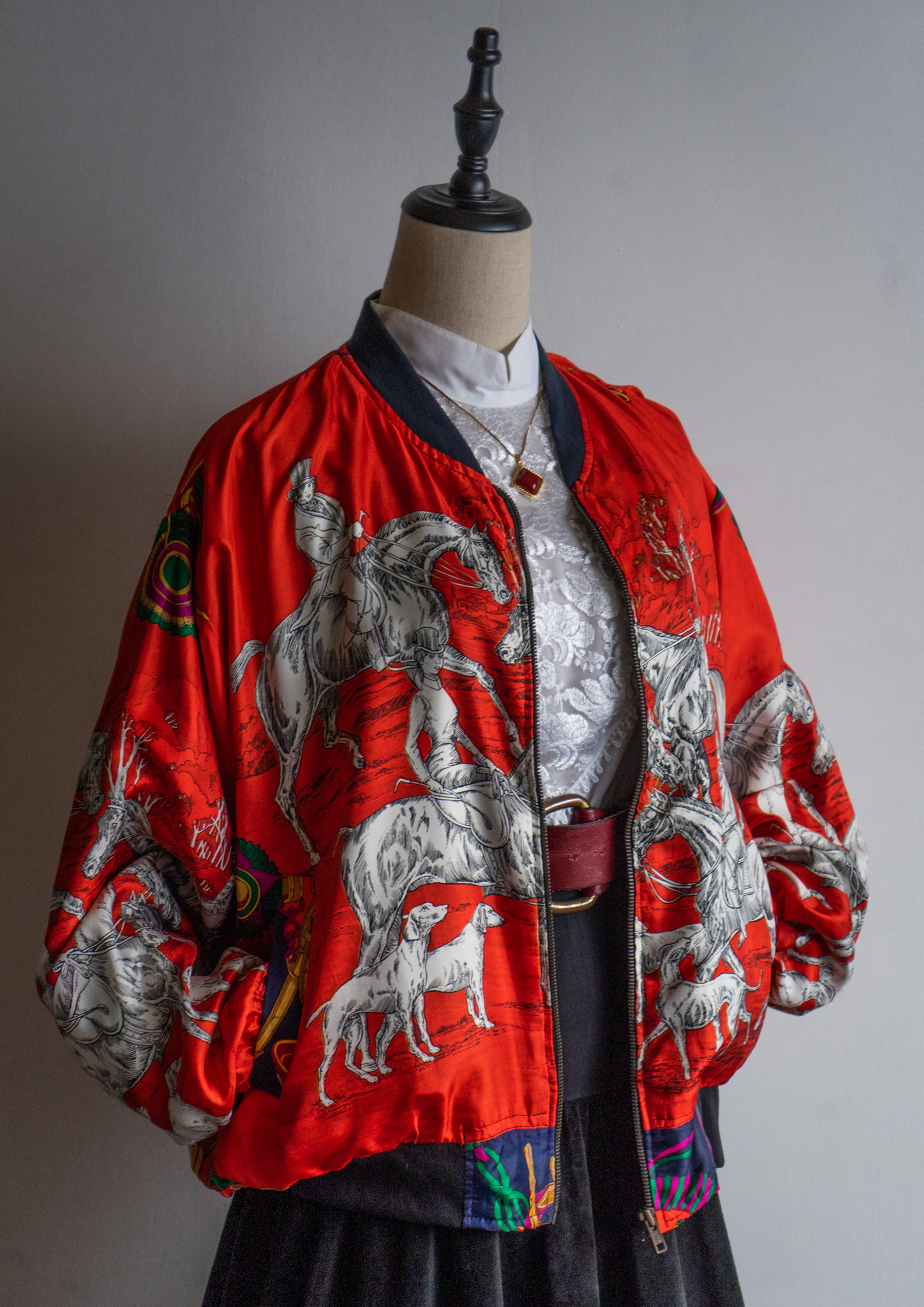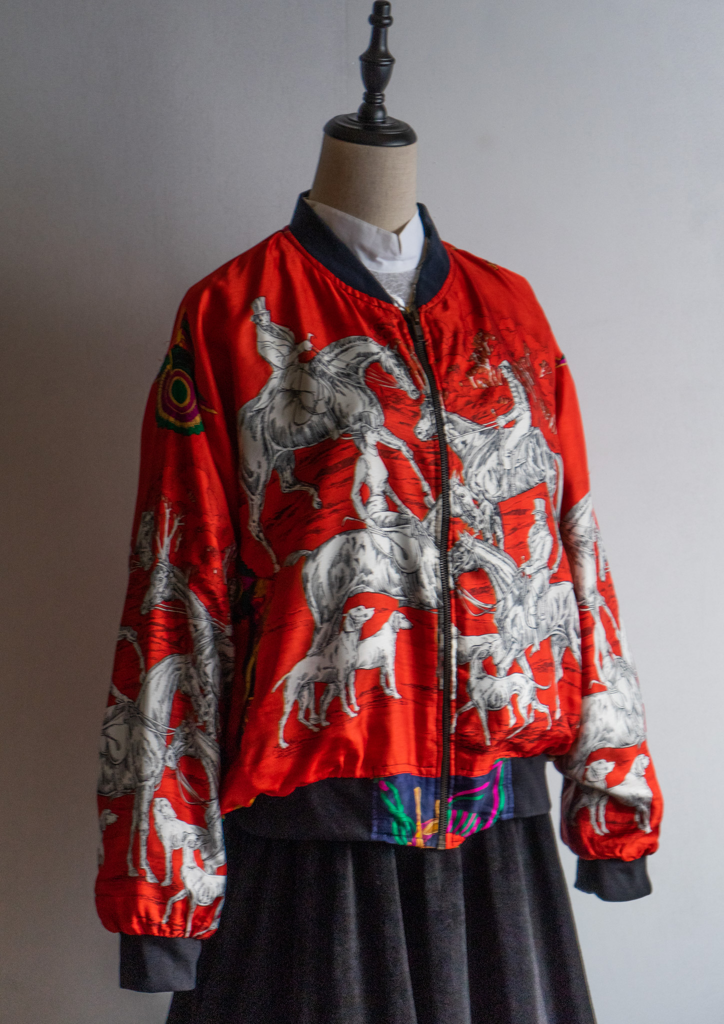 80's Bordeaux × Yellow Orcher Art Pattern Jacket