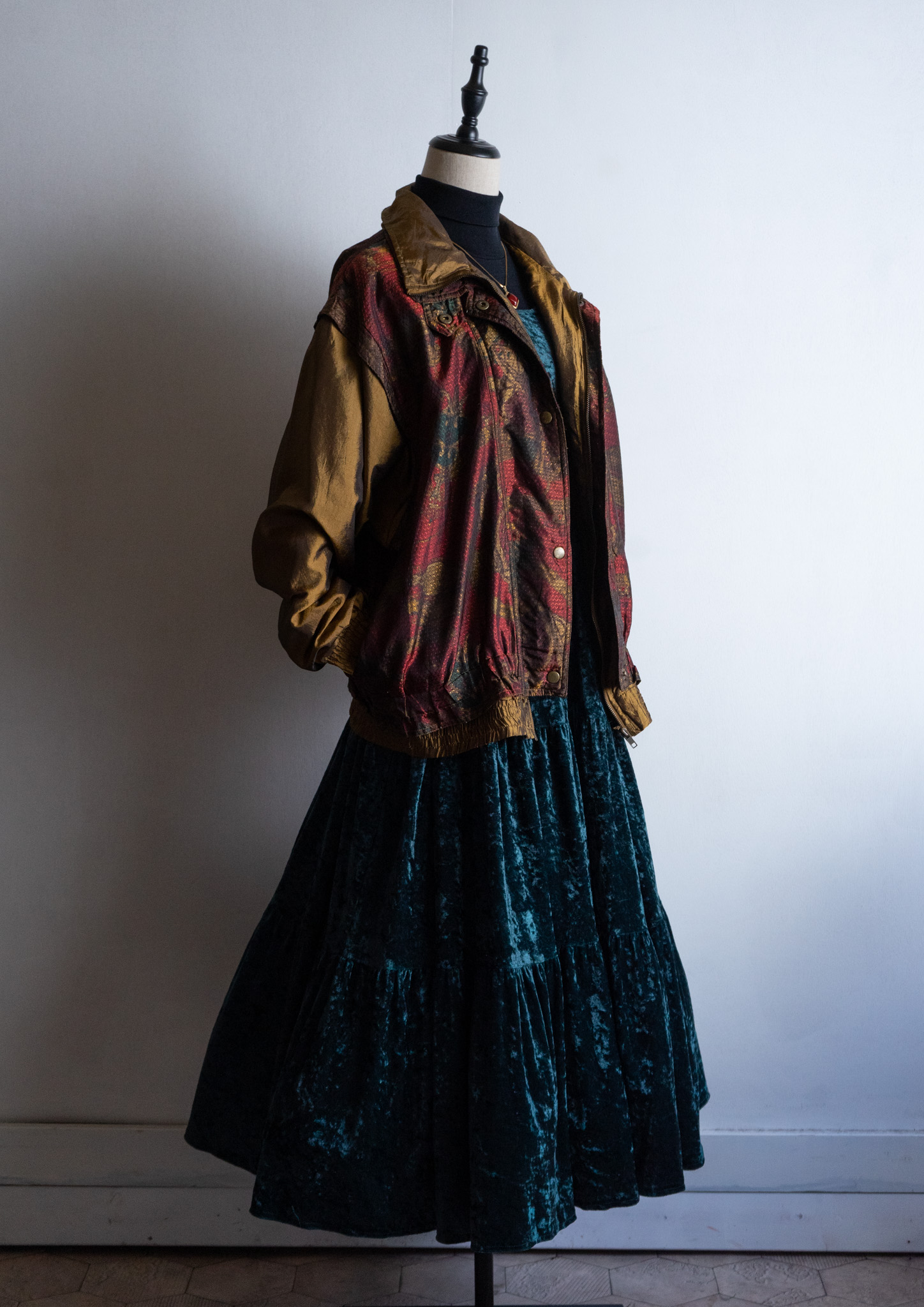 70~80's Leaf × Flower Pattern Brown Maxi Dress