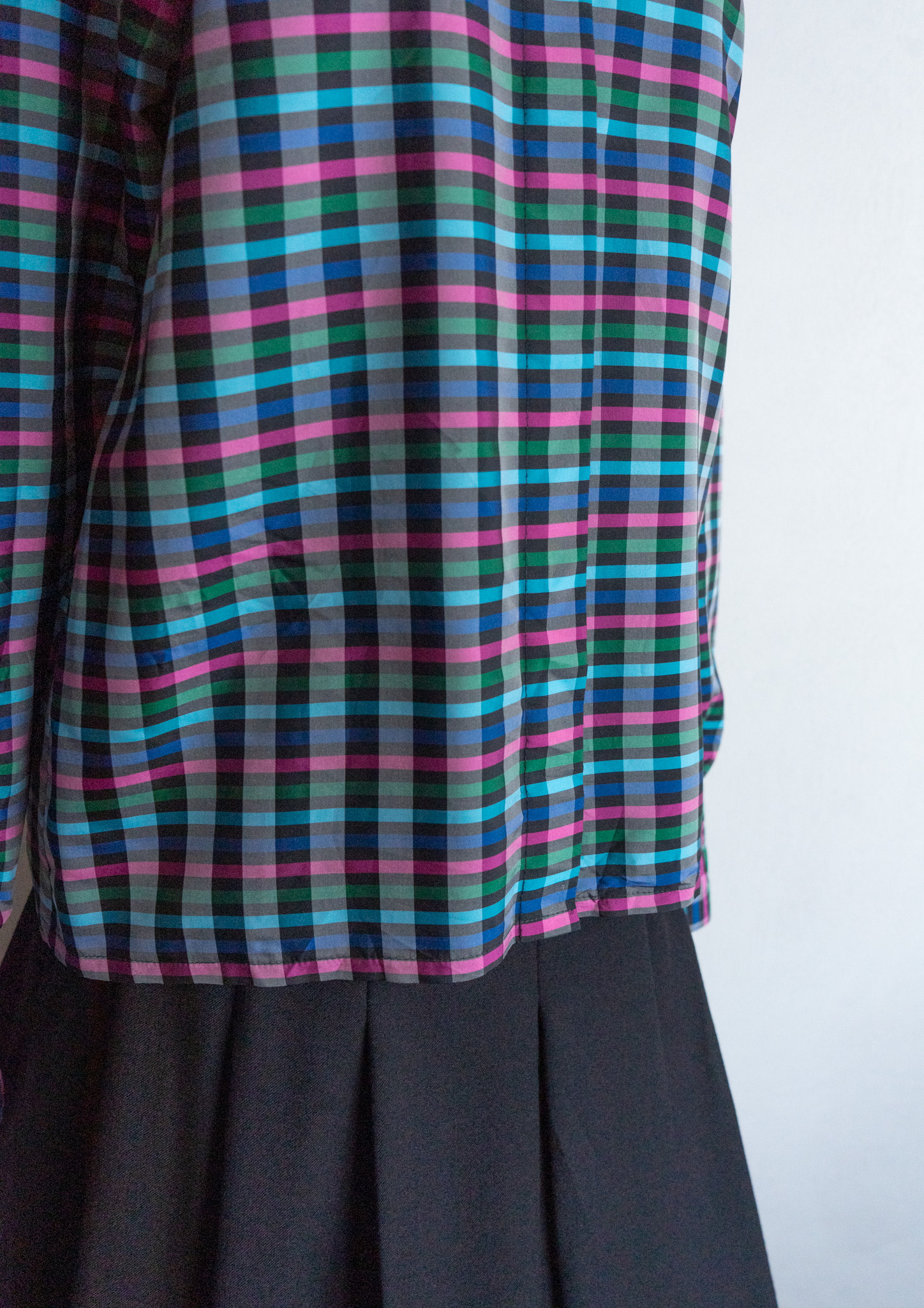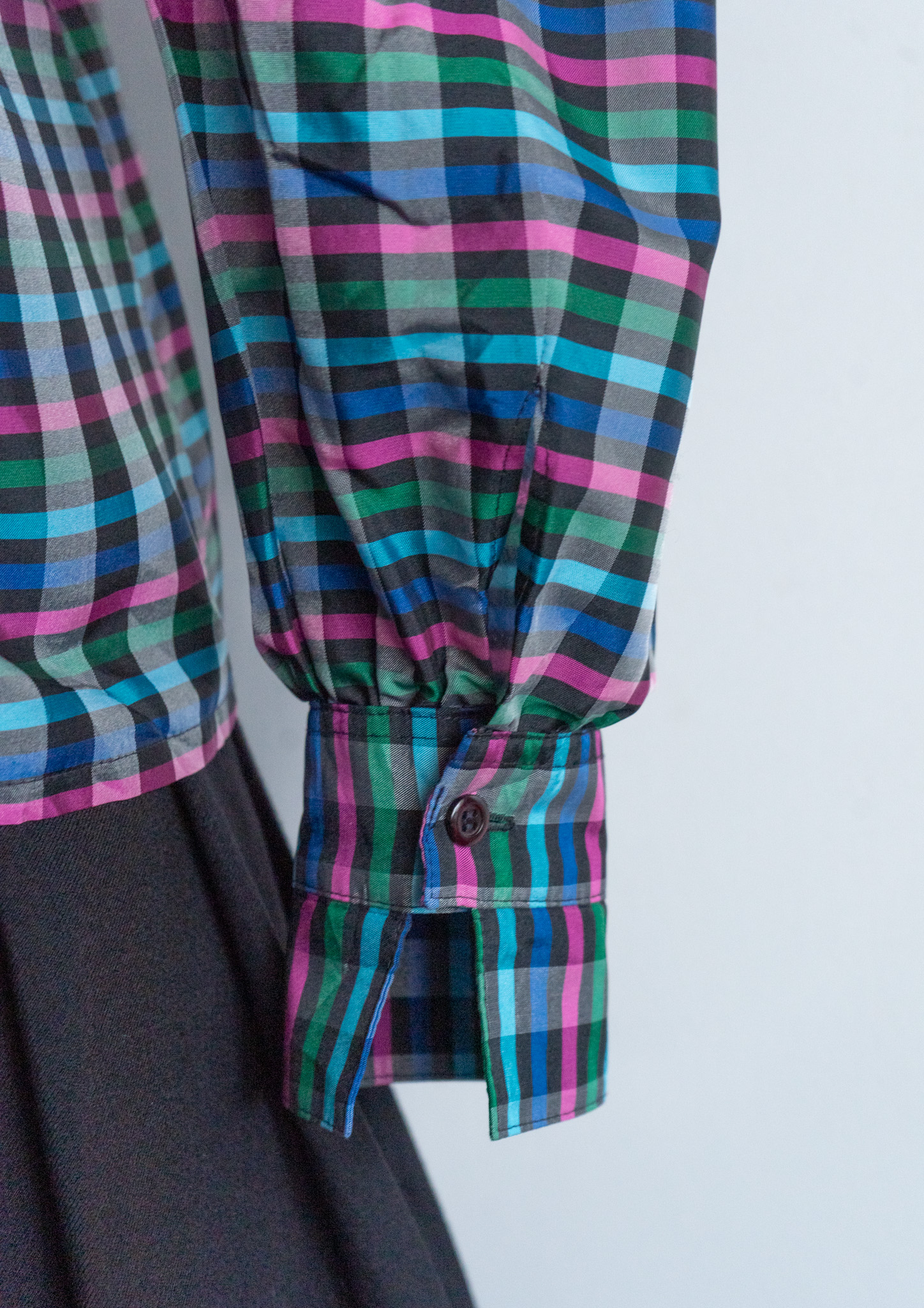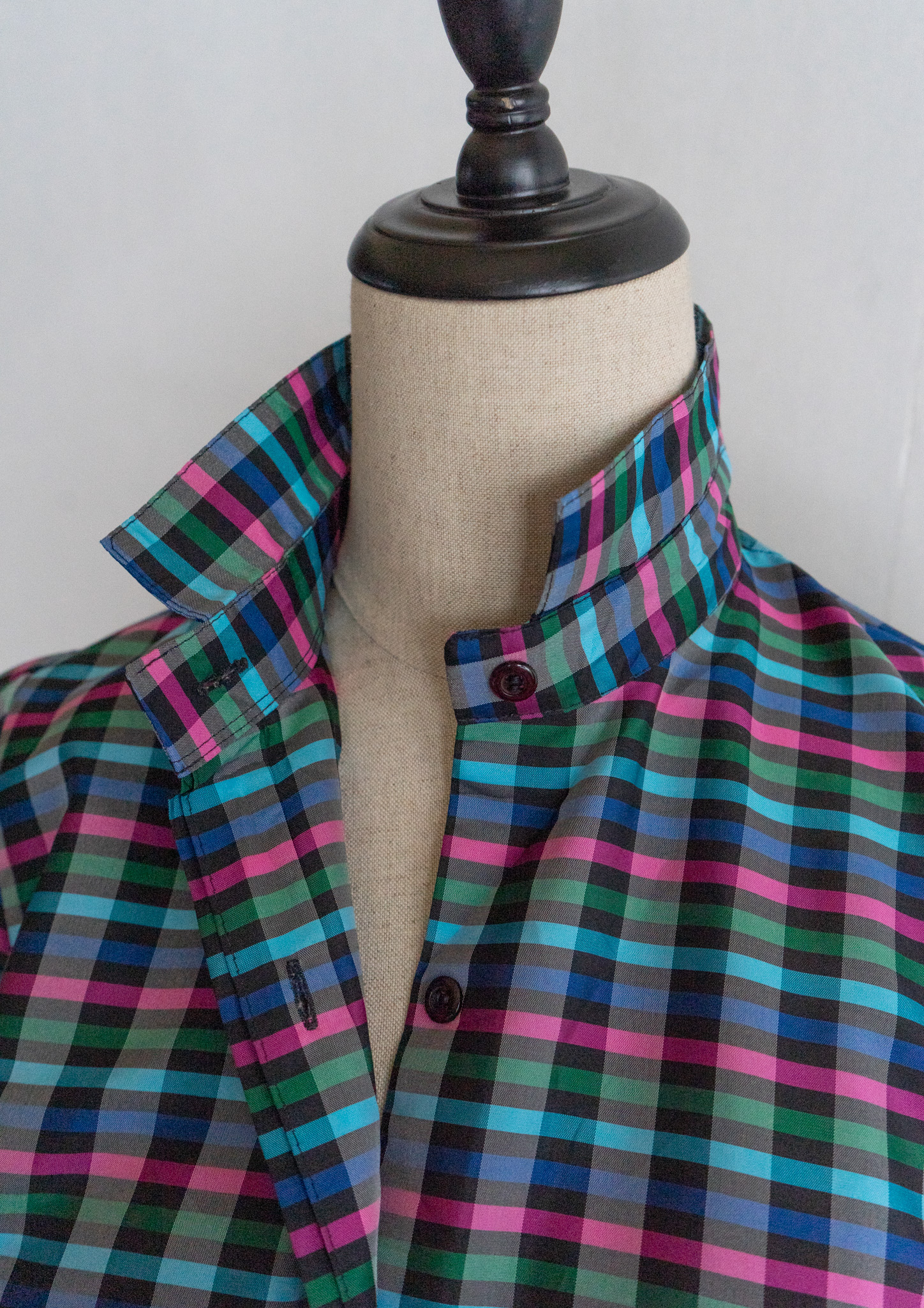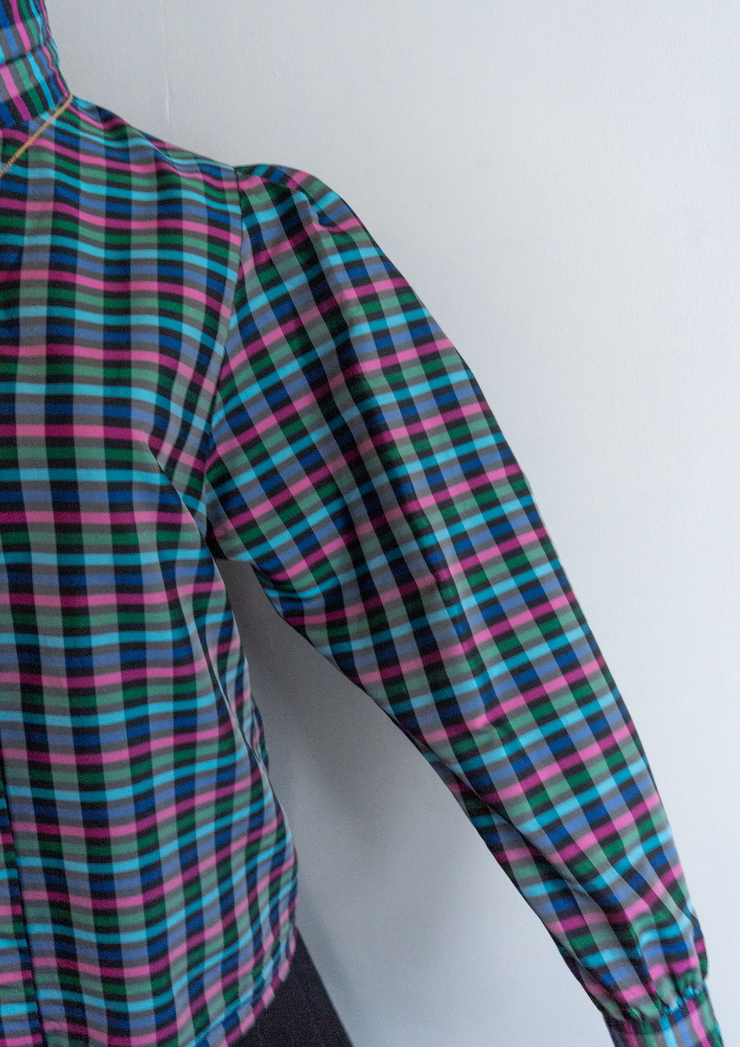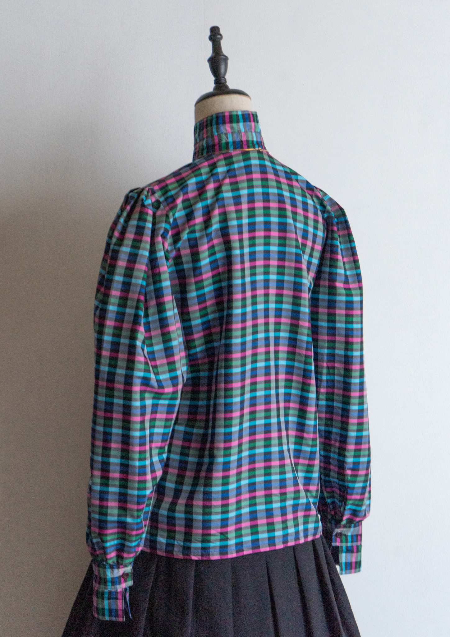 80’s Denmark Stand Collar Colorful Check Pattern Blouse
