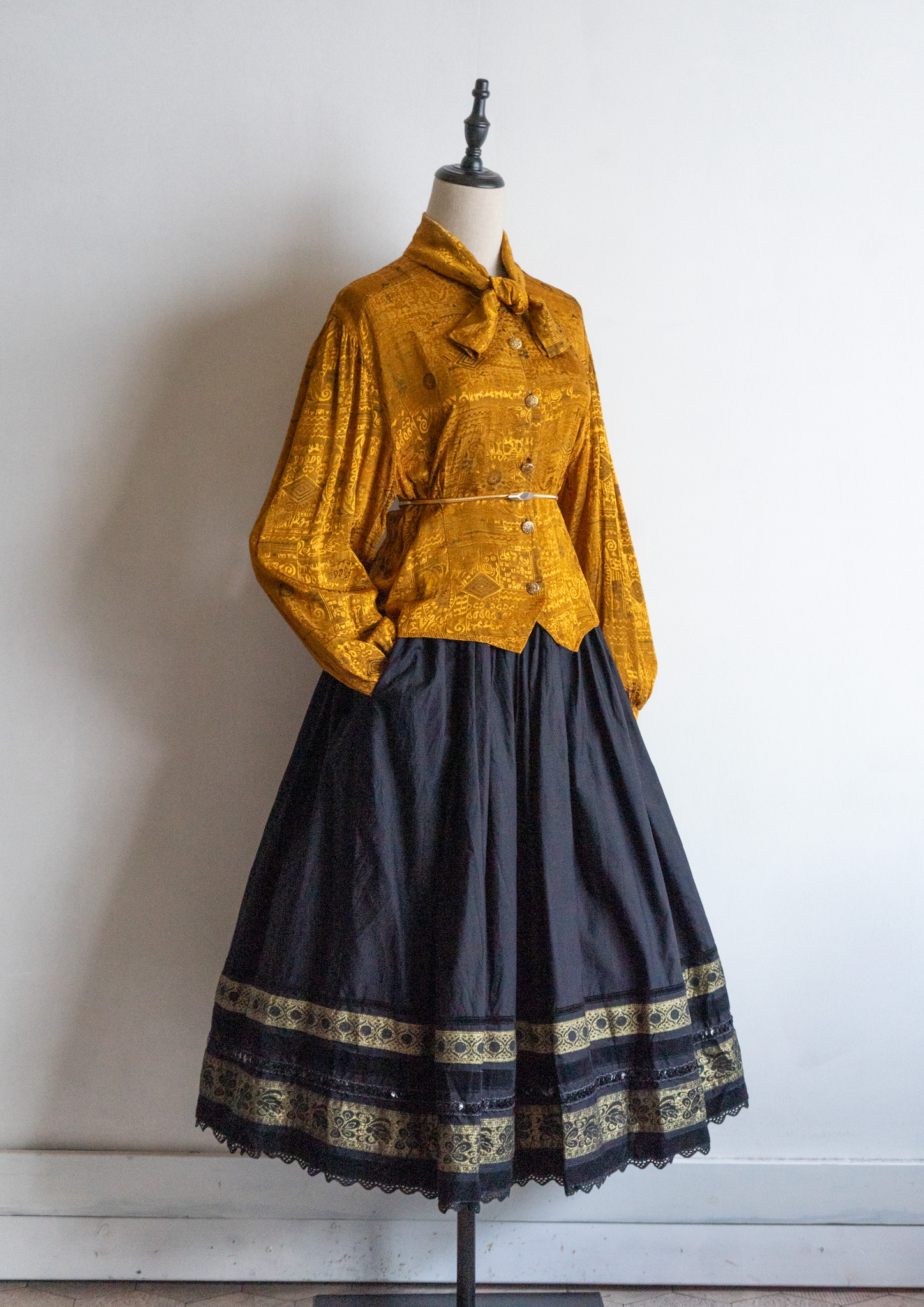 80’s W-Germany Unique Glossy Pattern Bow-tie Blouse