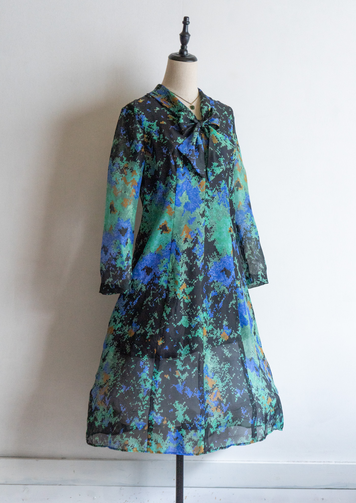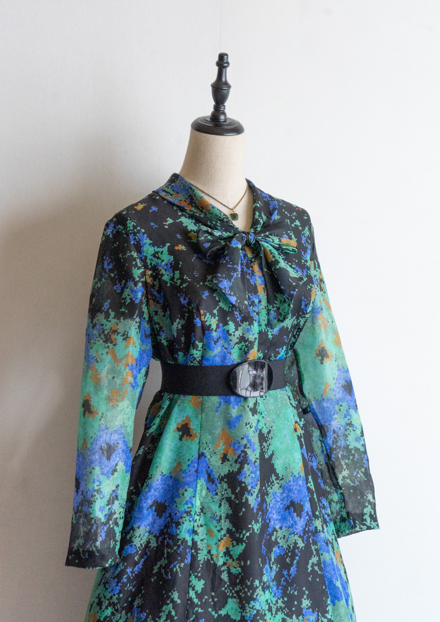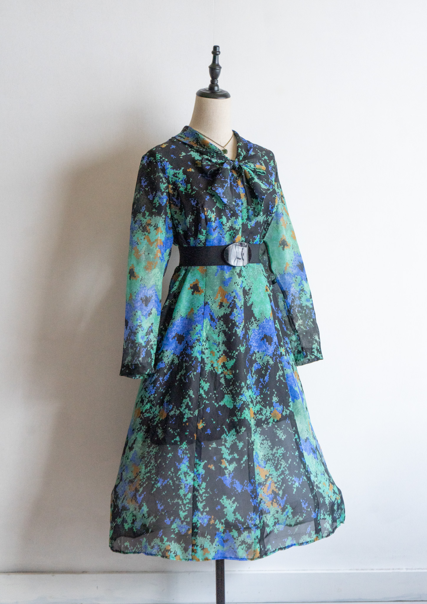 80’s Finland Gradation Art Pattern Bow-tie Dress
