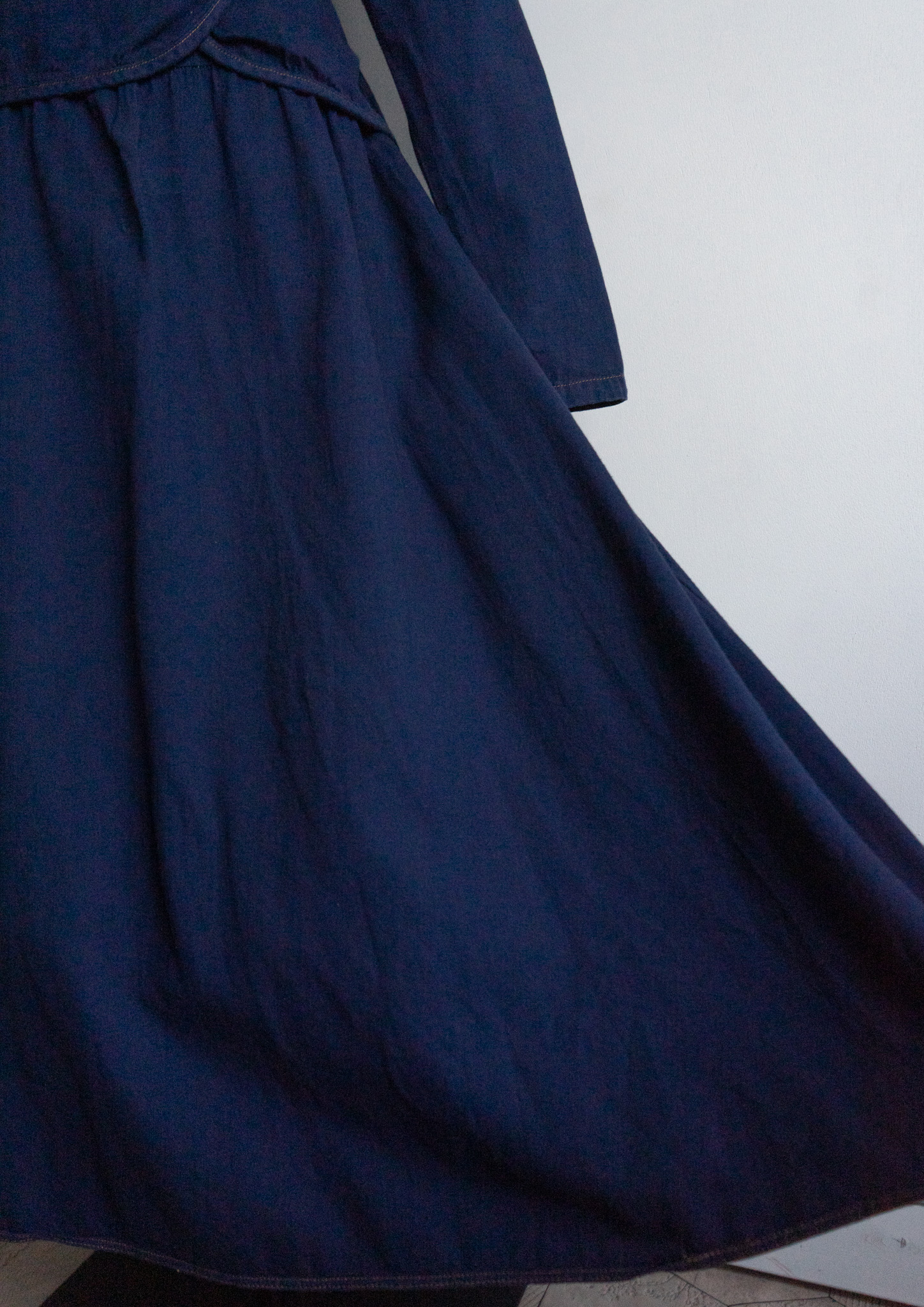 90’s Multi Tuck Design Small Flower Pattern Navy Dress