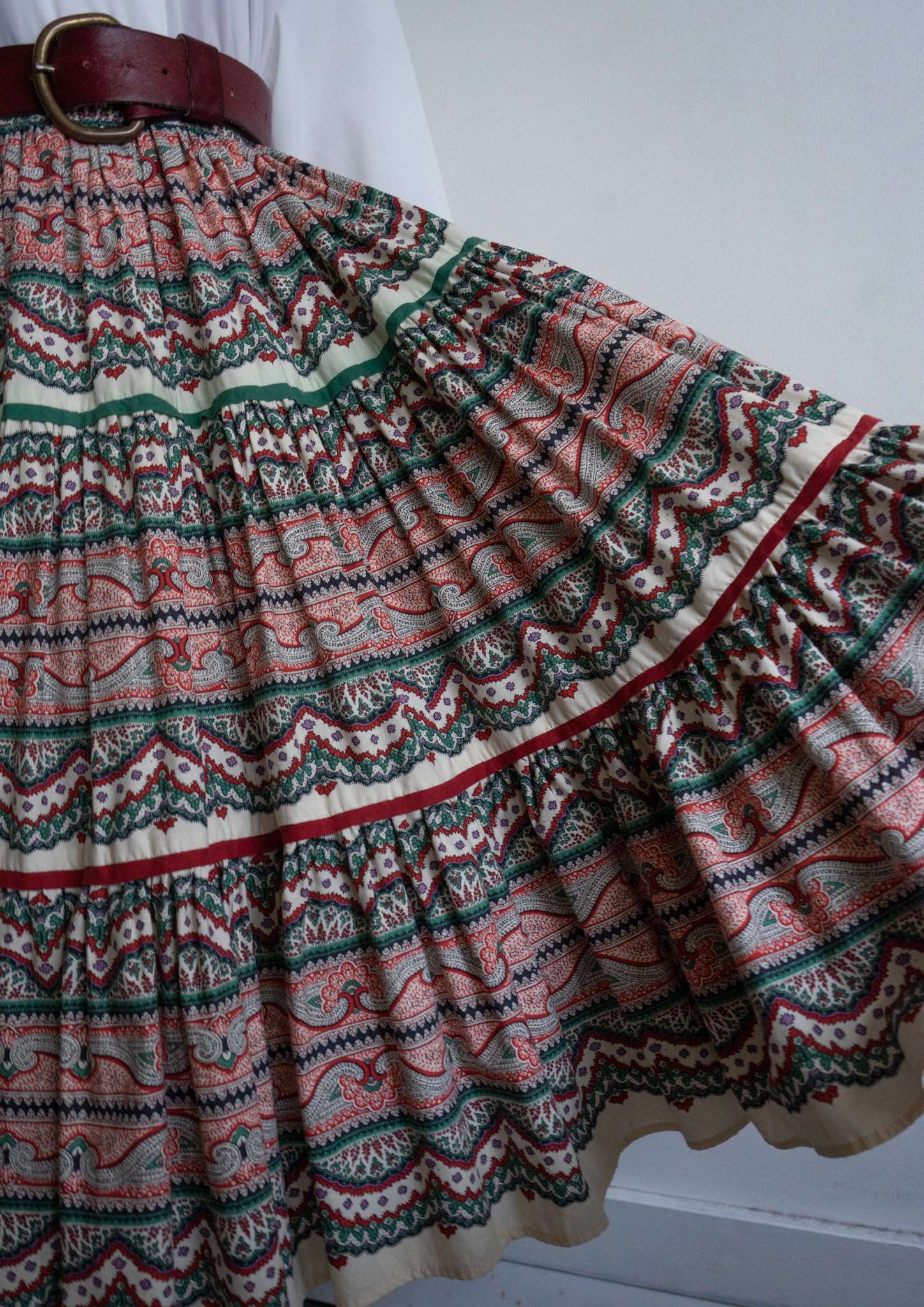 80's Dead Stock Colorful Native Pattern Tiered Skirt