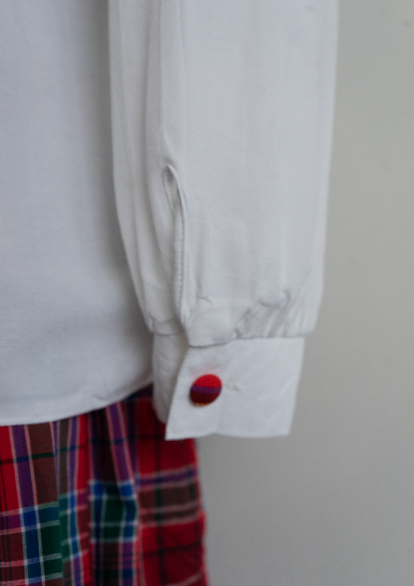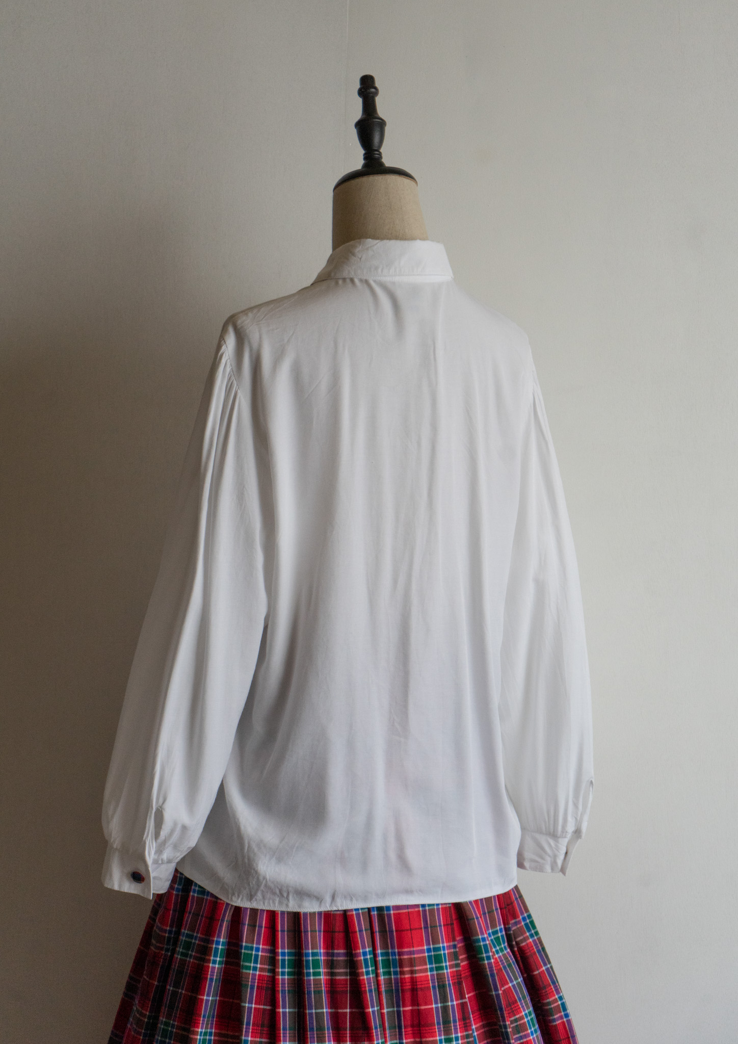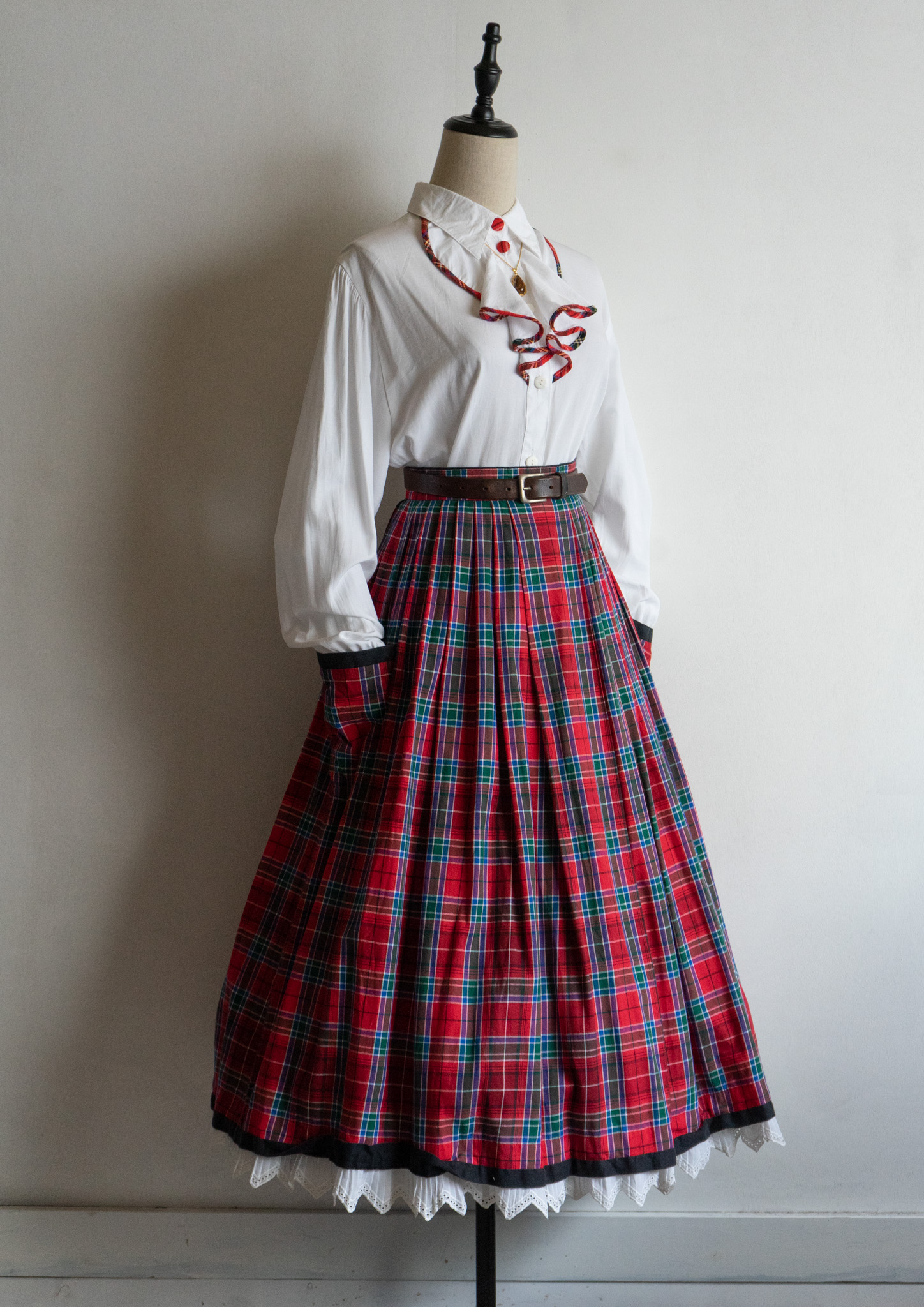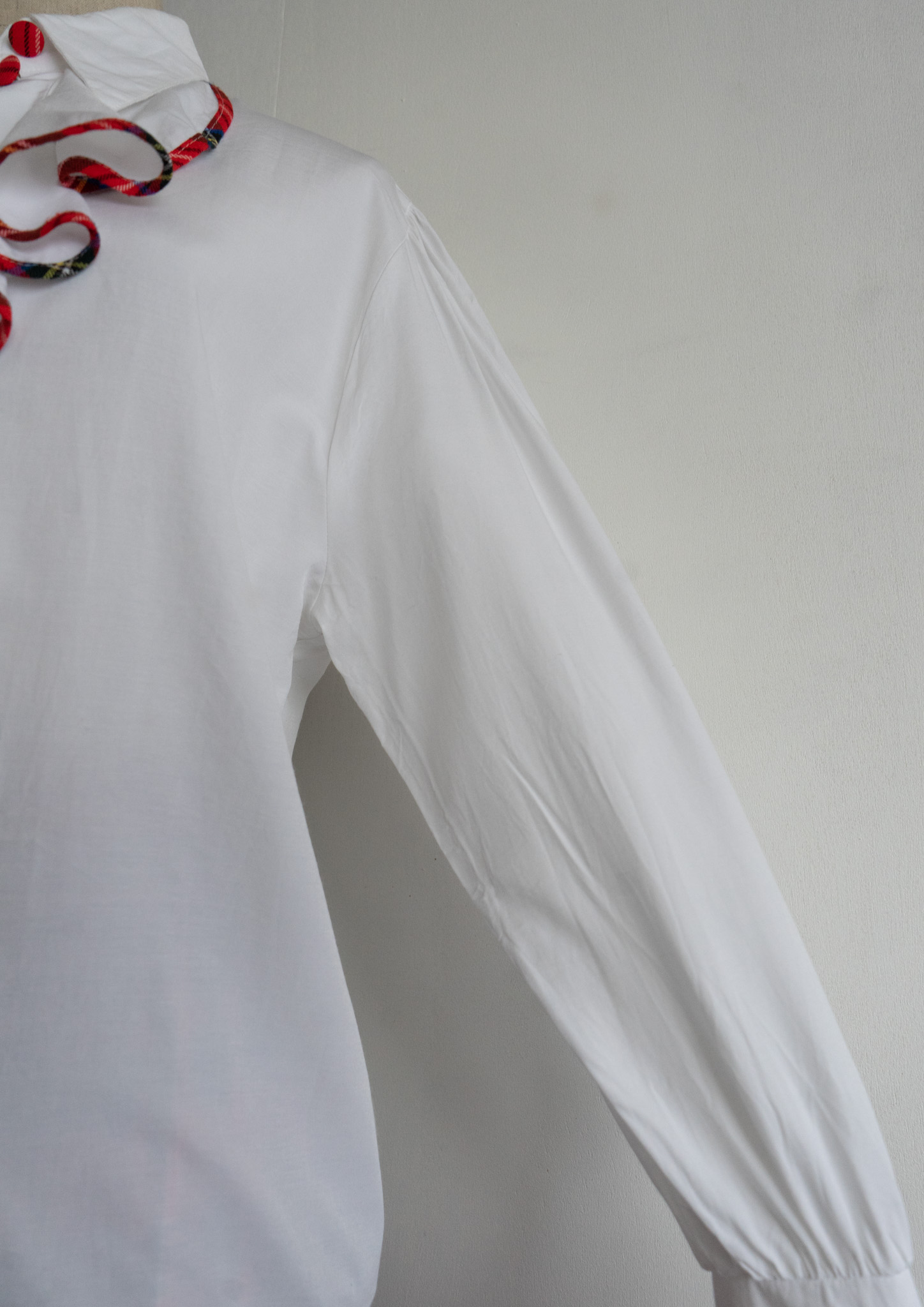 90’s C&A Red Check Piping Jabot Like Collar White Blouse