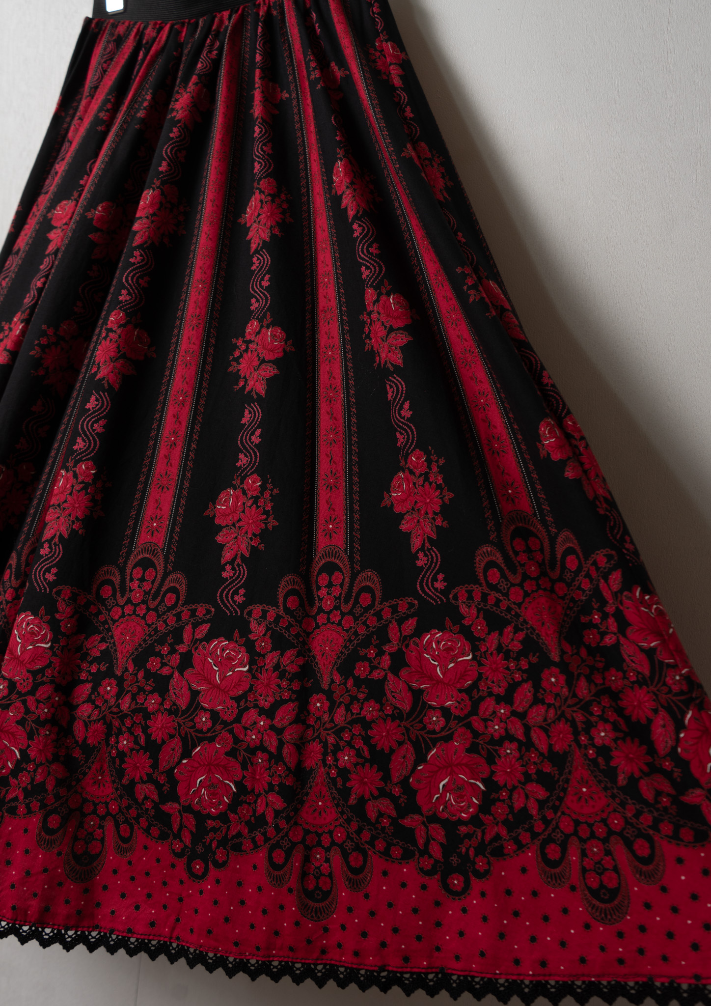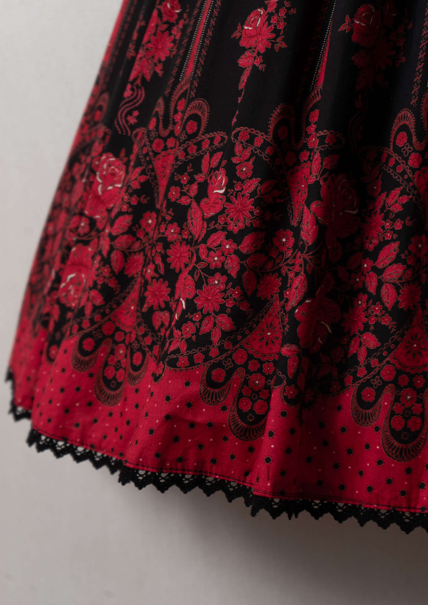90's Red Flower Pattern Tyrol Skirt