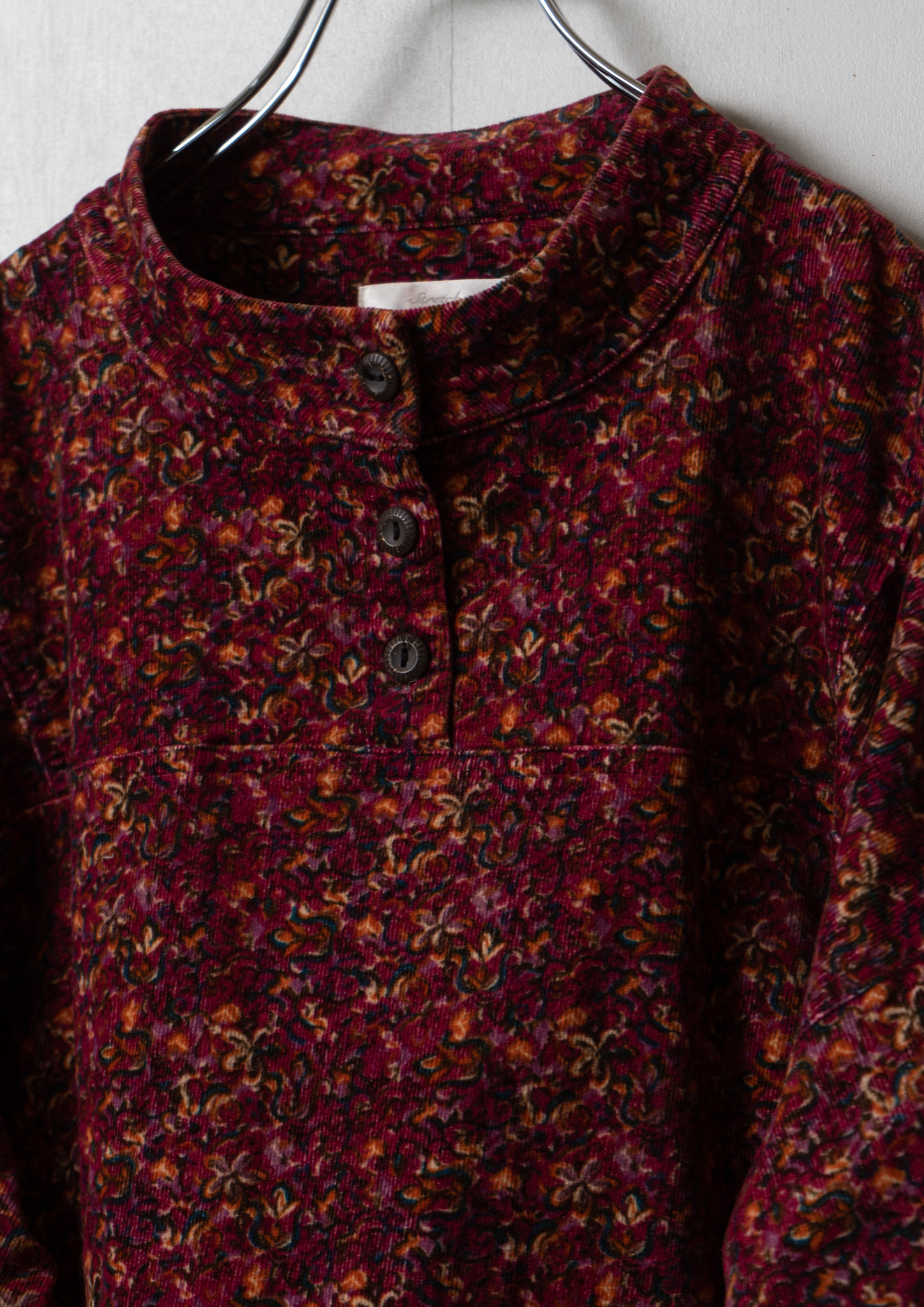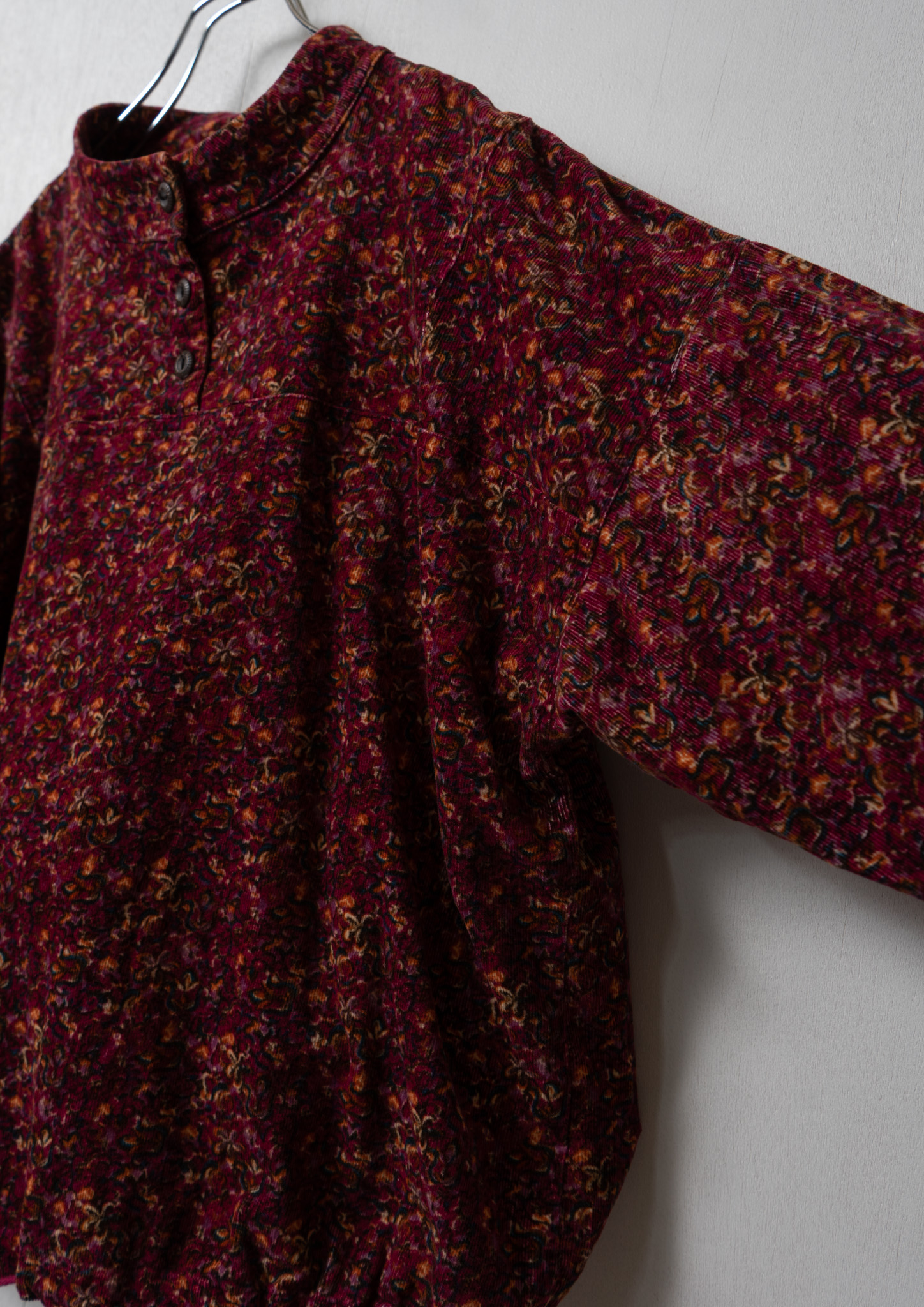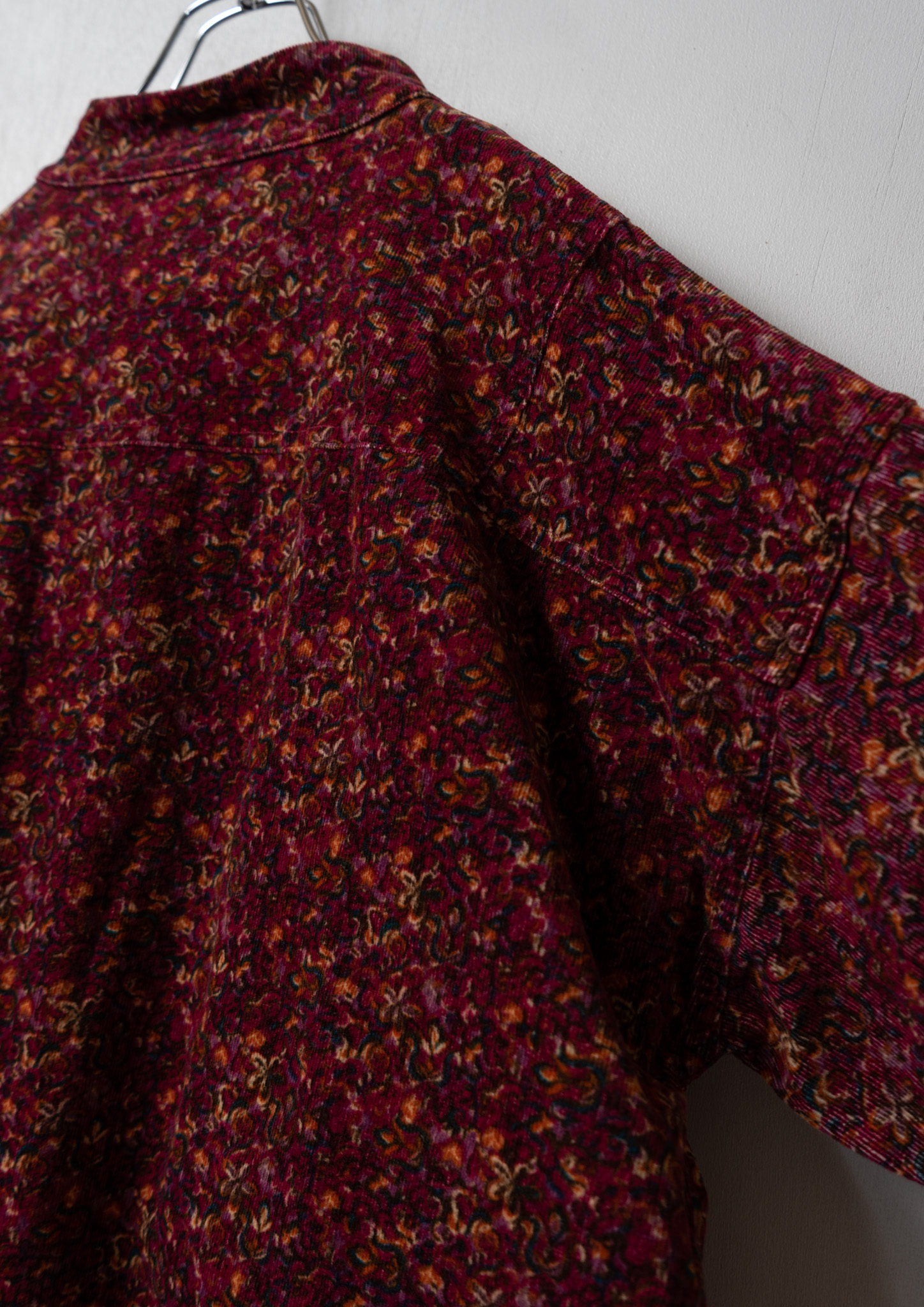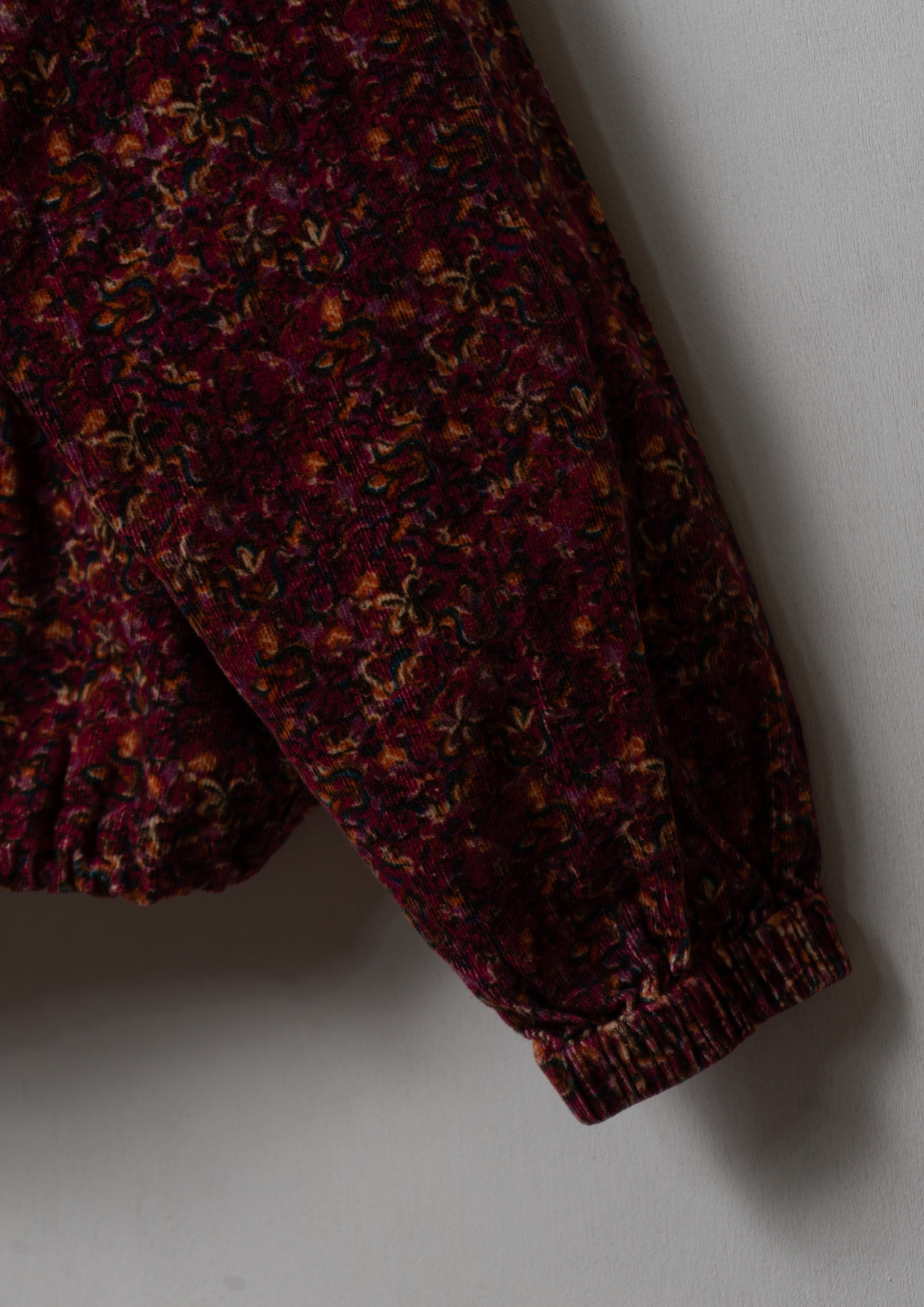 80's Botanical Pattern Bordeaux Corduroy Tops