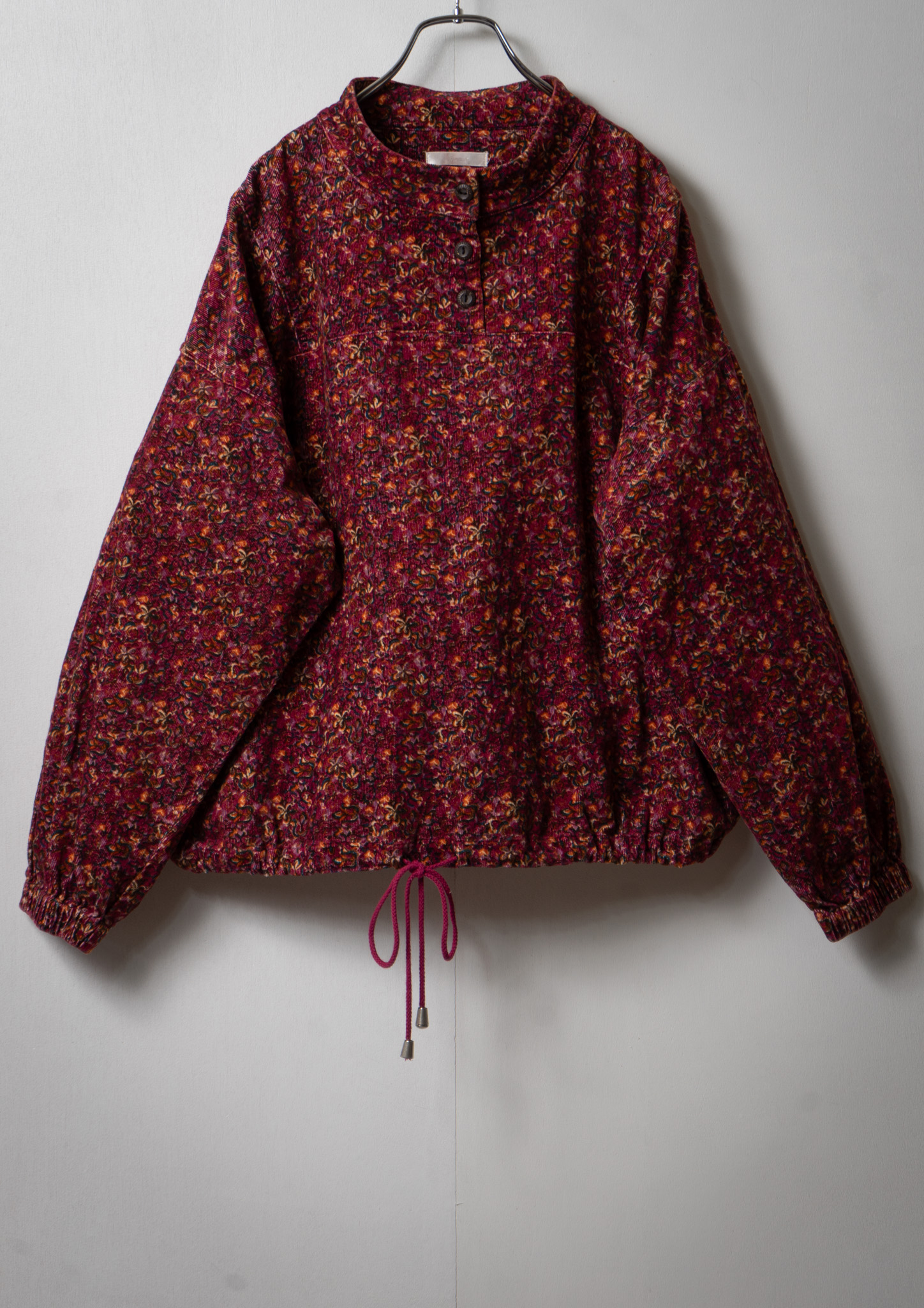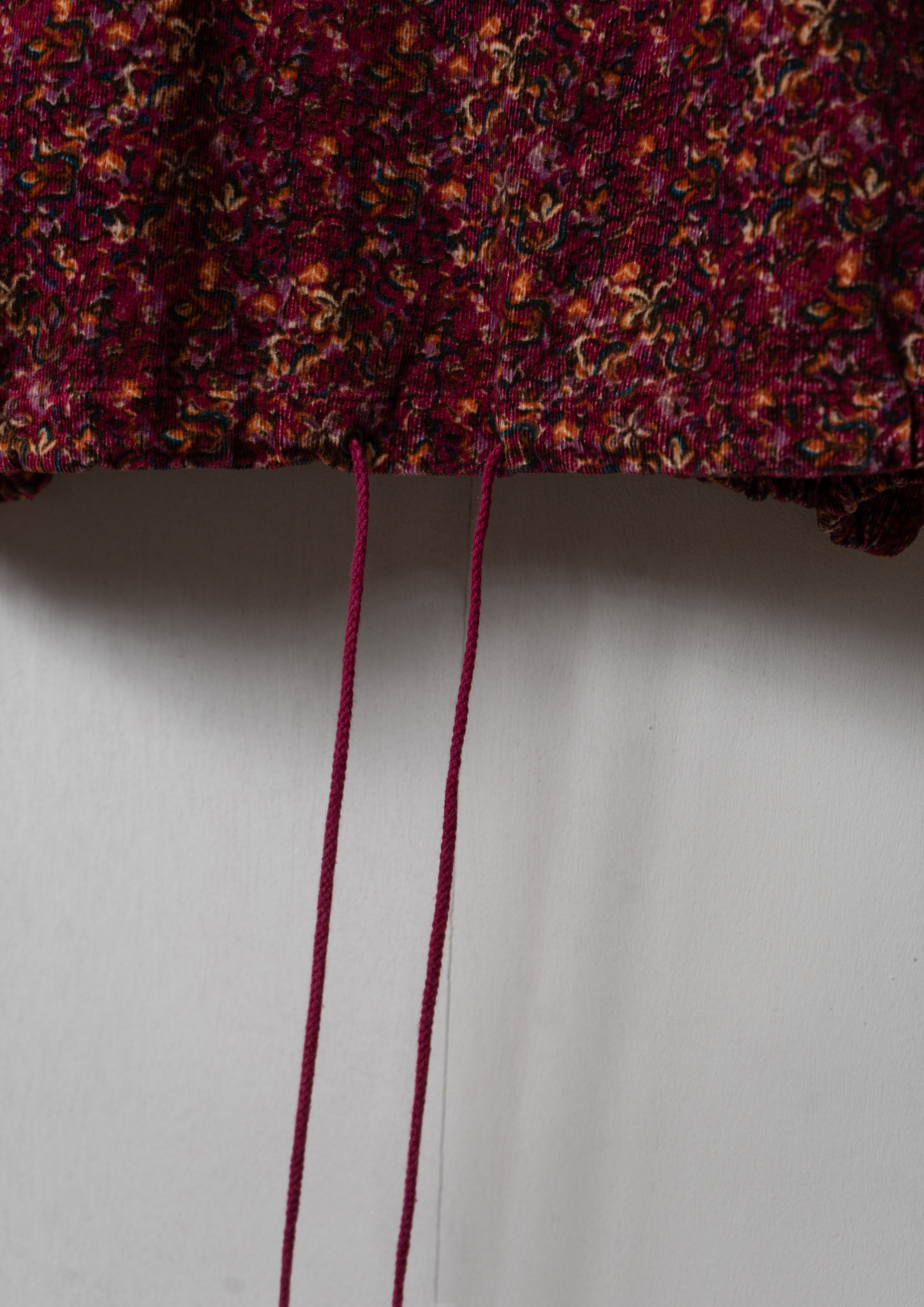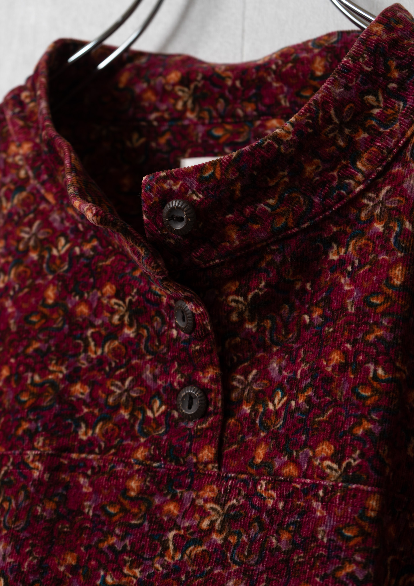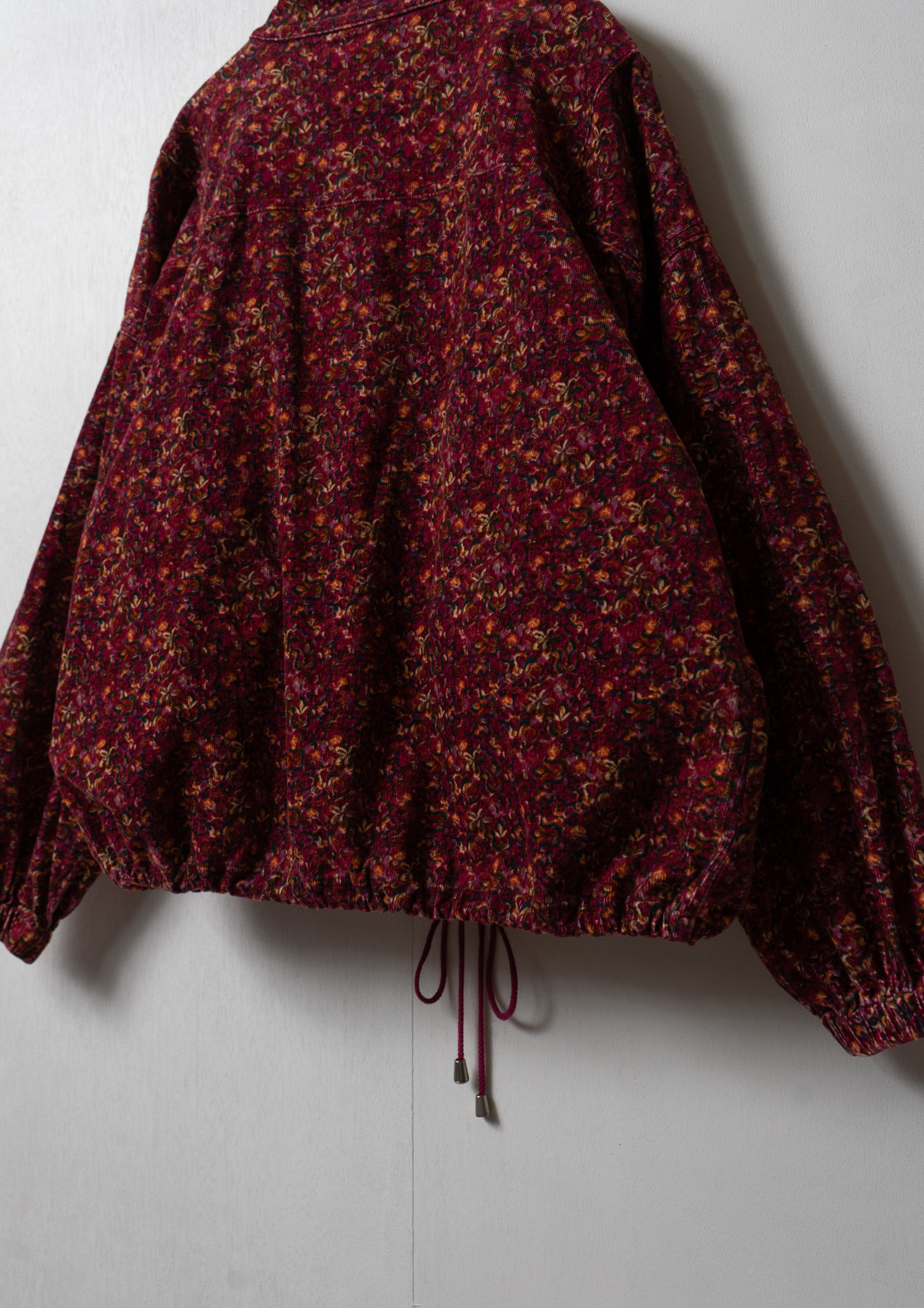 80's Botanical Pattern Bordeaux Corduroy Tops