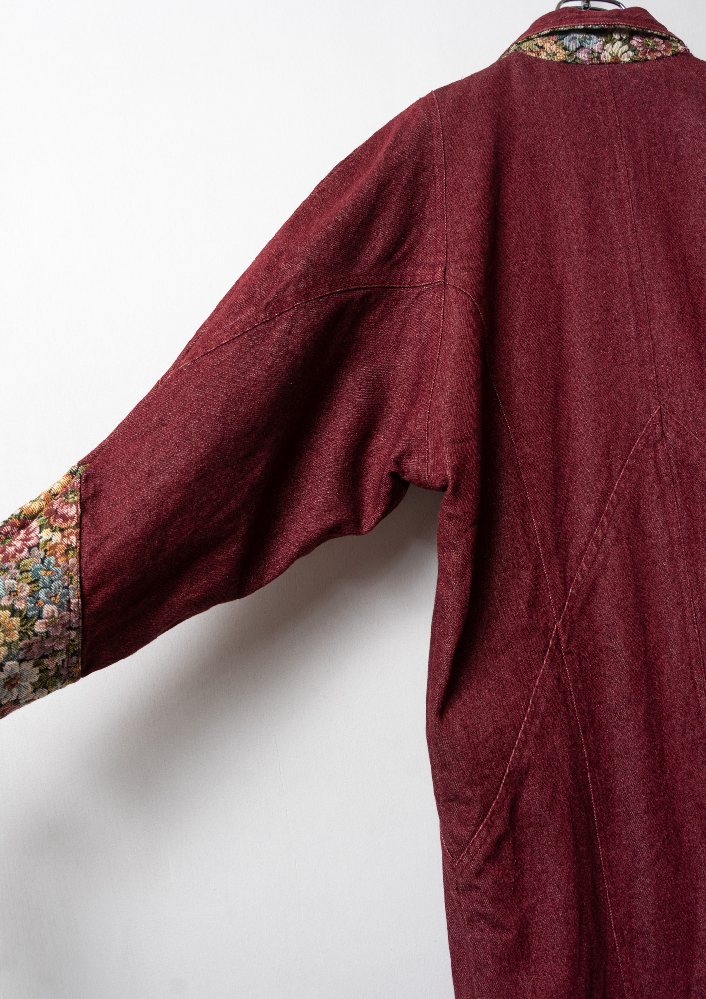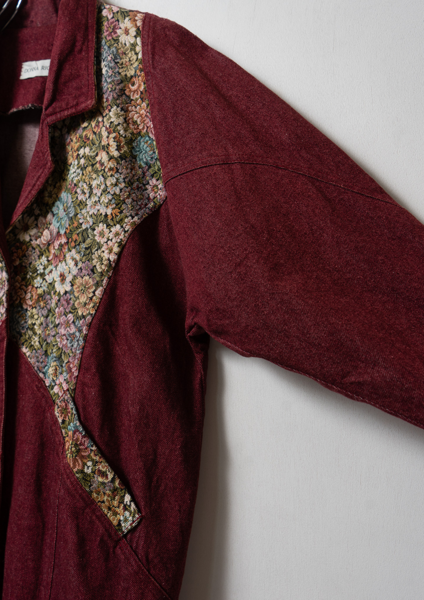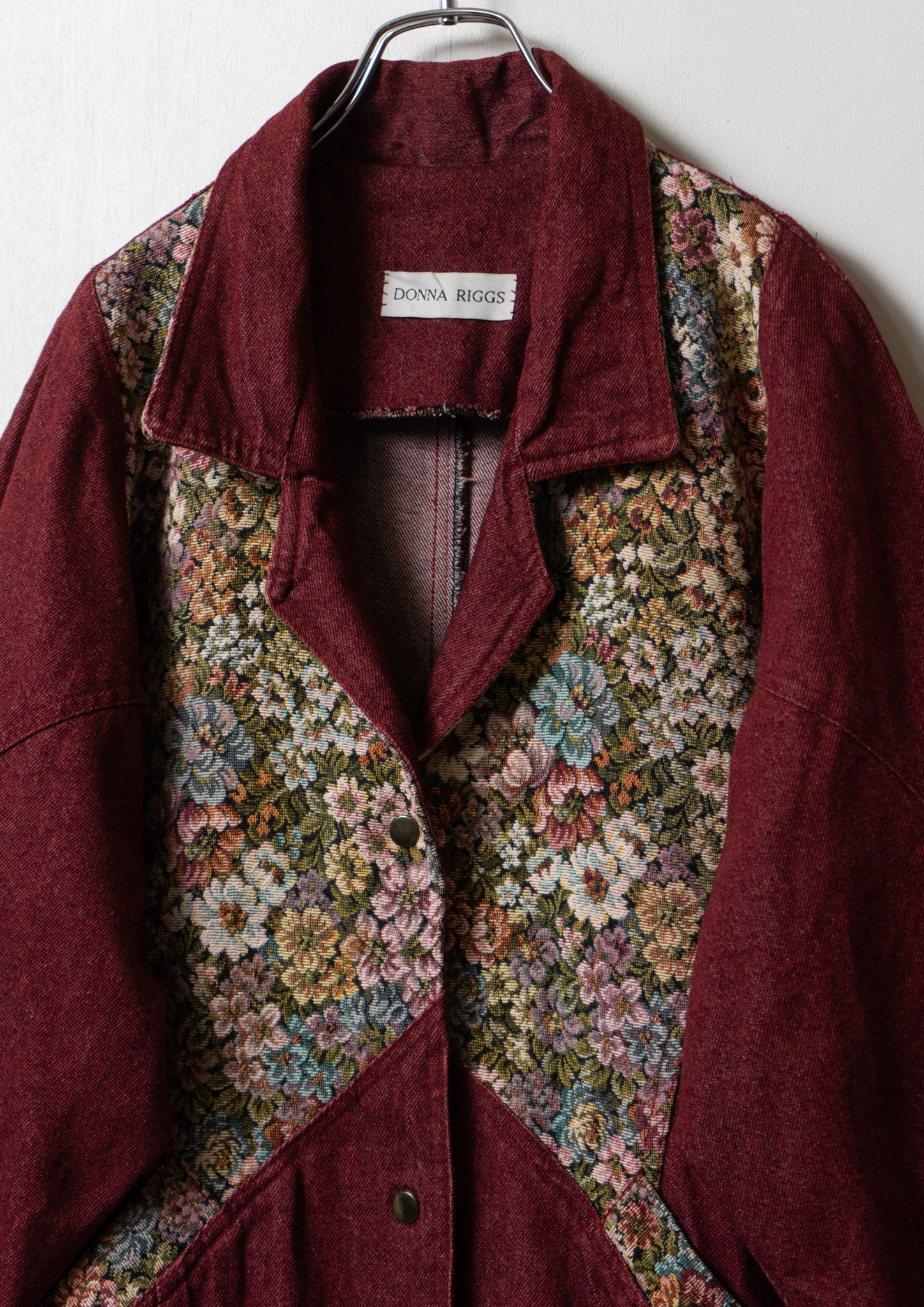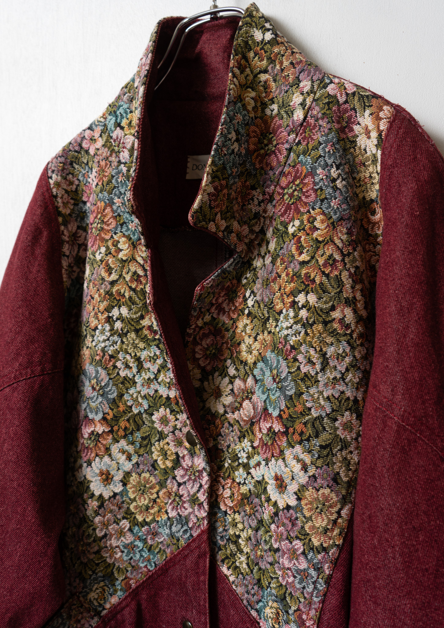 80's Flower Gobelin Pattern Bordeaux Denim Coat