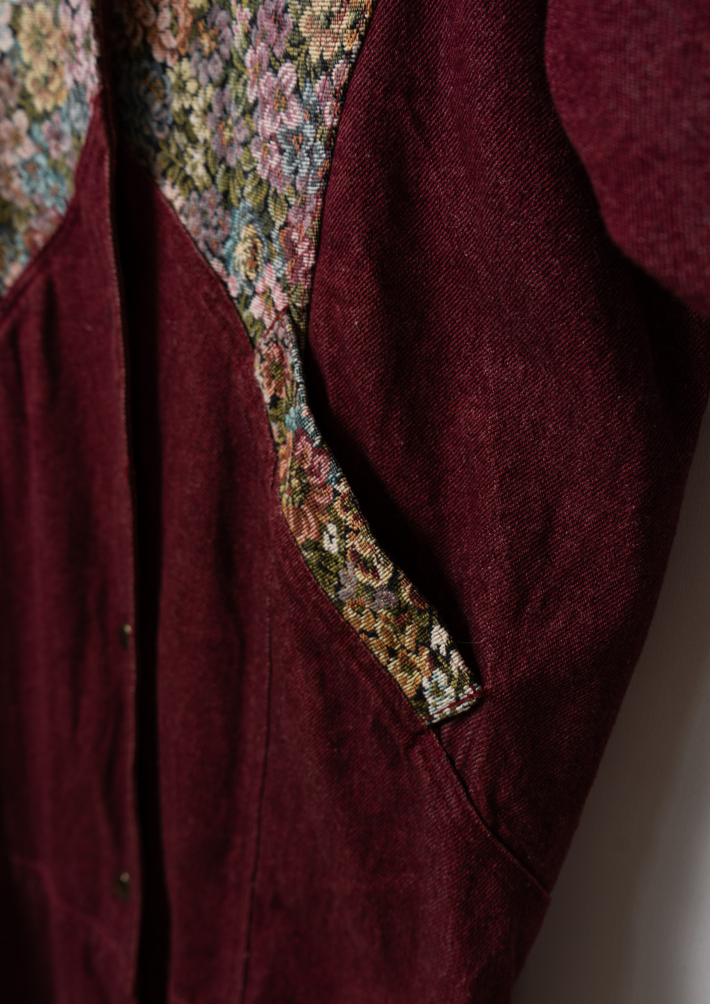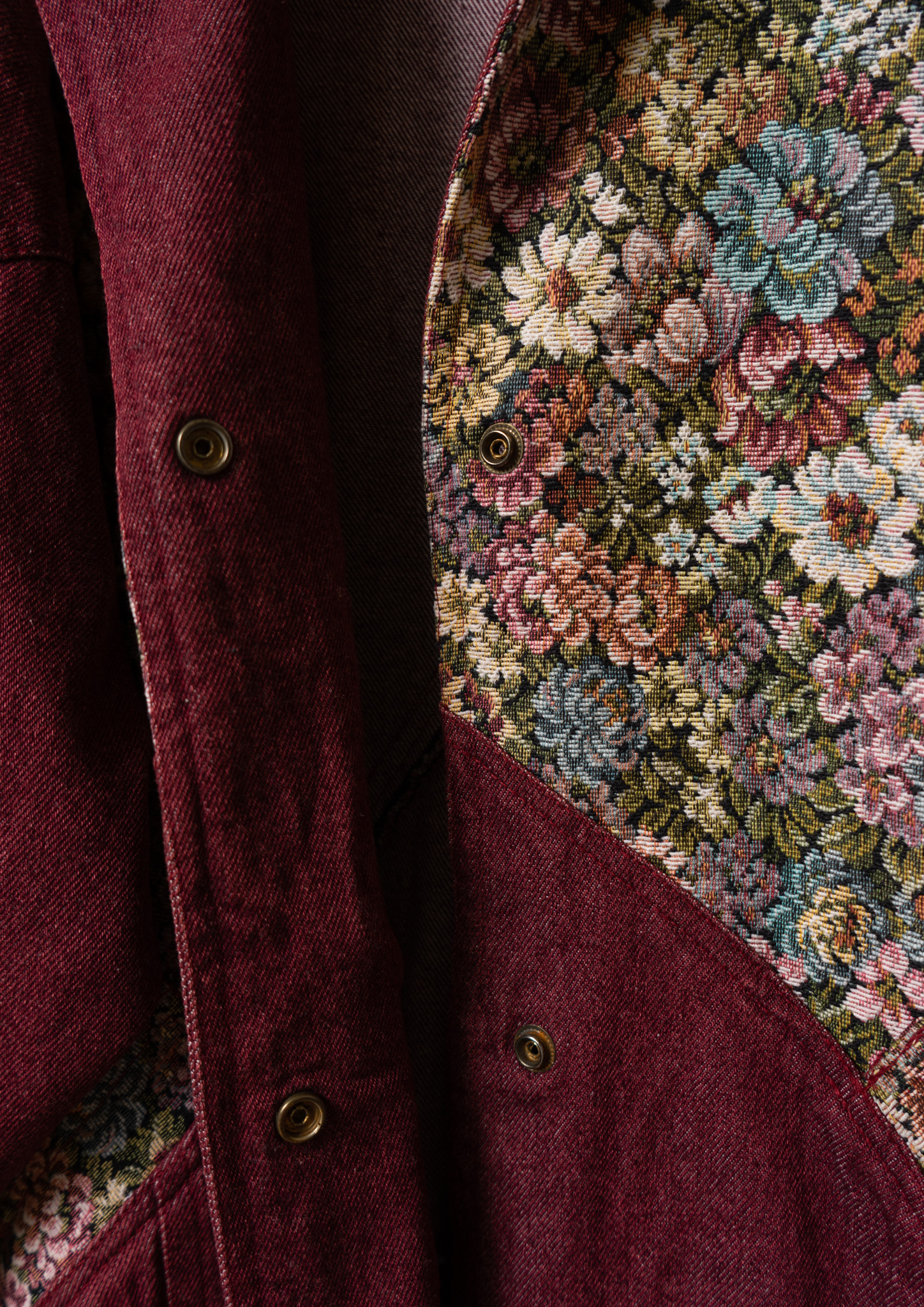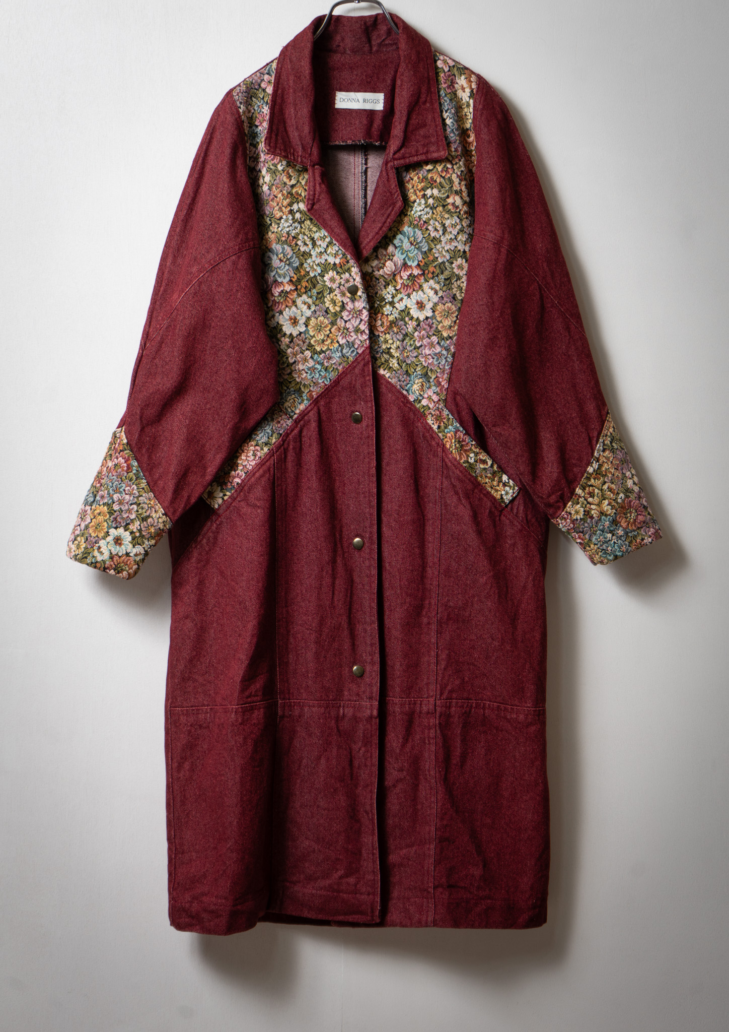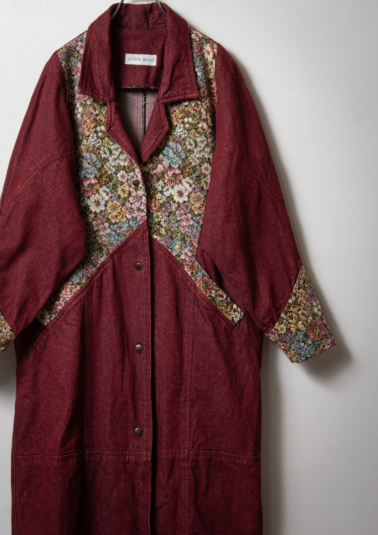 80's Flower Gobelin Pattern Bordeaux Denim Coat