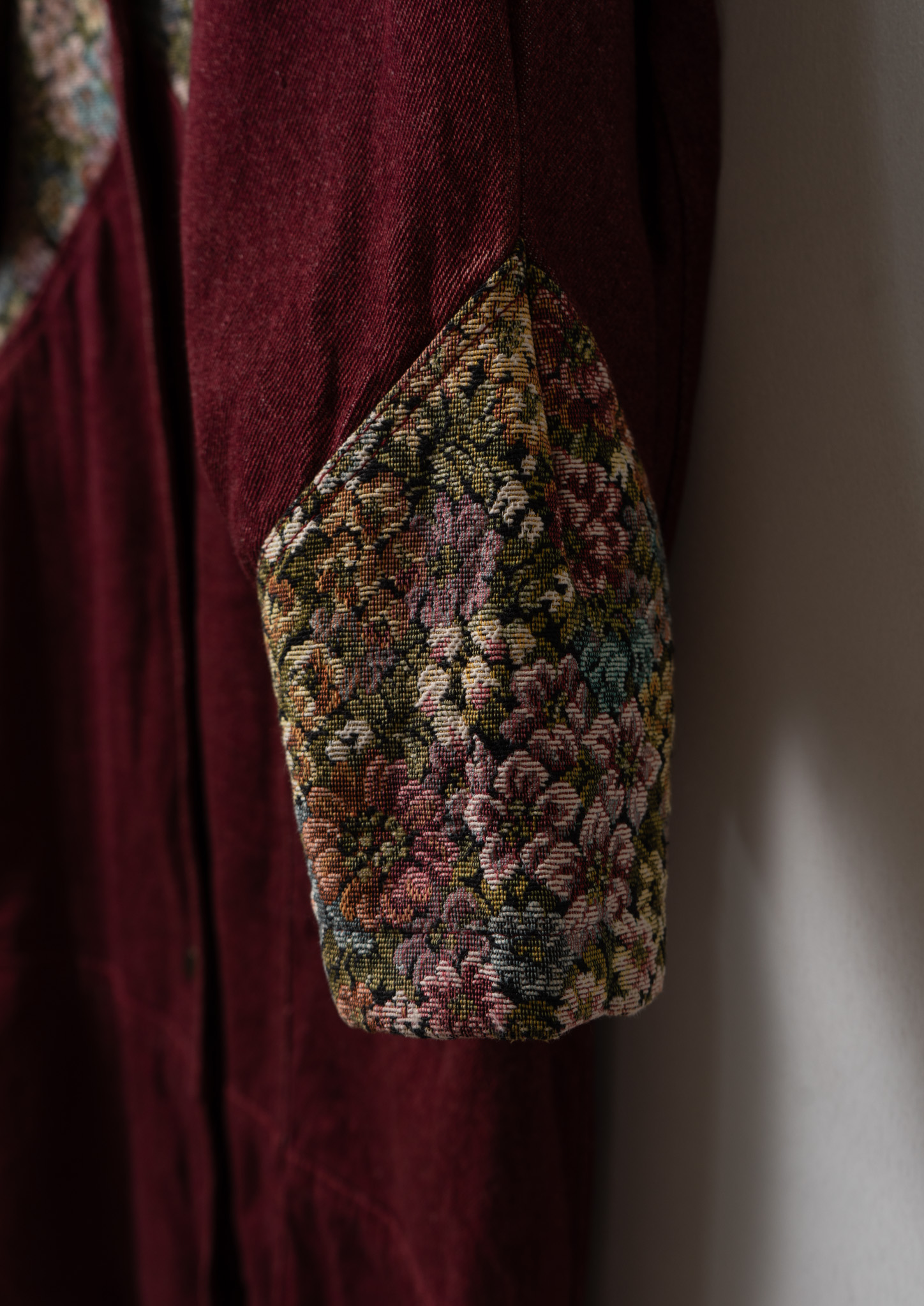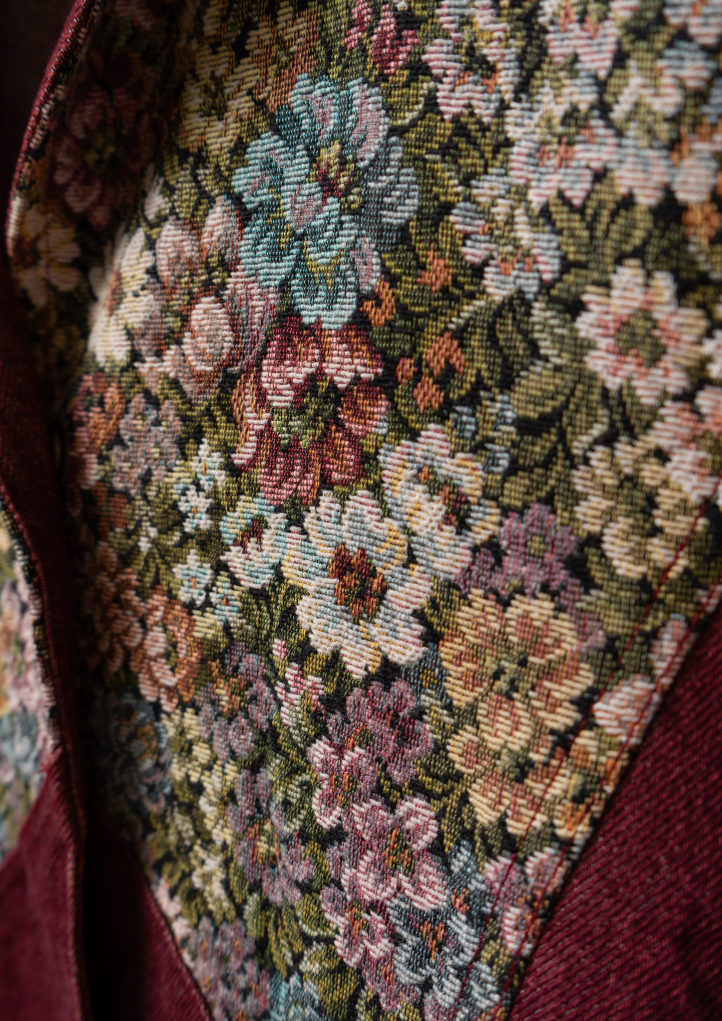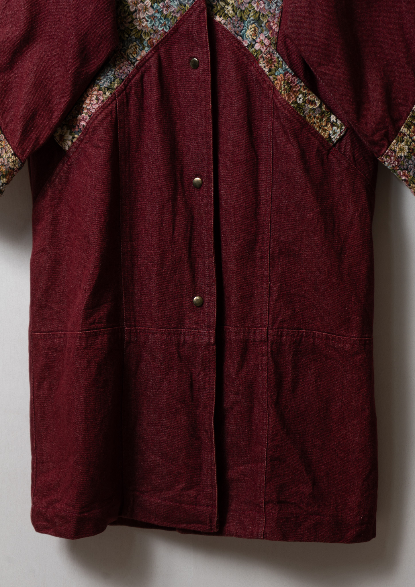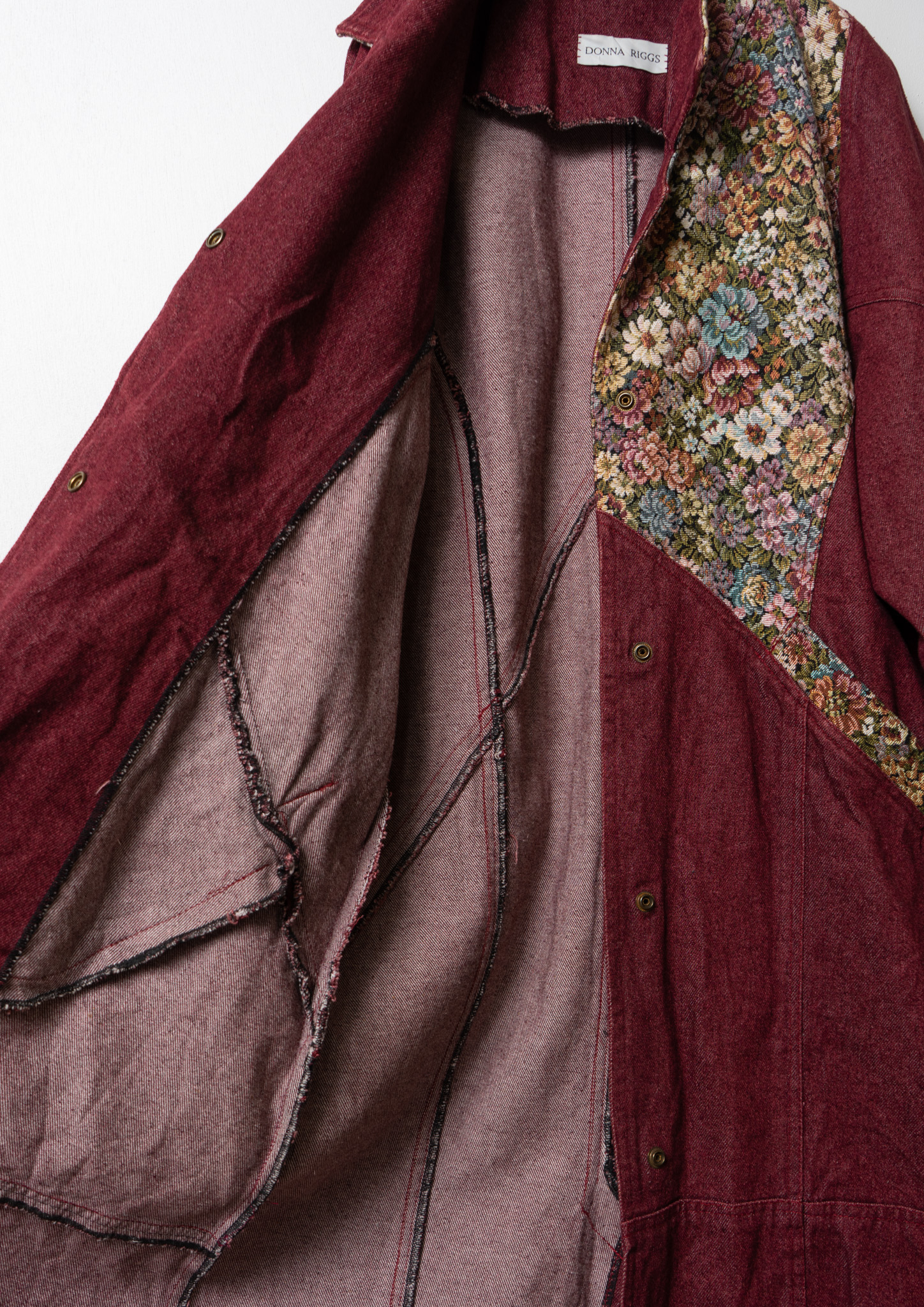 80's Flower Gobelin Pattern Bordeaux Denim Coat