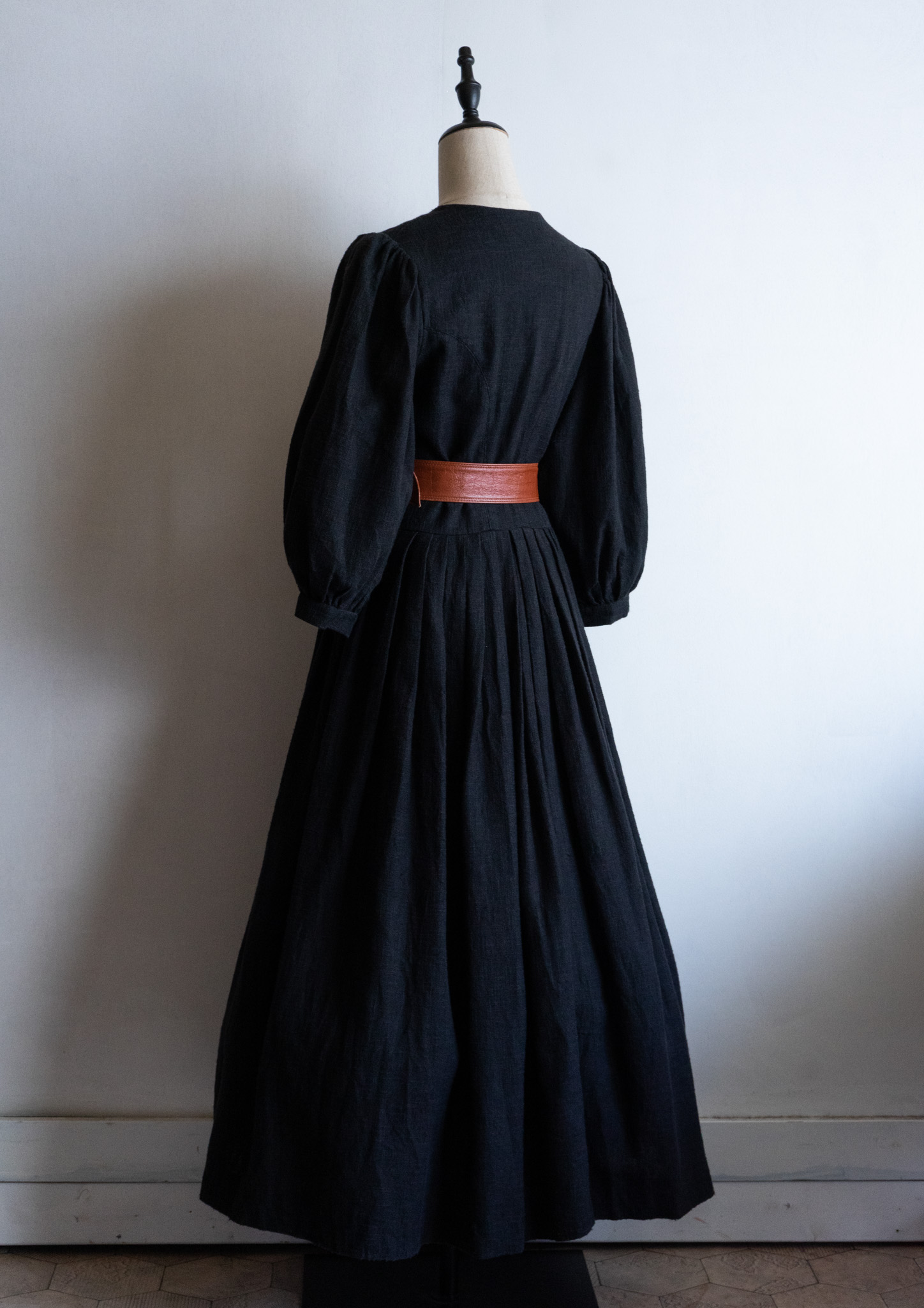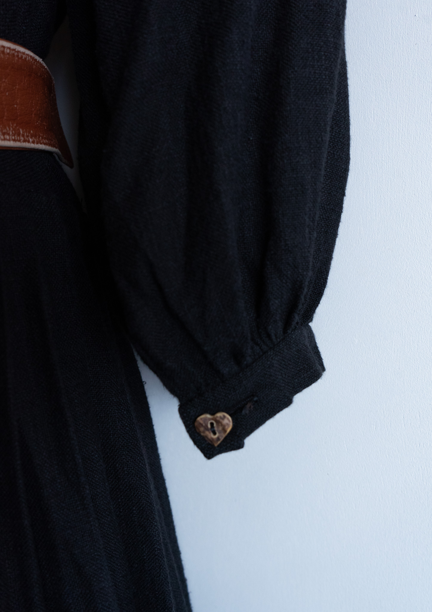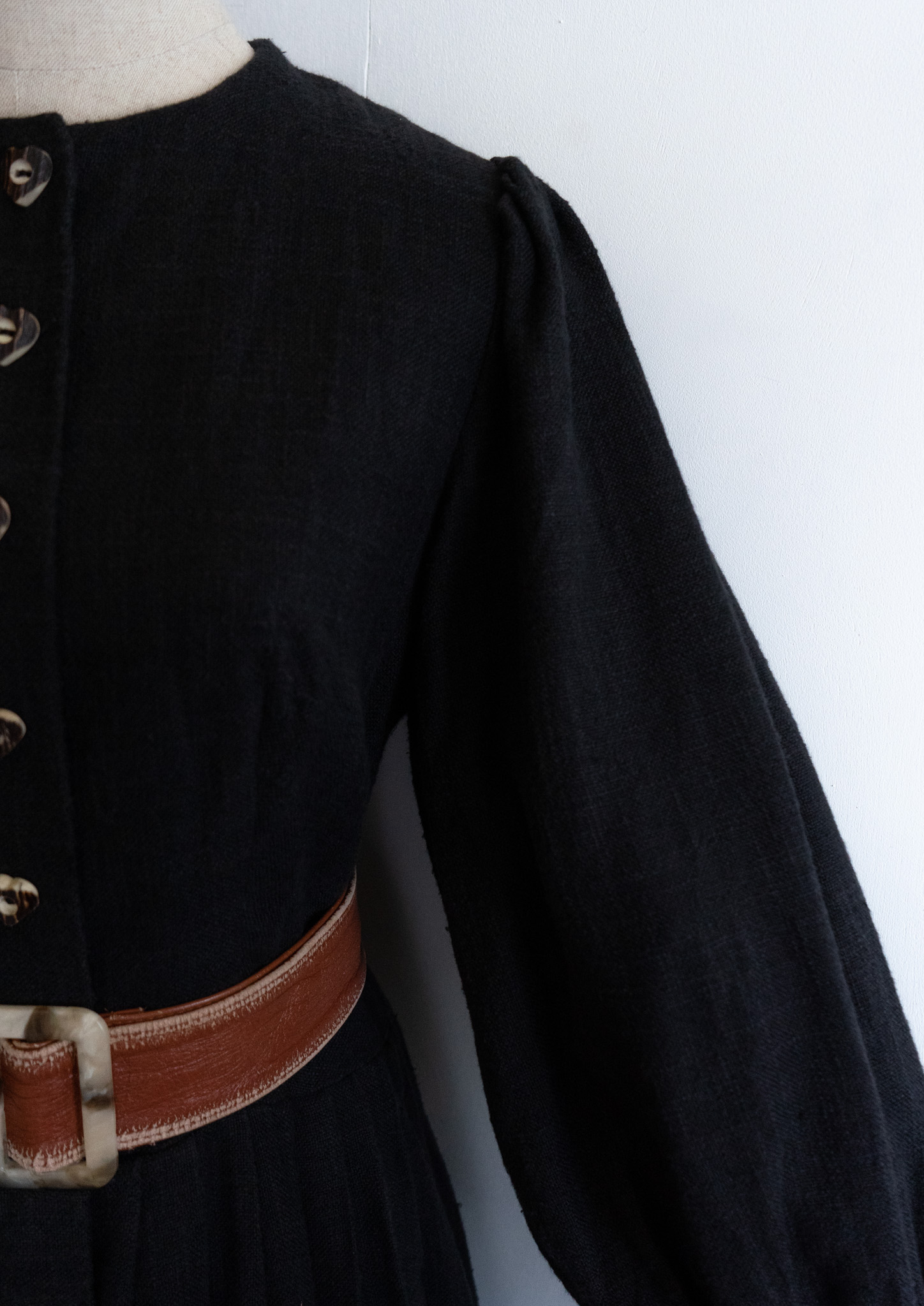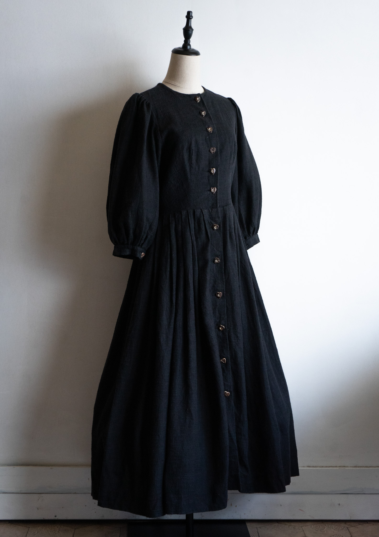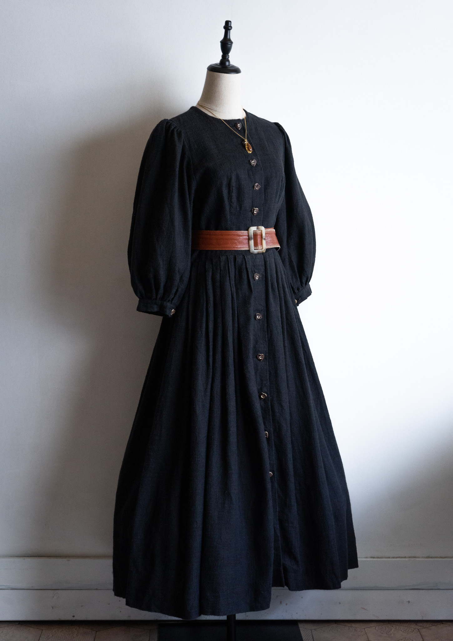 70’s Laura ashley Tuck Design Overdye Black Dress