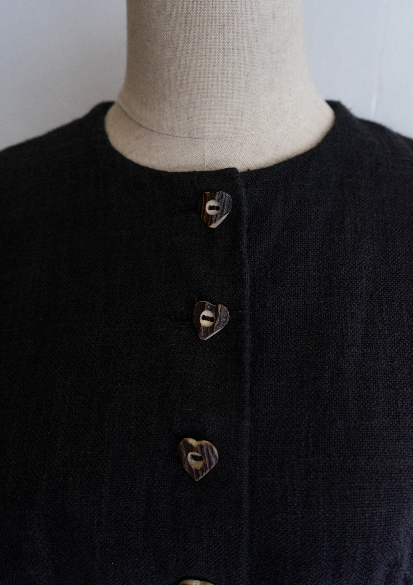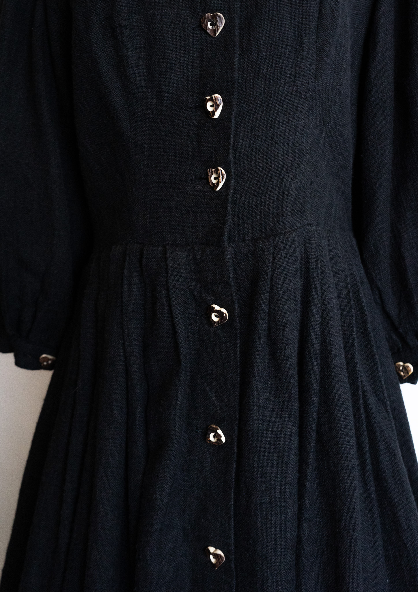 80~90's Euro Front Heat Button Design Black Tyrol Dress