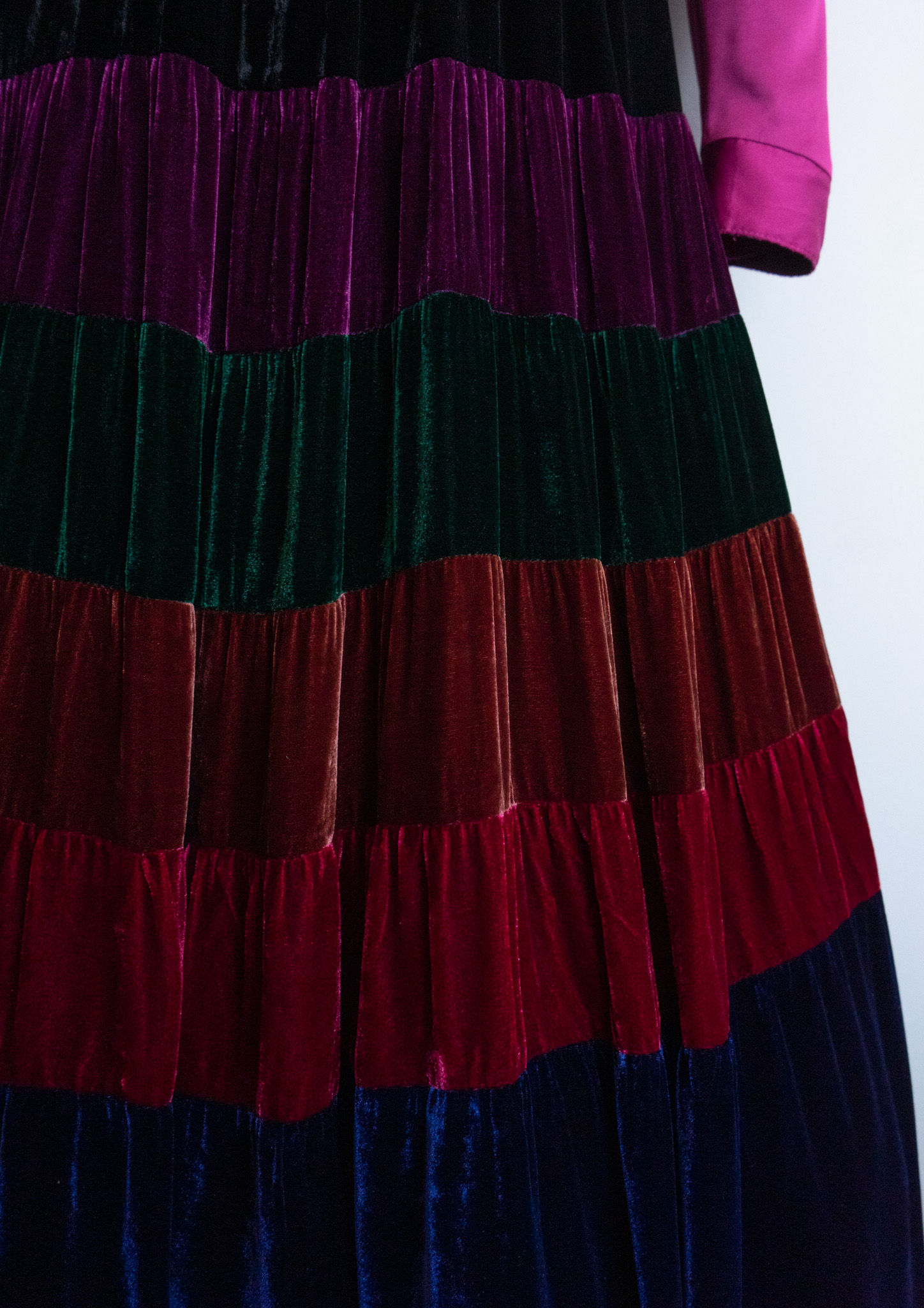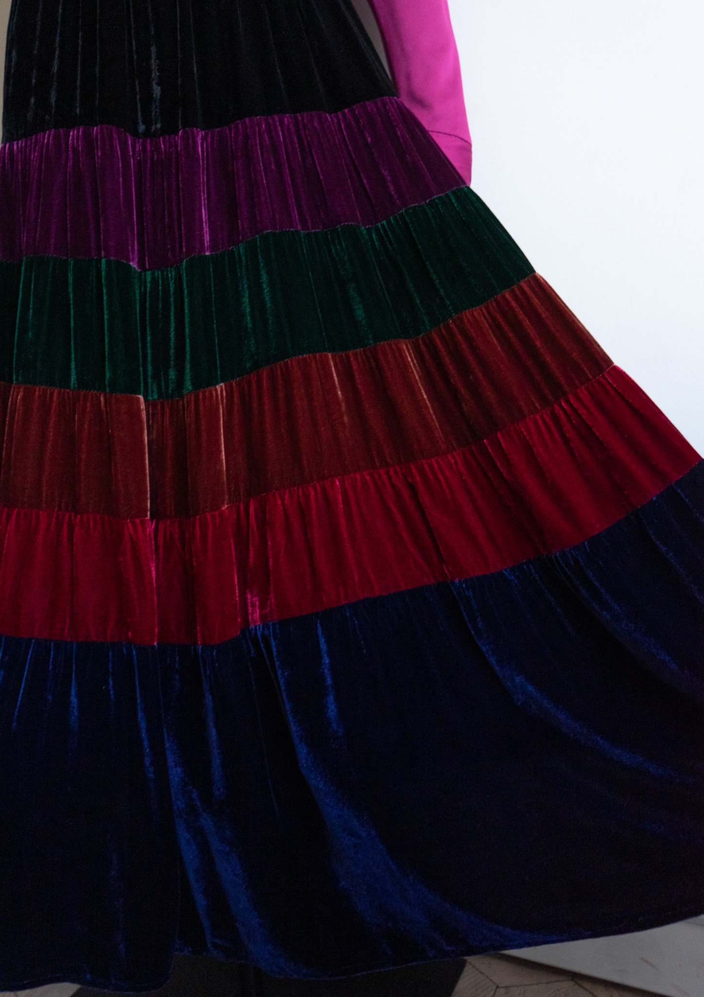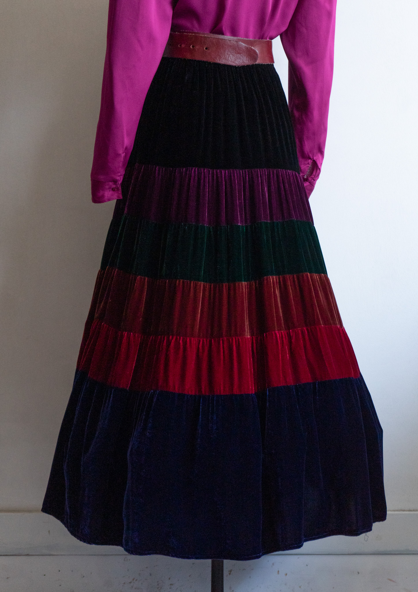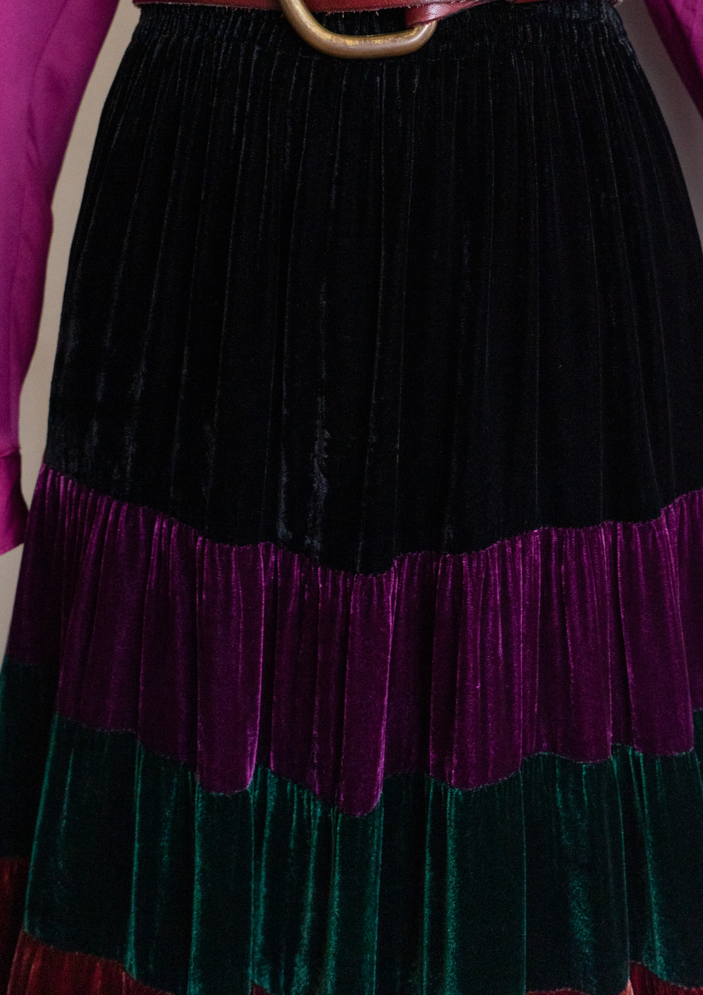 80~90's Dark Tone Colorful Velour Tiered Skirt