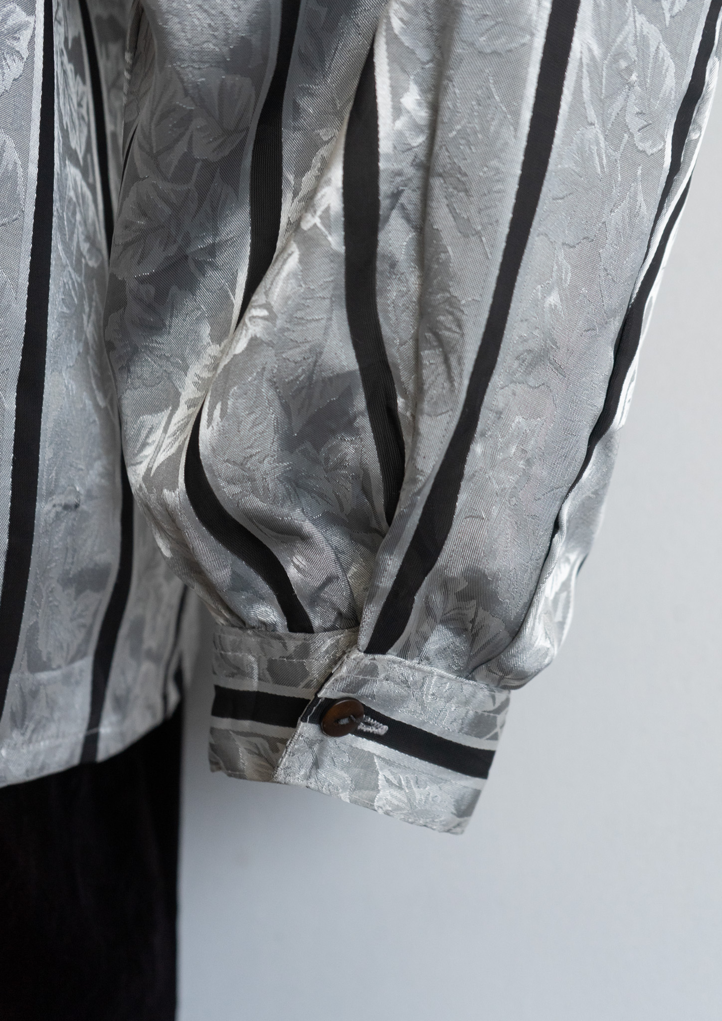 80's Leaf × Black Stripe Pattern Glossy Gray Blouse