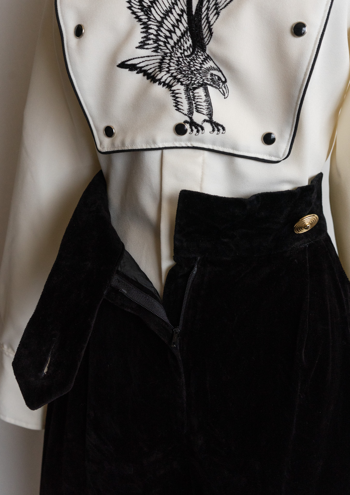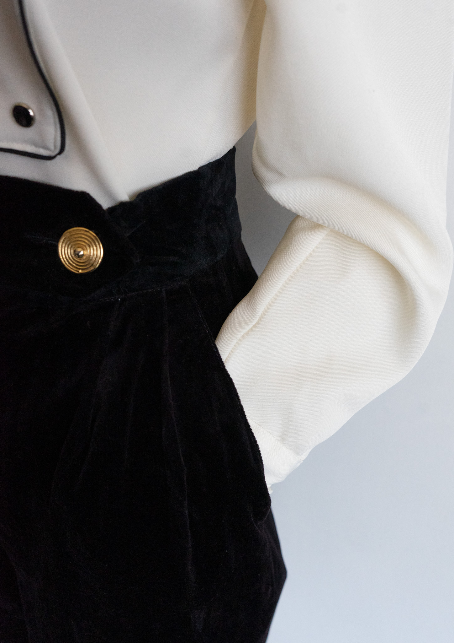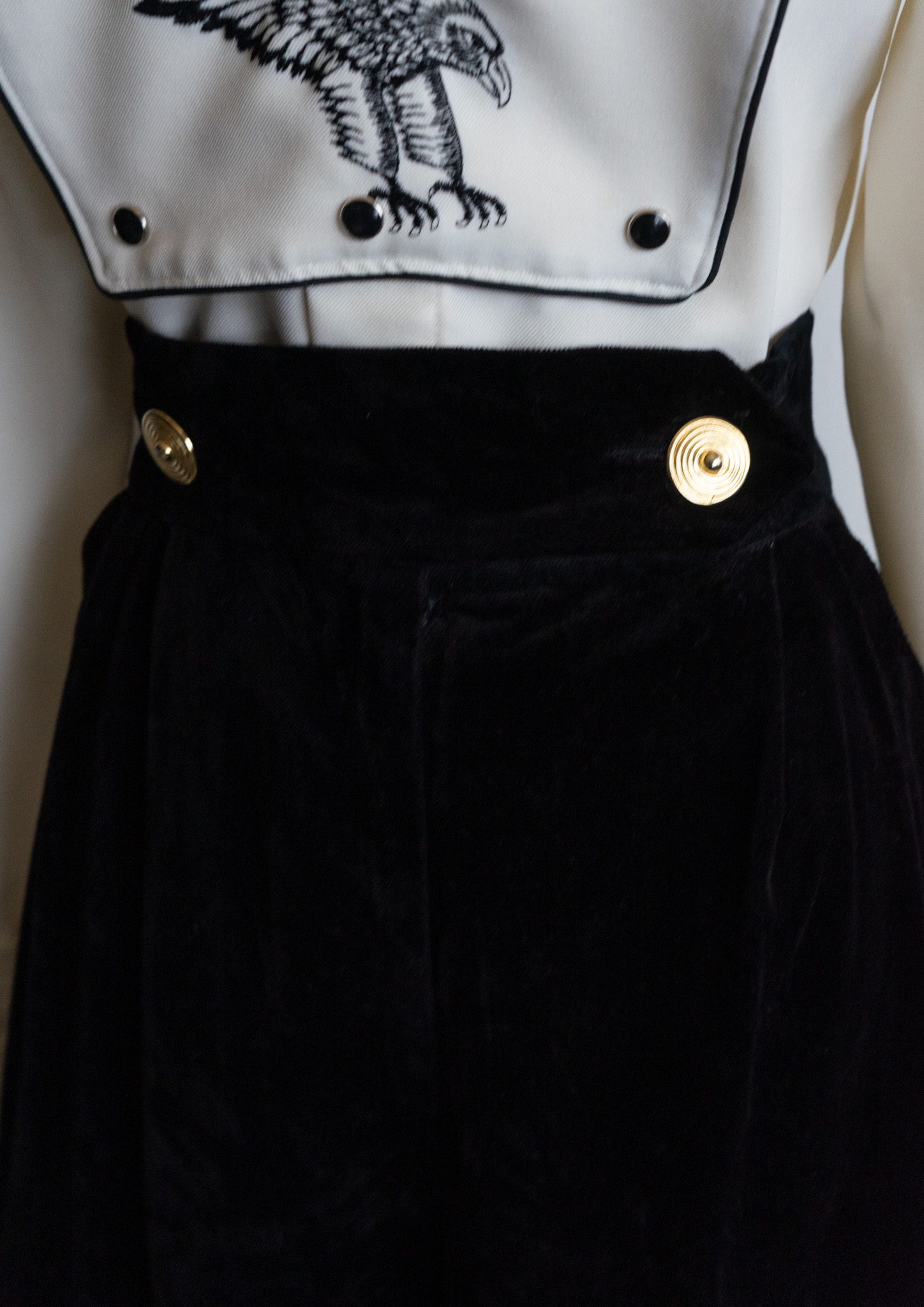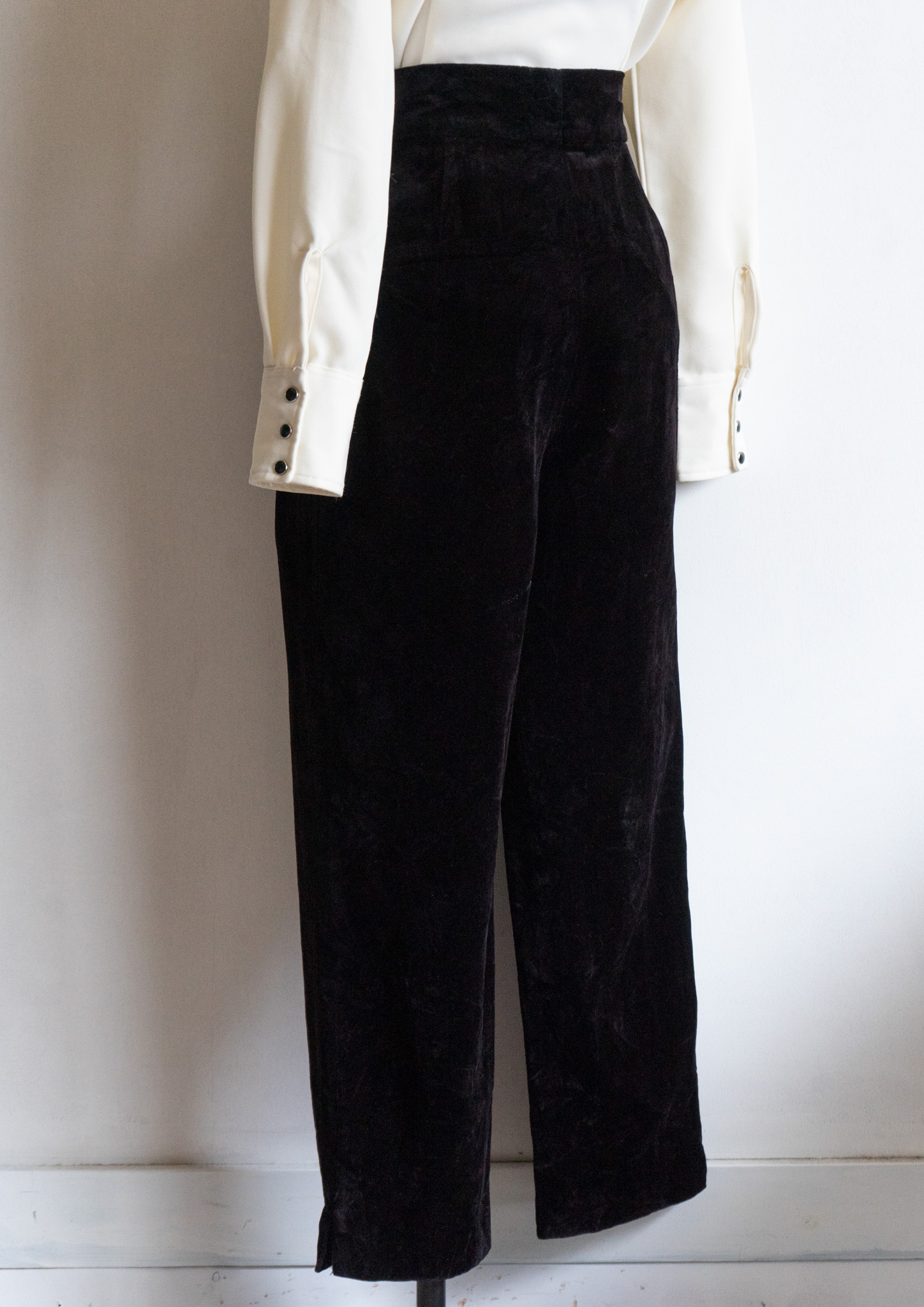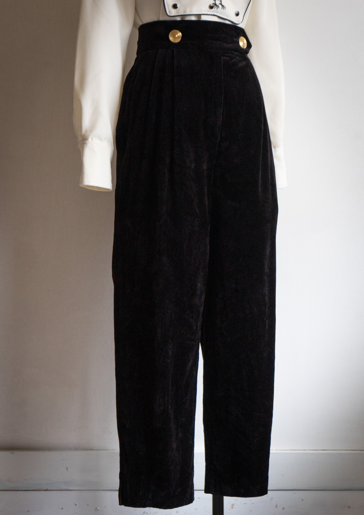 80's W.Germany Front Double Gold Button Design Black Velvet Pants