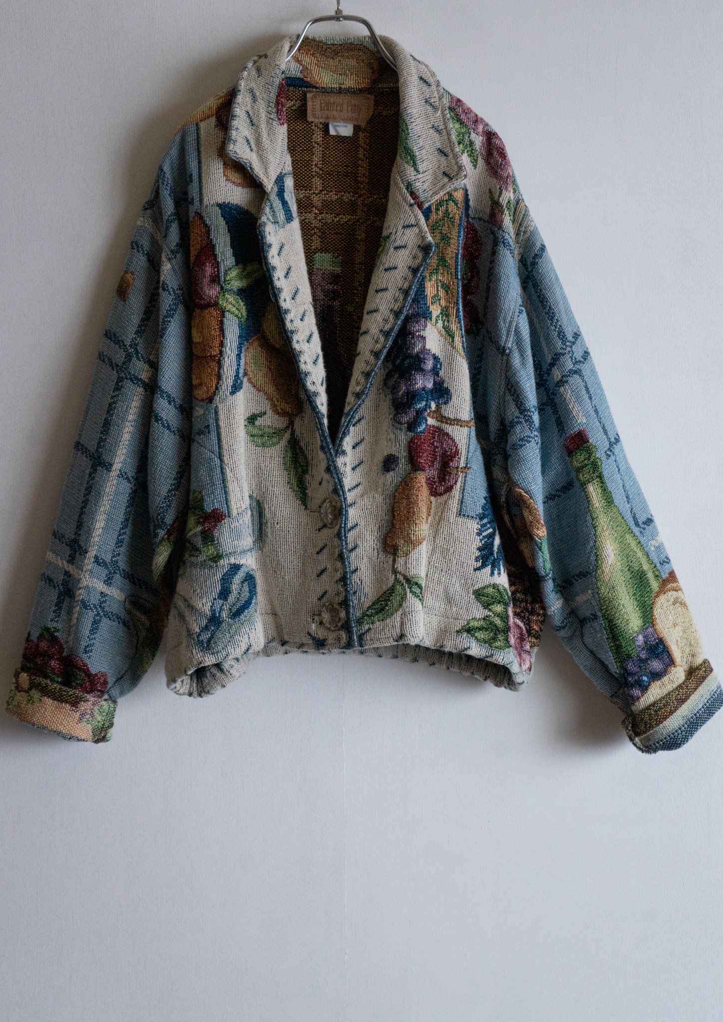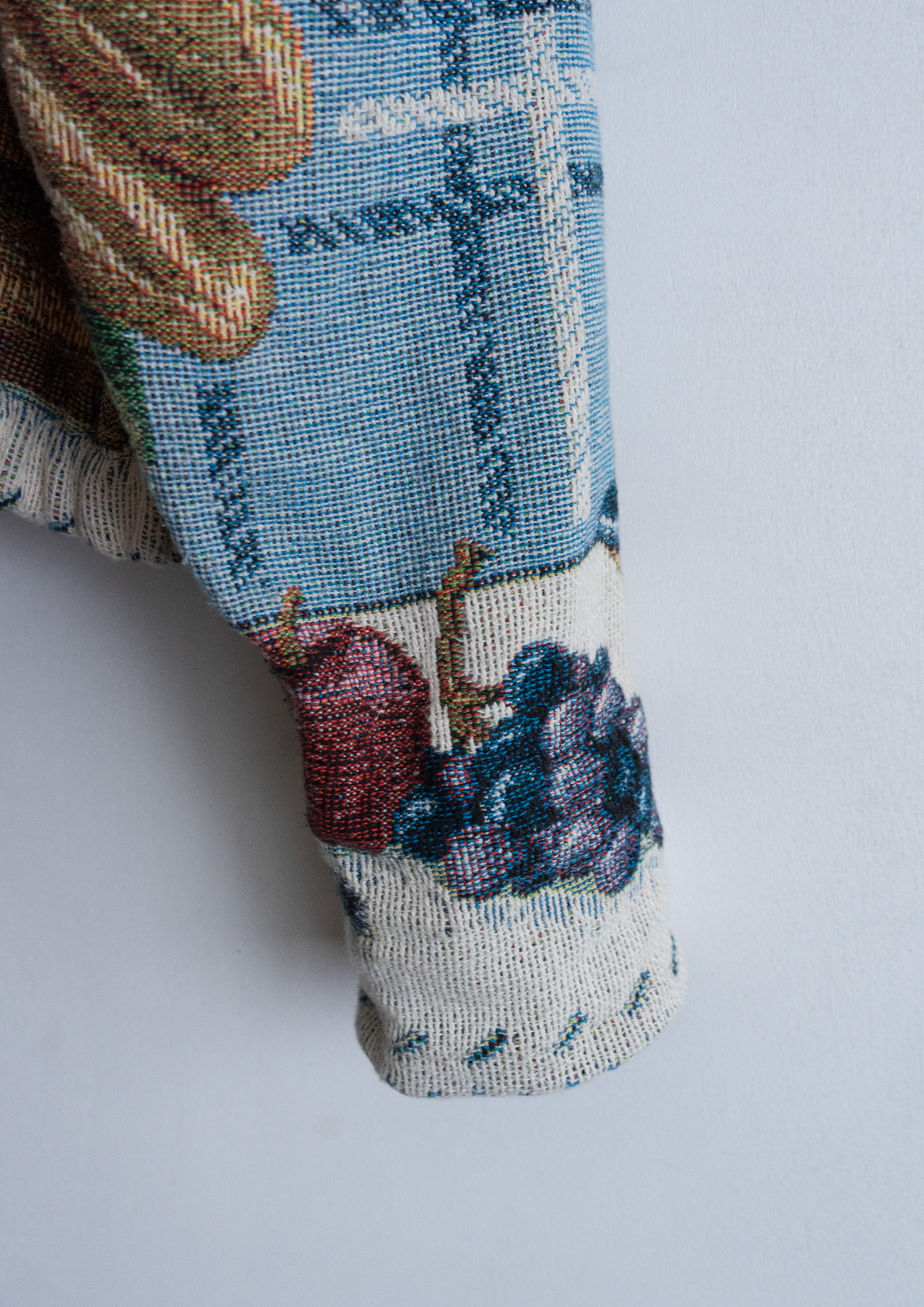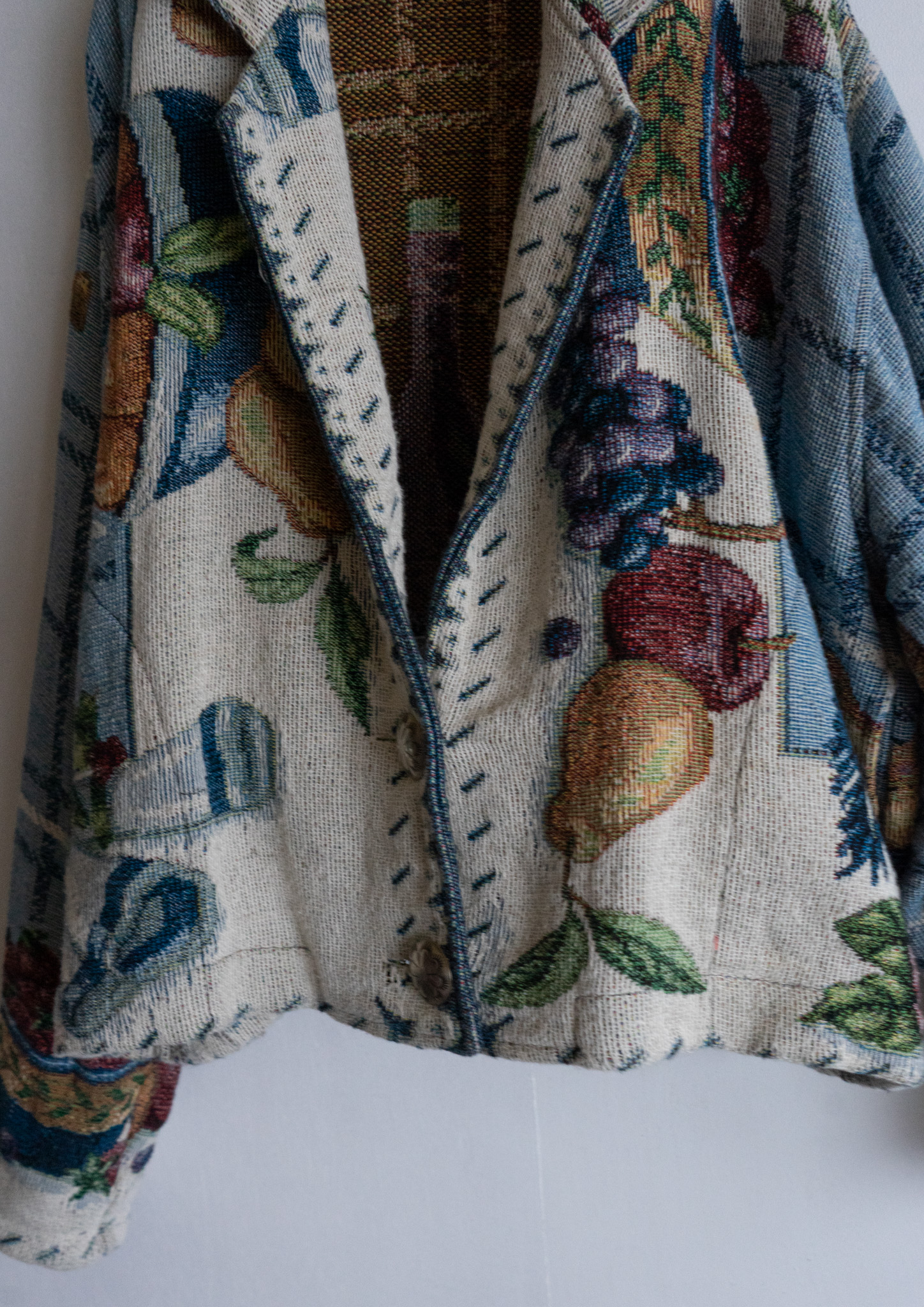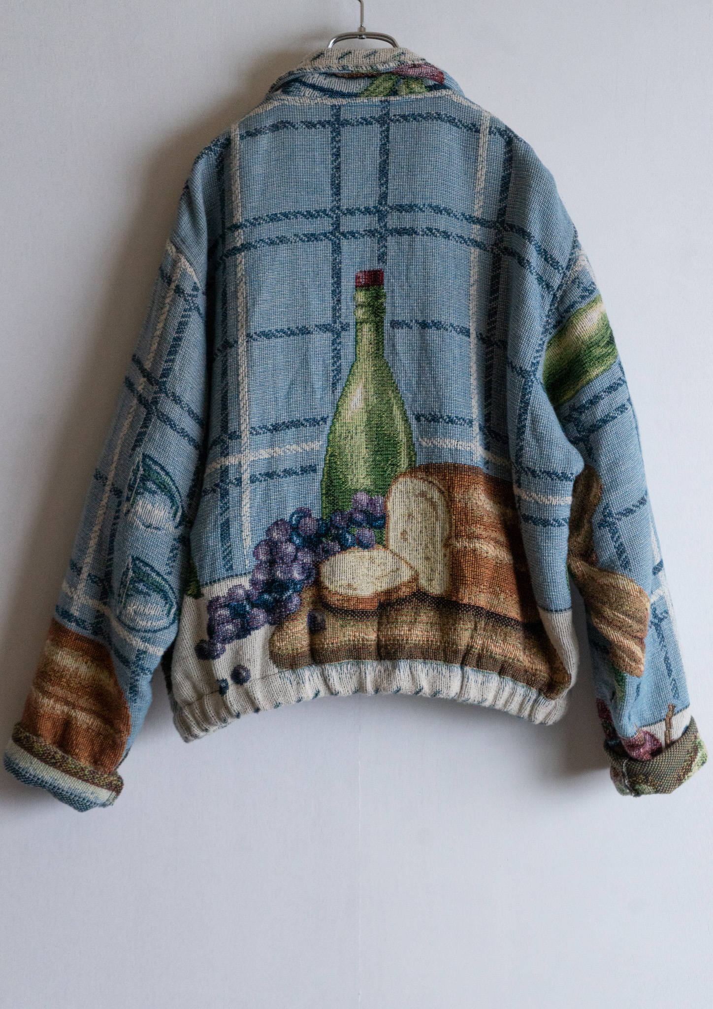 80's USA Fruits Art Pattern Light Blue Rug Jacket