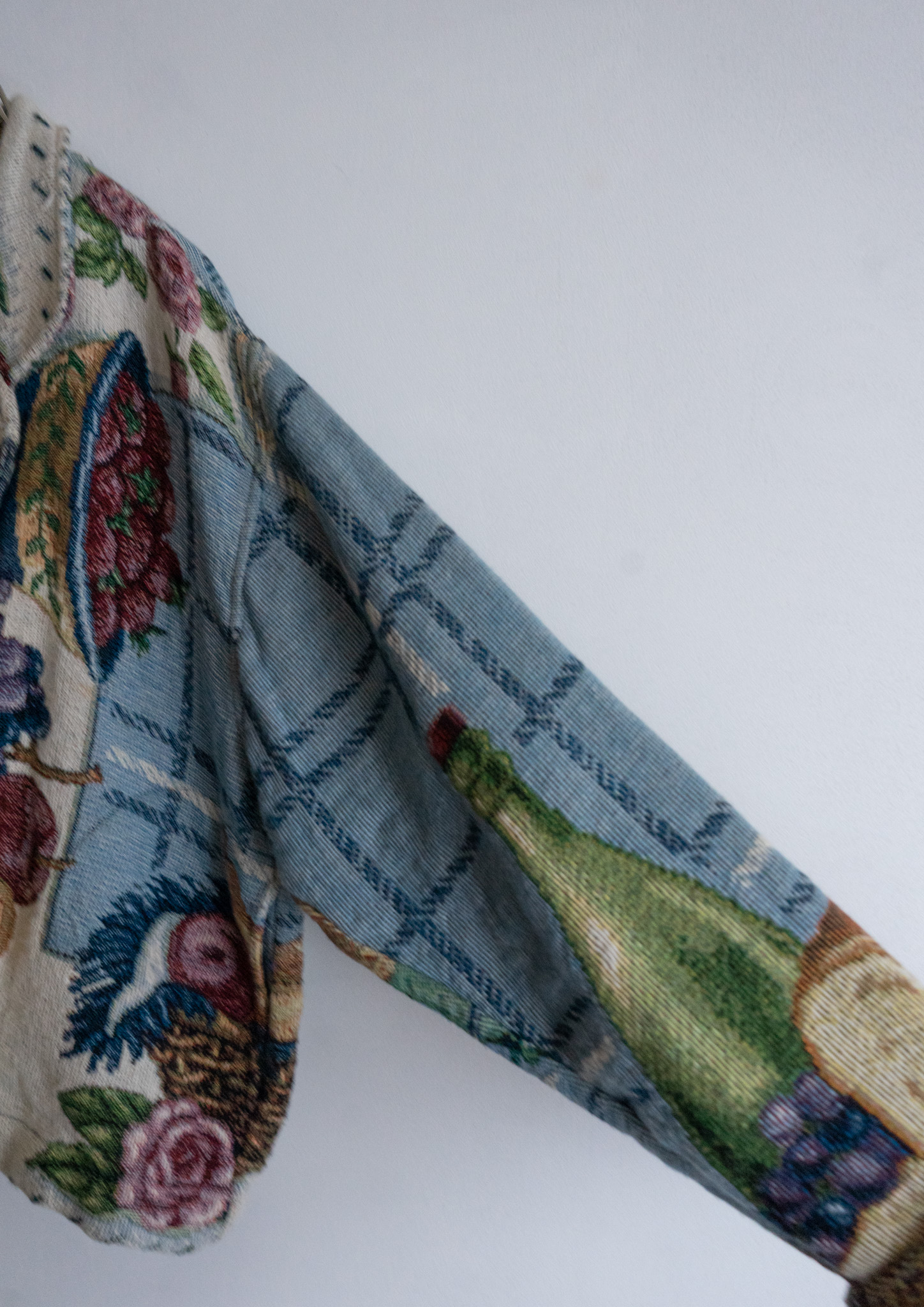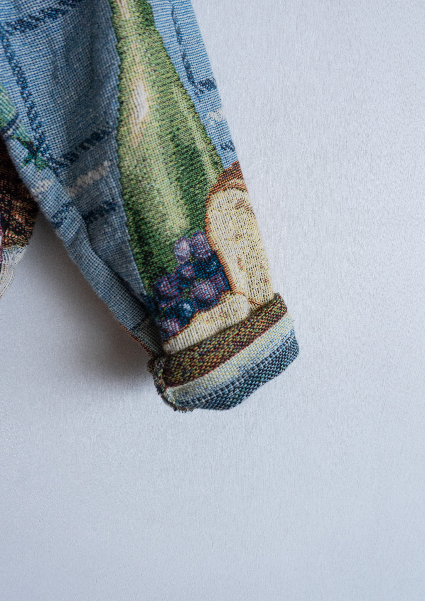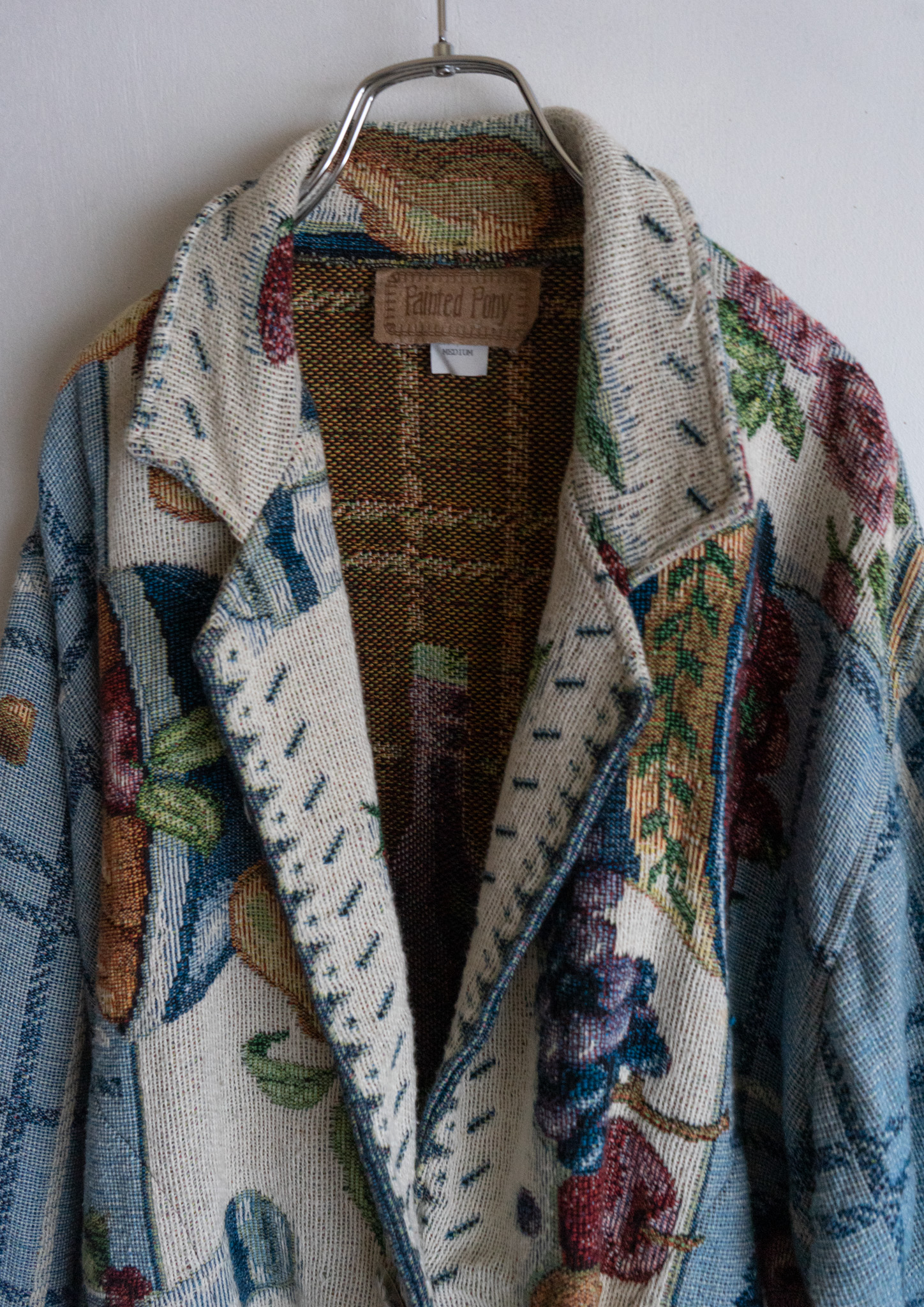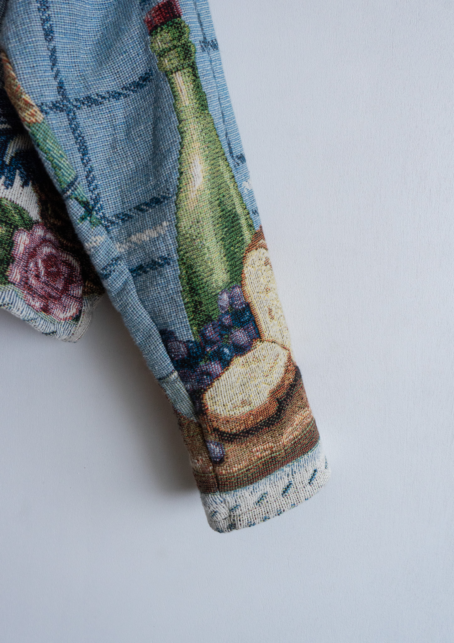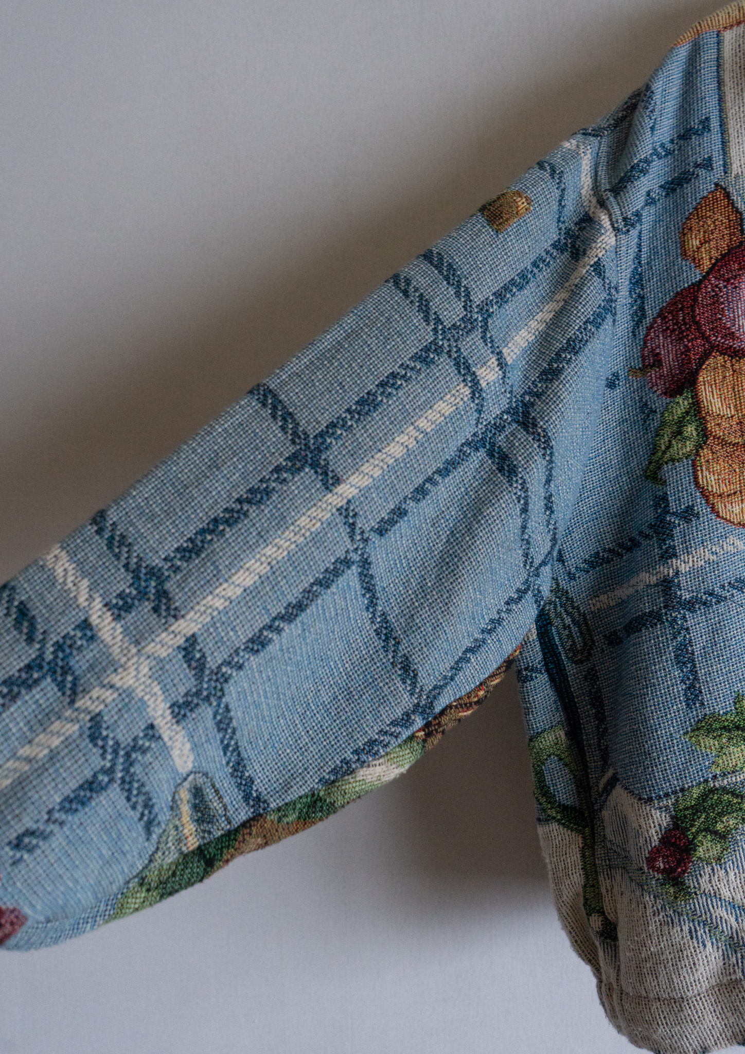 80's USA Fruits Art Pattern Light Blue Rug Jacket